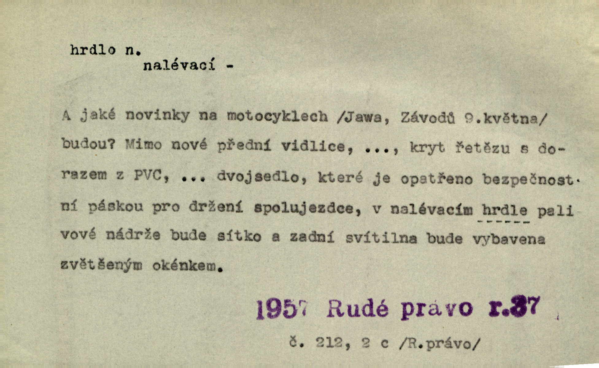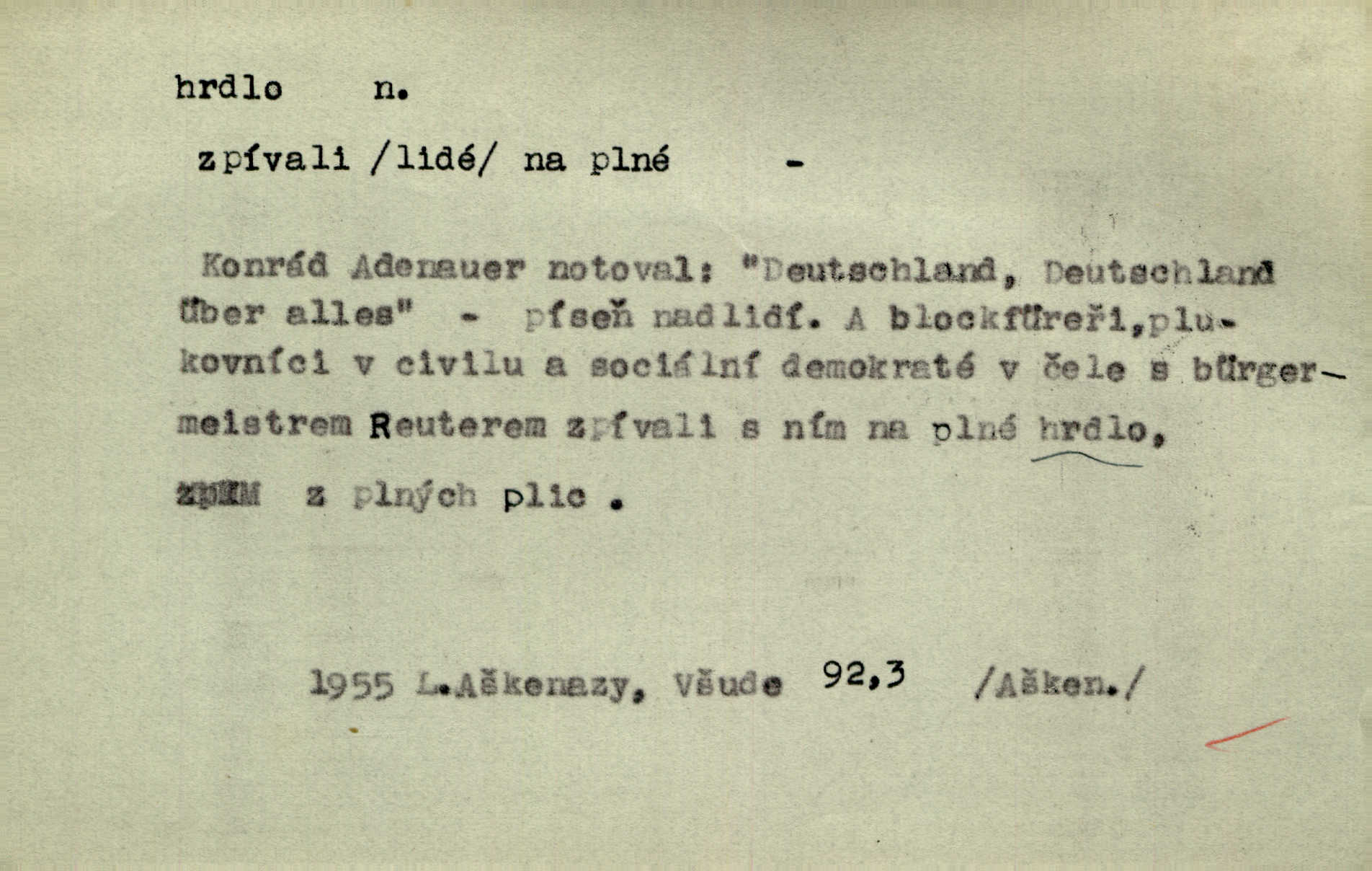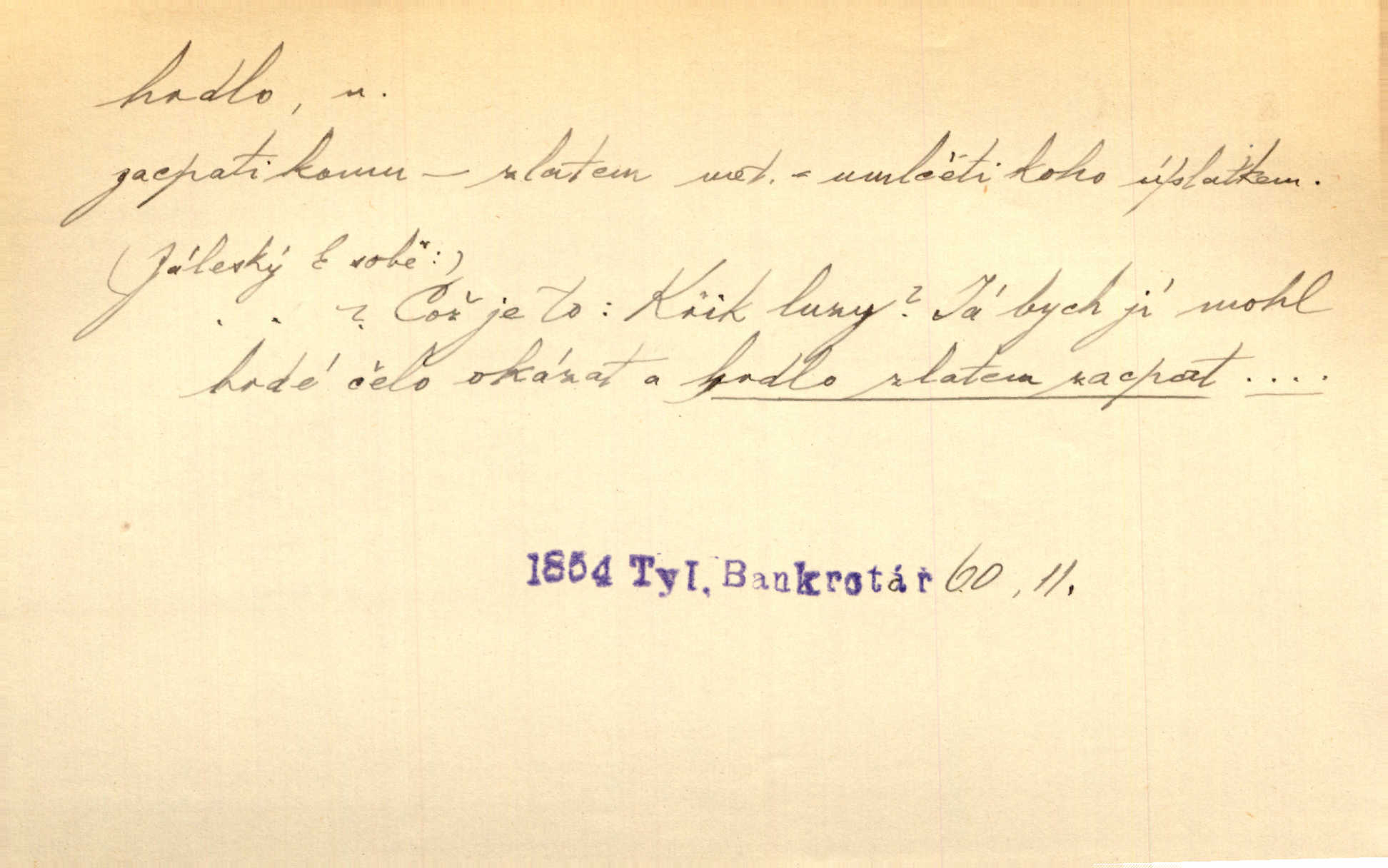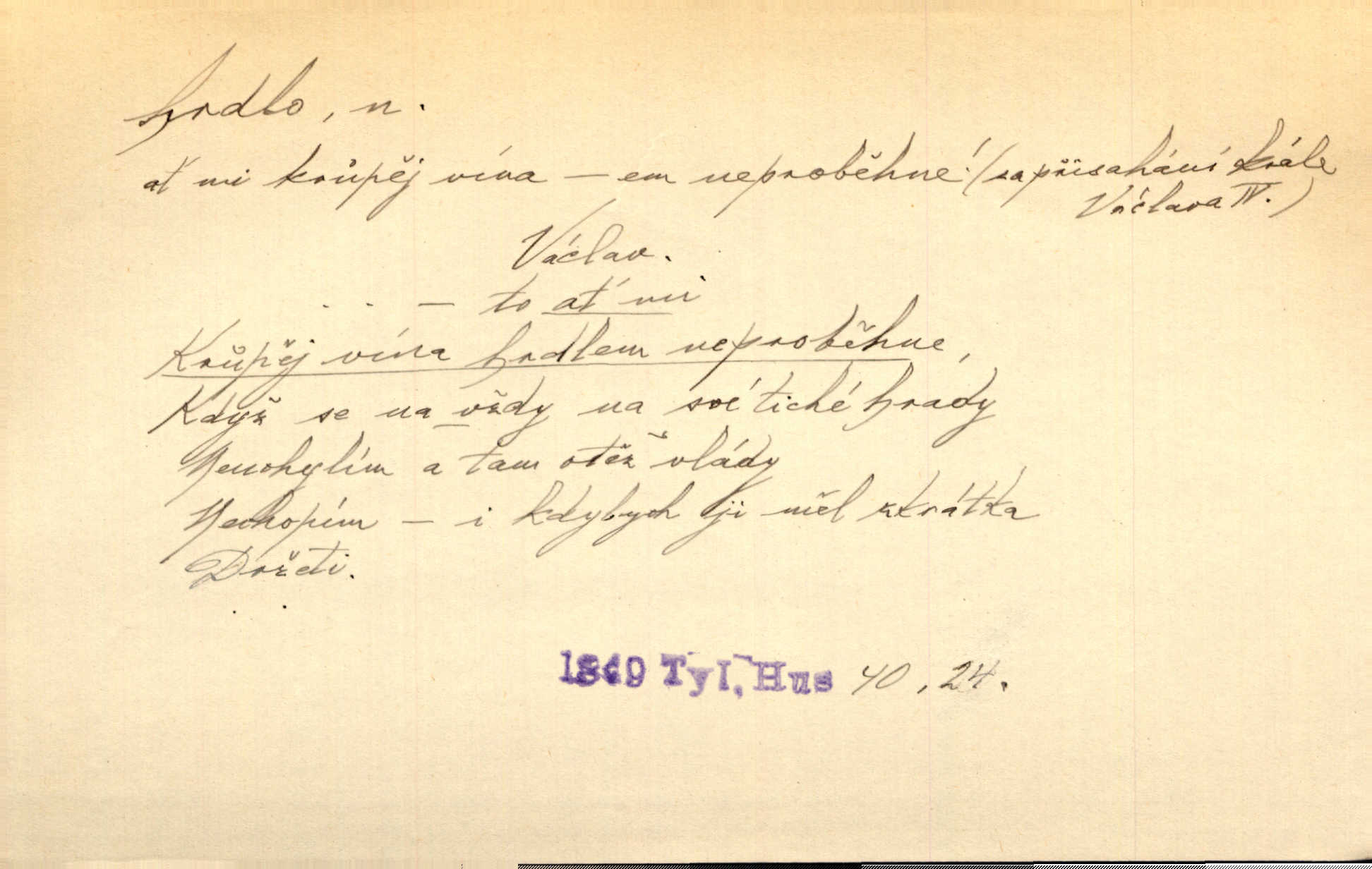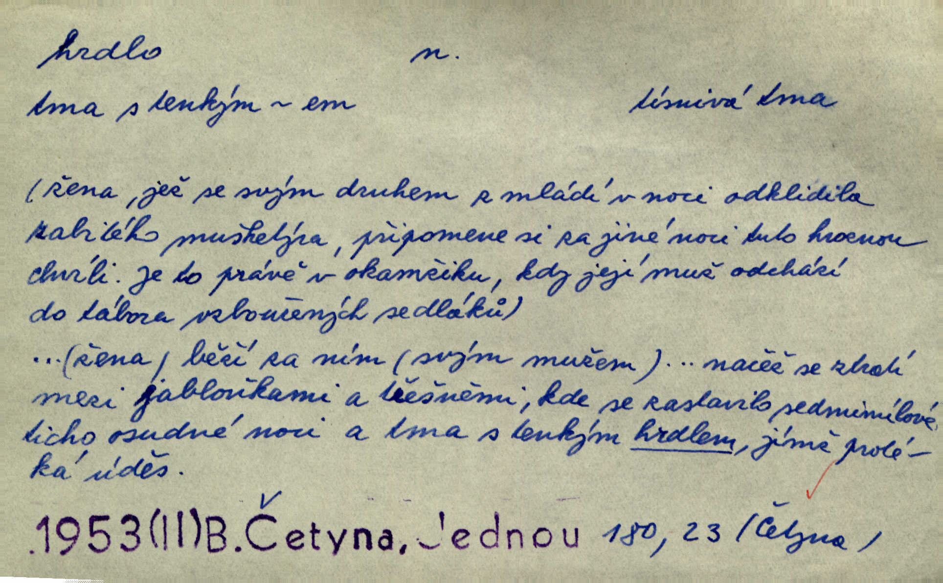 - hrdlo, -a n. hltan a hrtan. Lil nešťastnému člověku v hrdlo ocet. Win. Vypráhlo mi v hrdle. Dyk. Dřív propláchněte hrdlo. Hol. Ale počkejte, jak to potom půjde, jak se všecko prožene hrdlem projí a propije. Rais. Co jen hrdlo ráčí, dostaneš. Tyl. Bájili a lhali, co hrdlo ráčí. Přít. Z plna hrdla křičelo [dítě]. Erb. Začal z plného hrdla křičeti. Tyl. „On se červená,“ smál se plným hrdlem. Zey. Baron se smál, co mu hrdlo stačilo. Zey. Znělo z tisíce hrdel: Vyhráno. Purk. Padesát asi hrdel hulákalo „da capo, da capo“. Ner. Jedním hrdlem řvalo to moře lidí: „Nikdy! Nikdy!“ zároveň. Zey. Obě [ženy] chtěly křičet, ale slova jim v hrdle vázla. Praž. pos. Již mu v hrdle hrají. Za chvíli bude po něm. Jir. D přední část krku, krk. Černý Tatar ostří nože boří v beránka hrdlo bělavé. Mach. Synkové měli na hrdlech pestré mašle. Rais. Její hrdlo liliové sloupec kosti ze slonové. Jabl. Svíraje mu hrdlo, bil hlavou jeho o podlahu. Kam. V polích položil jsem Čehonovi přímo nůž na hrdlo. „Proč jsi vlastně zpíval rakouskou hymnu?“ Dyk. D život. Chceme hájiti práv těch, co naše síly stačí, nechť se stane cokoliv, až do těch hrdel a statků! Kar. kn. Schwarzenberg. Jinde za falešnou minci trestají i na hrdle smrtí. Třeb. Propadls’ mi hrdlem životem. Mah. Vsázím své hrdlo, že každá Anna je „líbezná“ život. Ner. Snad si chce sáhnouti na hrdlo spáchati sebevraždu. Prav. Svým hrdlem ručíte mi za ty věci! životem. Mach. V hrdlo lžete — nestoudný! drze, nestydatě. Štech. Ruku na to dával, že to v hrdlo lež drzá. Jir. D co je hrdlu podobné. Hrdlo kytary. Čech. Hrdlo láhve. Herrm. Džbán s dlouhým výčepním hrdlem. Ner. Zlomil jsem pušku, do hrdla nacpal náboj. V. Mrš. Tech. válcovité rozšíření na konci roury, do něhož se při spojování rour zastrkuje roura druhá. Hrdlo baňky, trouby. Anat. hrdlo děložní cervix uteri.