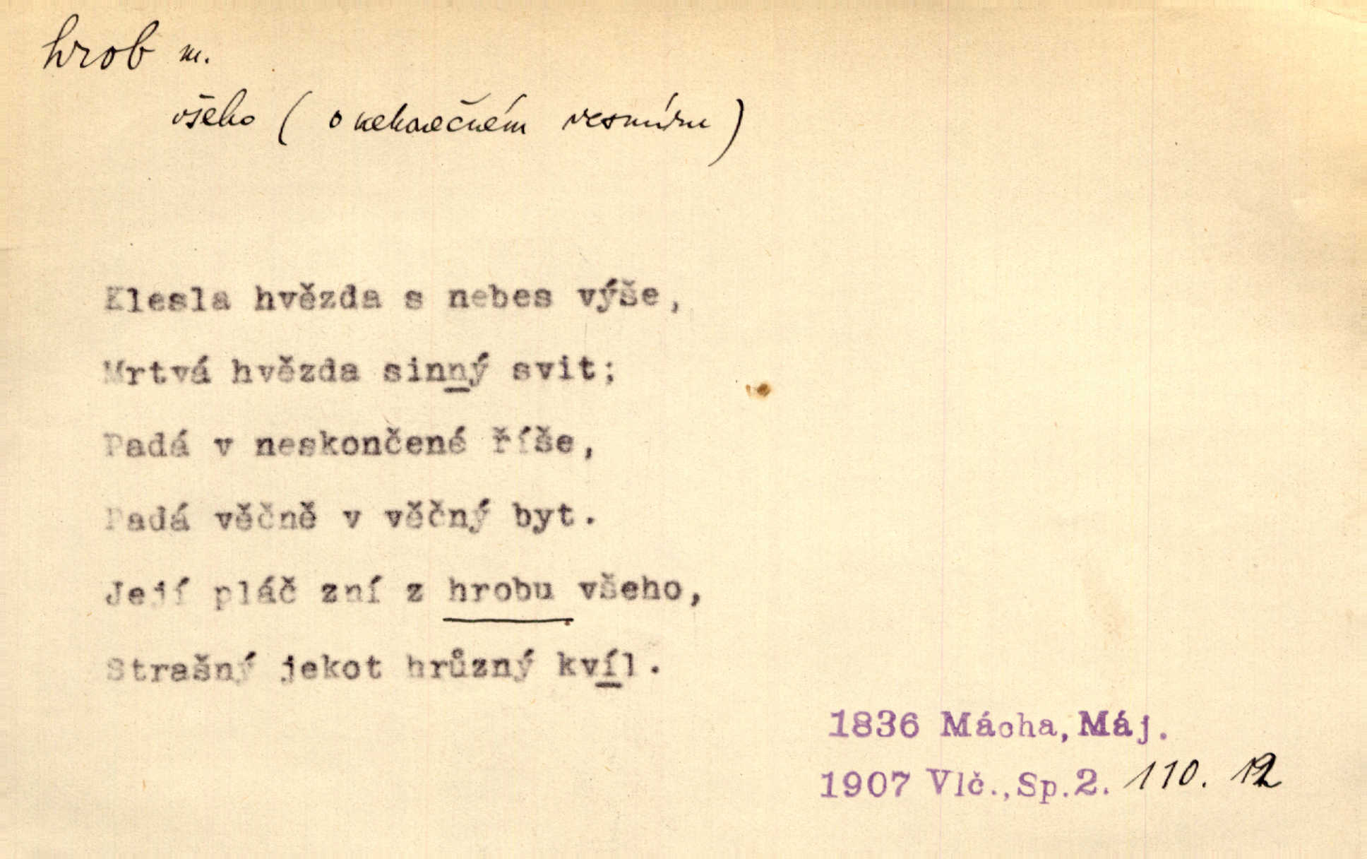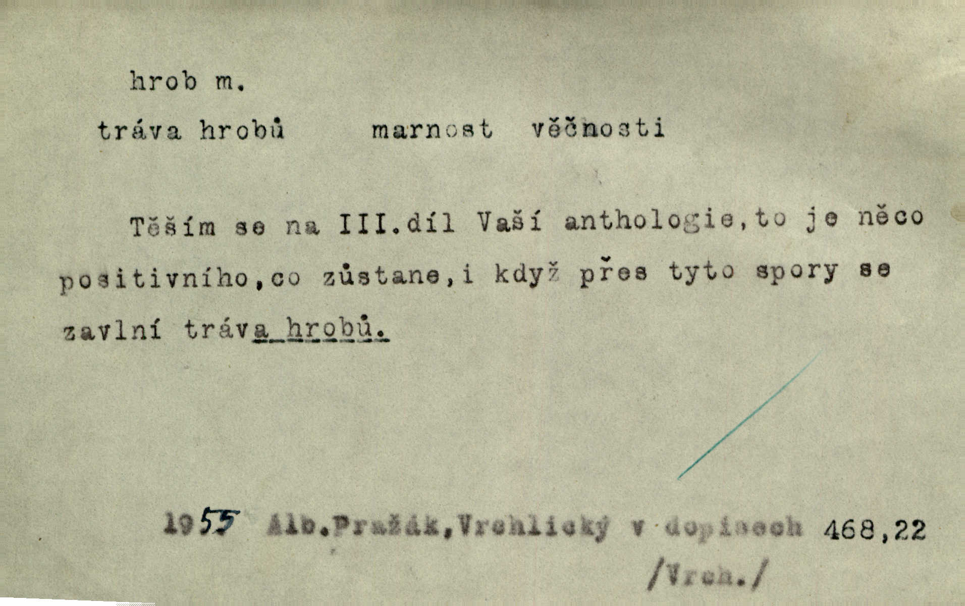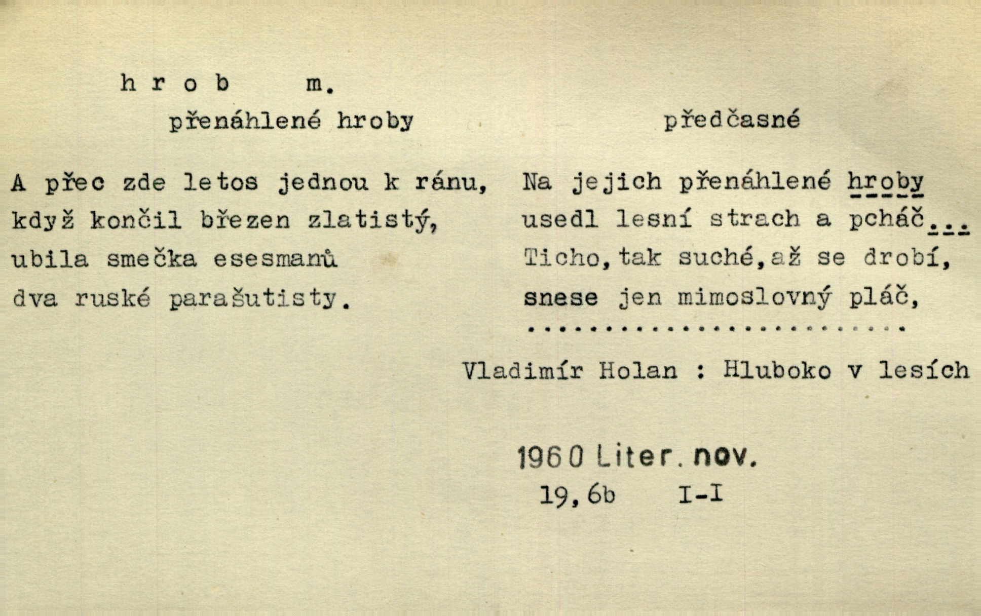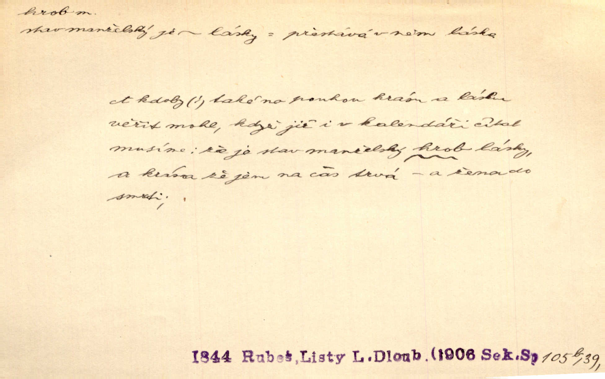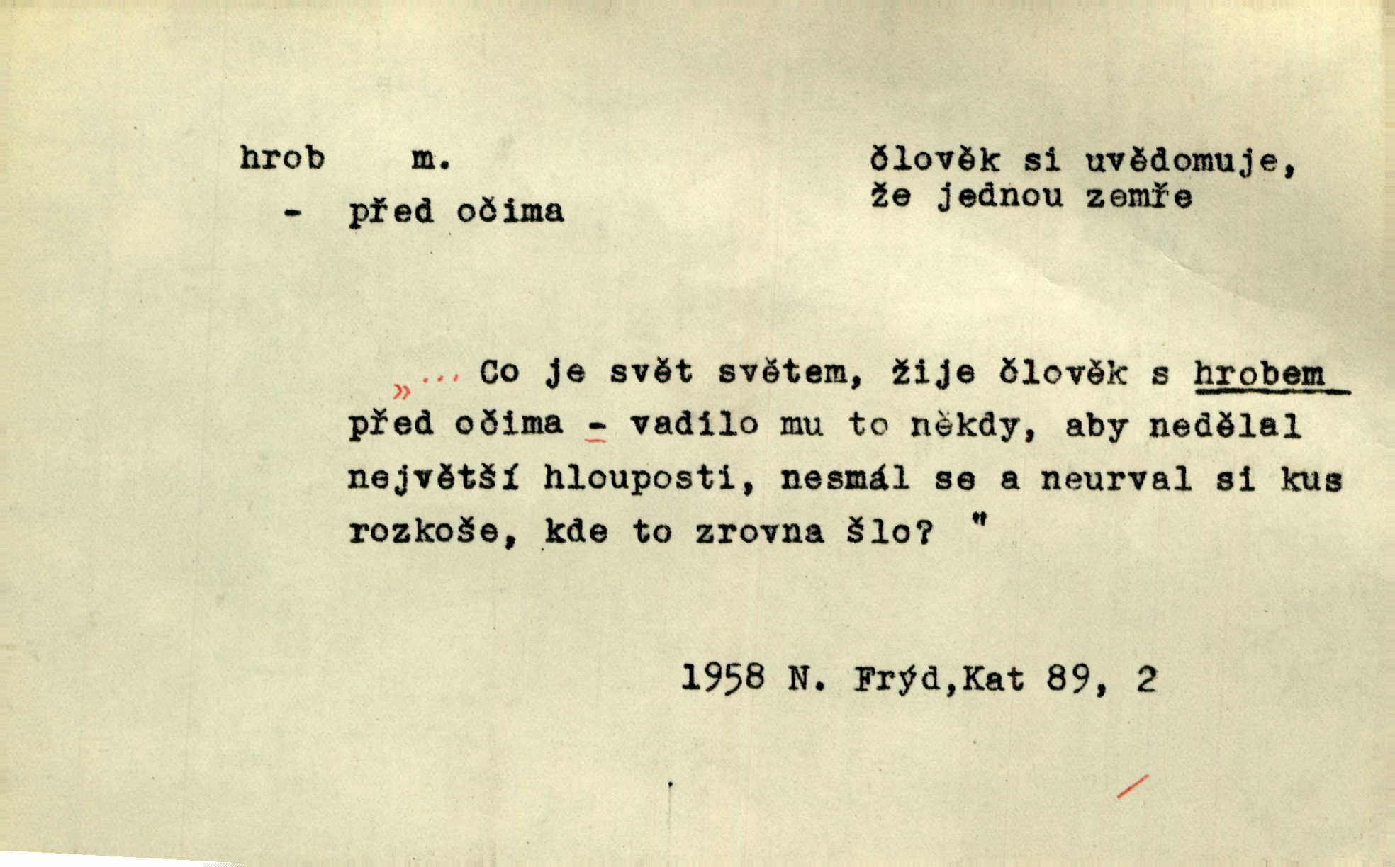 - hrob, -u m. místo, kam se pochovávají mrtví, obyč. jáma vykopaná v zemi; pahrbek z hlíny navršený na hrobě, rov; kamenná deska kryjící hrob; přen. smrt, záhuba, zánik. Zemřela matka a do hrobu dána. Erb. Dlouho-li to může trvat a budou i jí kopat hrob zemře. Rais. Lehotský chodíval se modlit na Jiříkův hrob otčenášek. Něm. A na těch hrobech leží plno květů. Mach. Ty žij a v prsou svých nos její hrob vzpomínku na zemřelou. Ner. Círk. boží hrob napodobení skalního hrobu Kristova (o velikonočních pobožnostech). Chrám božího hrobu v Jeruzalémě Kristova. Ner. Poutník od svatého hrobu vracející se z Jerusalema. Heyd. Obílený hrob co je hezké, mravné atd. jen vnějškem, na oko, ale ve skutečnosti špatné, zkažené, zcela jinaké. Jsme trpnou částí „morální fasády“, nalíčené tváře společnosti, která jako obílený hrob kryje v sobě hnilobu a neřád. Šal. Přirov. o hluboké tmě a tichu n. naprosté mlčenlivosti. Tma jako v hrobě, mráz v okna duje. Erb. Ve světnici bylo ticho jako v hrobě. Rais. Tichá noc kol a němá jako hrob. Wenz. Víš, že jsem jako hrob dovedu mlčeti, zachovati tajemství. Štol. Býti, ležeti v hrobě býti mrtev. Býti, státi na pokraji, kraji hrobu, u hrobu, jednou nohou v hrobě, nad hrobem, kloniti se, chýliti se do hrobu, k hrobu, dívati se do hrobu býti blízek smrti. Stařec nad hrobem — ubožák, sotva nohama pletl. Jir. Už do hrobu se chýlí příroda připravuje se k zimnímu spánku. Zey. Stará soustava absolutistická klesla r. 1848 v zasloužilý hrob vzala za své. I. Klicp. Do hrobu se dívám — se světem se loučím. Baar. Žena nešťastnice hrob si řekou hledá jde se utopit. Erb. Ten starý blázen přivede mne ještě do časného hrobu! Šmil. Hořem sklátíš [otce] do hrobu. Tyl. Horlivé jeho vystoupení ve Vídni uvrhlo jej v brzký hrob. Sab. Chceš svou matku do hrobu připravit? Štěp. Kopati hrob svému štěstí, jednotě národa atd. připravovati zkázu, ničiti. Ten by už rád viděl jemnostpána v hrobě, aby mohl dědit přeje si jeho smrti. Baar. Smutná a bledá, jakoby vstala z hrobu. Erb. V nitru mém zas staré dumy z hrobu vstávaly. Zey. Celá minulost jakoby rázem z hrobu zapomenutí povstala. Baar. Hrob mě nechtěl nemohl jsem zemříti. Zey. Lid. dívati se za někým do hrobu přežíti někoho. Kosm. Chalupu ani pole do robu si nevemete vaší smrtí se skončí vaše vlastnictví. Nov. Čisté ruce vzal do hrobu, ale bídu tady nechal zemřel jako poctivec. Šim. Byl jeden z těch spravedlivých, který nebéře žádnou vinu za hrob. Podl. Ach což ta láska mateřská přes časy, přes hrob hoří… nekončí smrtí. Ner. Od kolébky do hrobu od narození až do smrti, po celý život. Věrný až do hrobu. Se svým otcem jste se soudil až po jeho hrob smrt. Hál. Jestli se Pánu Bohu zráčí vzít ho k sobě, já mu posloužím do hrobu až k smrti. Rais. Jen v činech krásna, v činech dobra můž’ člověk žít i za hrobem. Heyd. Skládáme na ourok, aby nás zrovna před hrobem ještě ze stavení nevyhnali. Rais. Nenávist až za hrob. Přen. Různost míněni teprve po svatbě vyšla na světlo, a byla hrobem jejich rodinného míru. Jir. [Trhan] zabručí, když se mu přiděluje práce, která se mu po trhanovském výrazu zdá být „hrobem“ ničivě namáhavou. Ner. Archeol. kostrové, žárové hroby.