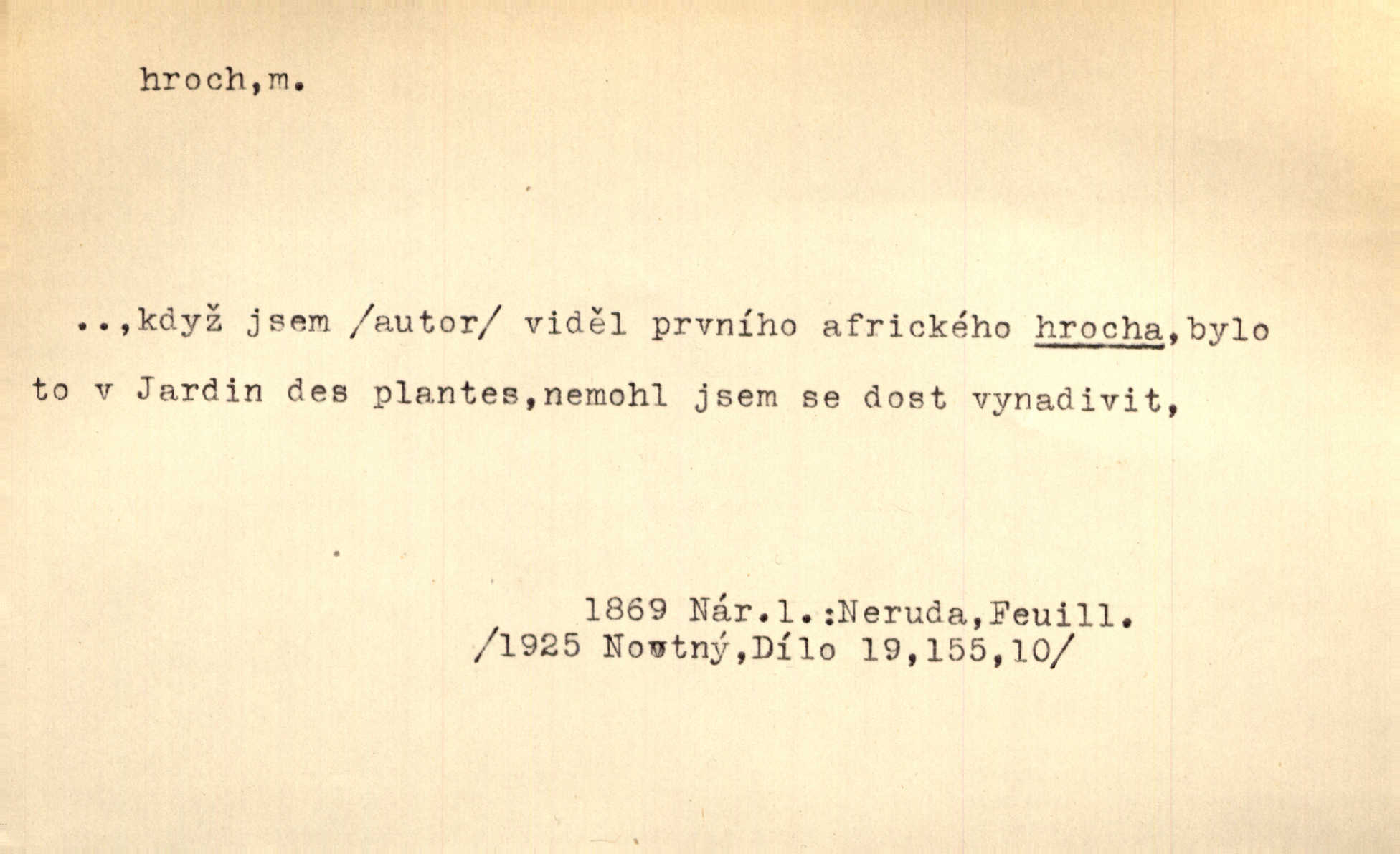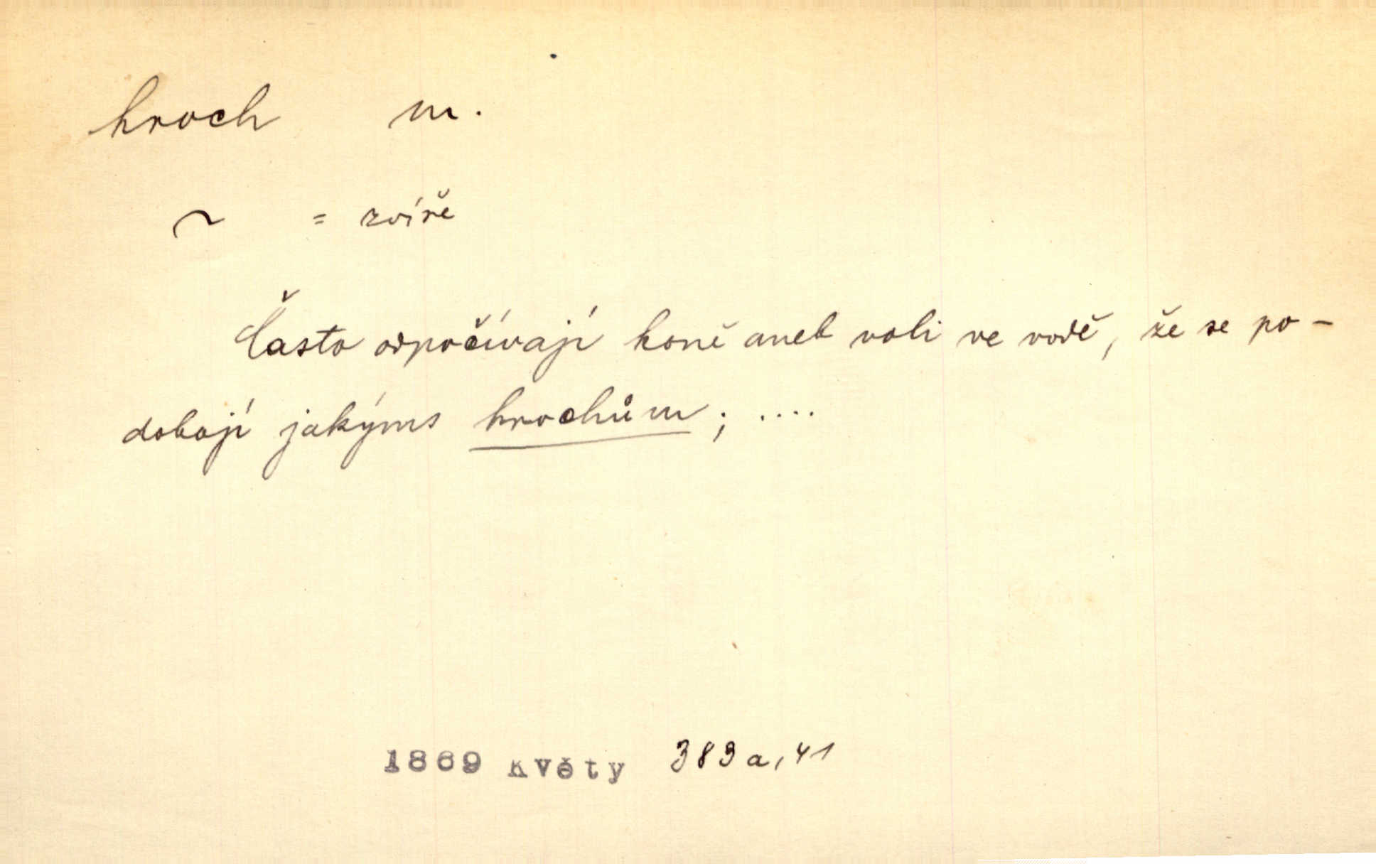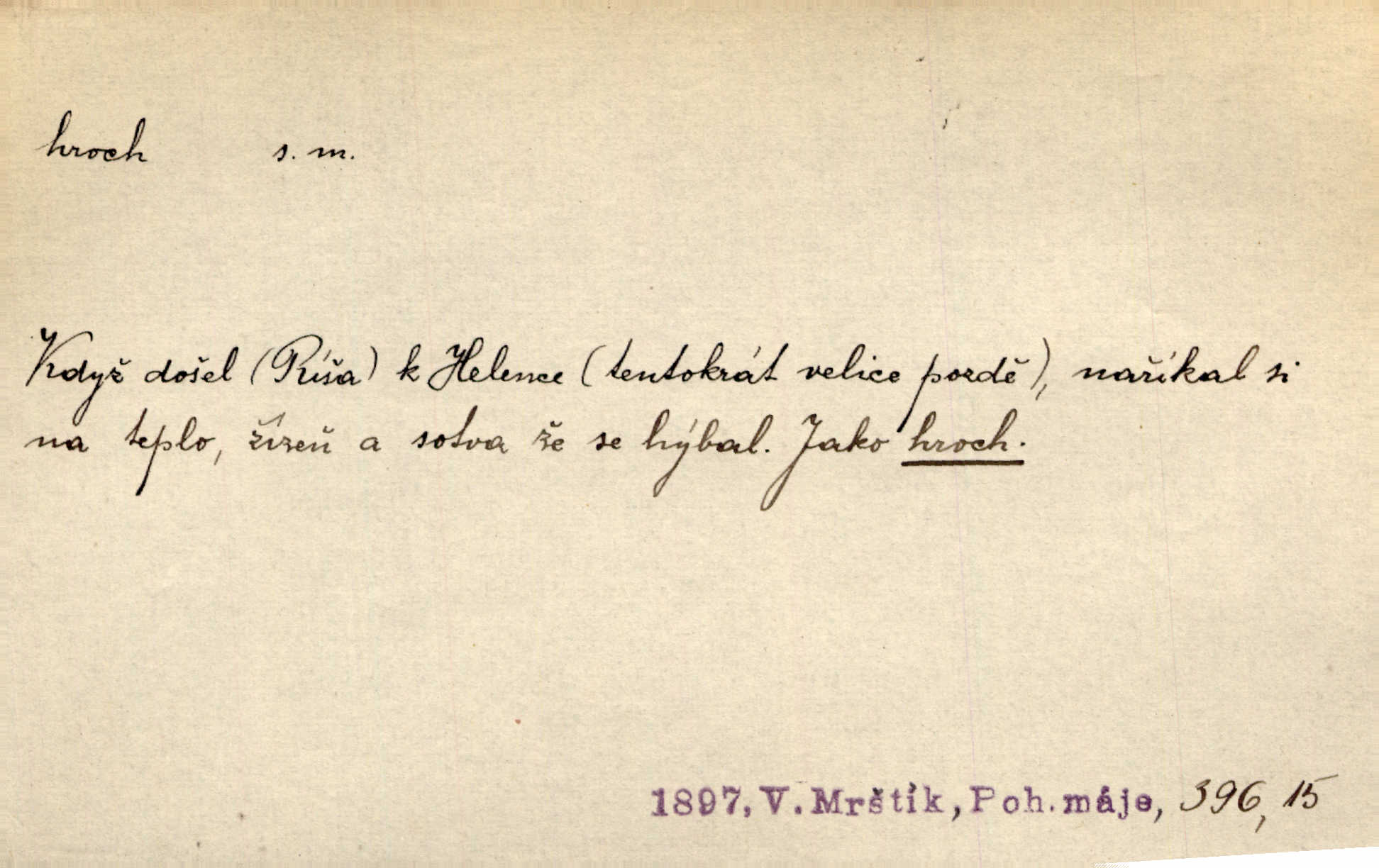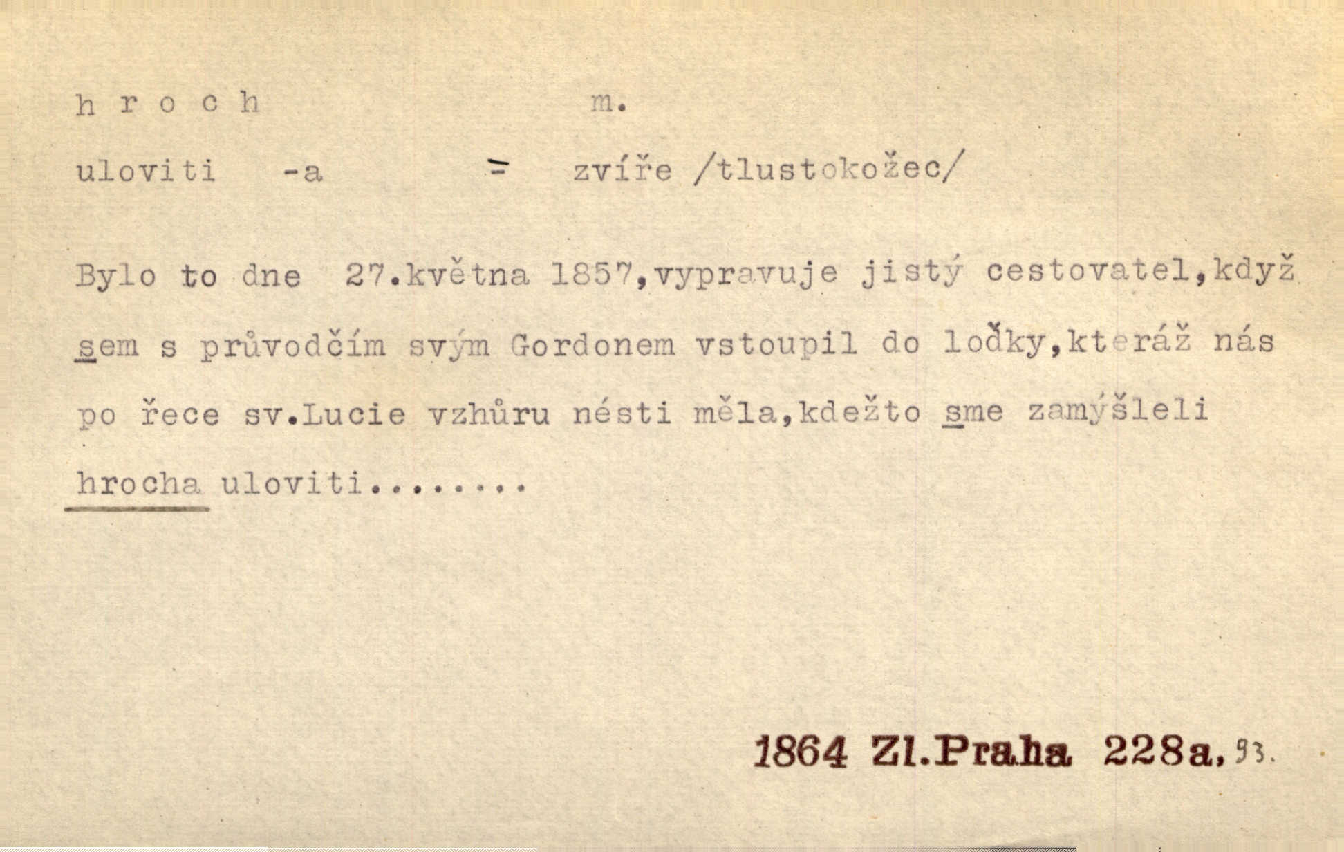 - hroch, -a m. středoafrický sudokopytník (Hippopotamus). Supí vedrem jako hroch. Herrm. Naříkal si na teplo, žízeň a sotva že se hýbal jako hroch. V. Mrš. D jm. psa. Čeští psi mají jména: hroch, hrom, hromizvěř. Květy.