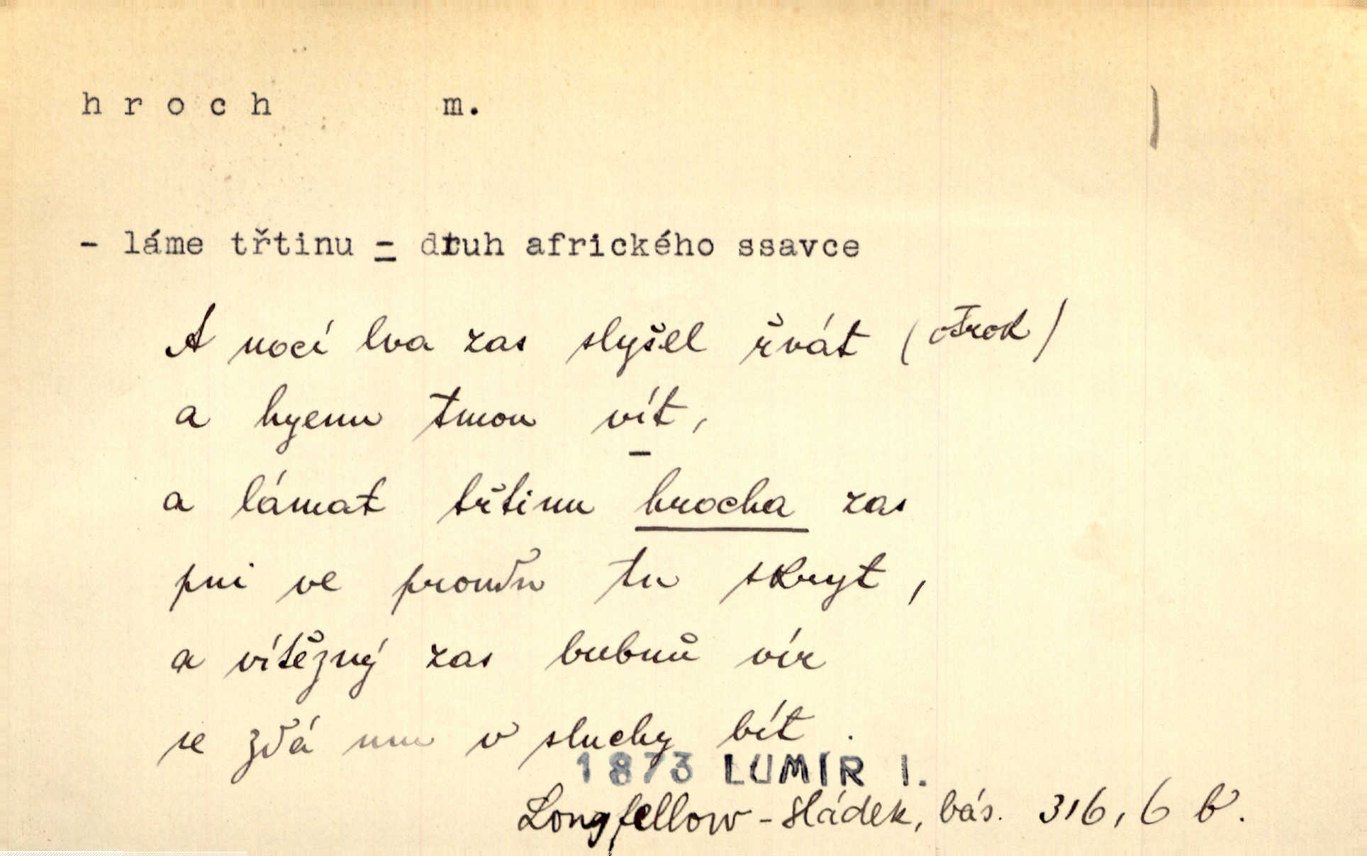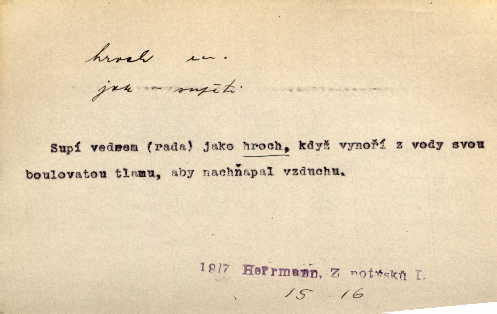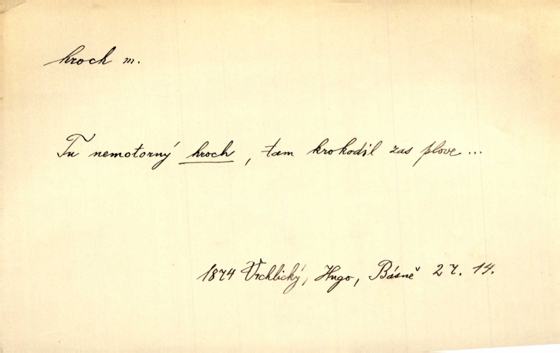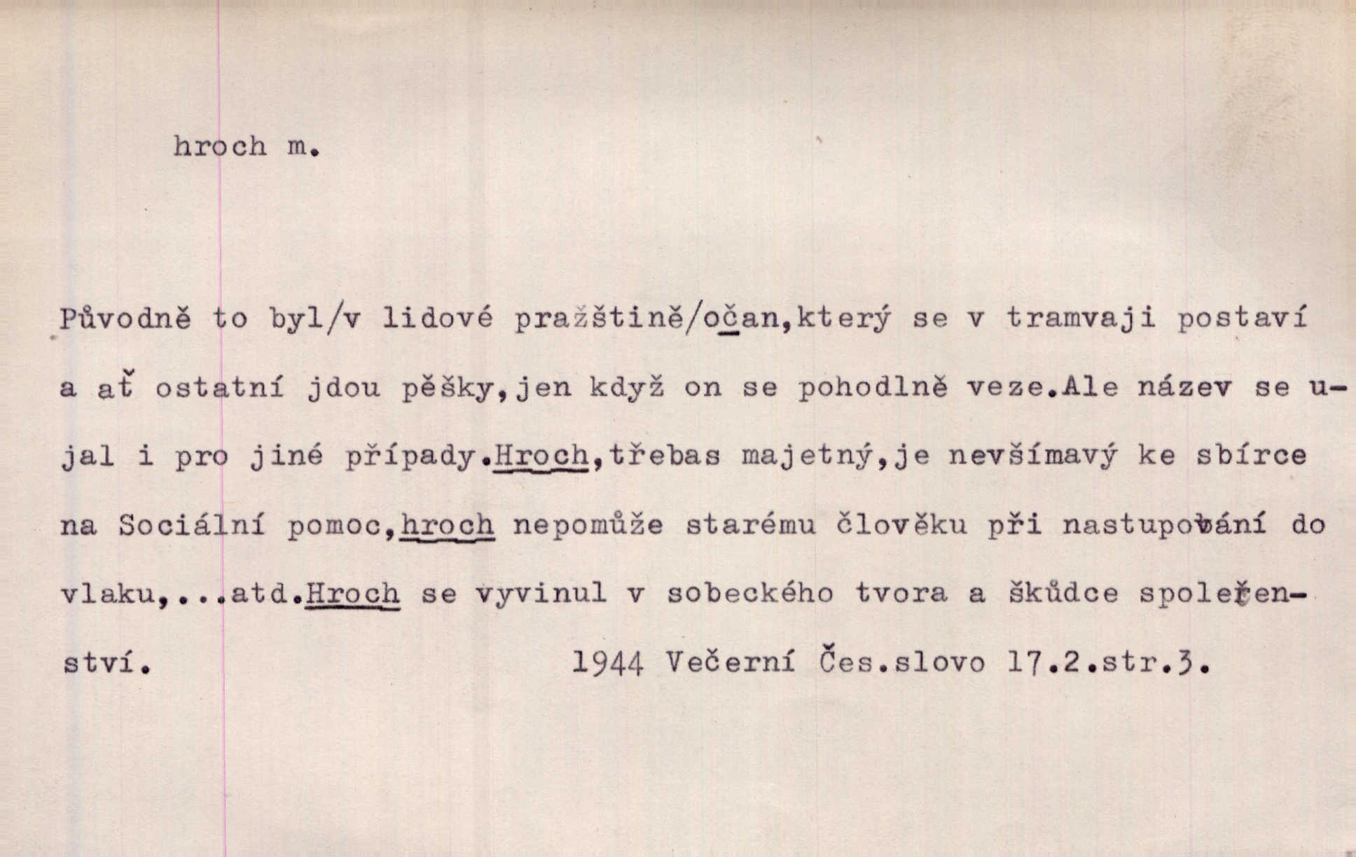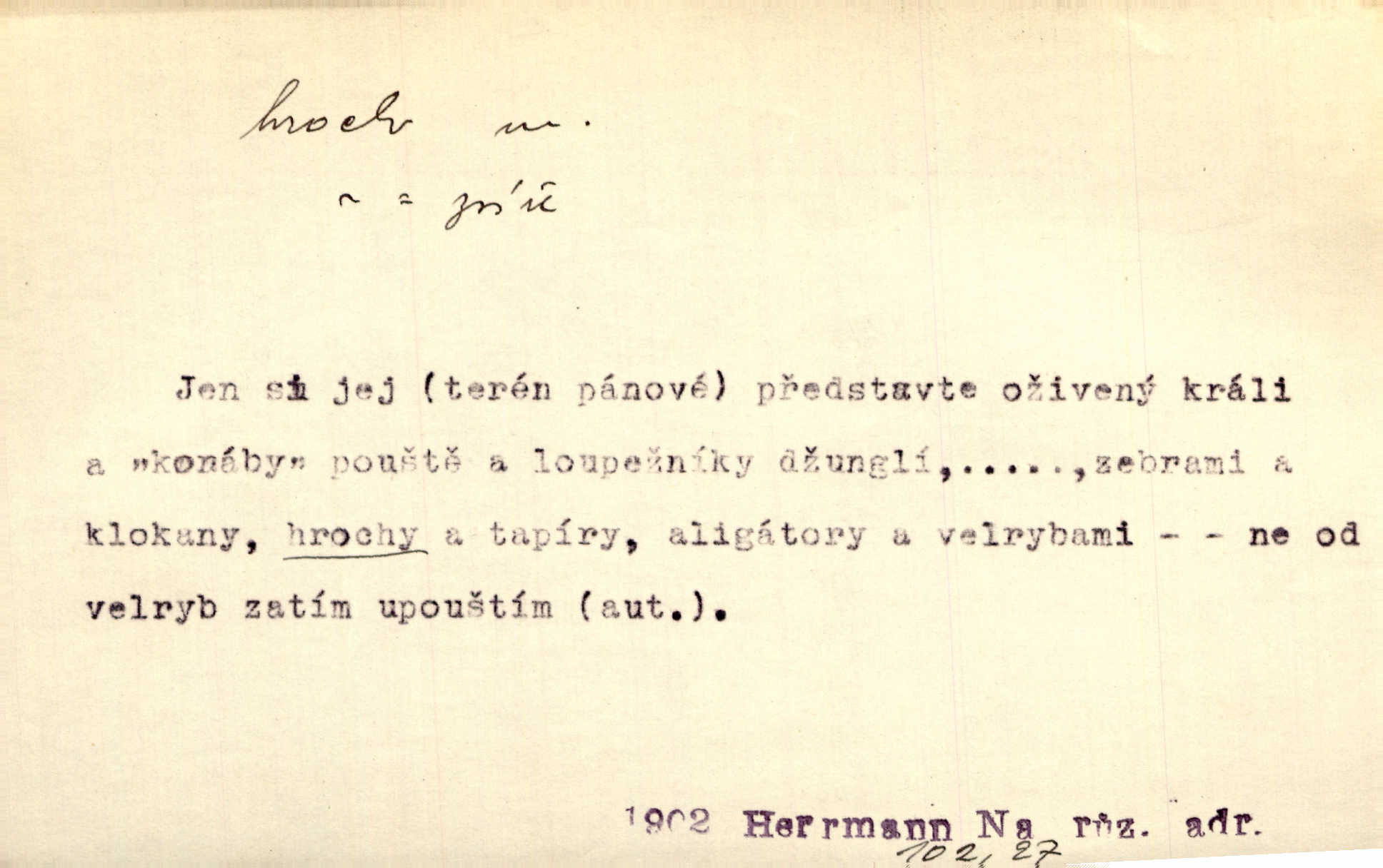 - hroch, -a m. středoafrický sudokopytník (Hippopotamus). Supí vedrem jako hroch. Herrm. Naříkal si na teplo, žízeň a sotva že se hýbal jako hroch. V. Mrš. D jm. psa. Čeští psi mají jména: hroch, hrom, hromizvěř. Květy.