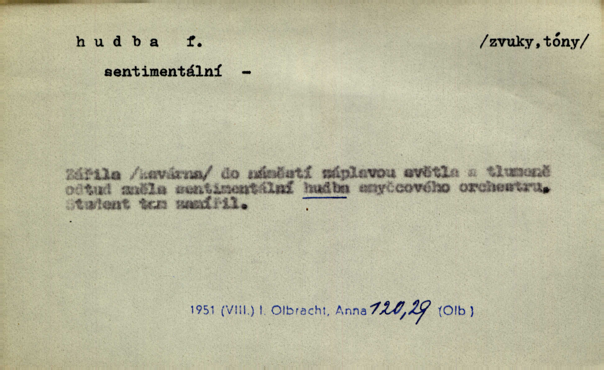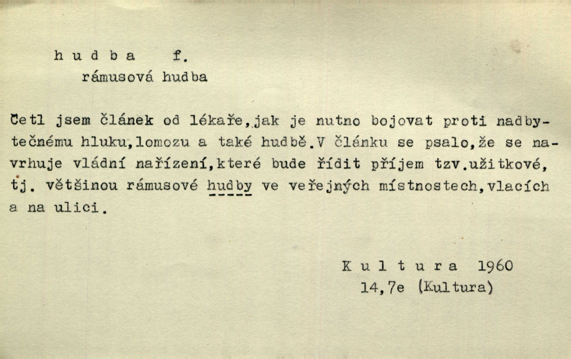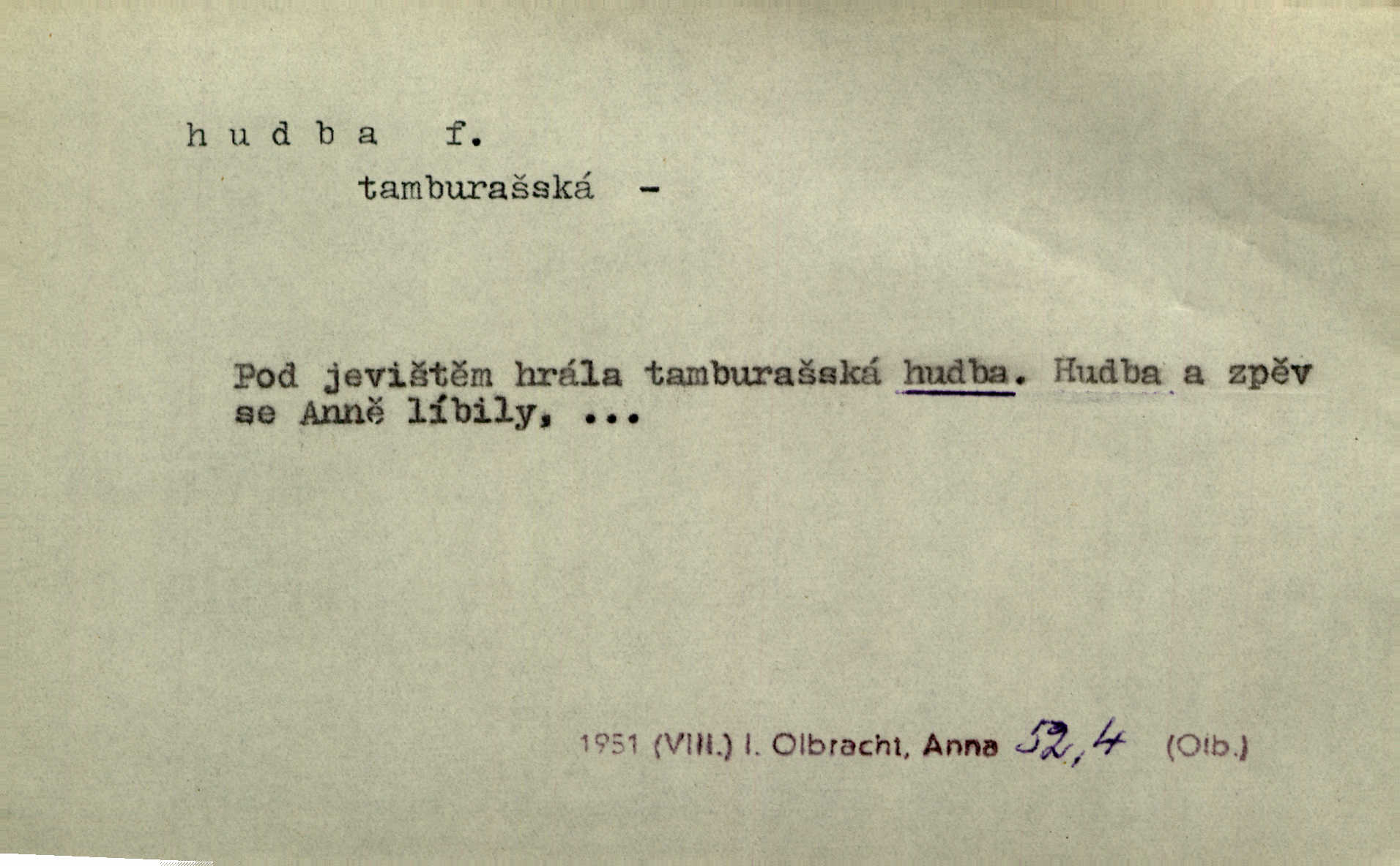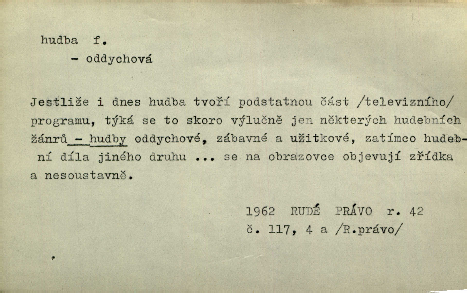 - hudba, -y f. umění tvořící svá díla z tónů. Hudba lidová, umělá, vážná, veselá. Hudba církevní, světská. Hudba dramatická, koncertní, komorní; instrumentální, vokální. Hudba absolutní, programní. Hudba jednohlasá, vícehlasá; homofonní, polyfonní. Přen. Hudba budoucnosti něco krásného, co leží v daleké budoucnosti. D hra na hudební nástroj. V krčmě zazní skočná hudba. Bezr. Přen. Po pekelné hudbě šrapnelů a strojních pušek v zákopech bylo tak nezvyklé ticho. Leg. D hudební skladba, doprovod. Následuje 8 písní od Crhy, Vlčka a j. s hudbou od Frimla, Pivody. Ner. D Arch. hudebniny. Beethoven si stěžuje, že při vyhledávání hudby ve Vídni setkal se s jakýmsi odporem u vrchního hofmistra. Smet. D hudebnost, melodičnost, libozvuk. Pro hudbu slova nemá [básník] valného smyslu. Kar. Kochal se hudbou jejího hlasu. Zey. D sbor hudebníků, kapela. Za jezdci stála hudba náchodská. Jir.