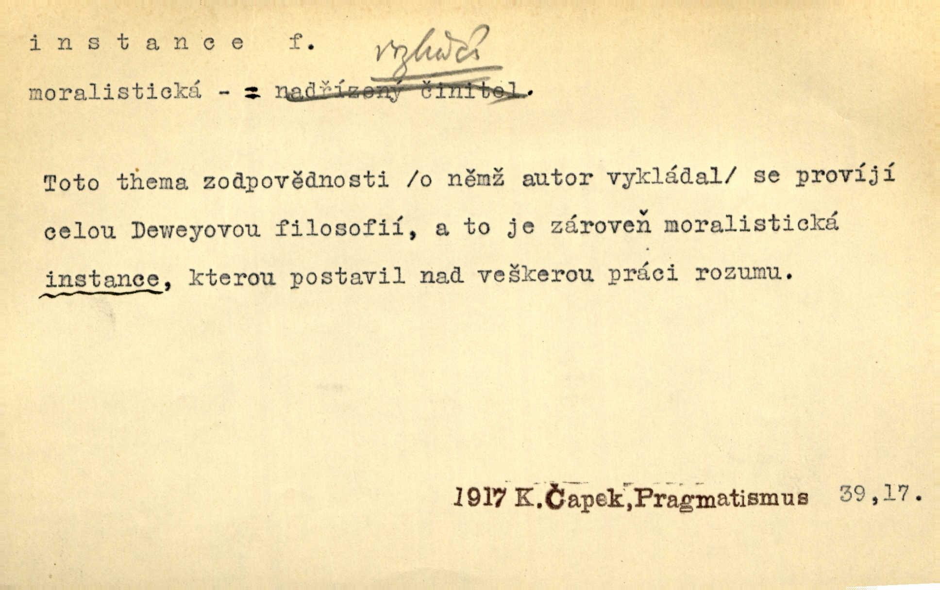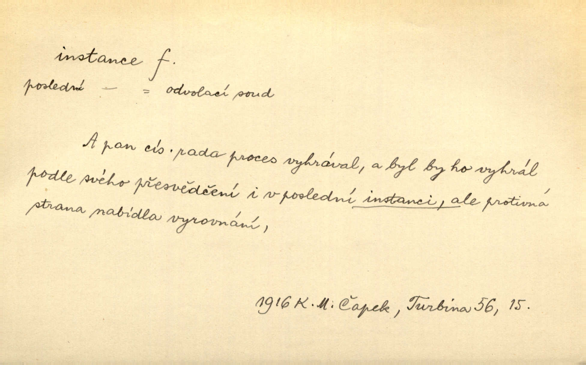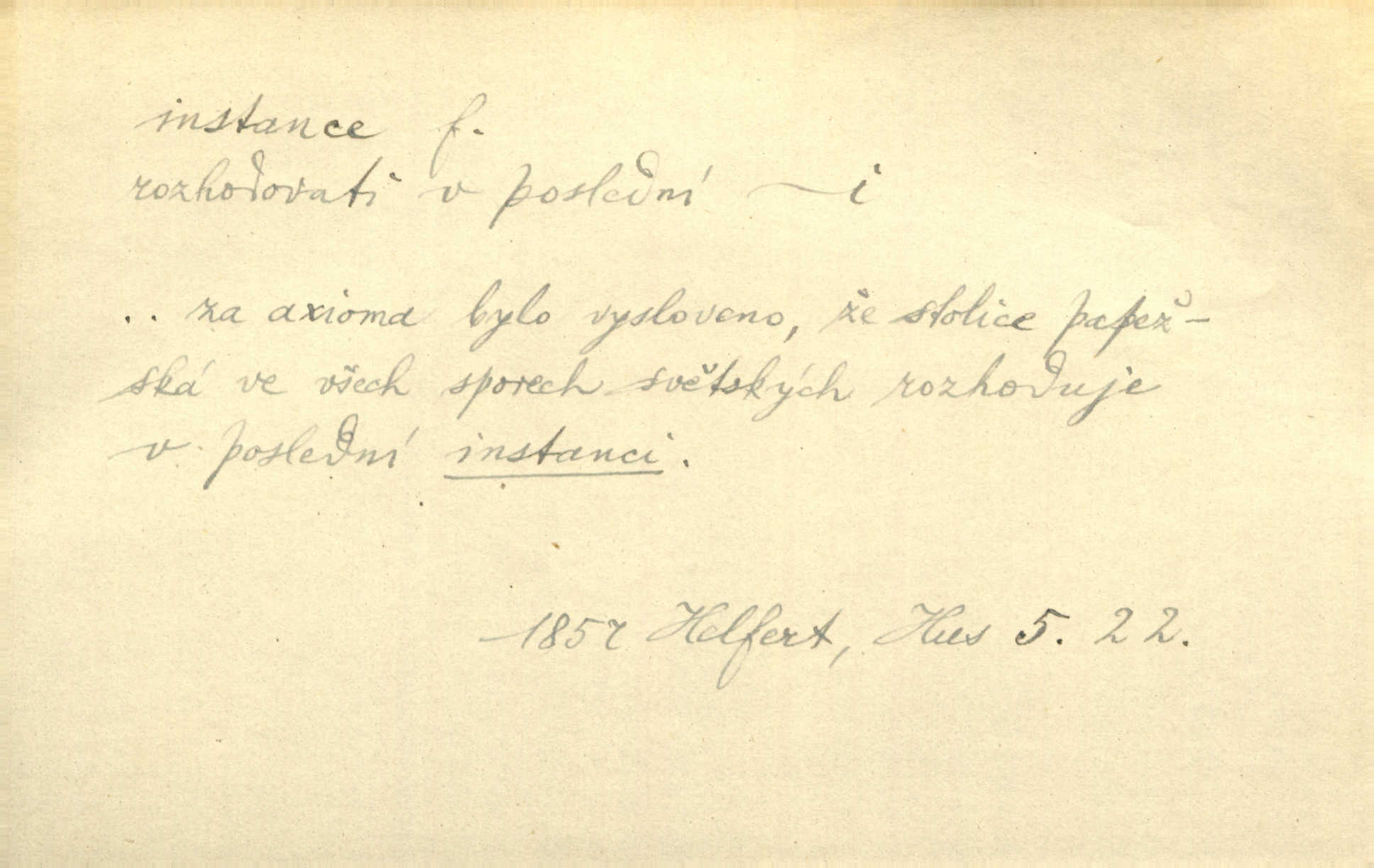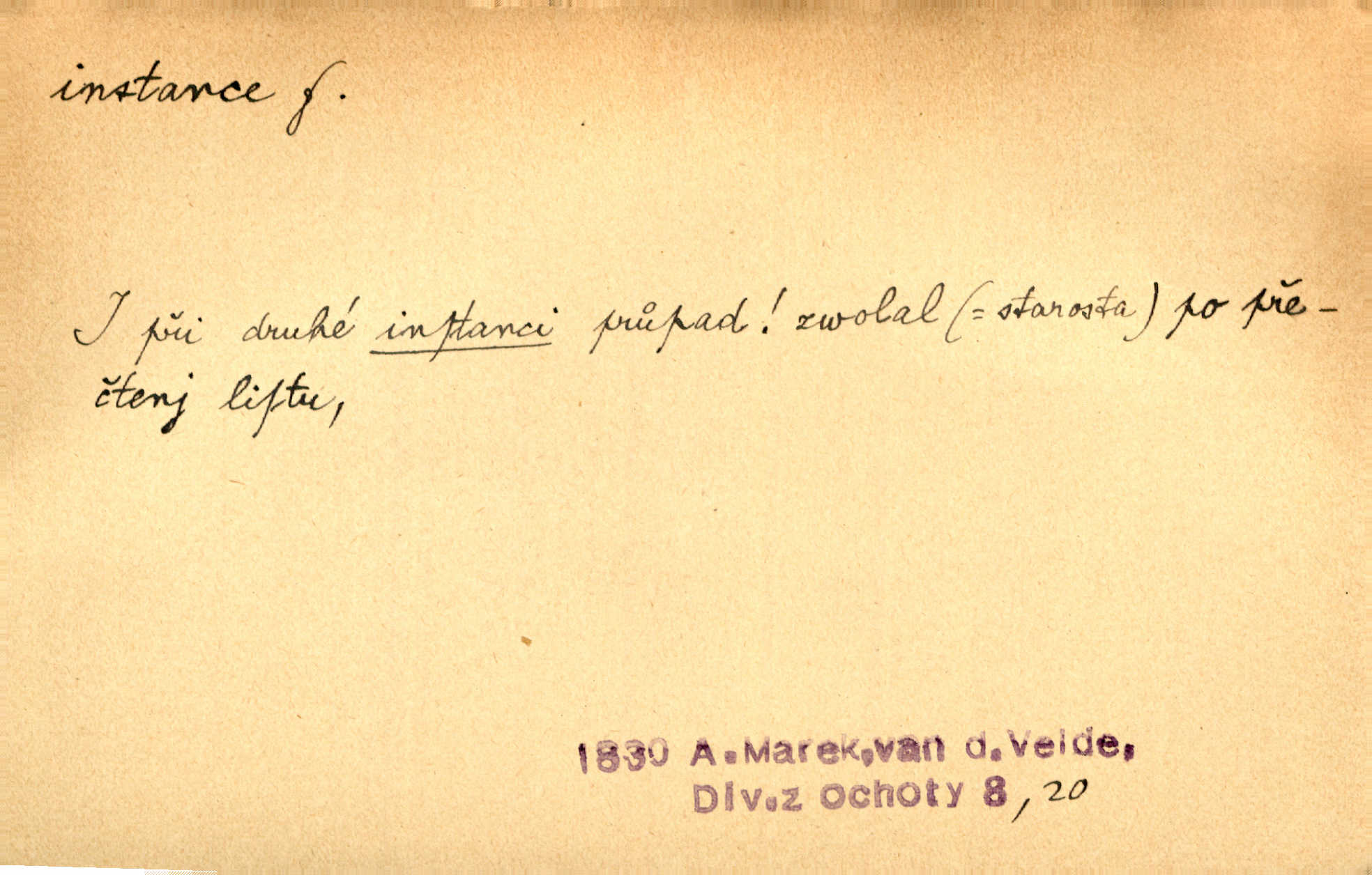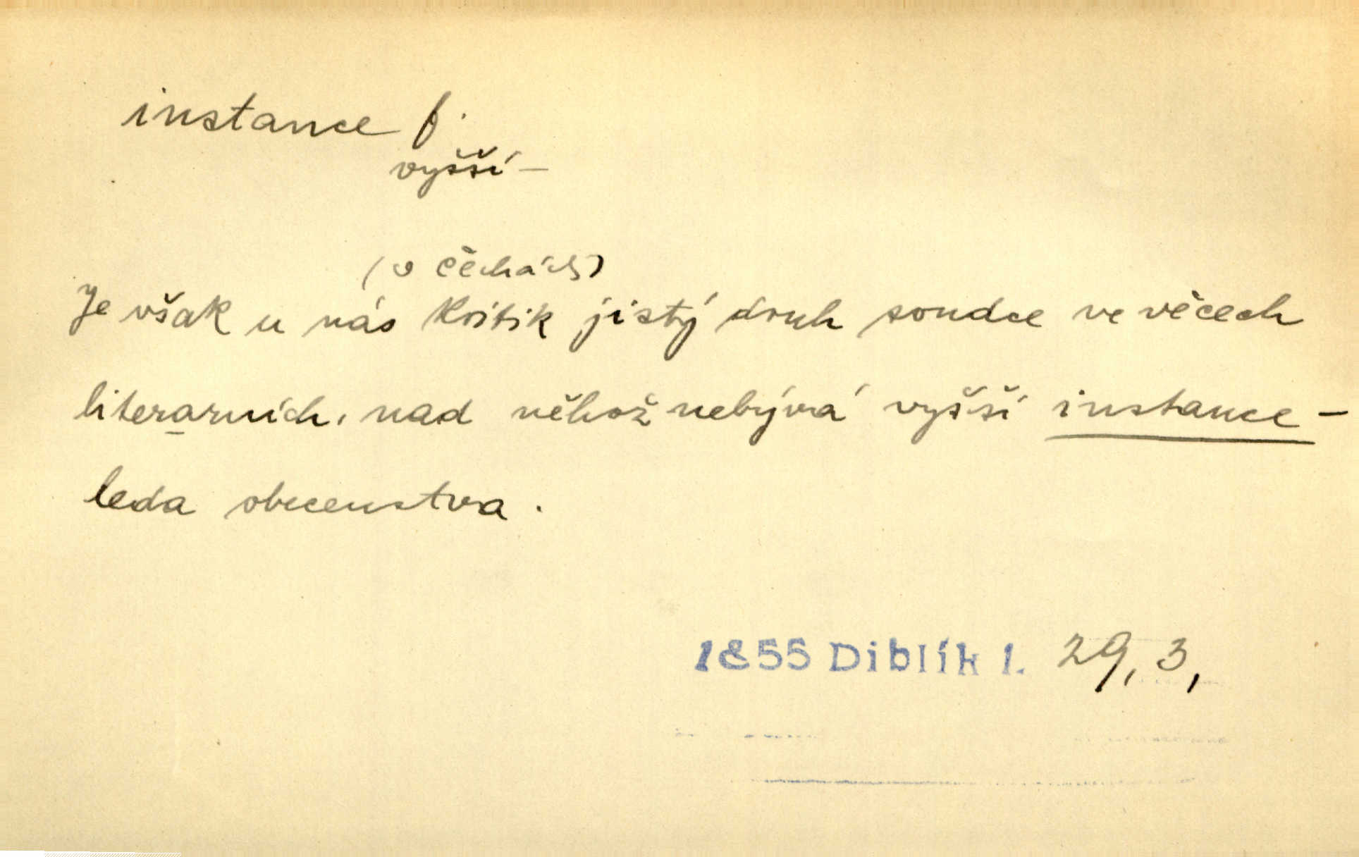 - instance, -e f. práv. stolice, úřad jistého stupně. První až třetí soudní instance. Vyhrál ve všech instancích. Československé státní a jiné veřejné úřady všech instancí (tedy i úřady centrální) korespondují se zastupitelskými úřady Československé republiky v cizině přímo a naopak. Předp. zahr. min. D příslušný úřad. Pro spory zaměstnanců se zaměstnavateli jsou instancí soudy pracovní. D rozhodující činitel, autorita. Ale snad přece jest instance jakás, ústav, těleso, kde se dbá správnosti lazykové. Herrm. Jevová skutečnost a její konformita jest poslední rozhodčí instance vědecká. Šal. Nesl jsem práci k tehdejší nejvyšší instanci literární, k Hálkovi. Čech.