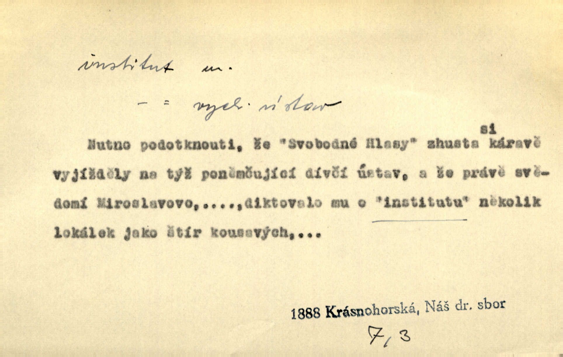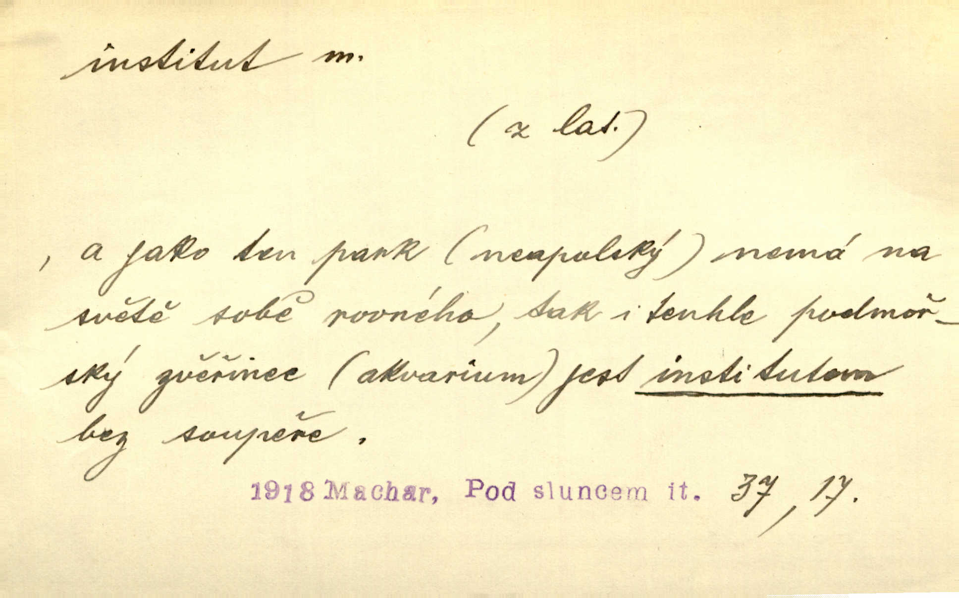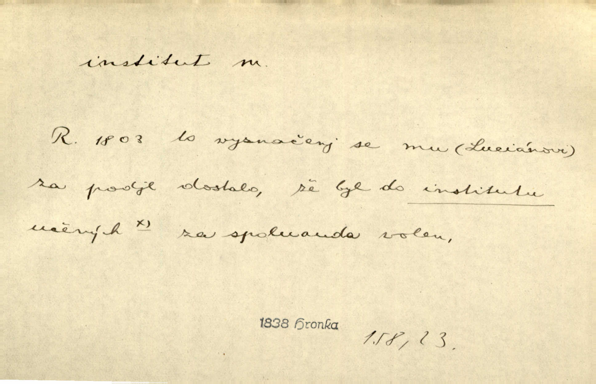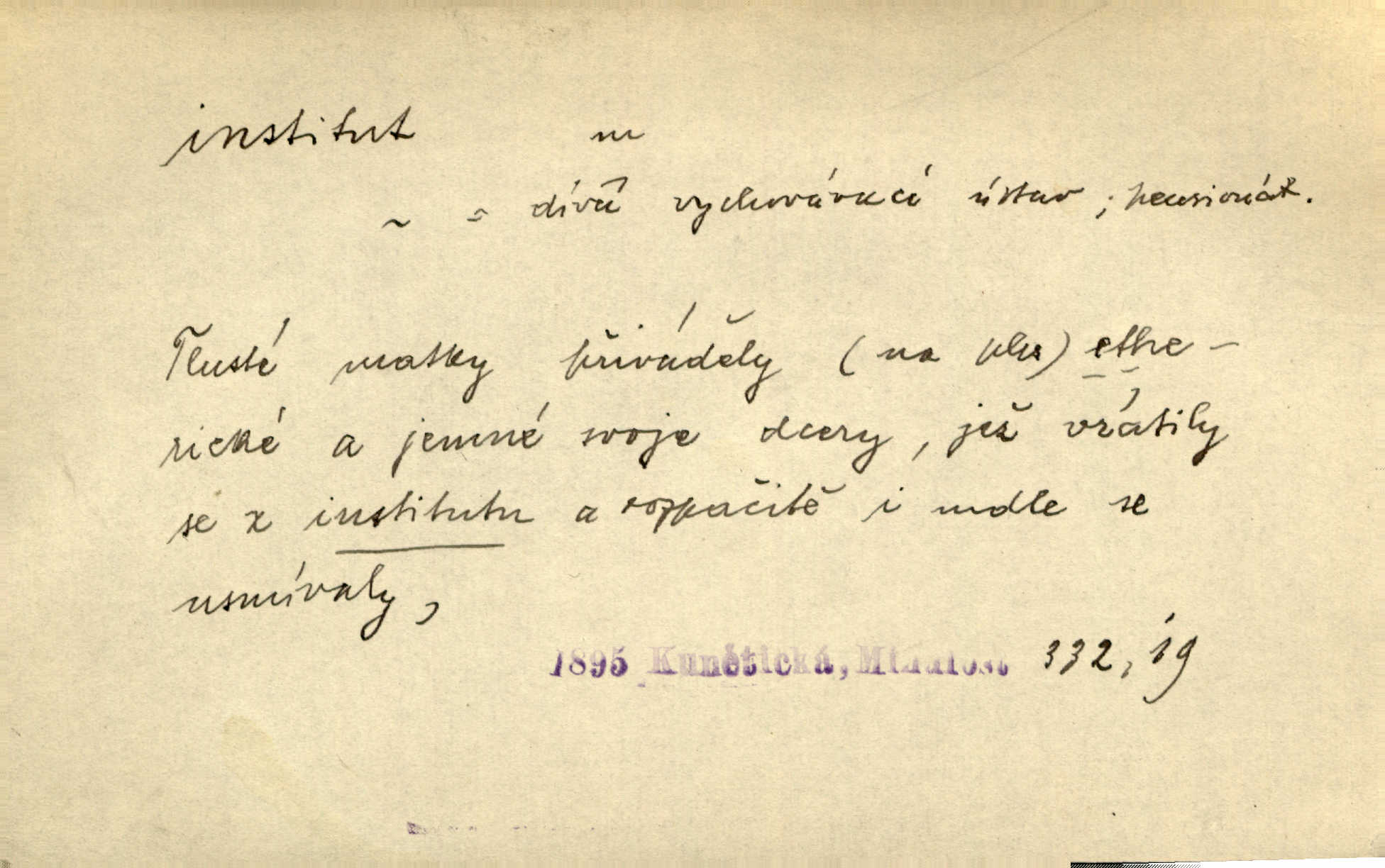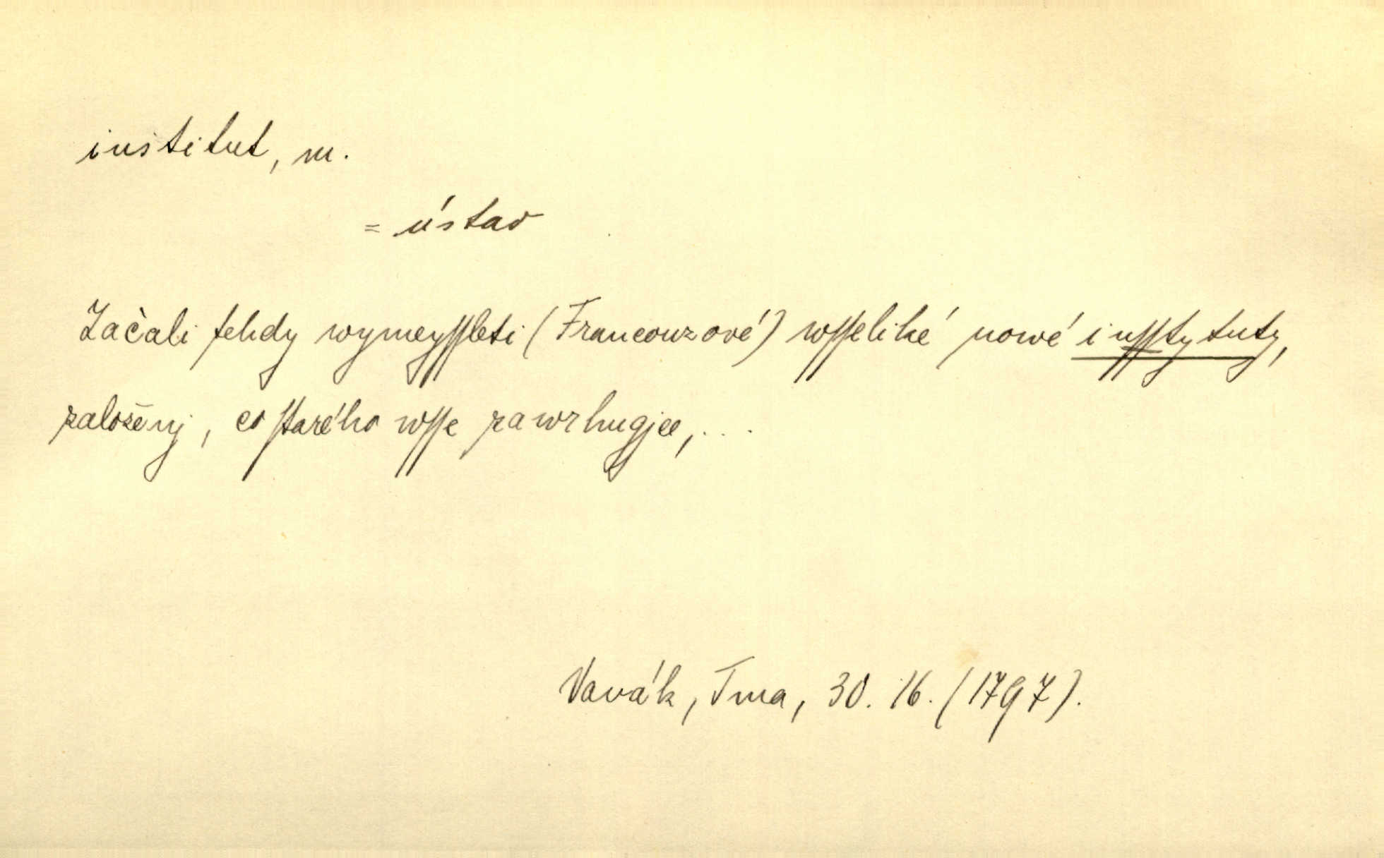 - institut, -u m. ústav, vychovávací a vzdělávací ústav pro dívky (pensionát). Některé německé instituty, pensiony, kláštery českými žáky a žačkami oplývají. Rais. Dcery vrátily se z institutu a [na plese] rozpačitě i mdle se usmívaly. Kun. D ústav vědecký. Byly smluveny už tehdy přípravy k Slovanskému institutu v Paříži. Beneš. V činnost institutu [Institut de France] skládány slibné naděje. Drt. D Práv. souhrn ustanovení vztahujících se k některému oboru právnímu. [Rossin] rozeznává právo schvalovací přesně od práva dozoru jako institut samostatný. Havel.