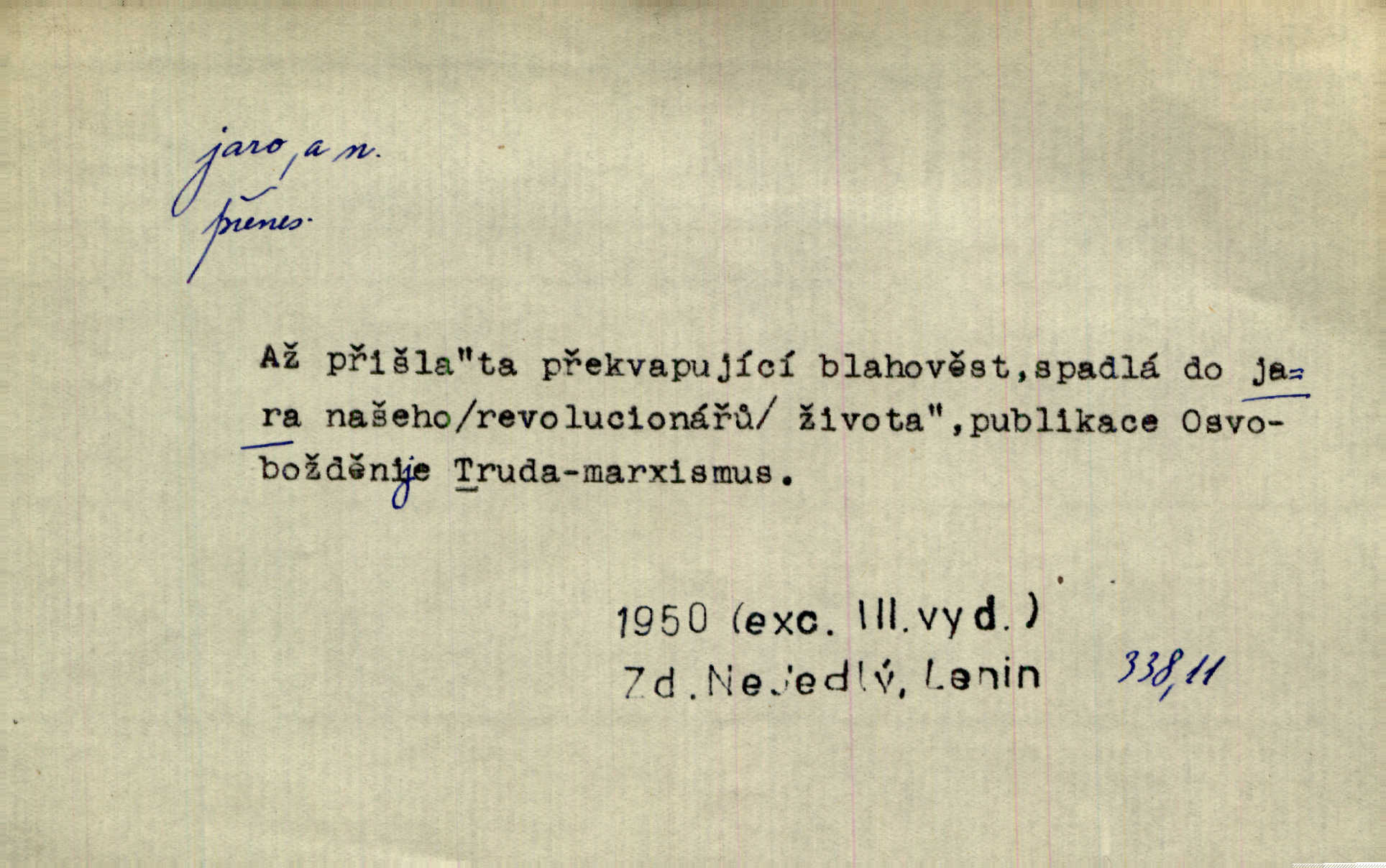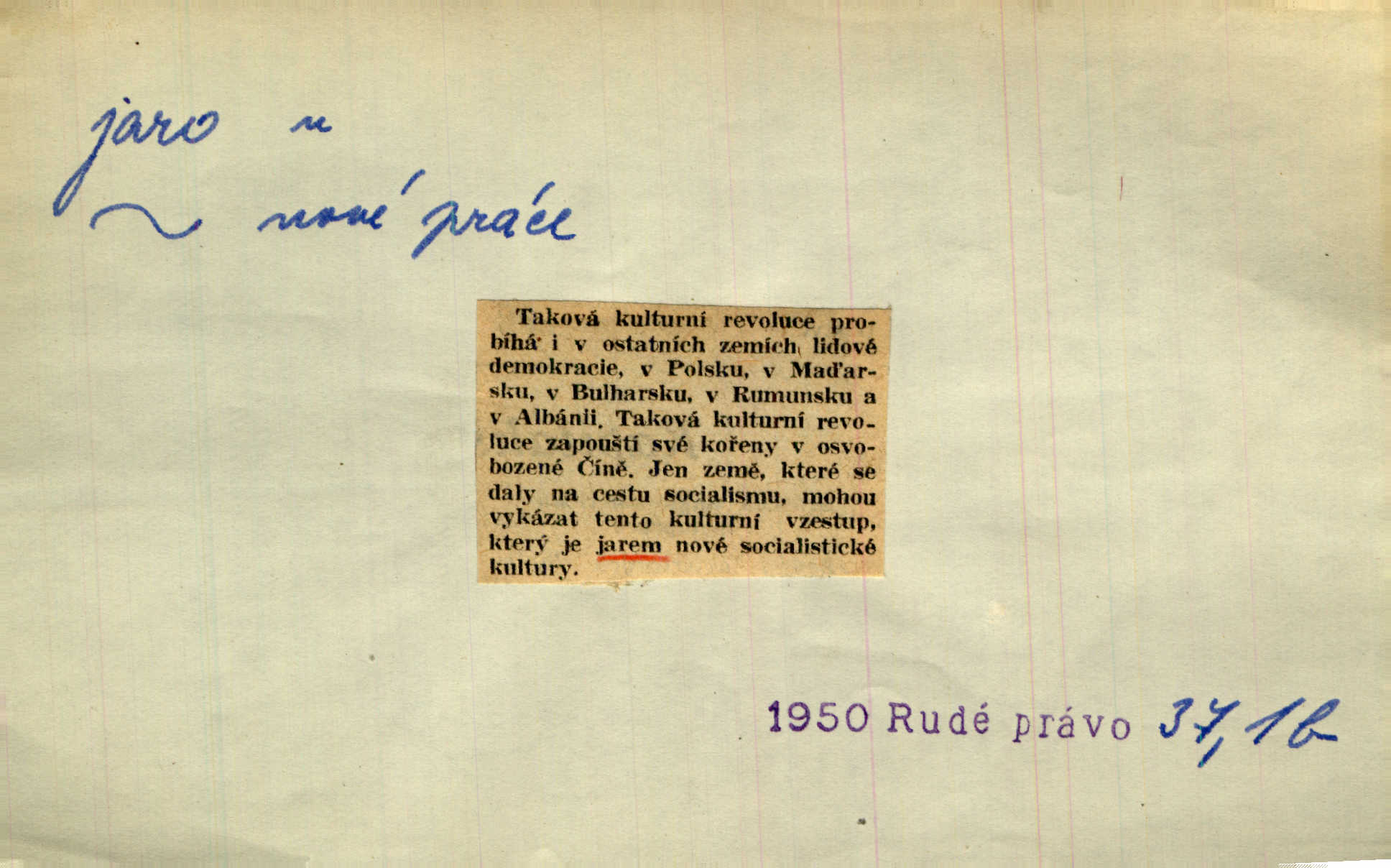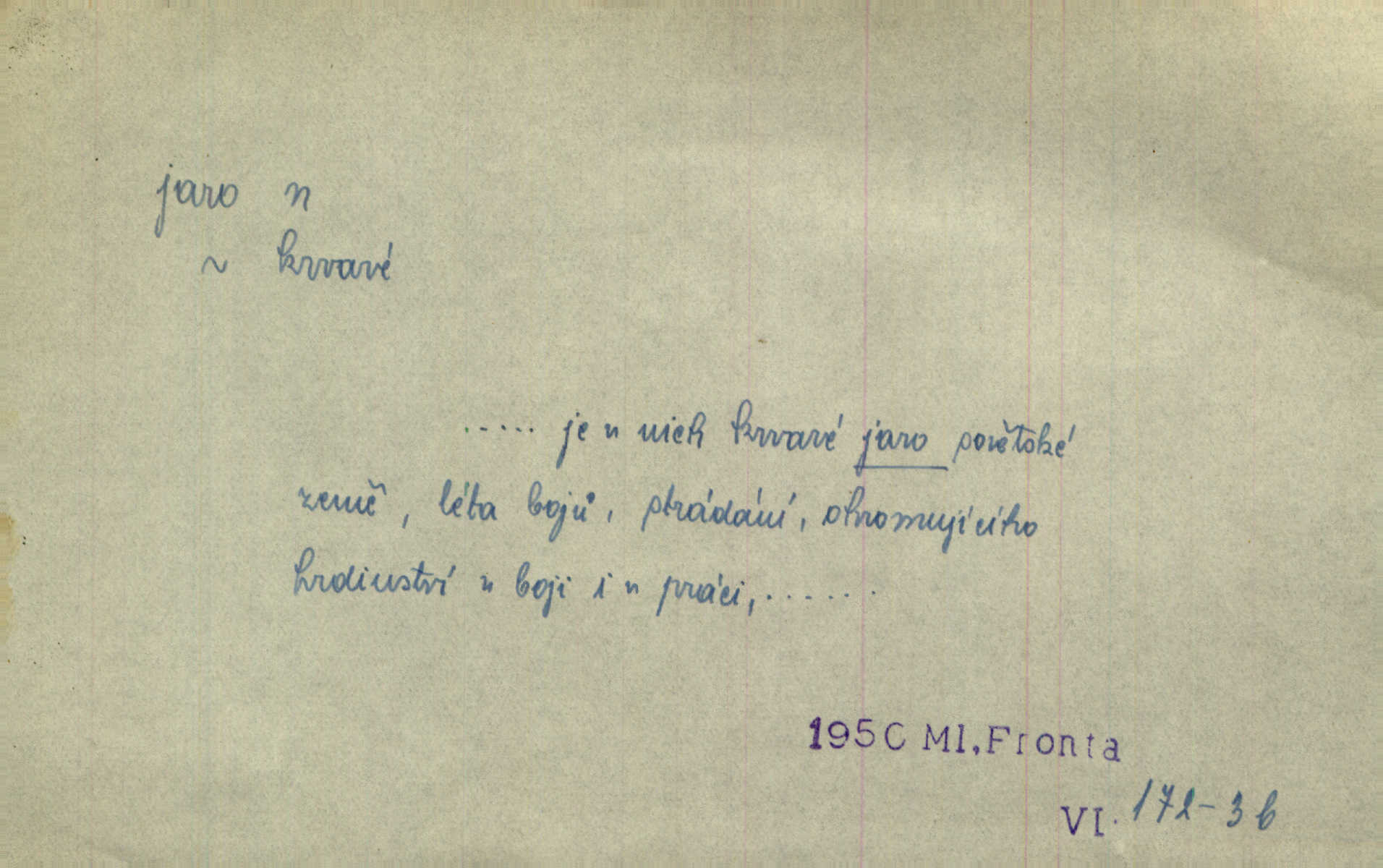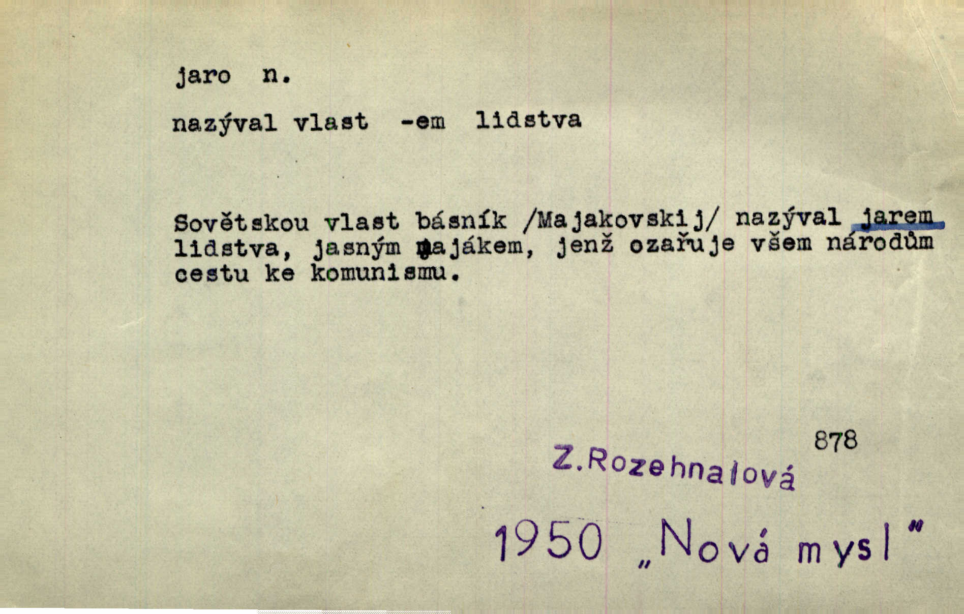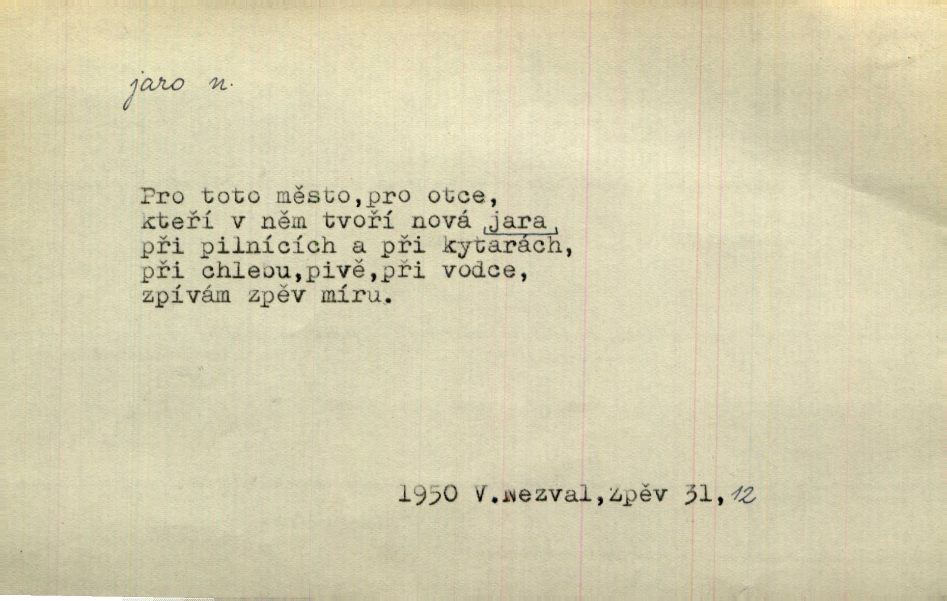 - jaro, -a n. část kalendářního roku od 21. března do 21. června. Jaro se otvíralo — práce volala hospodáře do polí. Baar. Na jaře, z jara, k jaru atd. Jedna vlaštovka jara nedělá z jednoho případu není radno soudit. Přísl. Krajina na Bretonově plátně jak v jeho verších směje se jarem. Vrch. Přen. Bylo mu, jako by jaro v sobě cítil měl jasnou náladu. Zey. V očích spanilé hospodyňky zrcadlilo se věčné jaro radosti a lásky. Šmil. Teď v srdci pusto — tenkrát jaro lásky. Hál. Do jara mých illusí a fantasií zavál náhle mrazivý dech. Šub. Jaro bujných nadějí v bujném srdci. Svět. Z nového myšlenkového jara i nový skutečný život se vyvine. Sab. Národ, dokud vůbec žije, je schopen více jar. Ner. To nové skvělé jaro mého národa. Podl. Jaro lidstva. Vrch. Jaro druhého manželství. Mrš. Krásné mládí, jaro života. Zey. D mládí. Šťastný byl věk jata mého. Tyl. Dívka, obestřená všemi půvaby a kouzly ženského jara. Herrm. Uvadlá kráska ve všech koutech kryje uvadlé květy, památky svých jar mladých let. Mach. D rok života. Dámy mezi šestnáctým a dvacátým jarem. Ner. Ačkoli zažila na třicet jar, přece posud byla svěží. Svob. Již je tomu hezká řada jar. Mach.