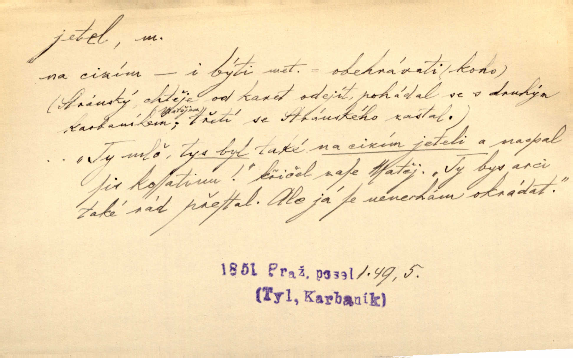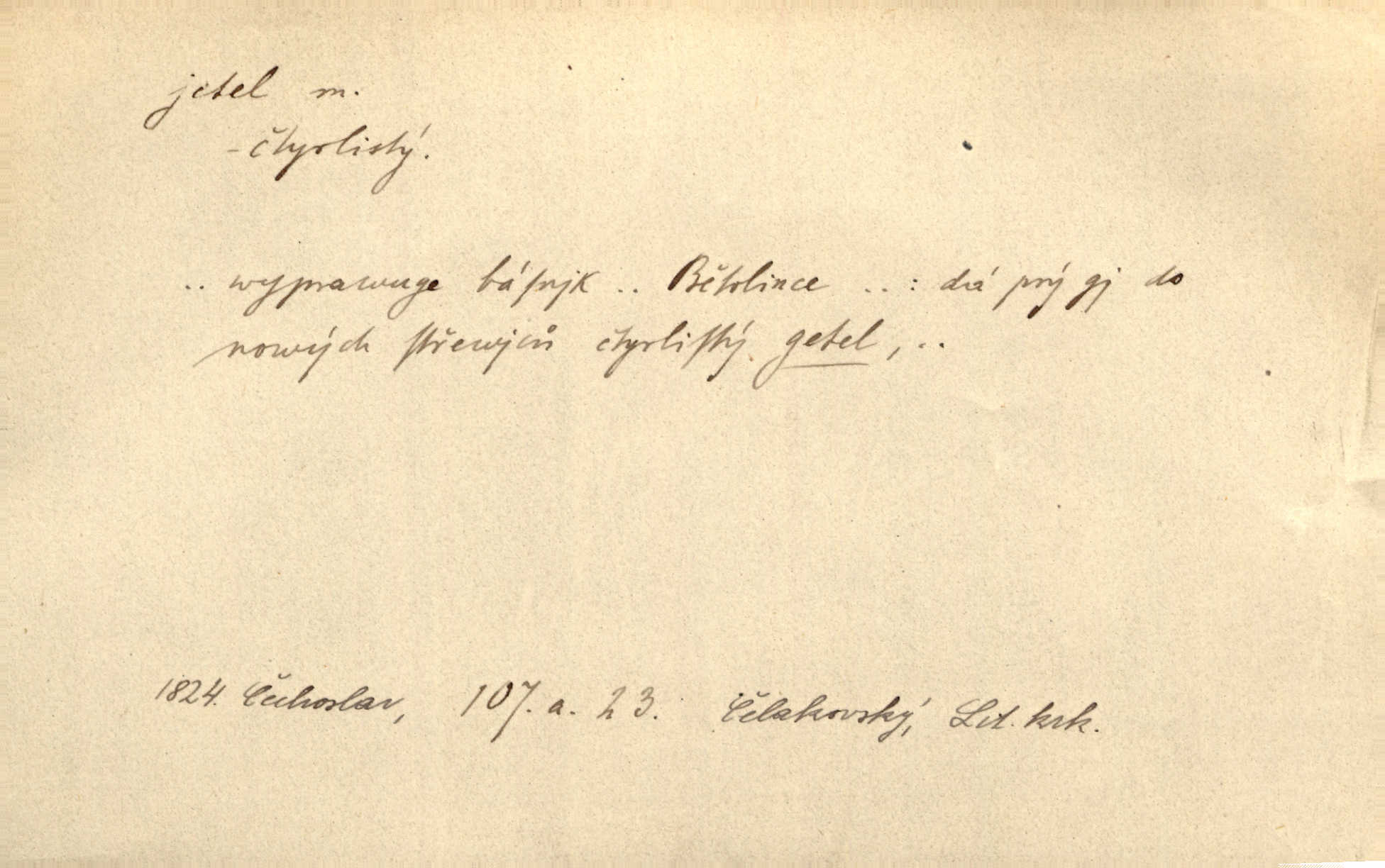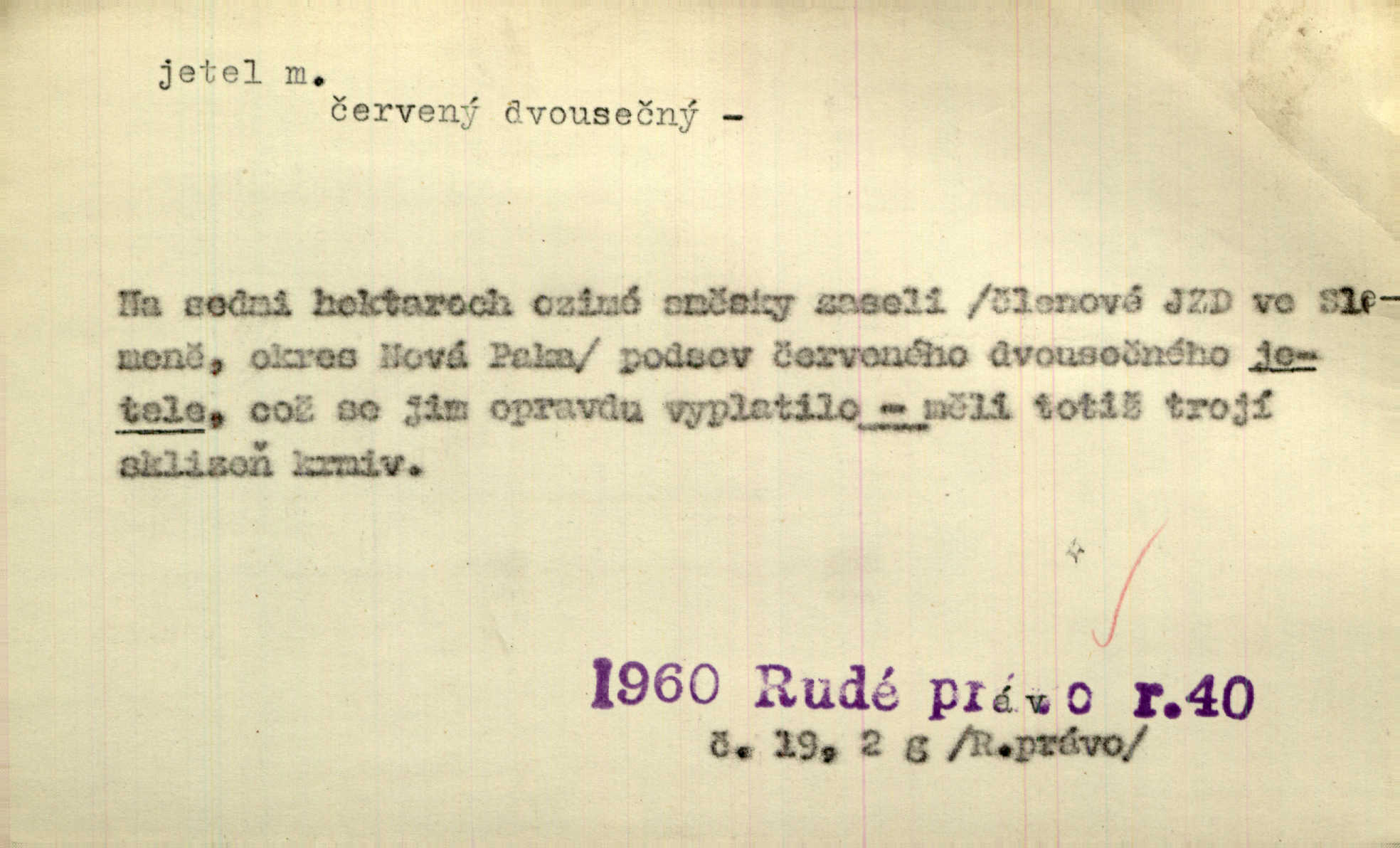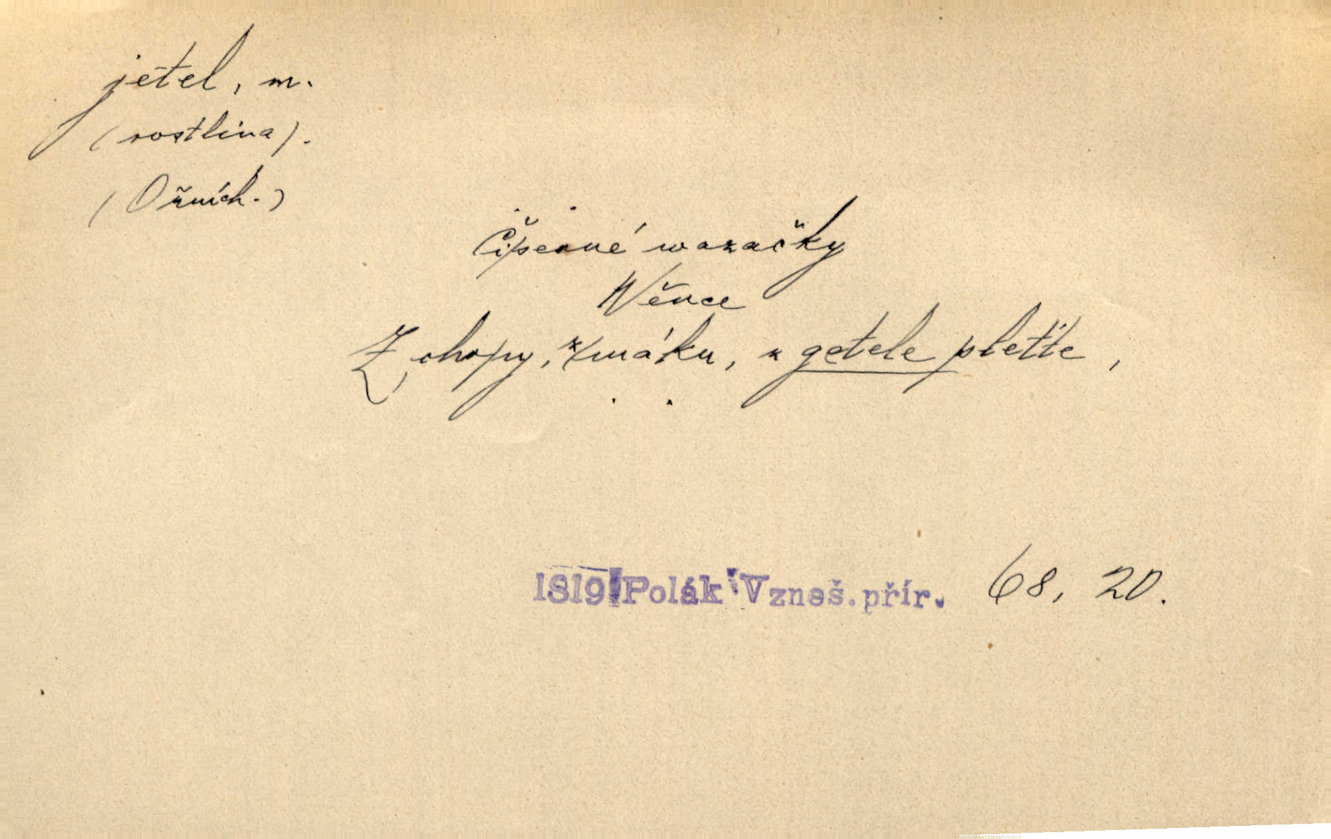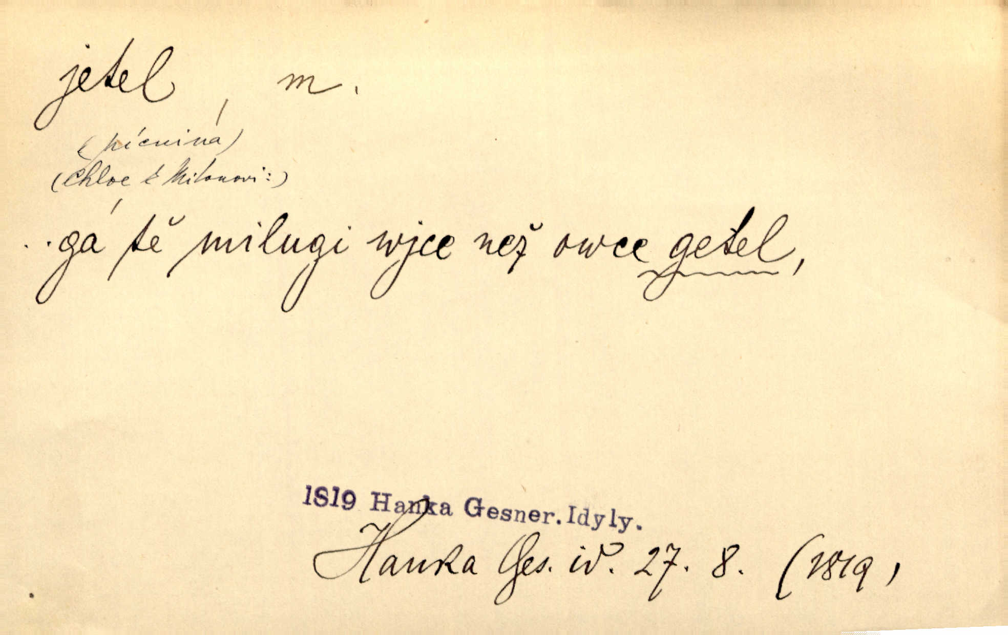 - jetel, -e m. (dial. f.) bot. rod rostlin motýlokvětých (Trifolium). Jetel polní, luční, plazivý a j. Jetel nachový inkarnát, růžák. Jetel strnišťák narostlý po žních na strništi. Hořký jetel vachta třílistá (Menyanthes trifoliata); kozí jetel čilimník odvislý (Cytisus laburnum); zaječí jetel šťavel kyselý (Oxalis acetosella).