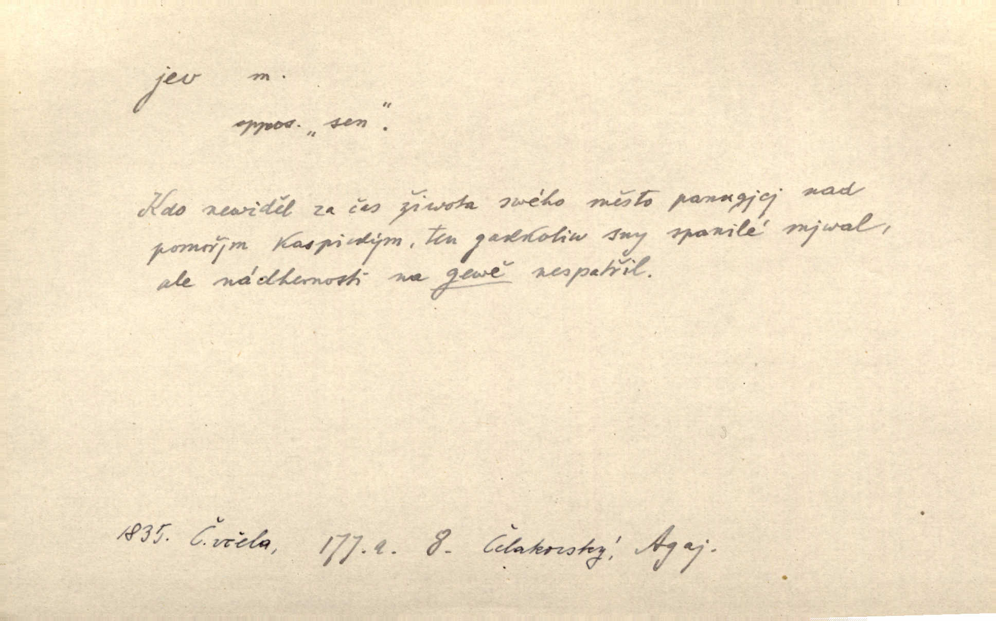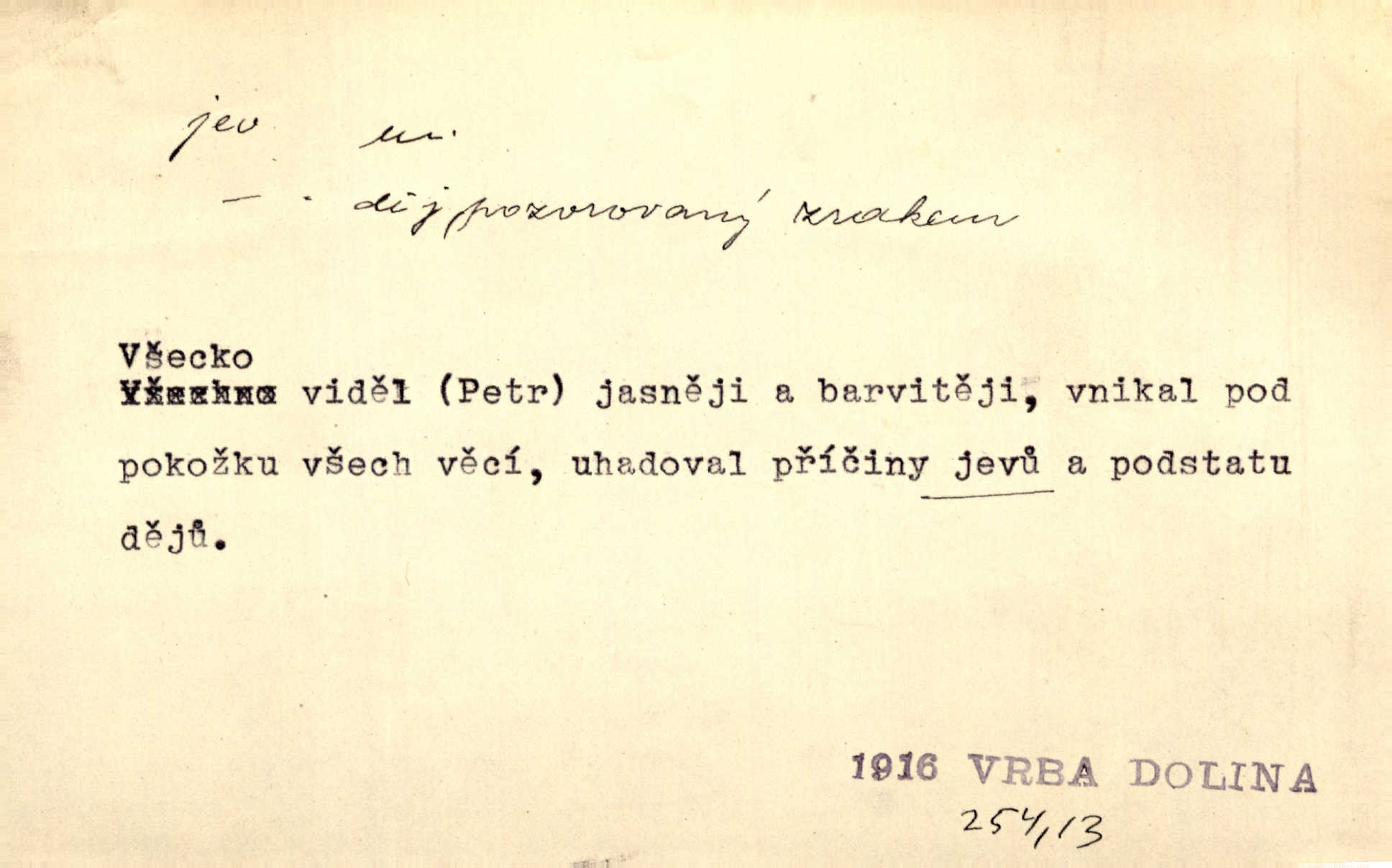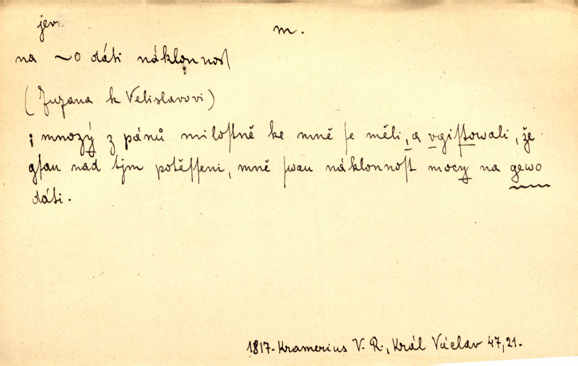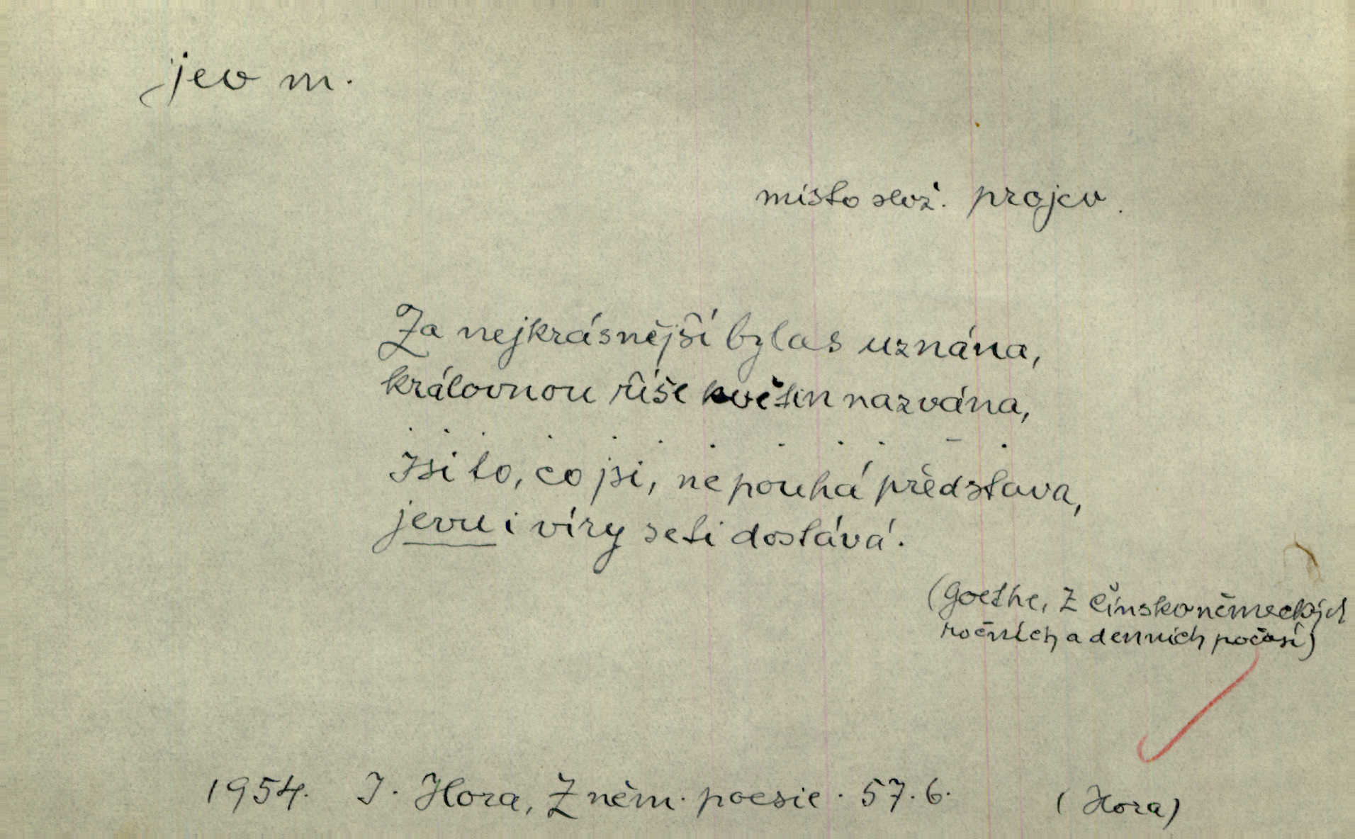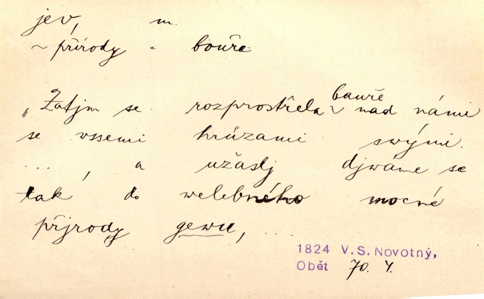 - jev, -u m. úkaz. Děti obrátily se tváří do sálu a zrovna hltaly jevy svého okolí. Kronb. Kongres prohlásil vyznání náboženské za jev, který by obligatorně měl býti při každém sčítání lidu zjišťován. Čes. pol. Dělíme jevy jazykové na fysické a psychické. Ath. Přede vším jisty jsou nám naše jevy duševní, rozličné stavy našeho vědomí. Mas. Gram. jevy fonetické, hláskové, syntaktické. D Zř. projevení. Každá empirická chvíle, byť na pohled a jev sebe krásnější a ohnivější, vykuklí se Máchovi záhy v starý mučivý osten. Šal. Není třeba, abych vyčítával, čím pan hrabě, obce příznivec, vždy svou dobrou vůli na jev dával. F. S. Proch. Mé všechny rány by pak přišly v jev najevo. Mach. Brzo vstoupí [nepřítel] v jev na pláň světlou. Quis.