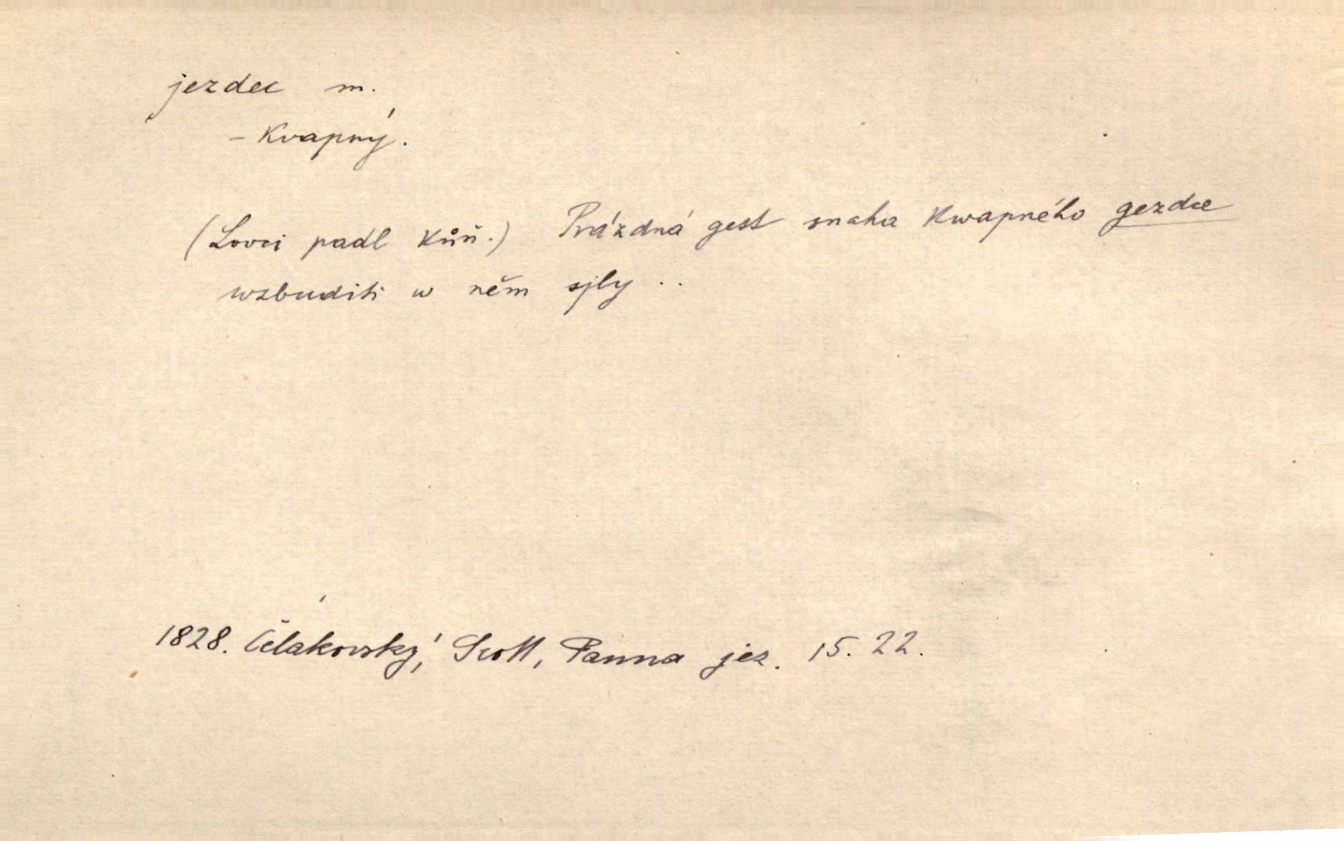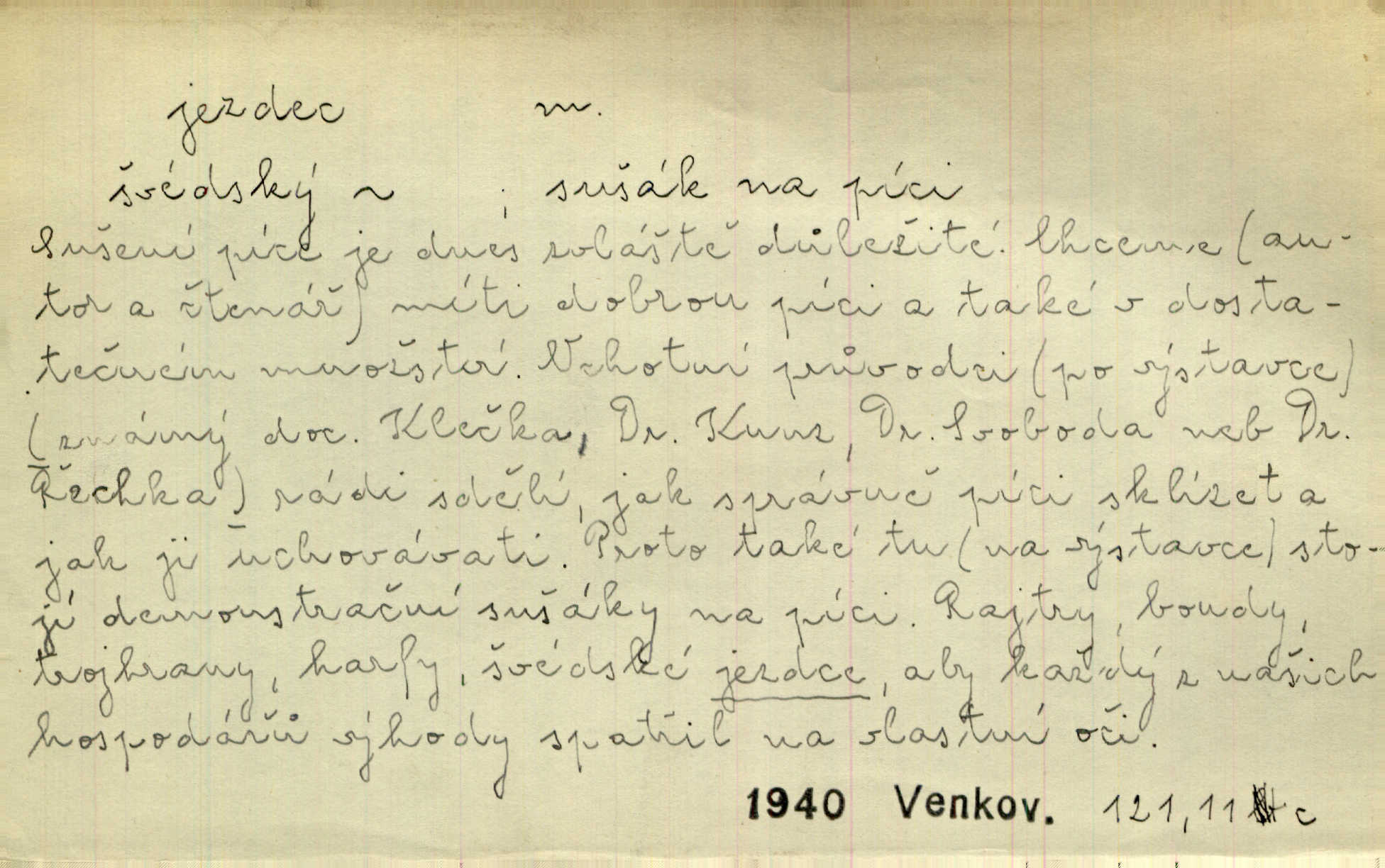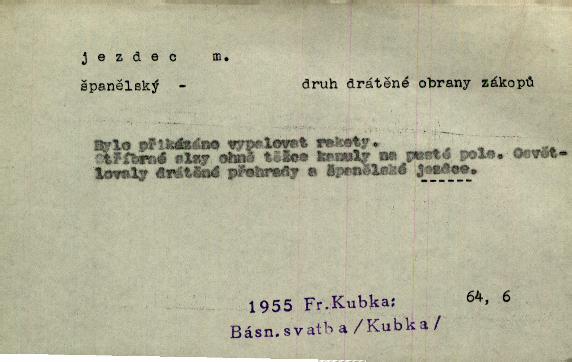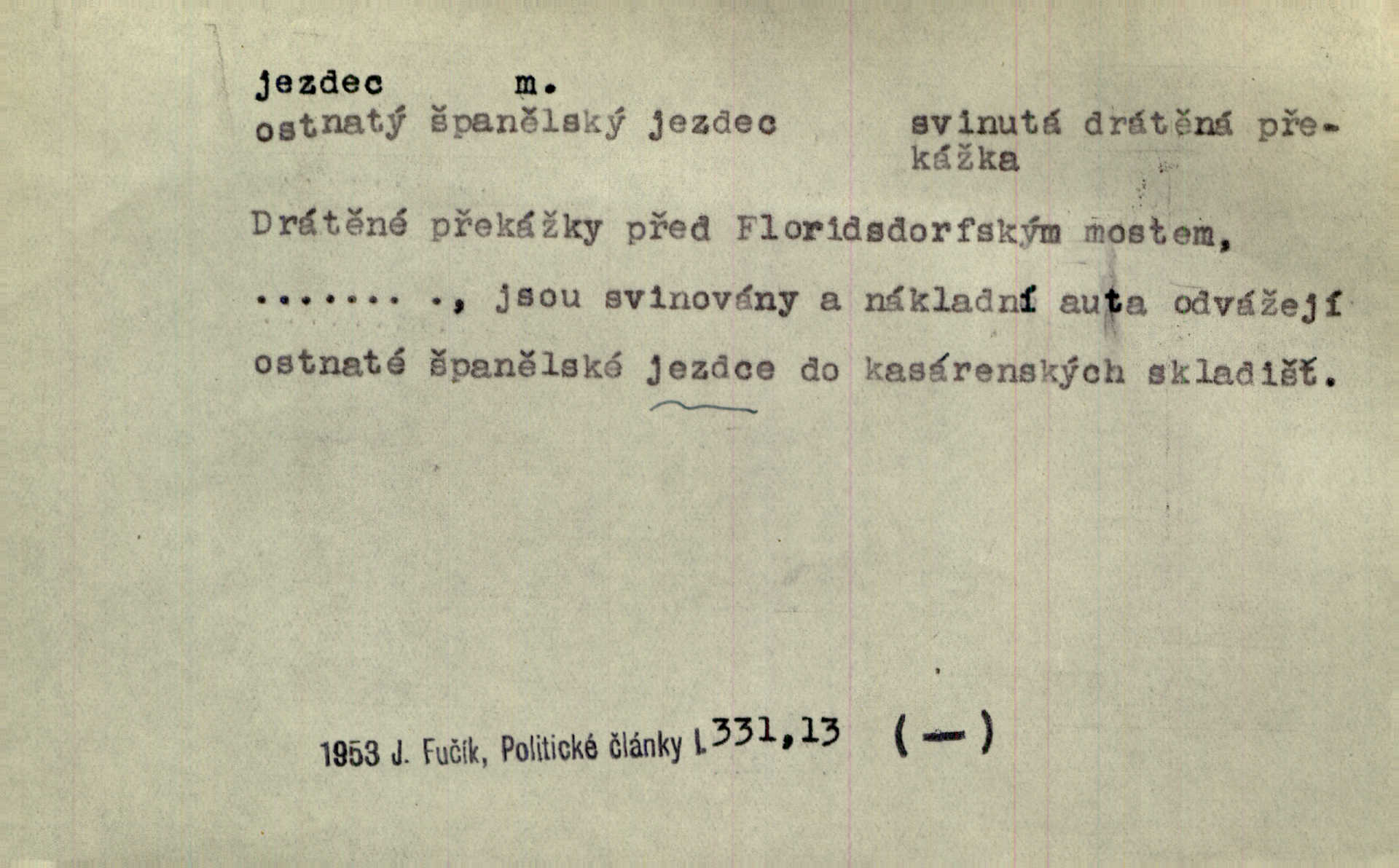 - jezdec, -dce m. člověk jezdící na koni, řidč. jedoucí na nějakém vozidle. V tom se ozval koňský dusot, po silnici od splavu pádil jezdec. Něm. Jezdci na koních i na lesklých kolech bicyklů frčí rychle kolem za sebou. V. Mrš. Voj. jízdný vojín, kavalerista. D věc nějak připomínající jezdce. Šach. šachová figurka koník, kůň. Obch. a kancel. vložka do knihy n. do lístkového seznamu určená k rychlému nalezení hledaného listu, koníček, signál. Voj. španělský jezdec druh překážek z kolů a ostnatého drátu, účinný zejména proti jezdectvu. Tech. posuvná součást na přístroji n. stroji. Jezdec na přesných vahách. Jezdec u soustruhu. Stav. ozdobná čtyřboká až osmiboká věžička.