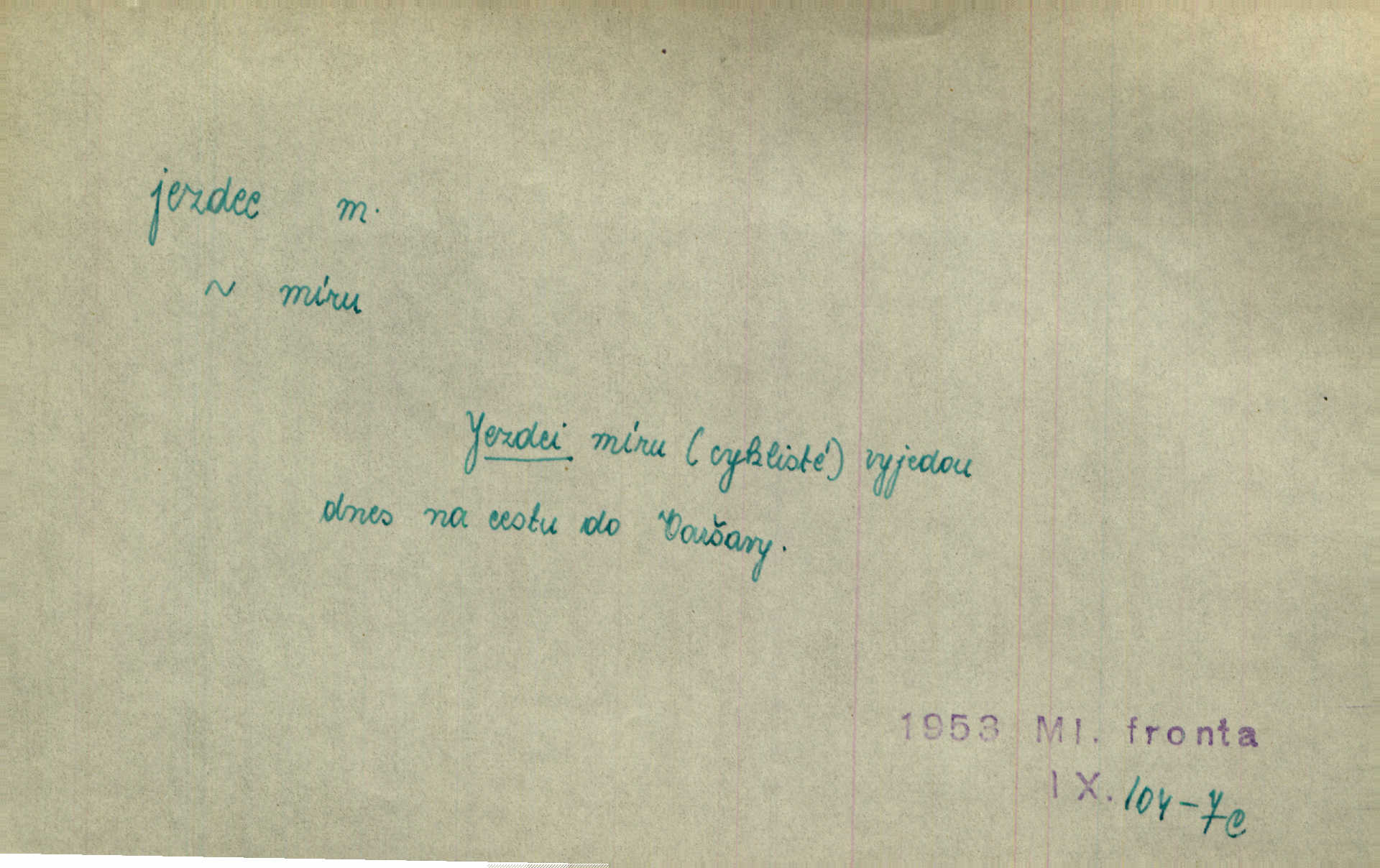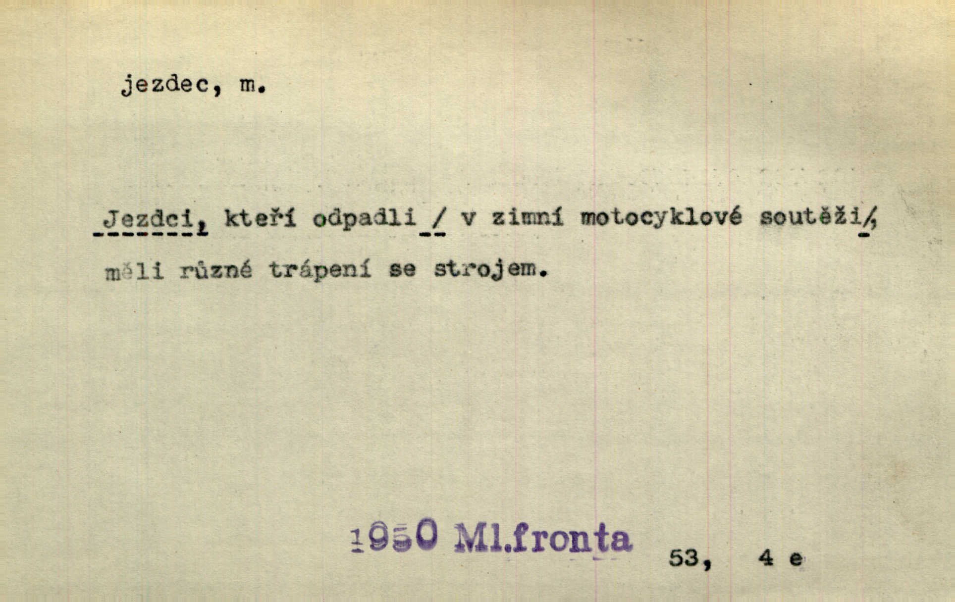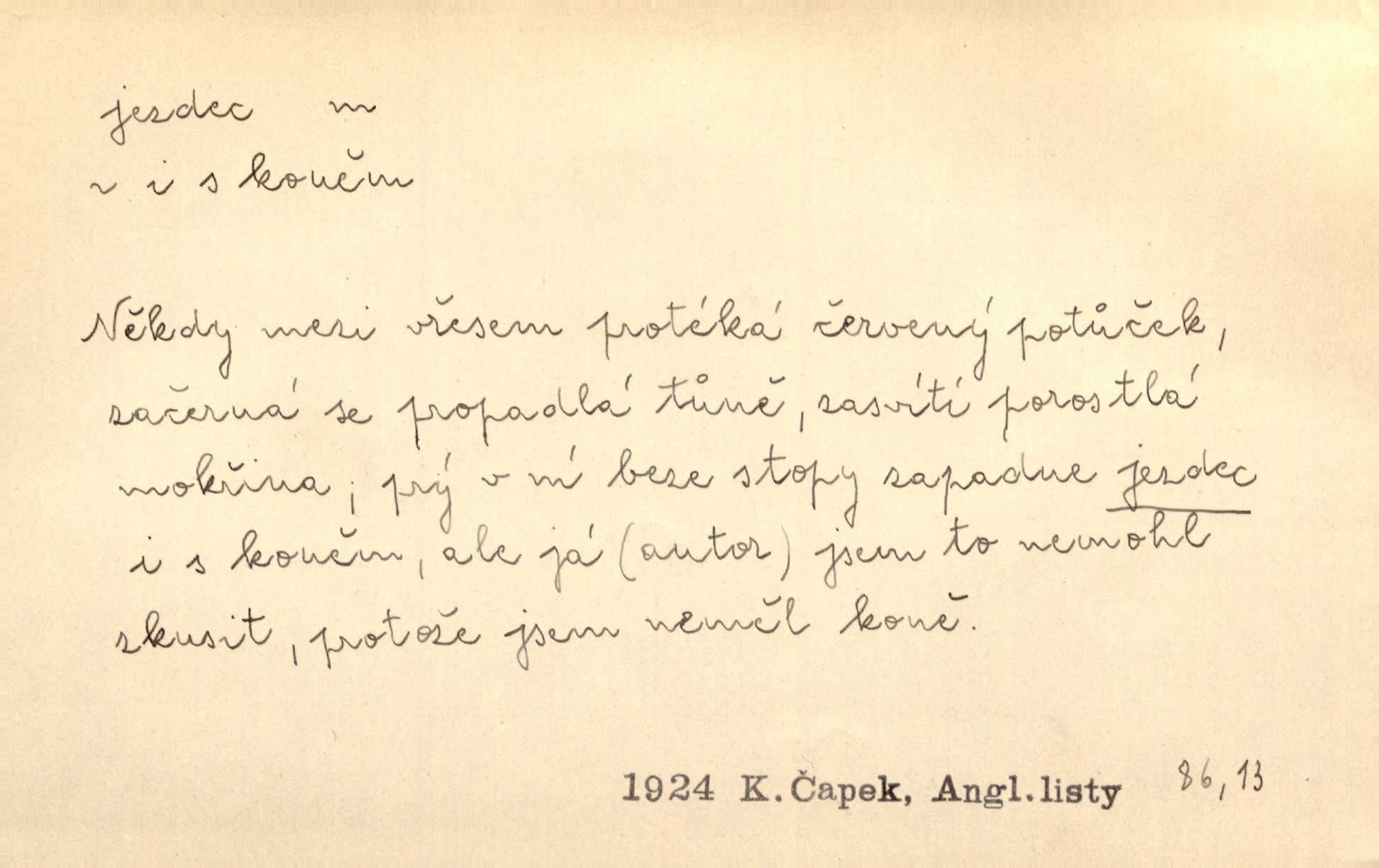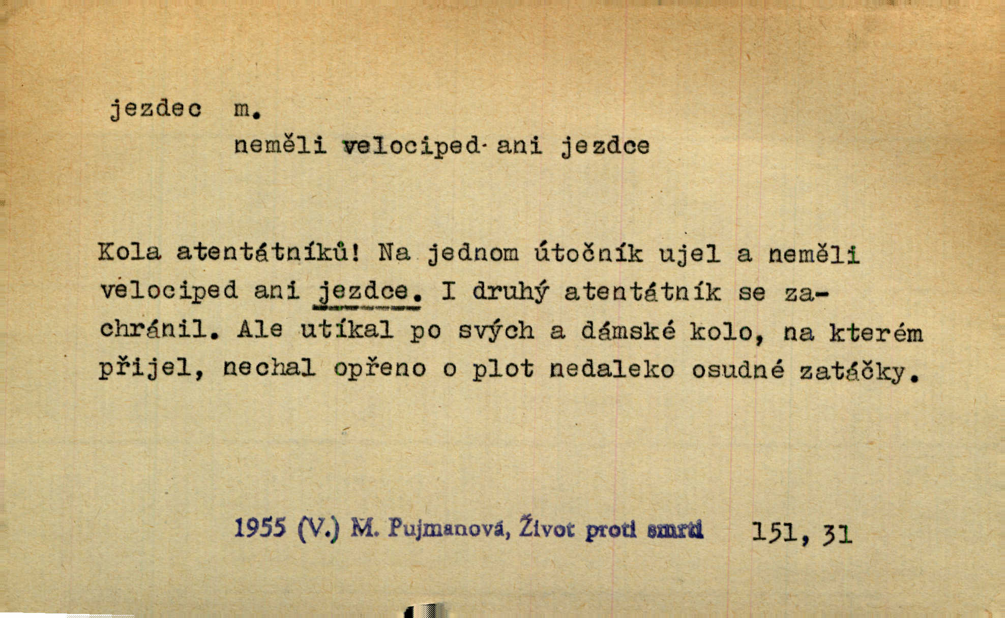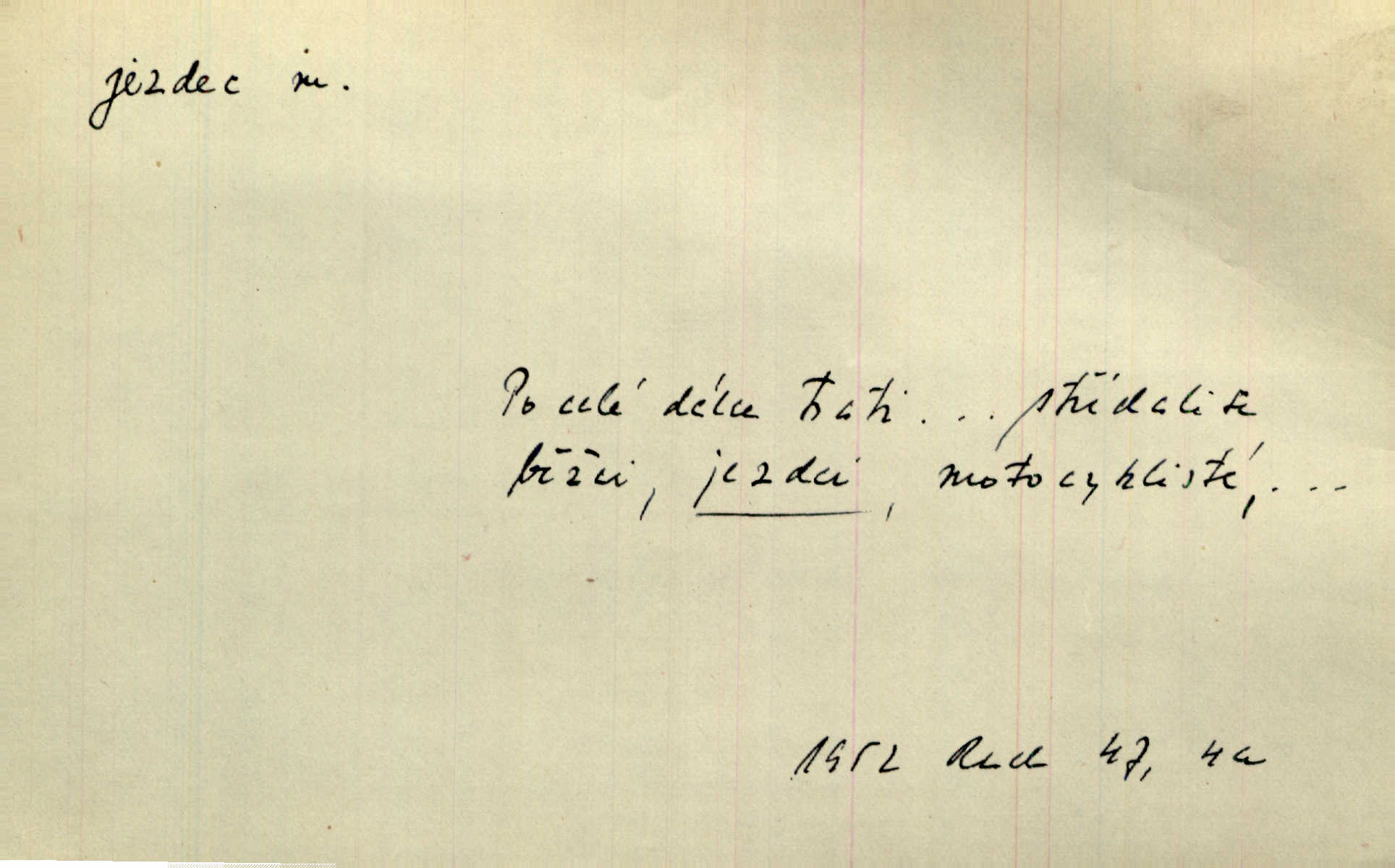 - jezdec, -dce m. člověk jezdící na koni, řidč. jedoucí na nějakém vozidle. V tom se ozval koňský dusot, po silnici od splavu pádil jezdec. Něm. Jezdci na koních i na lesklých kolech bicyklů frčí rychle kolem za sebou. V. Mrš. Voj. jízdný vojín, kavalerista. D věc nějak připomínající jezdce. Šach. šachová figurka koník, kůň. Obch. a kancel. vložka do knihy n. do lístkového seznamu určená k rychlému nalezení hledaného listu, koníček, signál. Voj. španělský jezdec druh překážek z kolů a ostnatého drátu, účinný zejména proti jezdectvu. Tech. posuvná součást na přístroji n. stroji. Jezdec na přesných vahách. Jezdec u soustruhu. Stav. ozdobná čtyřboká až osmiboká věžička.