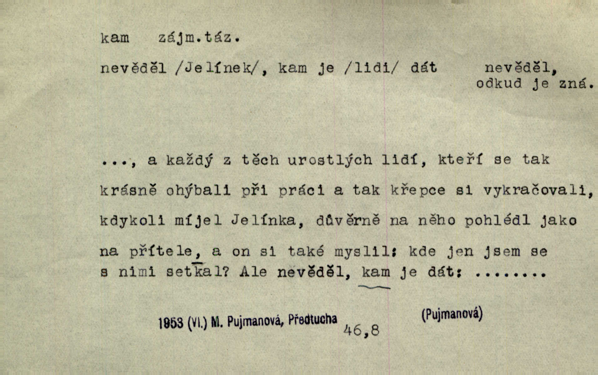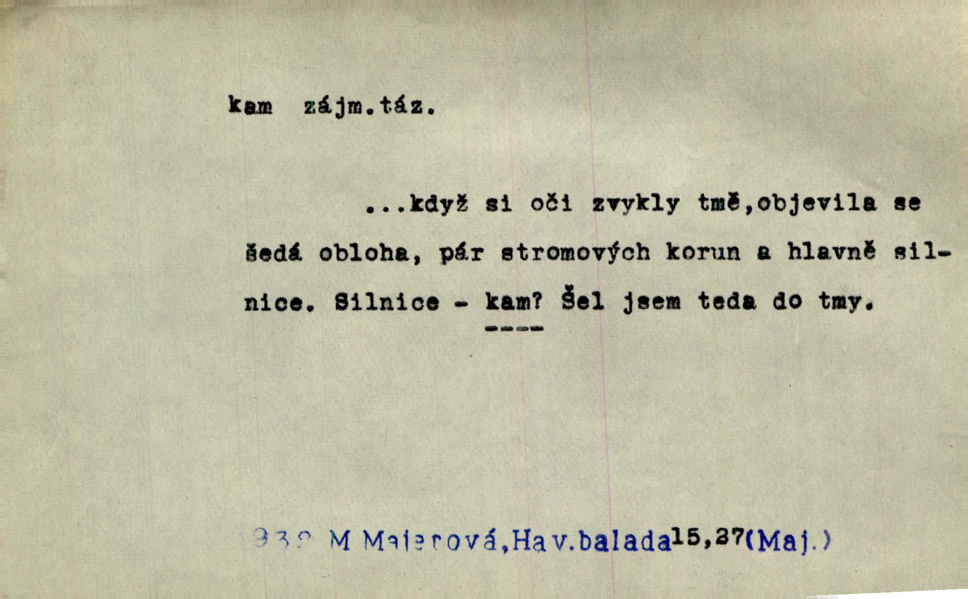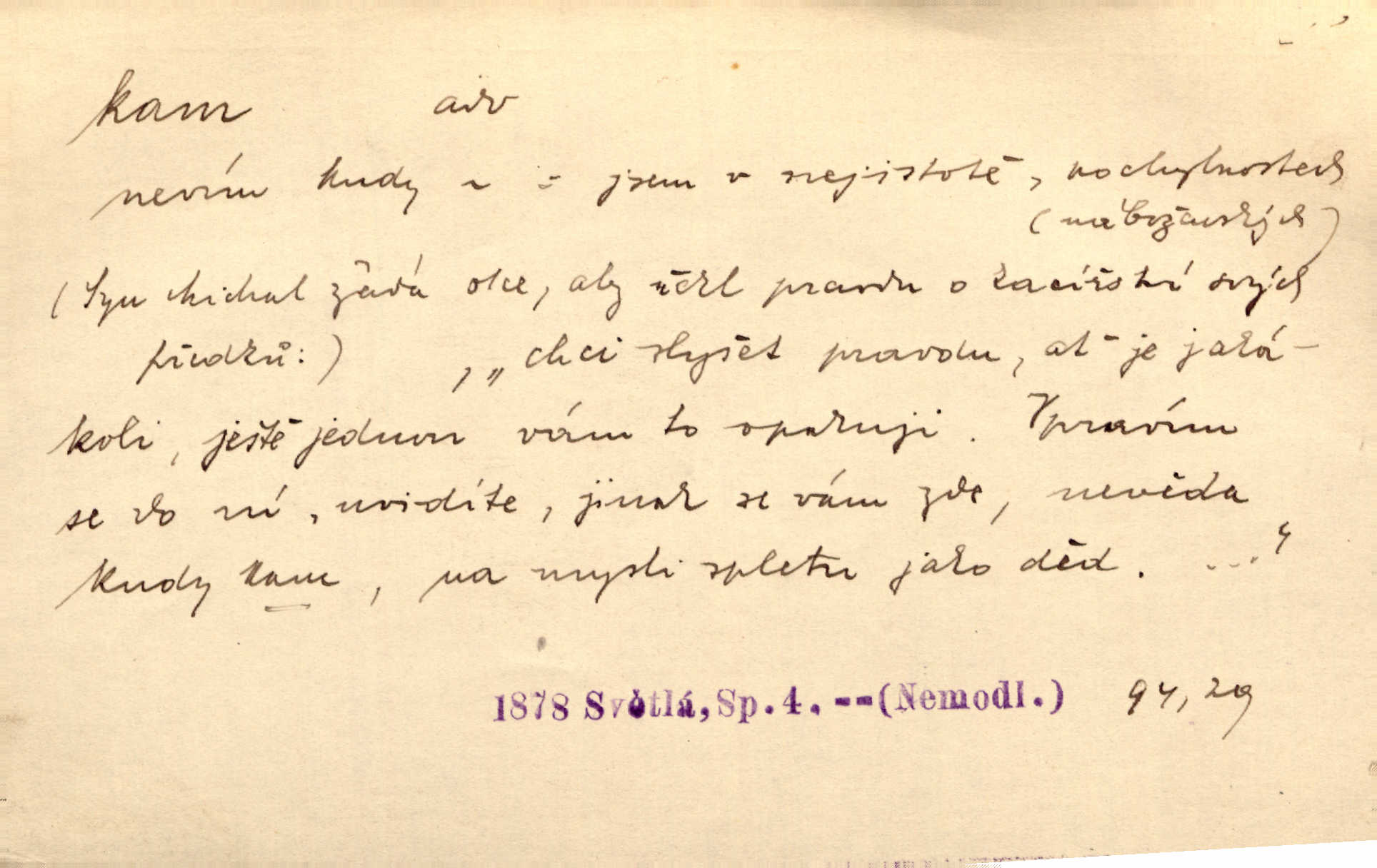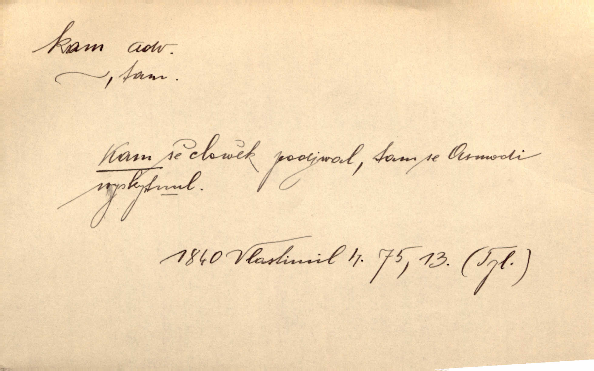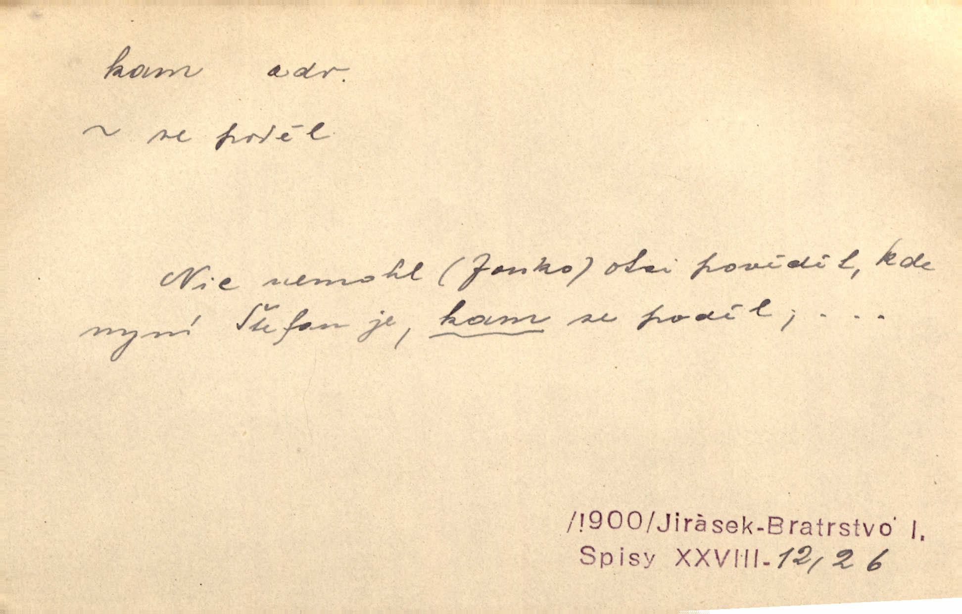 - kam (arch. a bás. kamo) zájm. adv. táz. uvozuje otázku (přímou n. nepřímou), jíž se tážeme po cíli n. účelu. Ej, ej, Tkaničko, kam pospícháš? K Adličce-li? Jir. „Kam tak pozdě na modlení?“ táži se [poutnice]. Mácha. Kampak — kampak — snad ne za nevěstou? Rais. Čisté to hospodářství! Kam jinam vésti může, než do propasti? Bozd. Prorve si hrázi obrovský kolos — jak, kdo a kamo? Mach. Nebuď bloud… snad nemyslíš… i toto, škrábe se za uchem ponocný. „Kam pak s tou flintou!“ co tě to napadá. Staš. Kam to jen myslíš, muži? — Co to máš za nápady? Třeb. Táto, táto, kams dal rozum! Jir. Kam pak s praženou [kávou]! Ta by nám pěkně vyčichla — jsme jen dvě. Herrm. Něco takového [jako je básník X.] jsme opravdu neměli. Kampak Čelakovský — takový hlupák! Mach. Kam by se dělo! není divu. Jir. Kampak mi stačí to bídné diurnum! Mám co dělat, abych zachoval „finanční rovnováhu“. Herrm. [Slepá táboritka k hochovi:] Rci, kam boj se schýlil? Čech. Jarní sny z mé duše bůh ví kam mizejí kamsi do neznáma. Vrch. Však my také víme, kam pěnkava nosem sedá nejsme hloupí. Šmil. Tak byla pomatena v tu chvíli, že nevěděla kam s očima, kam s rukama, kam s celým tělem. V. Mrš. Peníze se mu hromadily, že nevěděl, kam s nimi. Něm. Na večer nevěděl [švec] s rukou kam, tak ho bolela od samého bití. Rad. Pro okamžik nevěděl kam s řečí. Mlčel. Šmil. Nevím, kam dřív s grošem co dříve koupit, platit. Baar. Aha! nyní vím, kam bijete! kam svou řečí míříte. Sab. Mlynář se zapálil, nevěda s odpovědí kudy kam co odpověděti. Svět. Je mně jako bleše v koudeli. Nevím, kudy kam. Jir. D zájm. adv. vztaž. vyjadřuje cílový vztah své věty. Šel, kam jej nohy nesly nazdařbůh. Šmil. Půjde, kam oči povedou. Pal. Kam vítr, tam plášť. Pořek. Volně jako boží dech, který vane, kam chce, Zey. Je to stará zahrada, kam nevkročí nikdo. Kar. [Mluvilo se o tom] u rady Napila, kam chodívám v sobotu na oběd. Šim. Nad jícnem lidstvo zastav, kamo pádí. Vrch. [V pokoji] si nebylo kam sednout. Prav. [Učitel] si položí dítě přes koleno, a kam řeže, tam řeže bije nehledě na to kam. Něm. Studenti rozprášili se kam který na všecky strany. Kosm. D zájm. adv. neurč. někam. Kdo chce kam, pomozme mu tam. Přísl. V létě, když kam jdou, hodí [horalé] přes ramena kabanicu. Něm. Málo kam [paní] vycházela, sedala ustavičně u svého děcka. Jir. D zájm. adv. neurč. vztaž. kamkoli. Kam přišel, všudy byl Jakub jako doma. Prav. Květný koberec, kam noha vkročí. Čech. D Ať se takový člověk obrátí kam obrátí, cop má vždycky vzadu. Praž. pos. Dopadaly [hole] jako cepy do zralého obilí, uhoď kam uhoď. Maj. V. t. kamž.