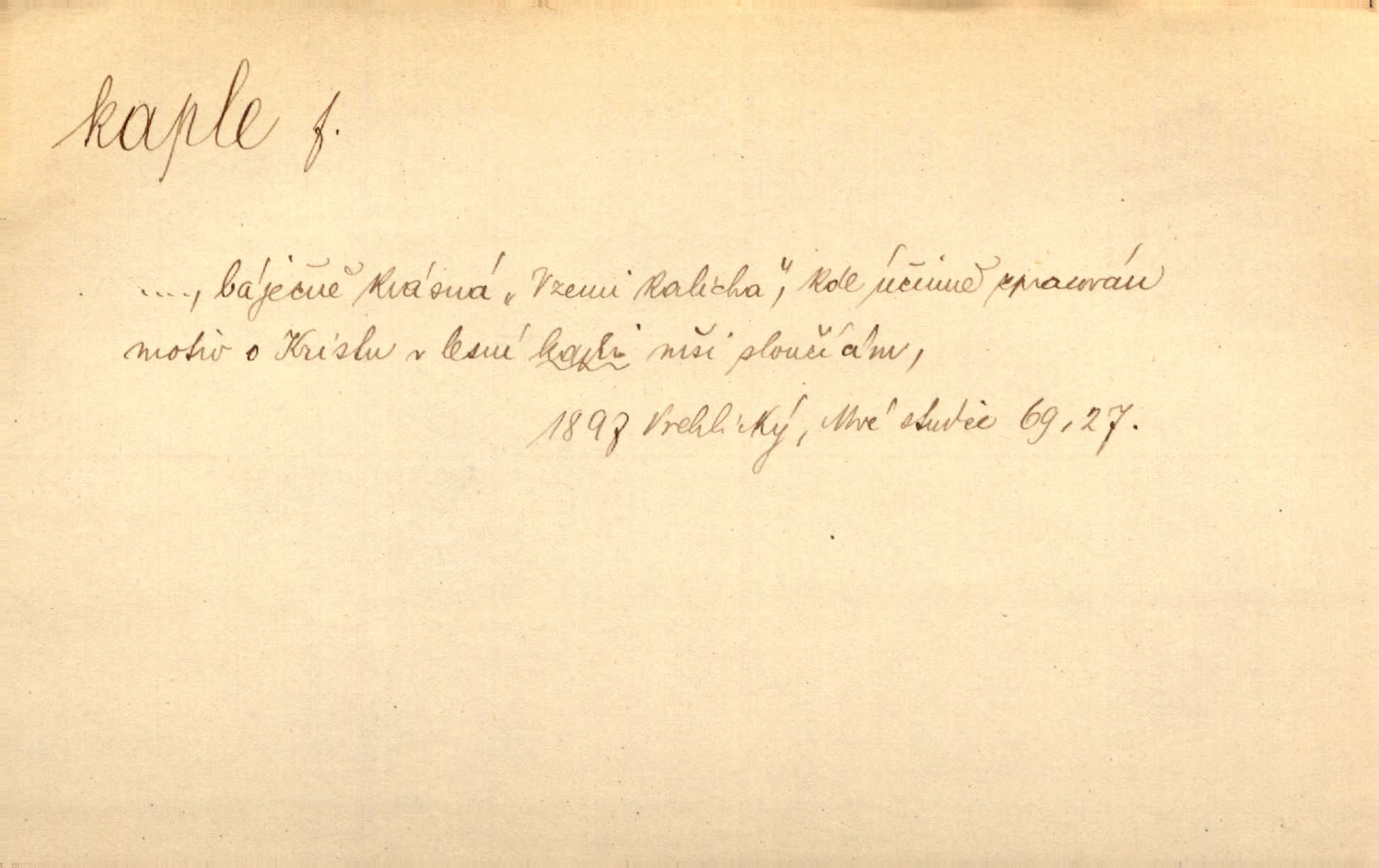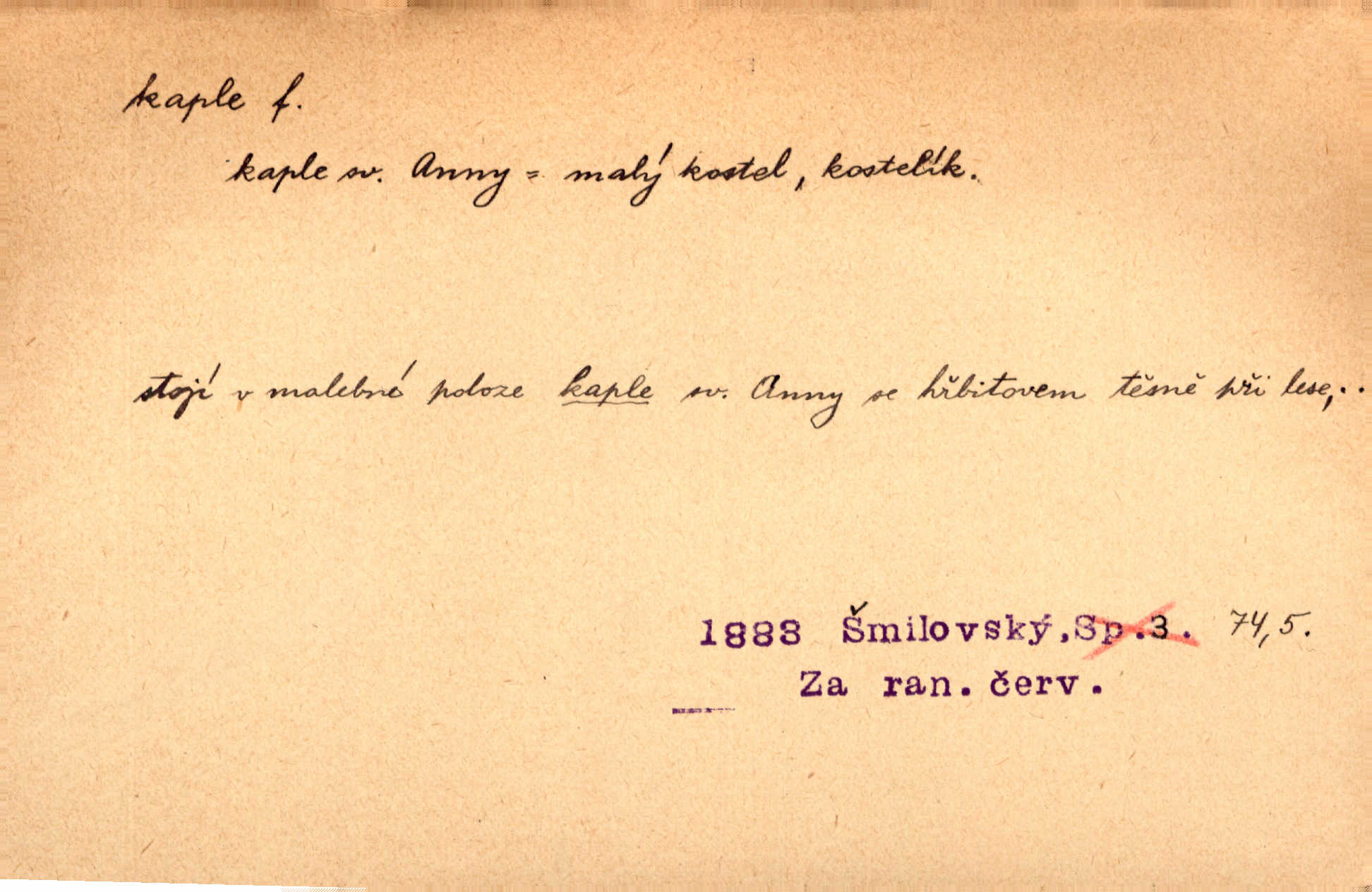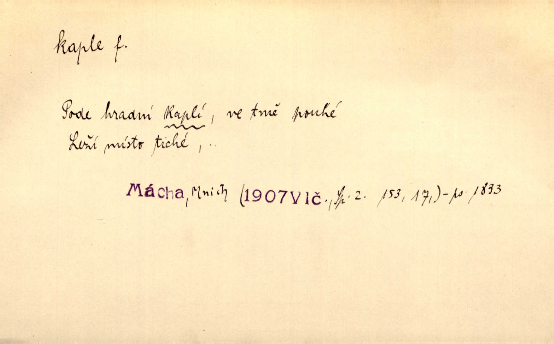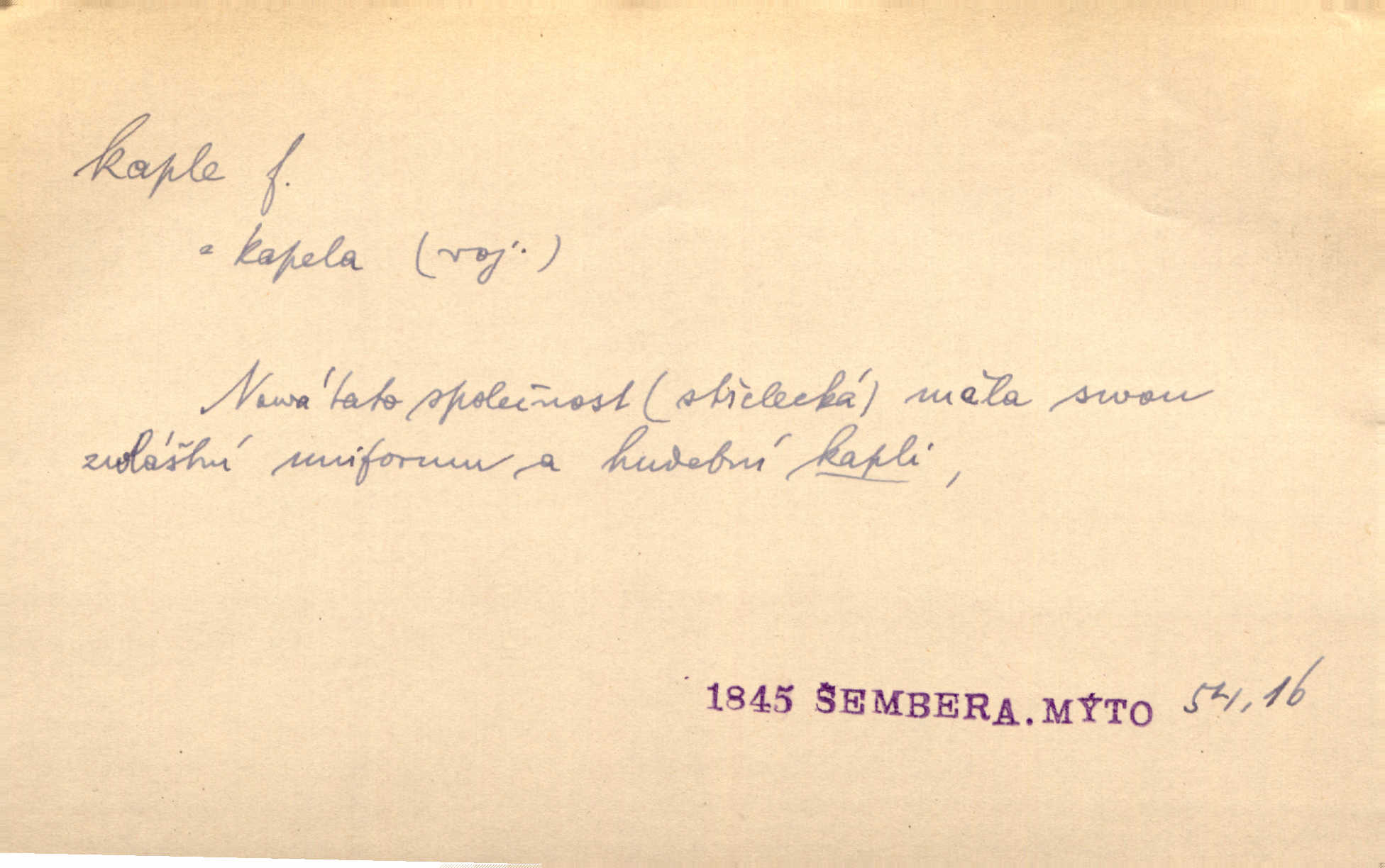- kaple, -e f. malá svatyně; oddělená postranní část chrámu s oltářem. Hradní kaple. Jir. Zámecká kaple. Jir. Pozejtří budete mít oddavky ve vojenské kapli. Něm. Betlemská kaple v Praze. Kaple sv. Václava v chrámě svatovítském. Když lid do chrámu klášterského se sešel, klečela Maruše v osamělé stolici postranní kaple. Jir. Ten opat v nové kapli svého kostela dal vymalovati poslední soud. Pal. D Obuv. špička boty zvlášť našívaná. Laková kaple.