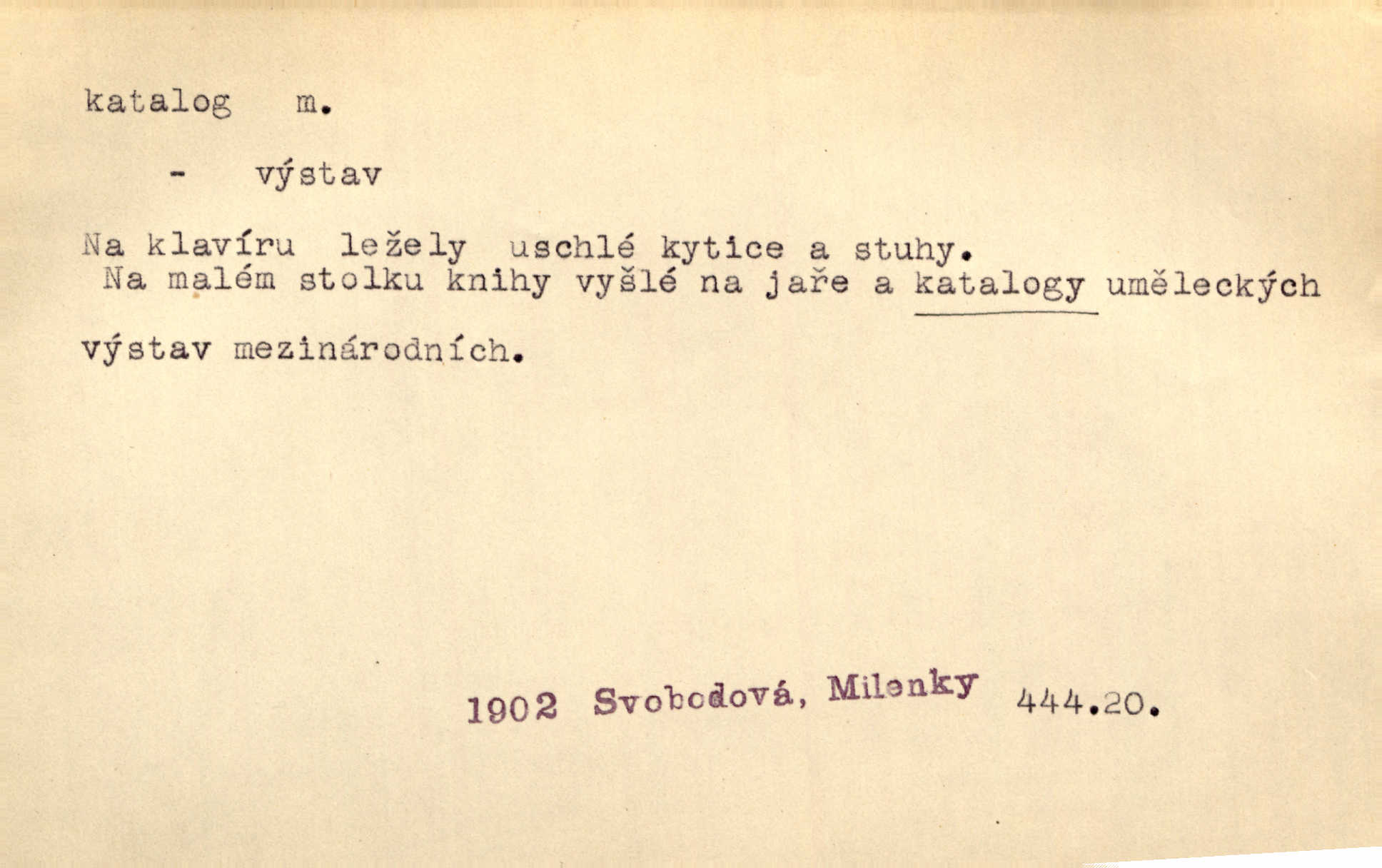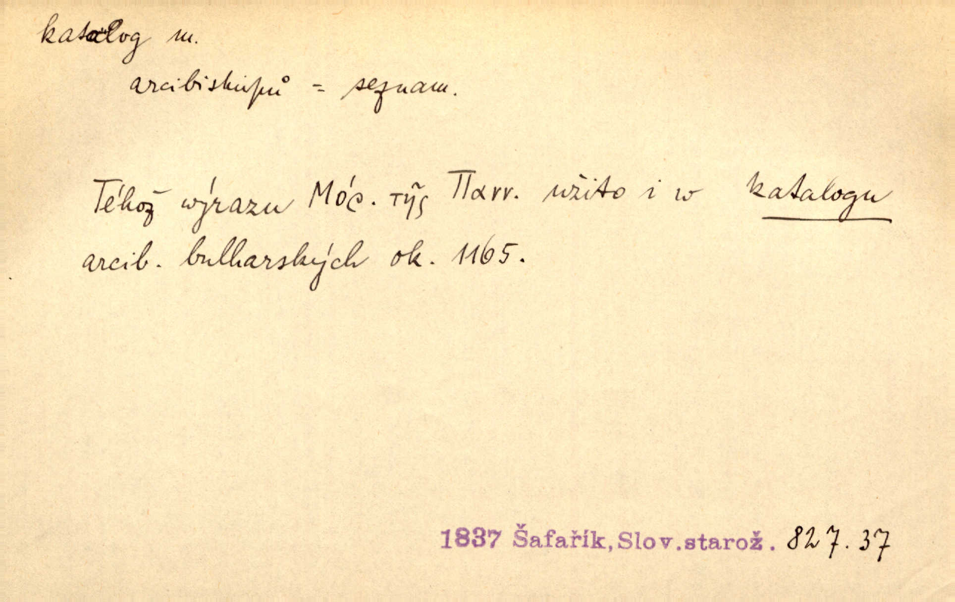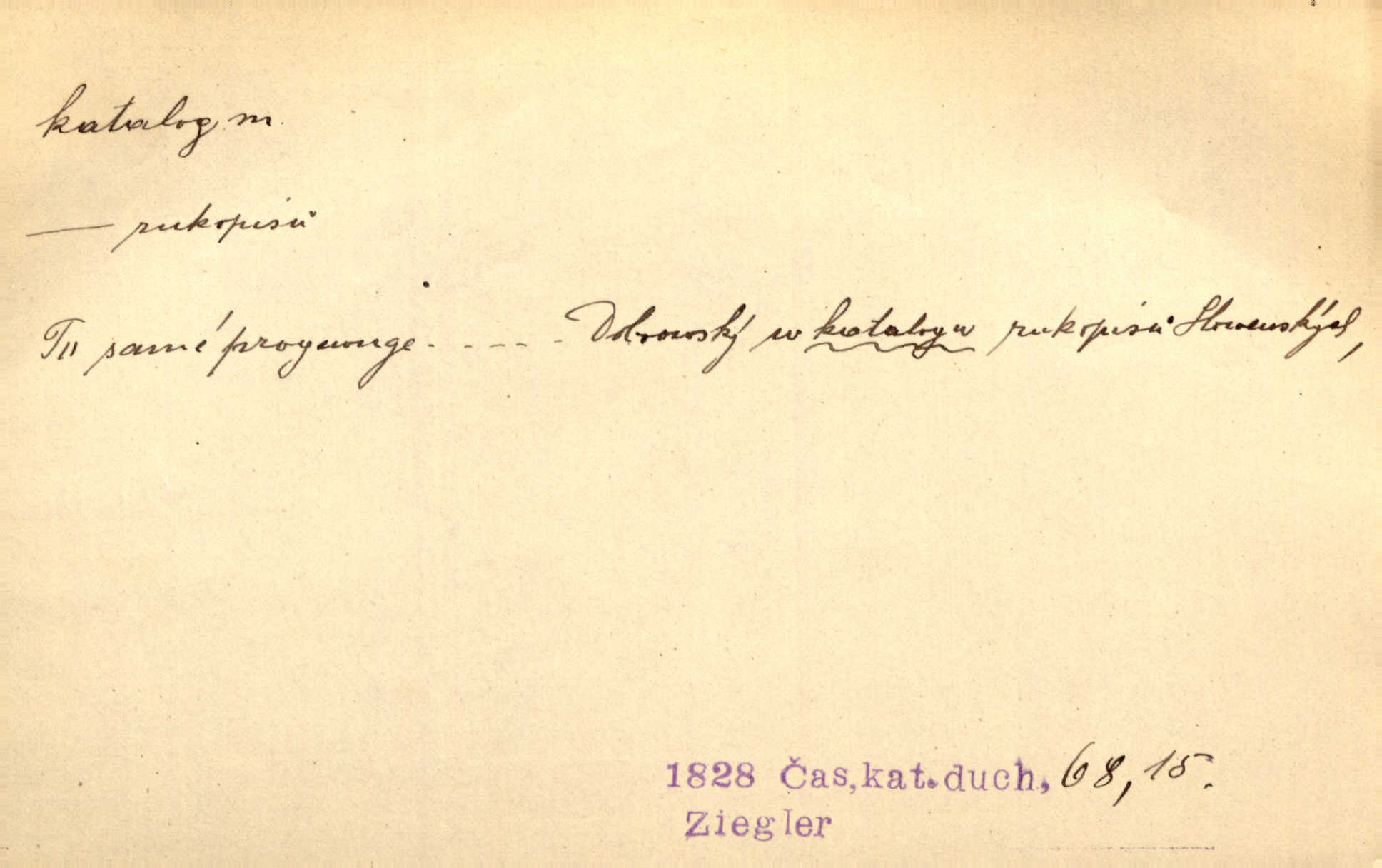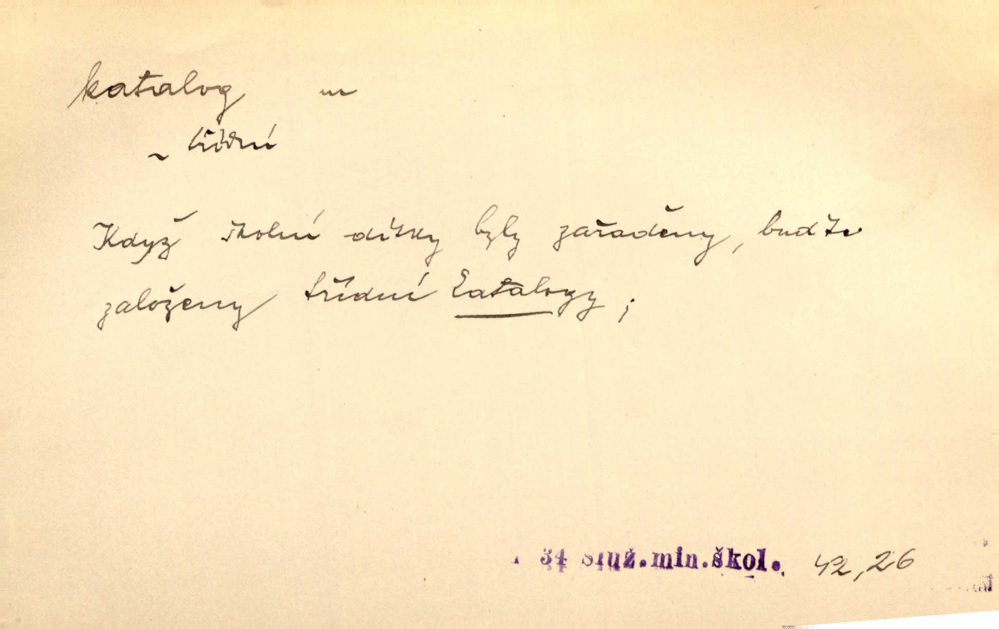 - katalog, -u m. seznam, soupis osob n. předmětů tvořících nějaký celek. Katalog knihovny (lístkový, věcný, heslový, přírůstkový). Katalog rukopisů knihovny musejní. Katalog musea, výstavy přehled vystavovaných předmětů. Tak sobě pořídil [Palacký] ohromný lístkový katalog, abecedně srovnaný, topograficko-genealogický. Kal. Škol. třídní katalog seznam žáků navštěvujících třídu se záznamem jejich prospěchu.