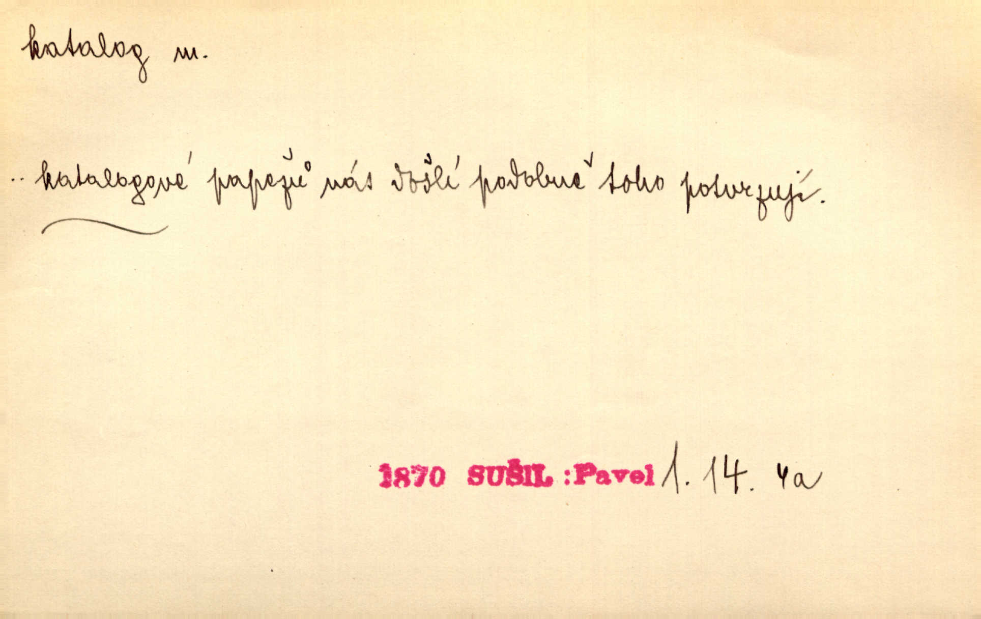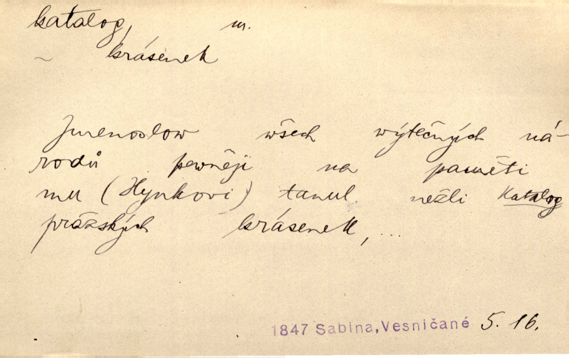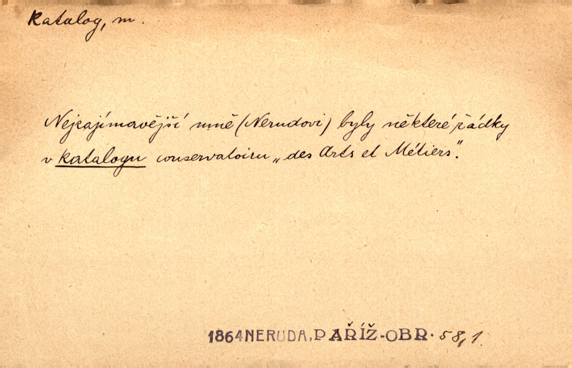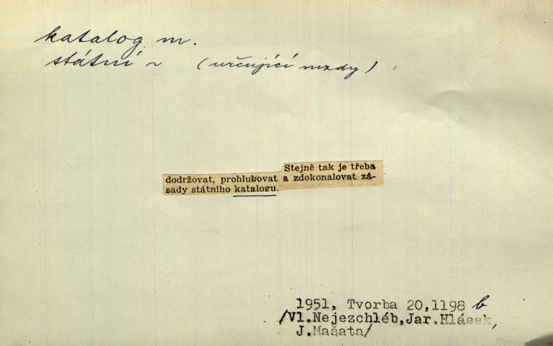 - katalog, -u m. seznam, soupis osob n. předmětů tvořících nějaký celek. Katalog knihovny (lístkový, věcný, heslový, přírůstkový). Katalog rukopisů knihovny musejní. Katalog musea, výstavy přehled vystavovaných předmětů. Tak sobě pořídil [Palacký] ohromný lístkový katalog, abecedně srovnaný, topograficko-genealogický. Kal. Škol. třídní katalog seznam žáků navštěvujících třídu se záznamem jejich prospěchu.