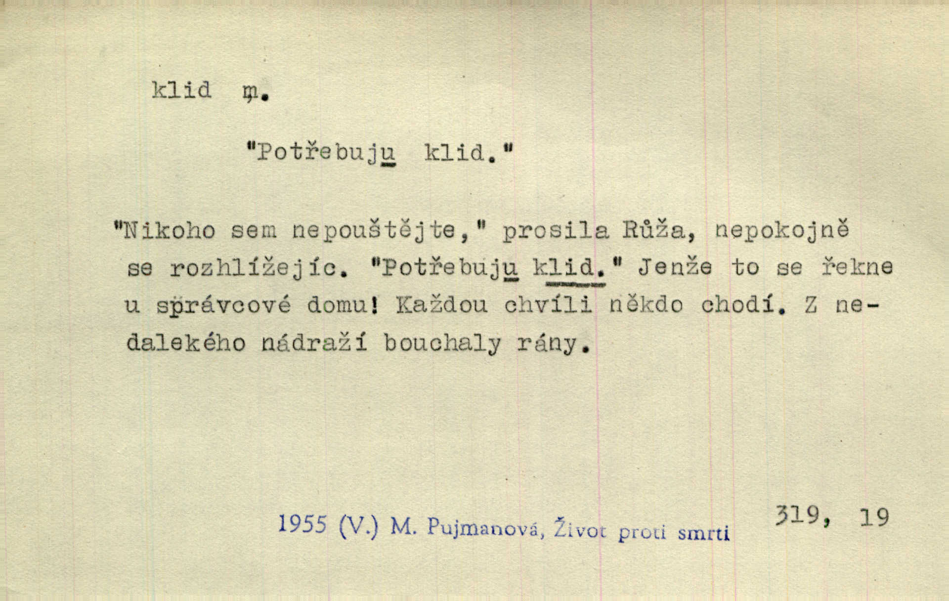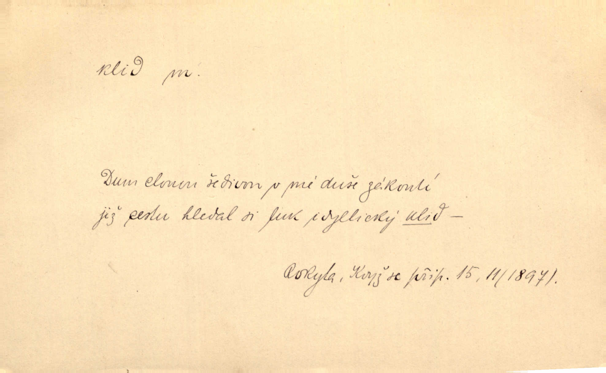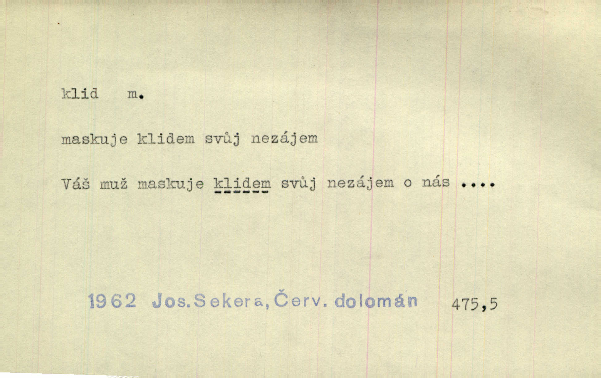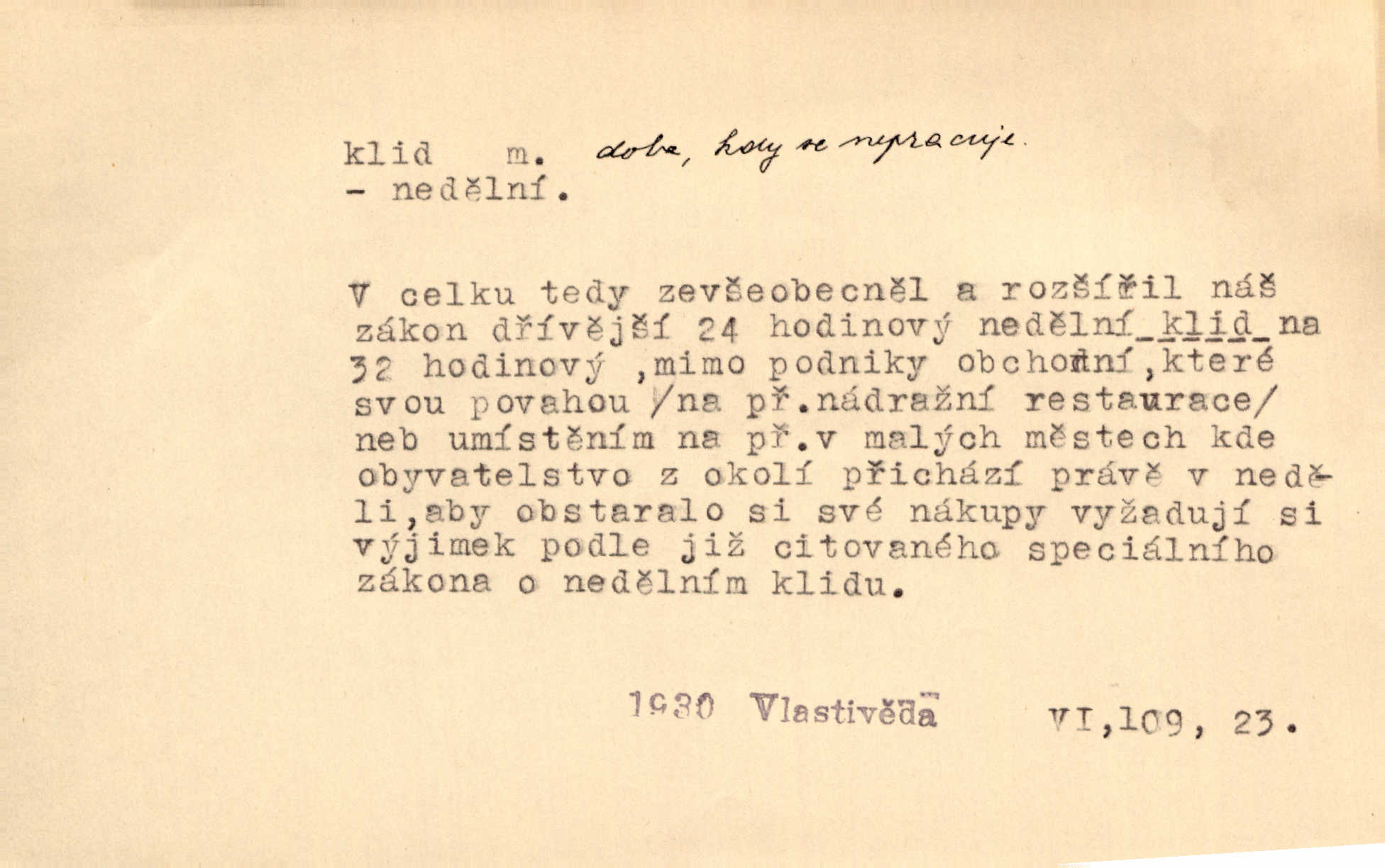 - klid, -u m. nehybnost, nečinnost, odpočinek, pokoj, ticho. Stálý klid bez namáhání se zhnusí každému. Durd. Po jarmarečních dnech nastal v Rakovníce zase klid. Win. Vévoda potřebuje pro jednání s Švédskem a Francií klidu zbraní, rozhodl se pro příměří. Pek. Mluvil s kazatelny proti rušení klidu nedělního. Baar. Noční kolem rozproudil se klid. Mácha. Fys. vlastnost tělesa, že nemění svou polohu (op. pohyb). Úř. klid nedělní a sváteční zákonem upravené zastavení živnostenské práce v určité dny. Práv. klid řízení po dohodnutí sporných stran, aby se ve sporu zatím nepokračovalo. Těl. cvičení na kruzích v klidu (op. v hupu). D klidnost, nevzrušenost, chladná mysl. Nemiloval mrzutostí, poněvadž jej přiváděly z klidu. Šim. Hovořil s největším klidem. Rais. Jezdec, neztrativ ani okamžik klidu, strhl koně. Jir. V nitru jeho se uhostil klid. Jir. Lit. epický klid objektivnost výpravného básníka. Epický klid vládne jeho [Úprkovými] obrazy. V. Mrš. Stoický klid. S klidem Angličana. Us.