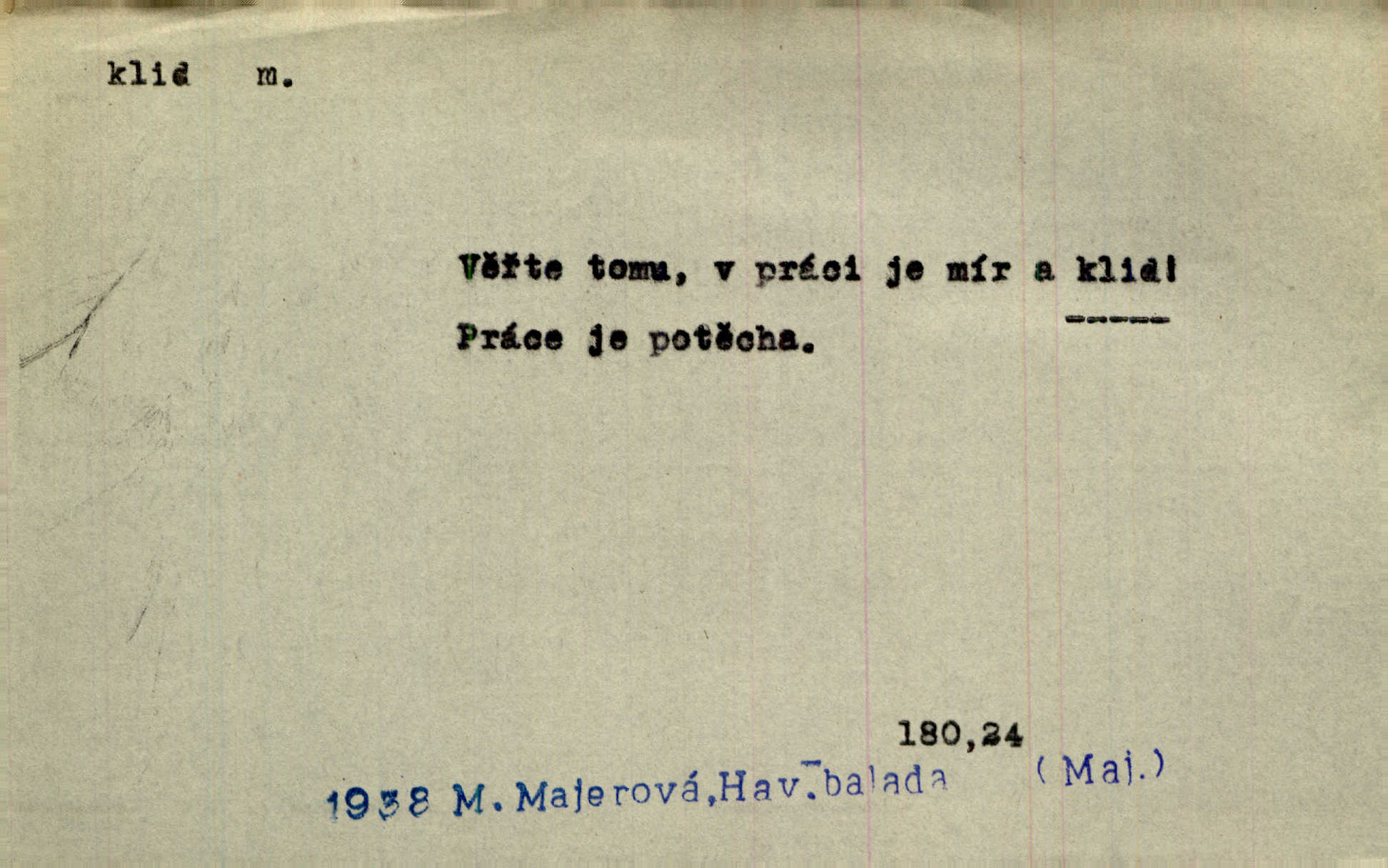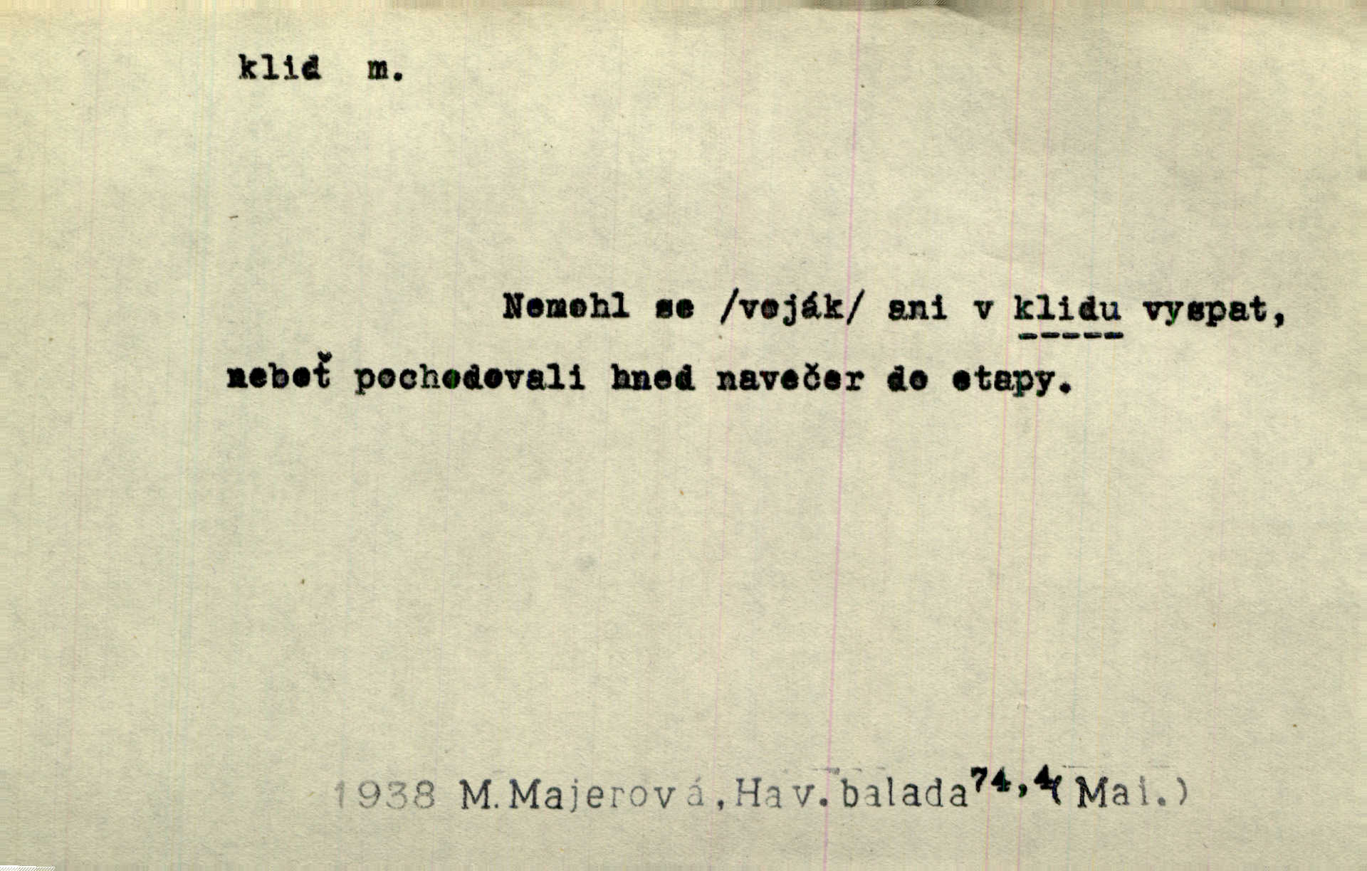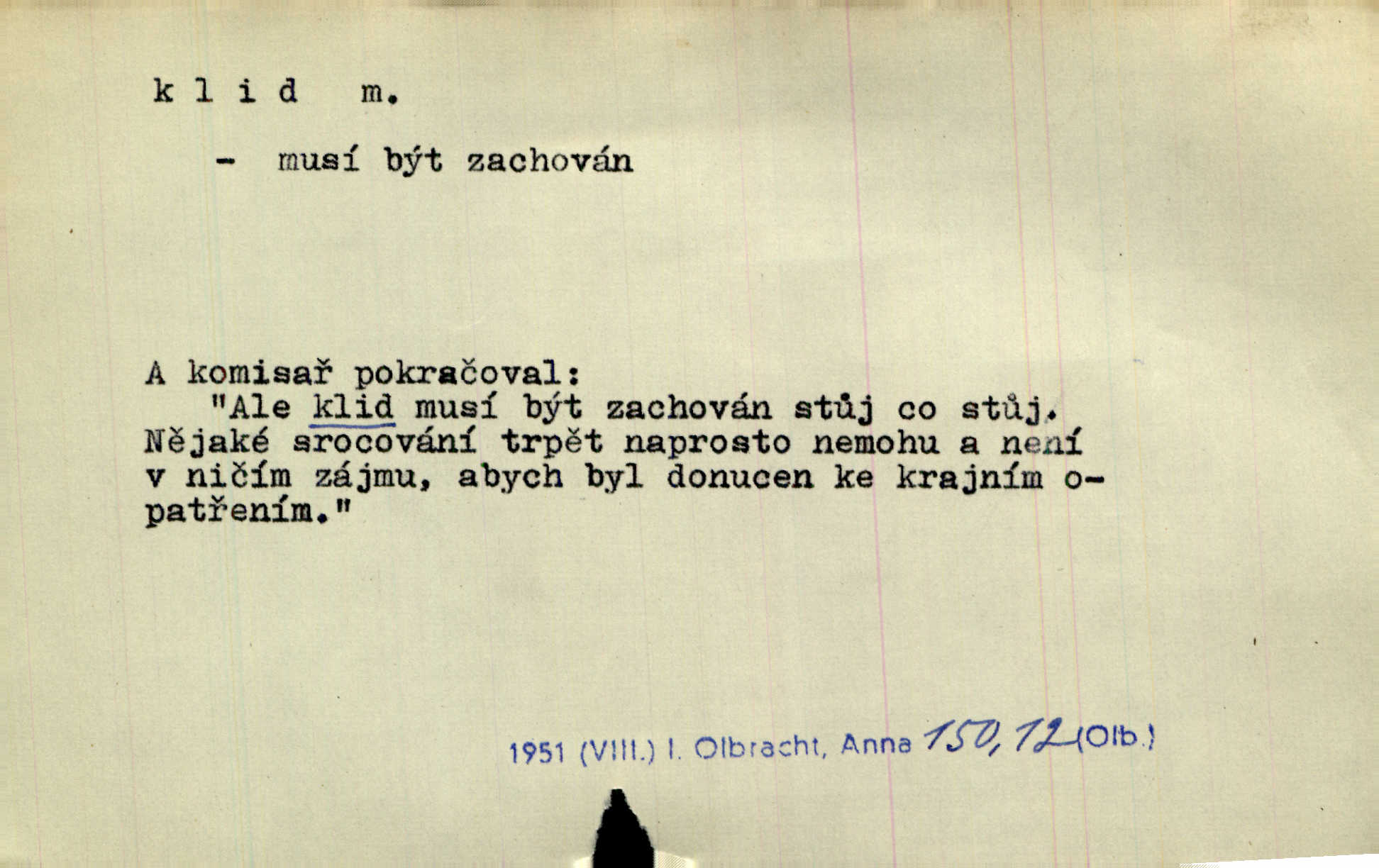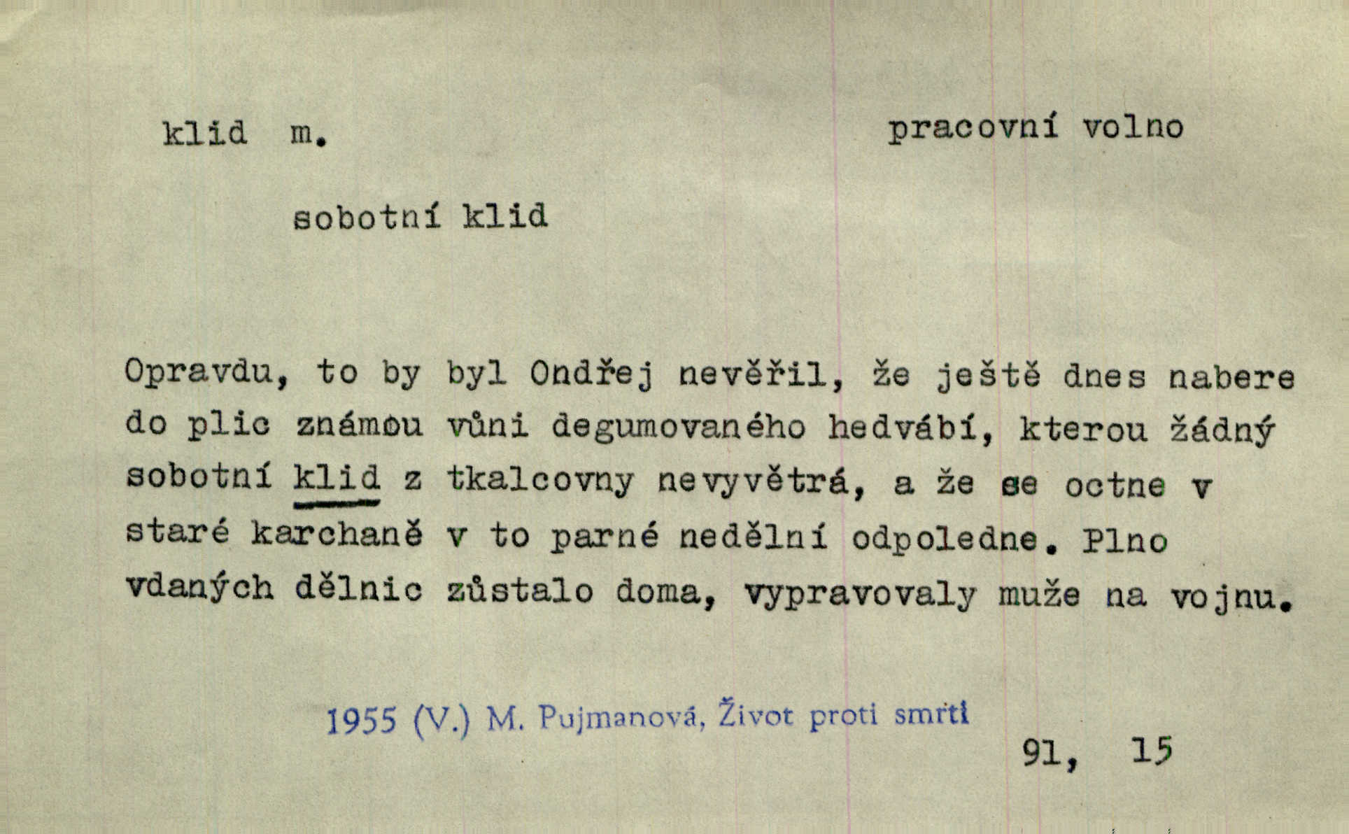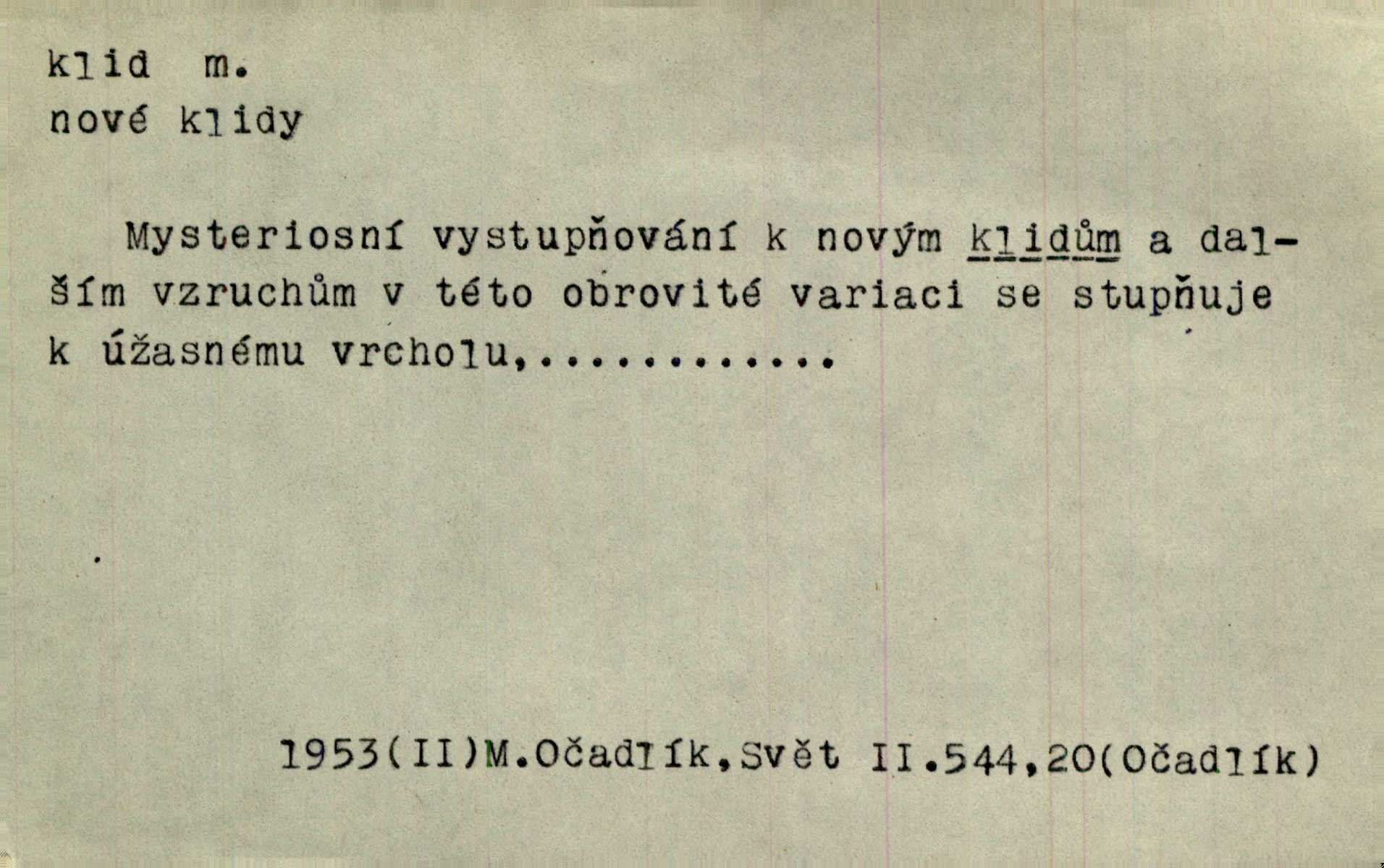 - klid, -u m. nehybnost, nečinnost, odpočinek, pokoj, ticho. Stálý klid bez namáhání se zhnusí každému. Durd. Po jarmarečních dnech nastal v Rakovníce zase klid. Win. Vévoda potřebuje pro jednání s Švédskem a Francií klidu zbraní, rozhodl se pro příměří. Pek. Mluvil s kazatelny proti rušení klidu nedělního. Baar. Noční kolem rozproudil se klid. Mácha. Fys. vlastnost tělesa, že nemění svou polohu (op. pohyb). Úř. klid nedělní a sváteční zákonem upravené zastavení živnostenské práce v určité dny. Práv. klid řízení po dohodnutí sporných stran, aby se ve sporu zatím nepokračovalo. Těl. cvičení na kruzích v klidu (op. v hupu). D klidnost, nevzrušenost, chladná mysl. Nemiloval mrzutostí, poněvadž jej přiváděly z klidu. Šim. Hovořil s největším klidem. Rais. Jezdec, neztrativ ani okamžik klidu, strhl koně. Jir. V nitru jeho se uhostil klid. Jir. Lit. epický klid objektivnost výpravného básníka. Epický klid vládne jeho [Úprkovými] obrazy. V. Mrš. Stoický klid. S klidem Angličana. Us.