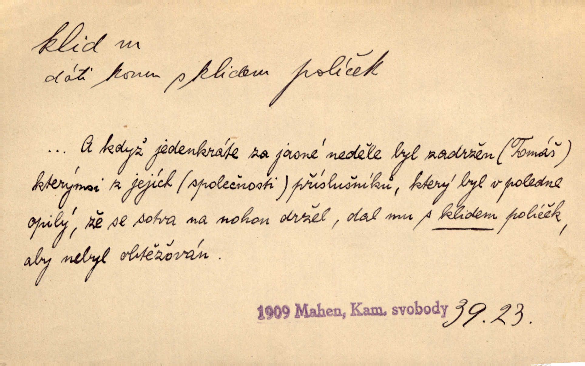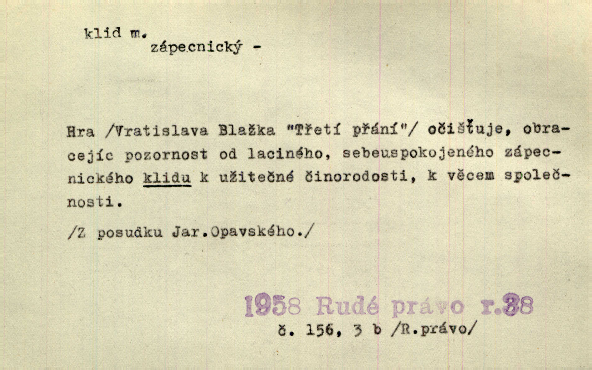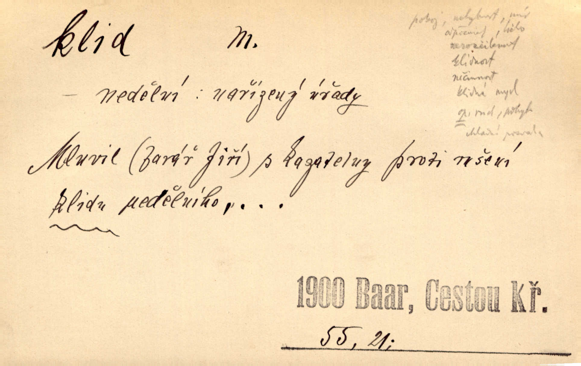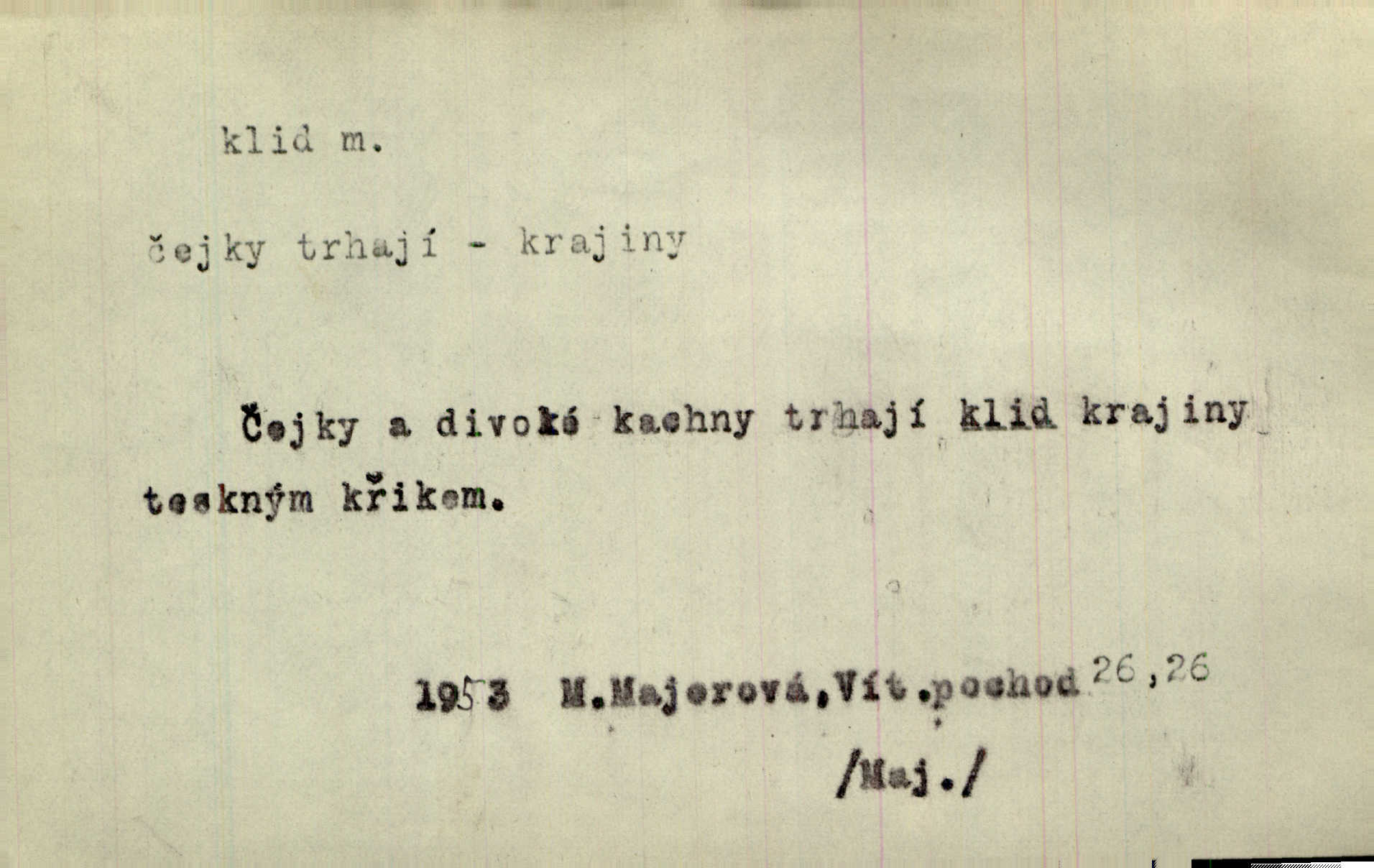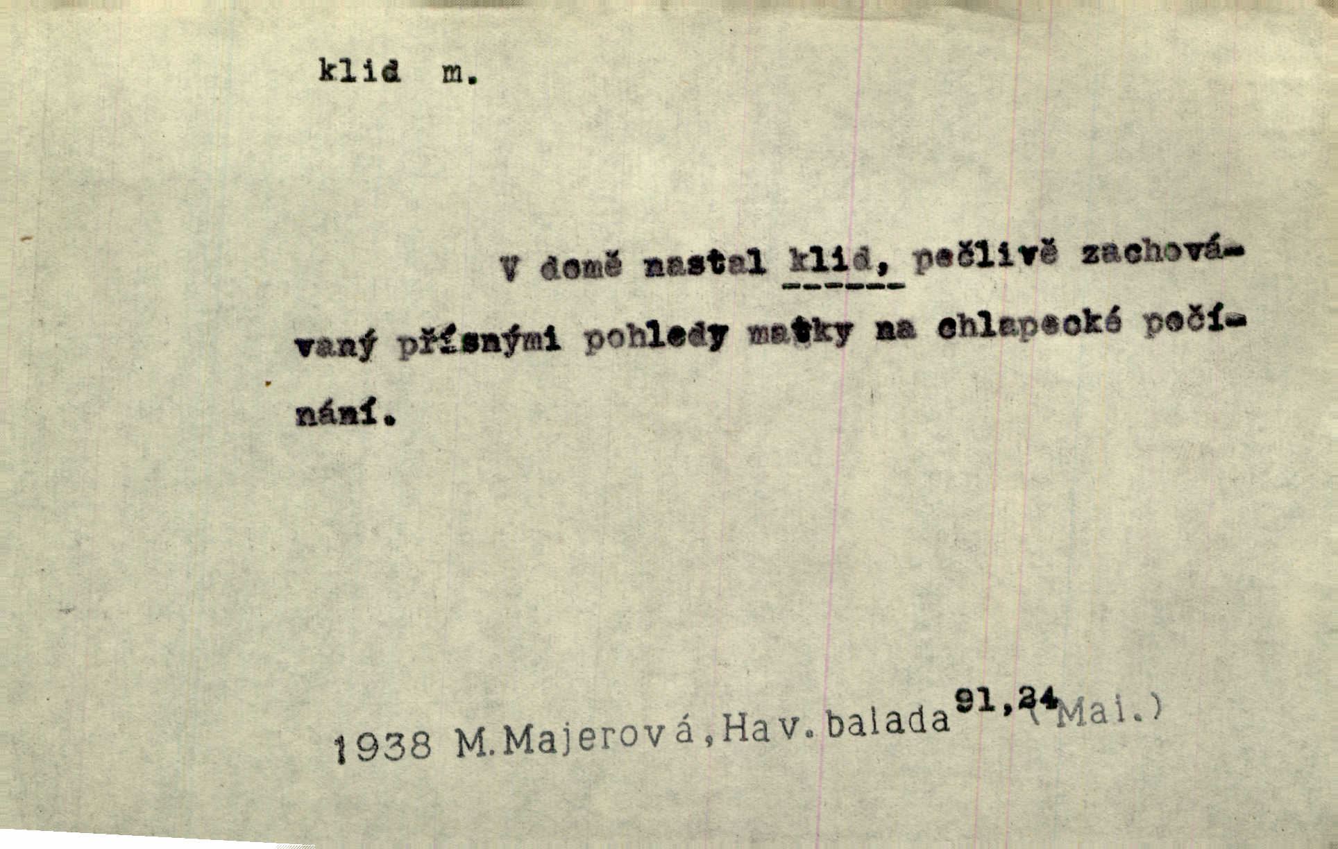 - klid, -u m. nehybnost, nečinnost, odpočinek, pokoj, ticho. Stálý klid bez namáhání se zhnusí každému. Durd. Po jarmarečních dnech nastal v Rakovníce zase klid. Win. Vévoda potřebuje pro jednání s Švédskem a Francií klidu zbraní, rozhodl se pro příměří. Pek. Mluvil s kazatelny proti rušení klidu nedělního. Baar. Noční kolem rozproudil se klid. Mácha. Fys. vlastnost tělesa, že nemění svou polohu (op. pohyb). Úř. klid nedělní a sváteční zákonem upravené zastavení živnostenské práce v určité dny. Práv. klid řízení po dohodnutí sporných stran, aby se ve sporu zatím nepokračovalo. Těl. cvičení na kruzích v klidu (op. v hupu). D klidnost, nevzrušenost, chladná mysl. Nemiloval mrzutostí, poněvadž jej přiváděly z klidu. Šim. Hovořil s největším klidem. Rais. Jezdec, neztrativ ani okamžik klidu, strhl koně. Jir. V nitru jeho se uhostil klid. Jir. Lit. epický klid objektivnost výpravného básníka. Epický klid vládne jeho [Úprkovými] obrazy. V. Mrš. Stoický klid. S klidem Angličana. Us.