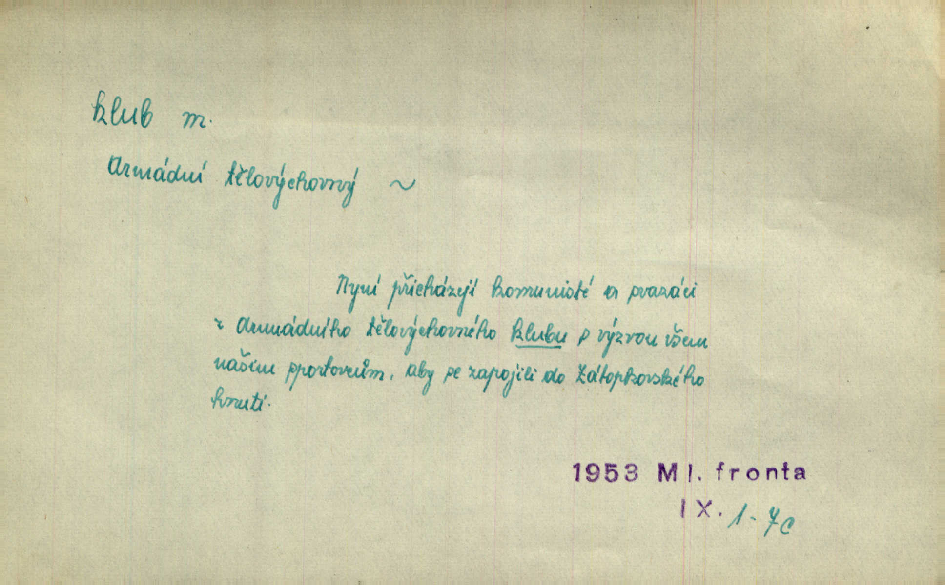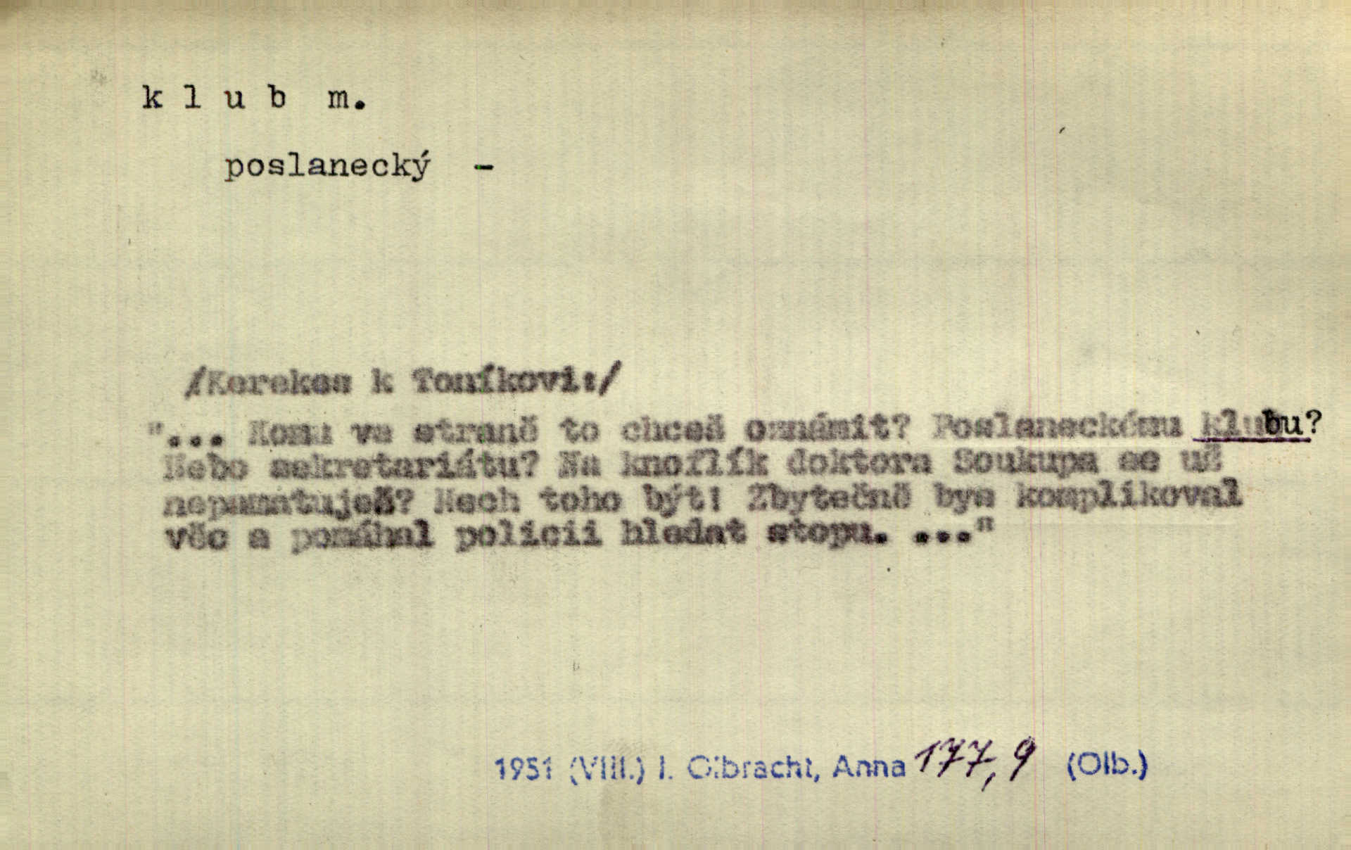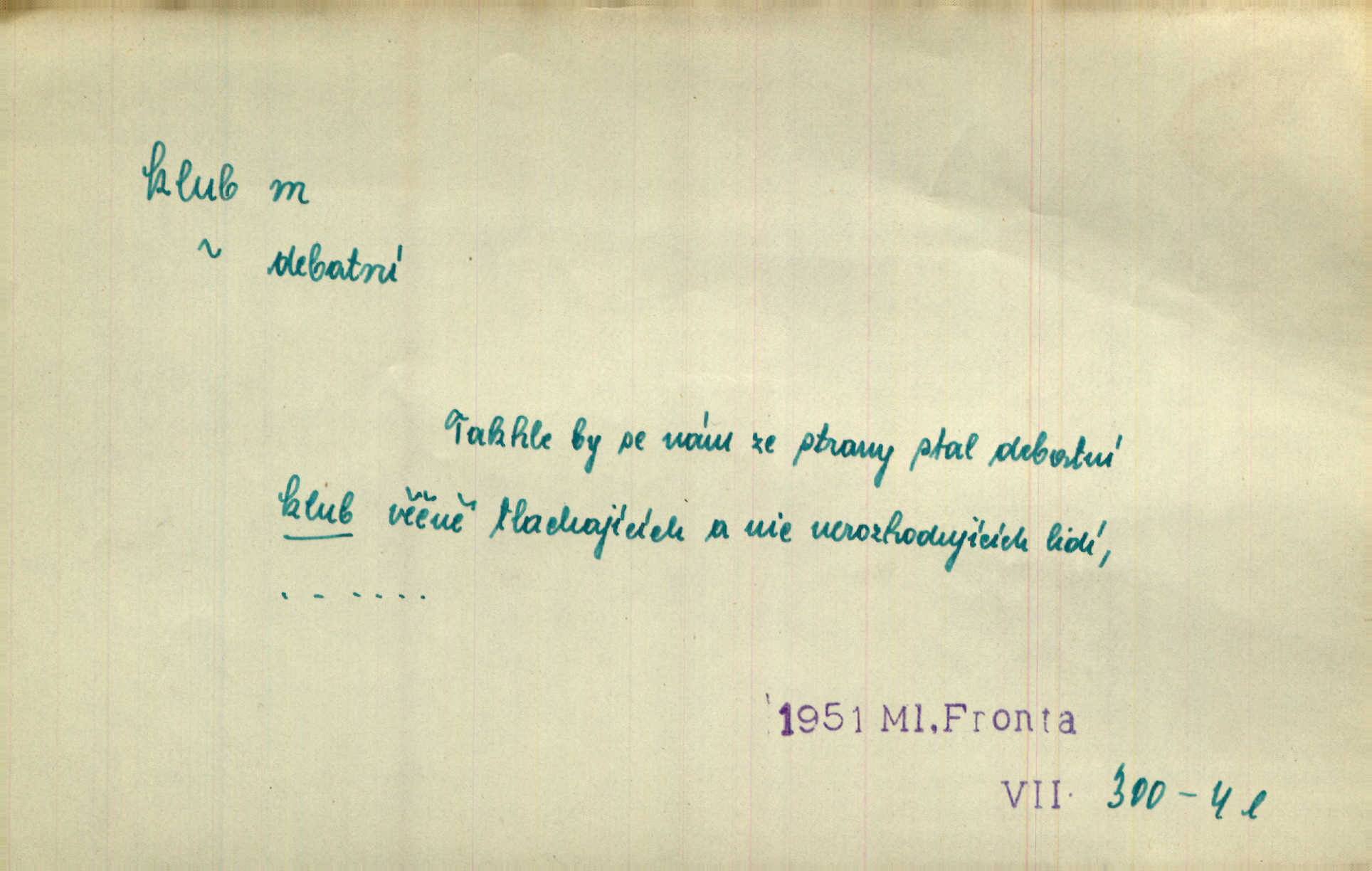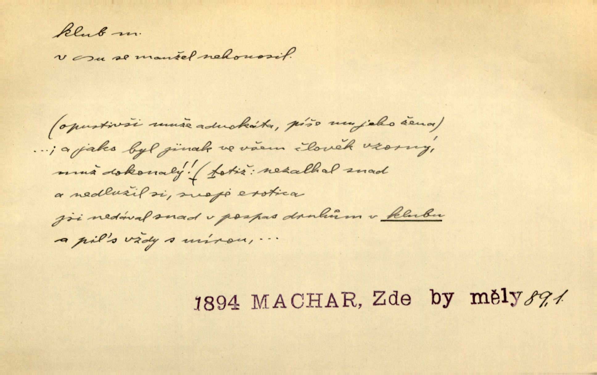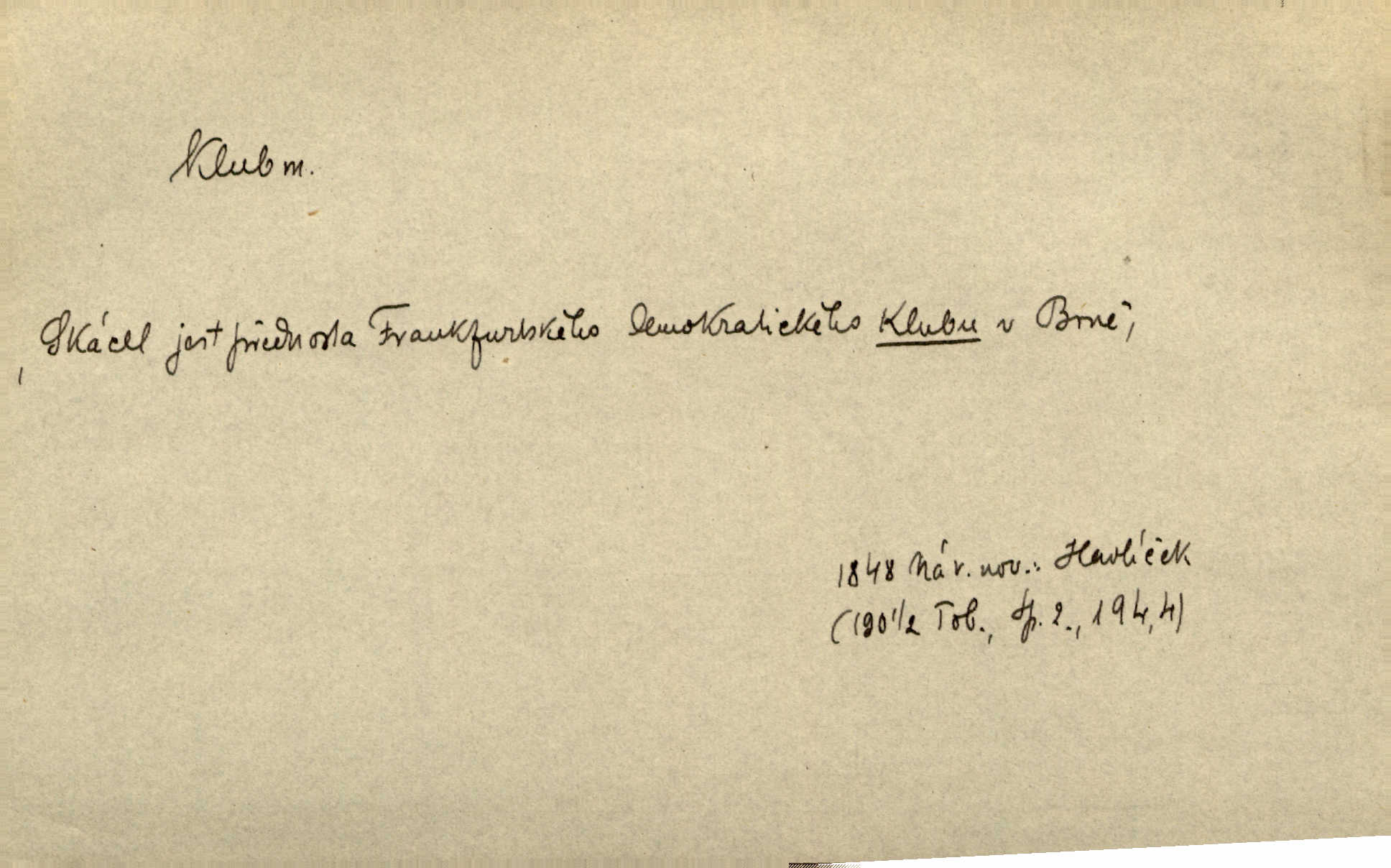 - klub, -u m. uzavřená společnost, zvl. menší, vybranější n. mající i společenský účel (k zábavě, sportu, pěstění literatury, politiky a p.): sdružení, spolek. Vypravovala obsah jakési jednoaktovky, kterou hráli na Vinohradech v soukromém klubu dam. V. Mrš. V klubu poslanců českých panovala nezkalená svornost. Grégr. Společenský klub. Klub čsl. turistů. Klub moderních filologů. Evropský literární klub.