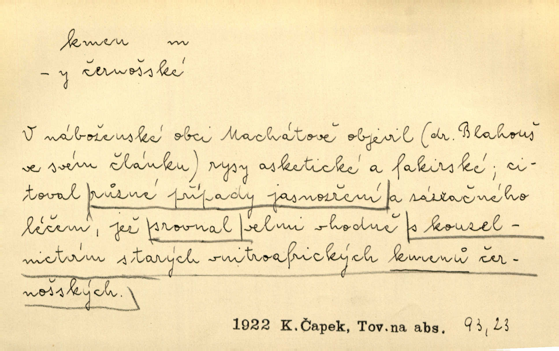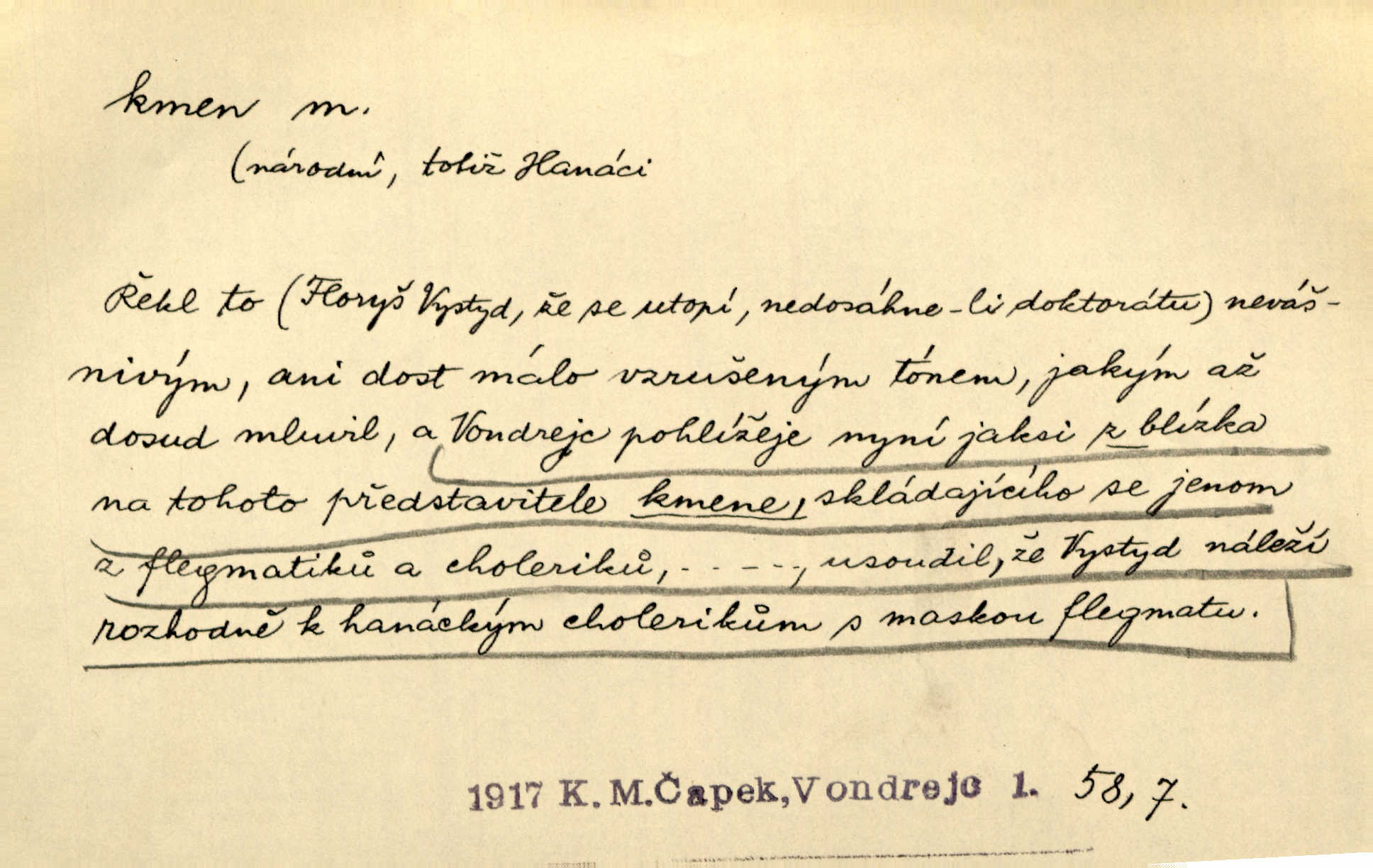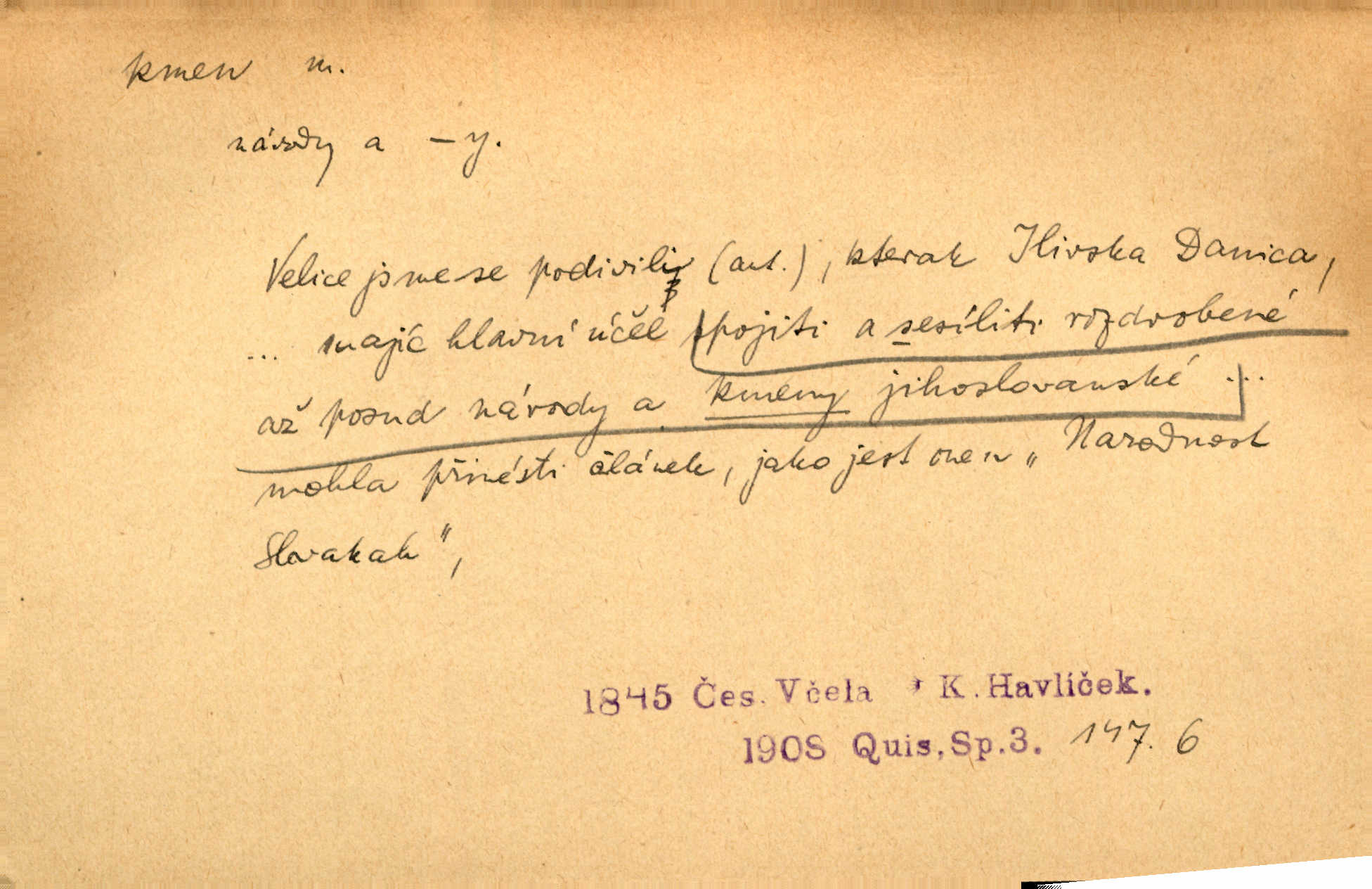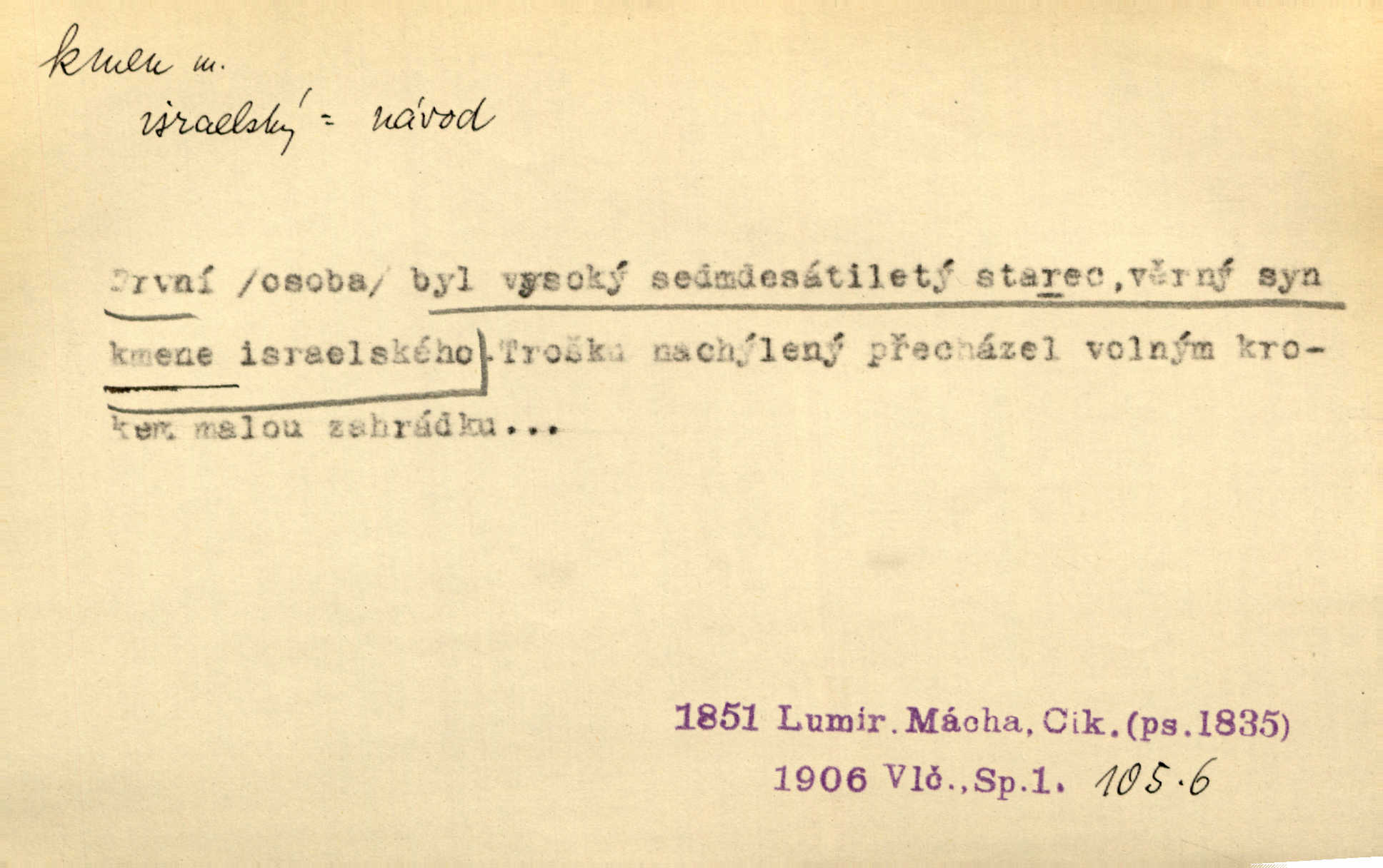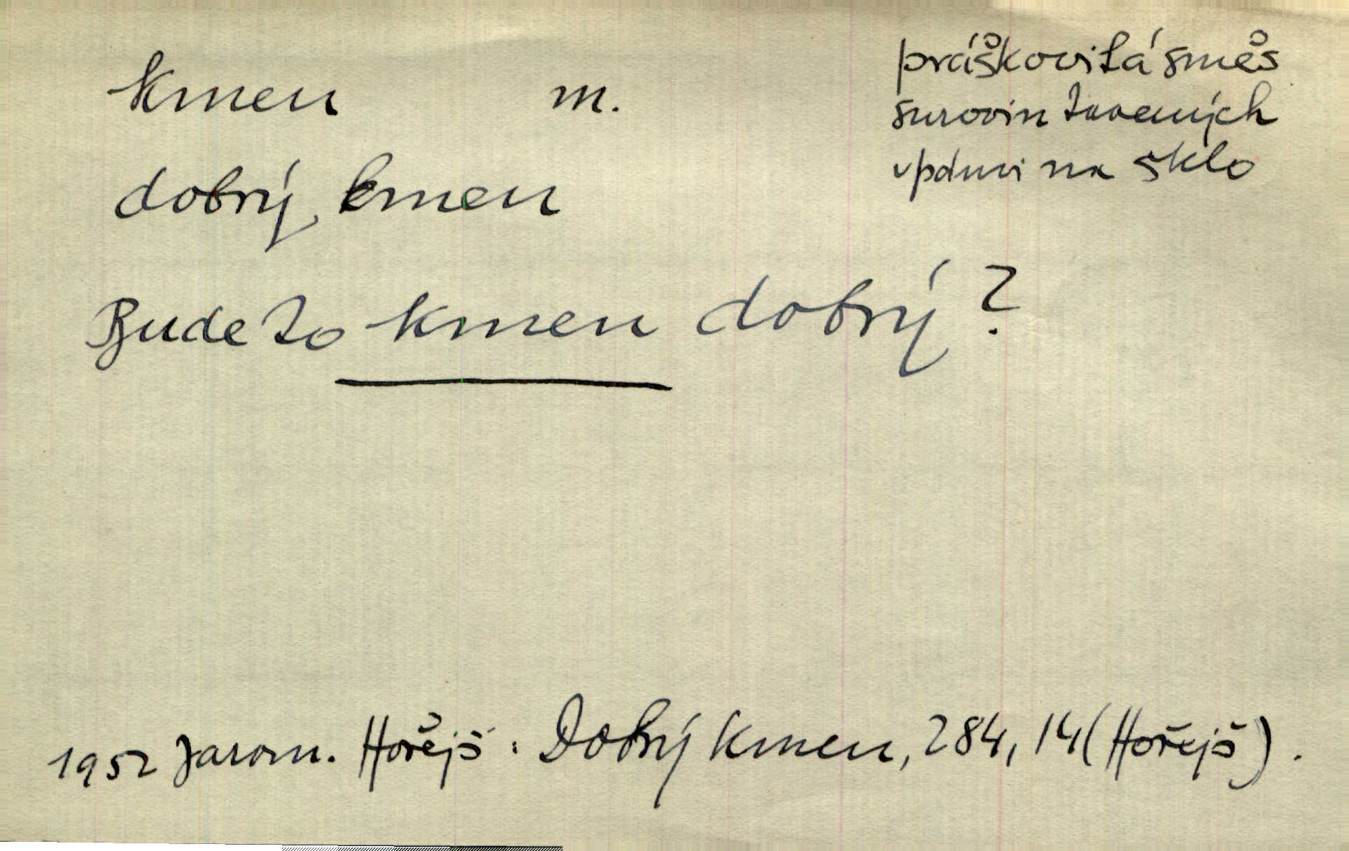 - kmen, -e i -u m. hlavní nadzemní část dřevin, zvl. stromů, peň. Kmen kvetoucí jabloně. Něm. Děvčátko zastavilo se u kmene staré lípy. Jir. Převzal celý kus lesa. Musel kmeny voziti k řece, po níž je dále plavil klády. Prav. Les. kmen loupaný, kmen na prkna, kmen pramenový vorová kláda. Vin. matečný kmen [révy]. D Řidč. silná větev stromu. Laca posadil se na nejvyšší kmen [hrušně] směle jako vrabec. Preis. Že se mnoholetá jíva nízko v pevné kmeny rozpínala, bylo by se mu [zoufalci chystajícímu se k oběšení] snad dost snadno podařilo, nahoru se vyhoupnout. Tyl. D název rozličně velkých skupin lidstva dělených podle příbuznosti: větší celek nežli rod, část národa. Staré vnitroafrické kmeny černošské. K. Čap. Spojiti rozdrobené až posud národy a kmeny jihoslovanské. Havl. Pod nebesy, jež nesou čtyři nejstarší zástupci kmenů Israelských, kráčí Bar Kochba. Vrch. D národ. Národní duch vdechnul nový život v jarý kmen českoslovanský. Sab. Vyniká národ náš i nad jiné slovanské kmeny důvtipem. Pal. Věrný syn kmene israelského. Mácha. D skupina několika příbuzných národů. Jsem dcera českého národa, ten patří ku kmenu slovanskému. Prav. Lidstvo rozpadává se v plemena, tato v čeledi a kmeny, kmenové zas v jednotlivé národy. Čel. Paměti země české začínají se od zpráv o lesu Hercynském a starých jeho obyvatelích kmene celtického a německého. Tomek. D rod. Byl [Václav III.] posledním králem a vládcem nad českou zemí z kmene Přemyslova. Mácha. Kmen mohutných někdy Vítkovcův dělil se za věku tohoto již na několikero větví. Pal. Vždyť je také z kmene Vršovců. Mik. D oddělení při klasifikaci živočichů a rostlin. Biol. soubor jedinců v jistých mezích proměnlivých, ale stejných podle vlohové konstituce, linie. Zool. a bot. skupina příbuzných tříd. Mysl. a hosp. chovný kmen základní rod chovu. D Gram. část slova, která zbývá po oddělení ohýbacích přípon. D základ, podstatná část, jádro něčeho. Kmen její [společnosti] zůstával týž, přizvaní však se často střídali. Herrm. Vy máte [kníže] svůj kmen úředníků a služebníků, někteří co pamět lidská sahá už vašemu rodu slouží. Baar. [Časopisy] měly pevný kmen svých odběratelů. Vrba. Tech. kmen sklářský směs cihlářských surovin v práškovitém stavu. Kmen likérový směs lihu, cukru a vody, likérová základna.