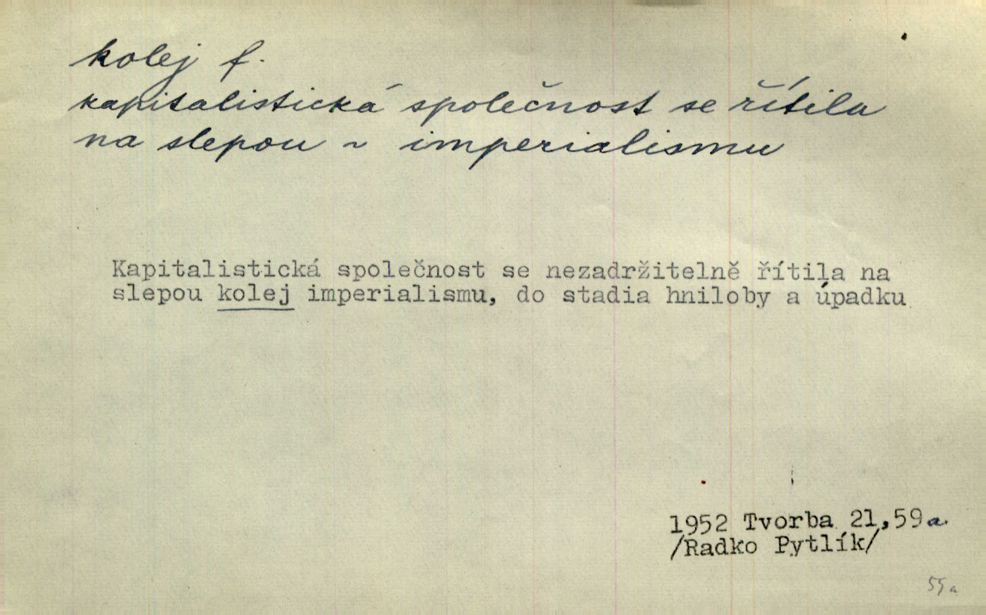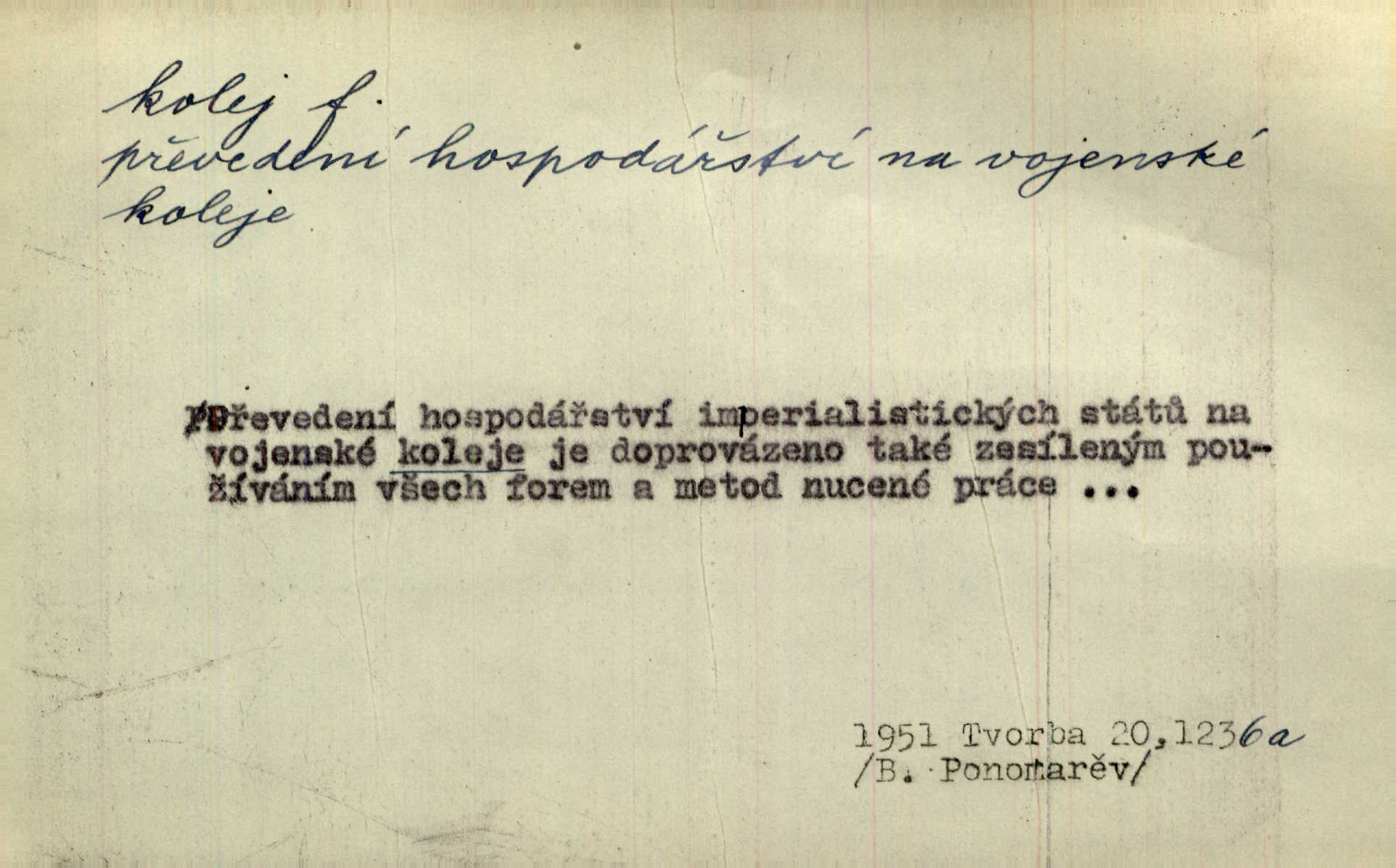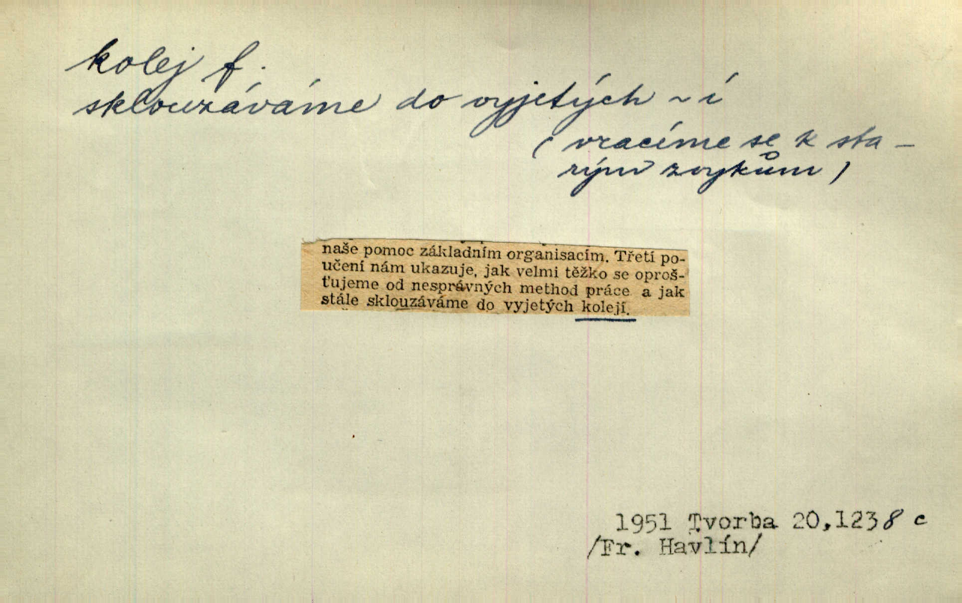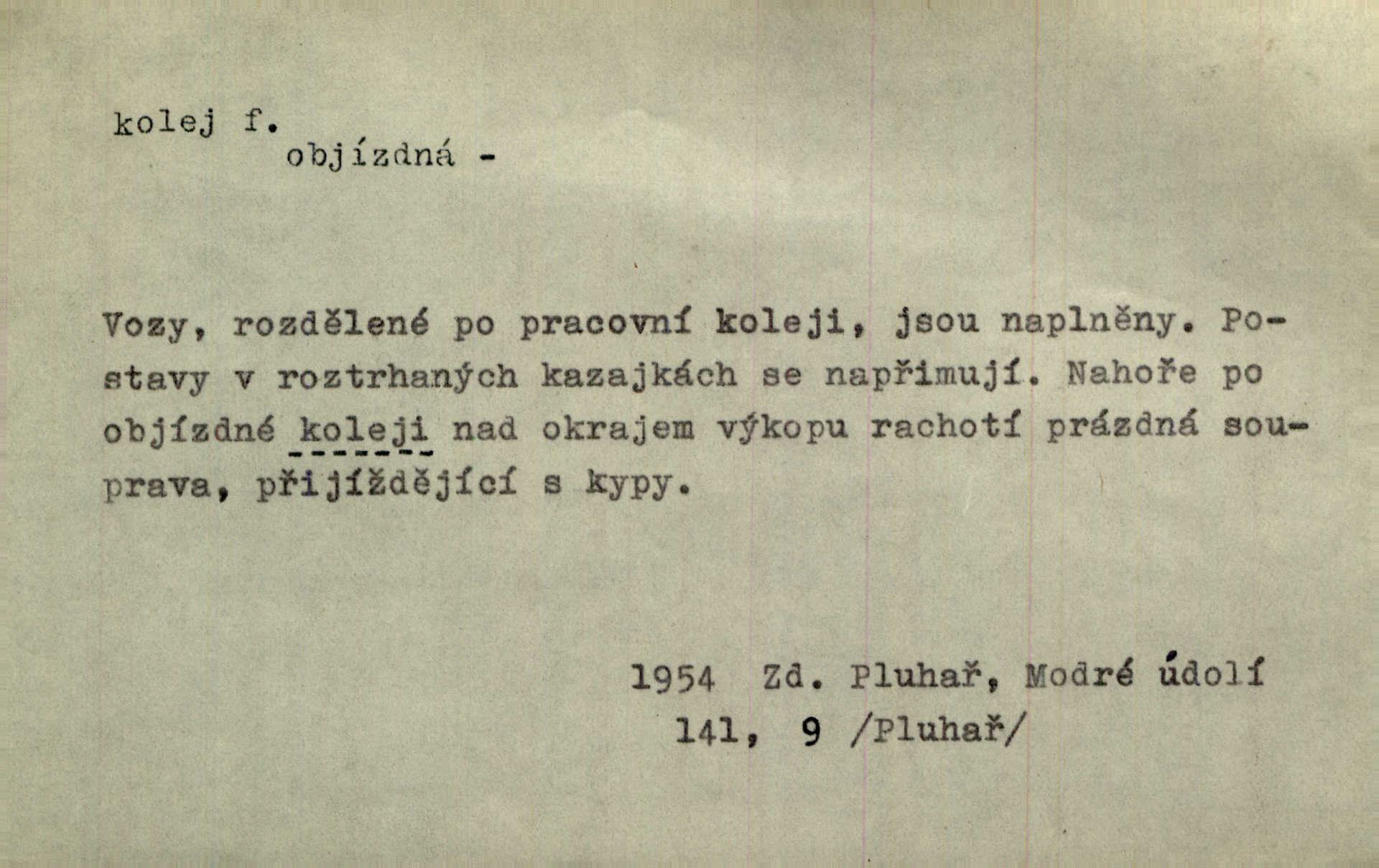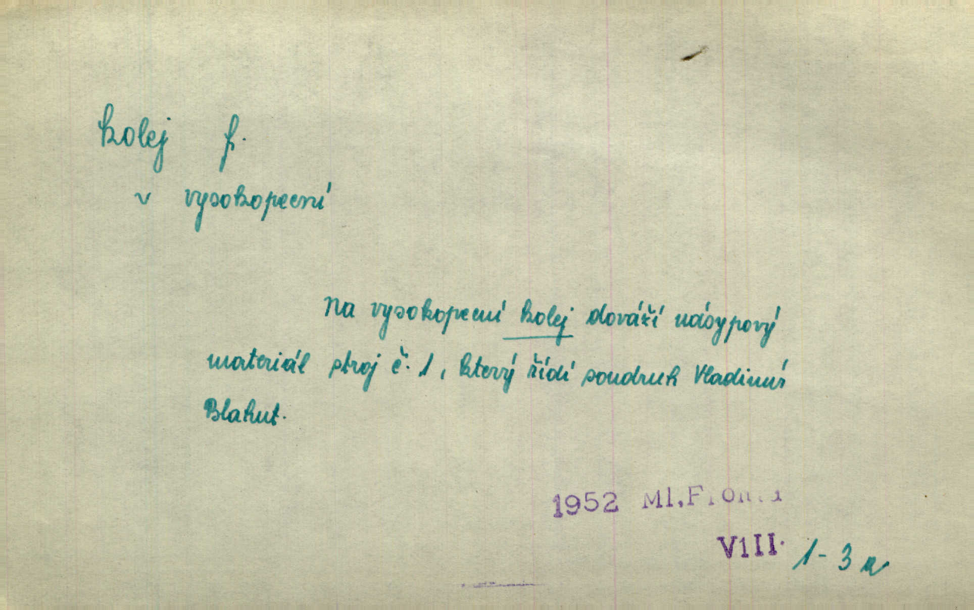 - kolej, -e f. 1. (arch. též m.) stopa, kterou kolo zanechává v cestě. Na cestách ještě stála voda v kolejích. Herb. Ani jedna kolej není ve sněhu. K. Čap. Kolej čerstvá [po saních] vede od statku ke vsi. Jir. D Dial. (jen m.) polní vozová cesta. Lamač ji [kozu] umyl vodou naběhlou v první bouřce do kolejů. Svět. D Přen. Všecko zase pomalu vstupuje v obyčejnou kolej v obvyklý způsob. Prvot. Sekční šéf aprobuje nebo neaprobuje podle vyježděných kolejí. Přít. Za nejpotřebnější práci pokládali jsme uvésti život českého studentstva v jiné koleje. Herb. Neudálo se nic, co by příliš vybočovalo z kolejí. Svob. Již jest tisk časopisový v Praze skoro zas do starých kolejů přiveden. Havl. U Radošův nešlo hospodářství nejnovějšími koleji. Třeb. D kolejnice, dvojice kolejnic. Po vysokém náspu běží kolej. Čech. Konečně přijel vlak zubovité dráhy. Taková dráha má tři koleje. Kosm. Na jedněch z kolejí stálo několik vagonů. Šrám. Přen. Některé otázky byly odsunuty na vedlejší kolej. Přít. Válka odvedla hlavní zájem na jinou kolej. Naše d.