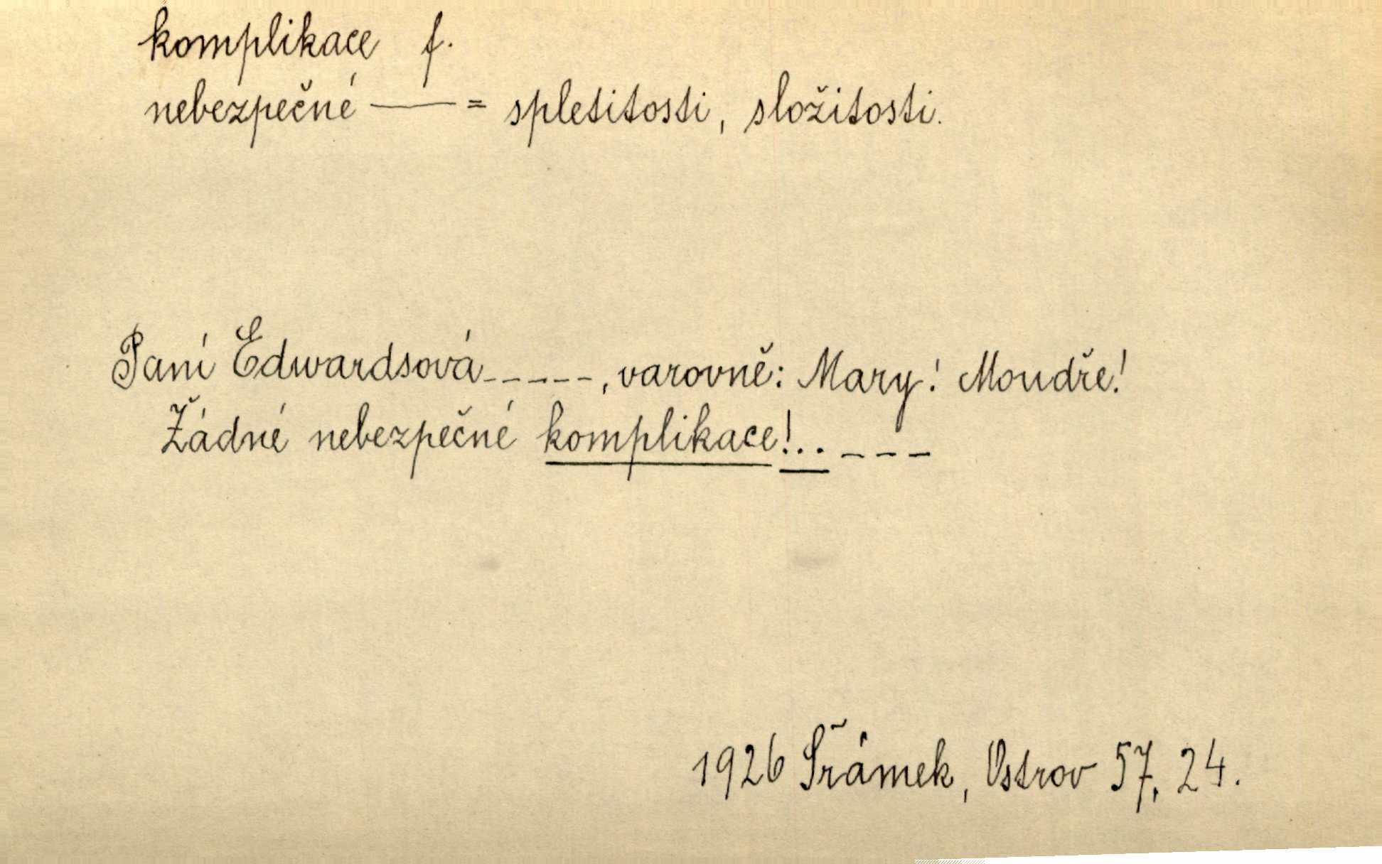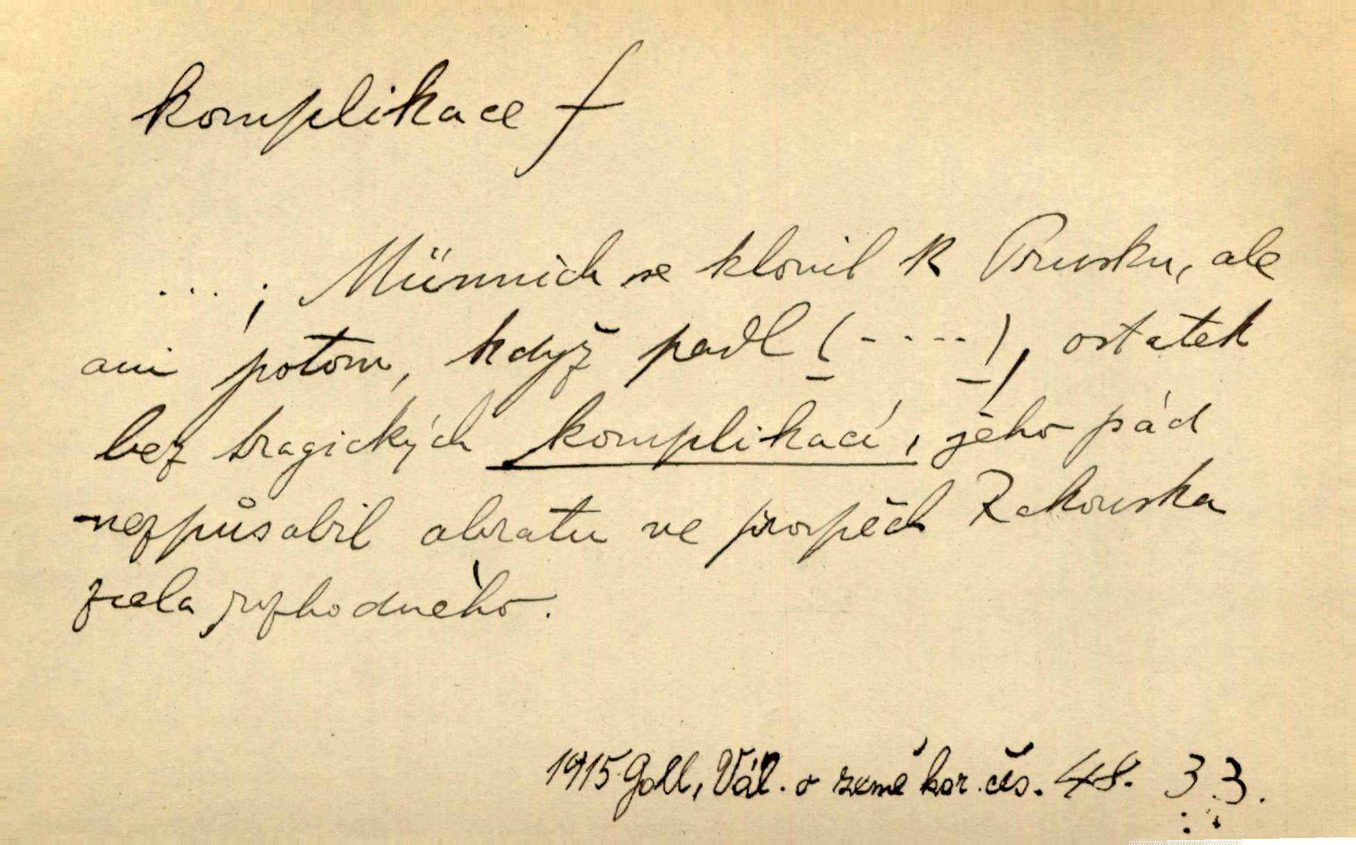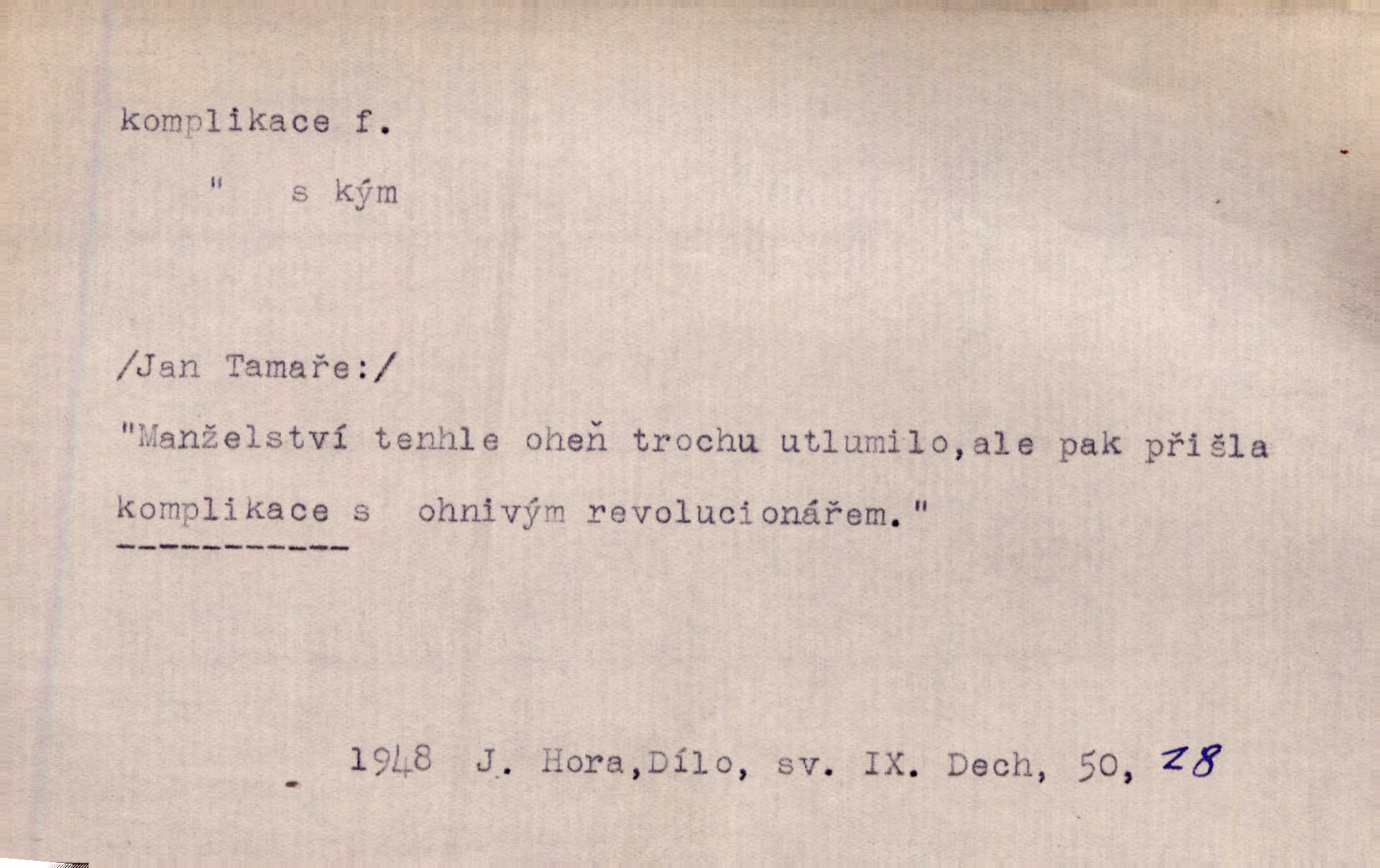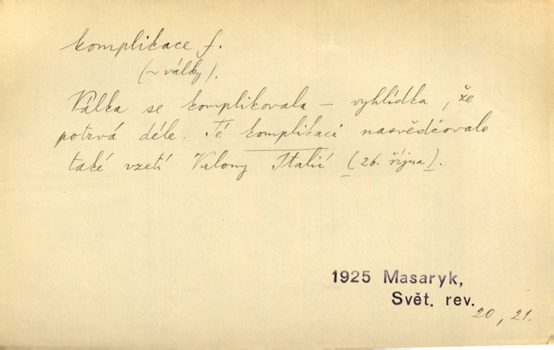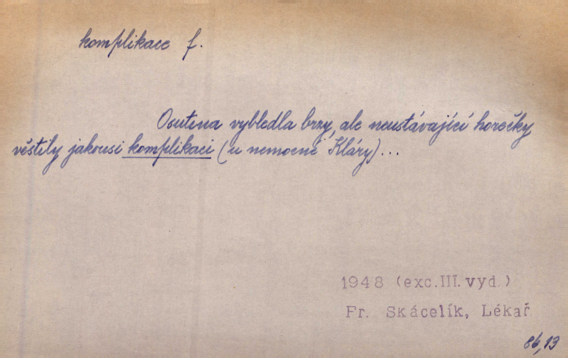 - komplikace, -e f. spleť, složitost, zápletka. Jaká to komplikace představ i obrazů k vyjádření jednoduché o sobě myšlenky! Vrch. Válka se komplikovala — vyhlídka, že potrvá déle. Té komplikaci nasvědčovalo také vzetí Valony Italií. Mas. Lék. nemoc, jež se přidružila k nemoci základní. „Jsou komplikace, nevím, jaké to bude do rána…“ odpověděl lékař. R. Svob.