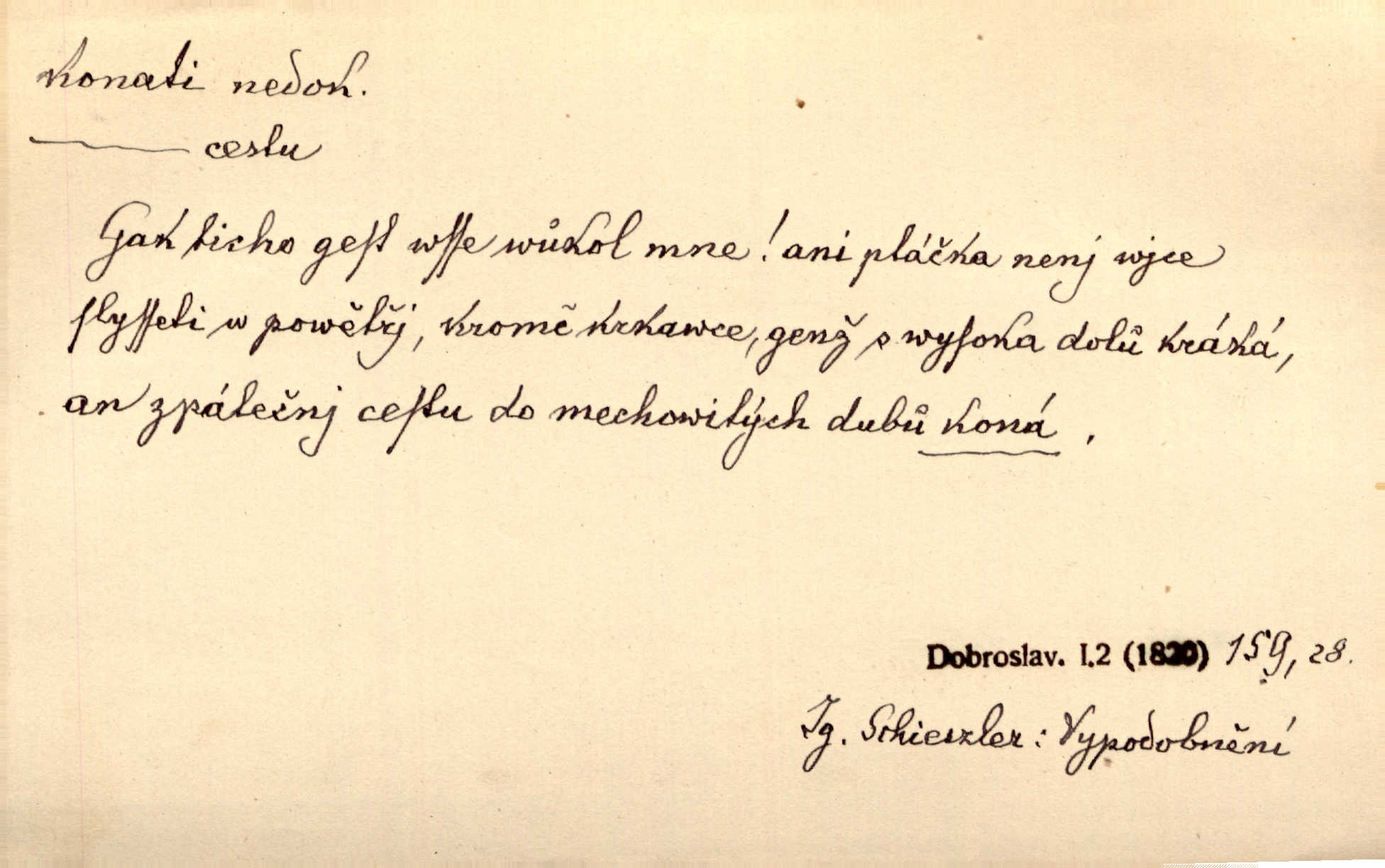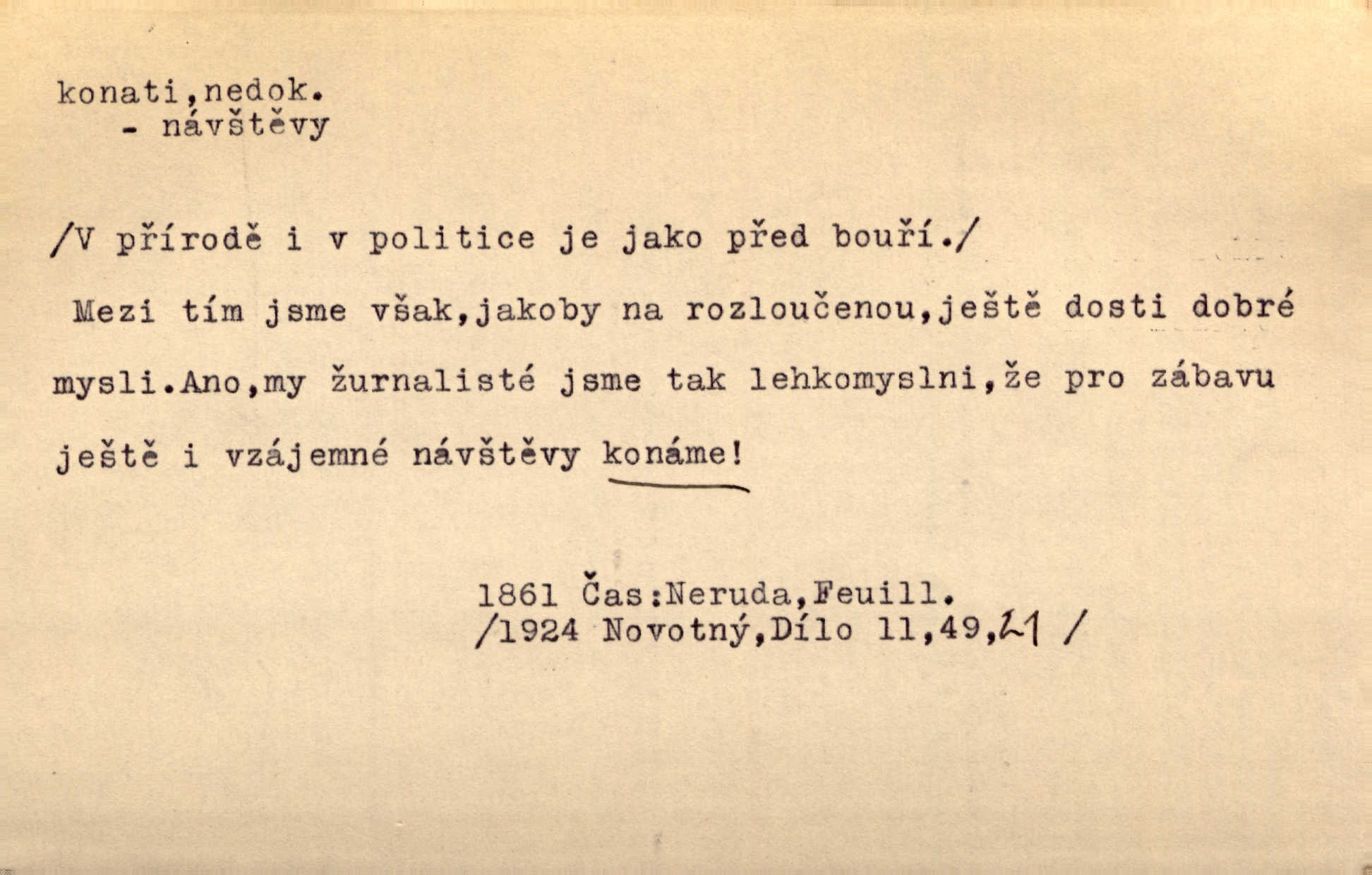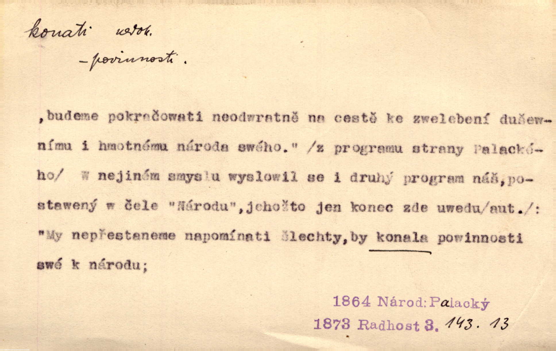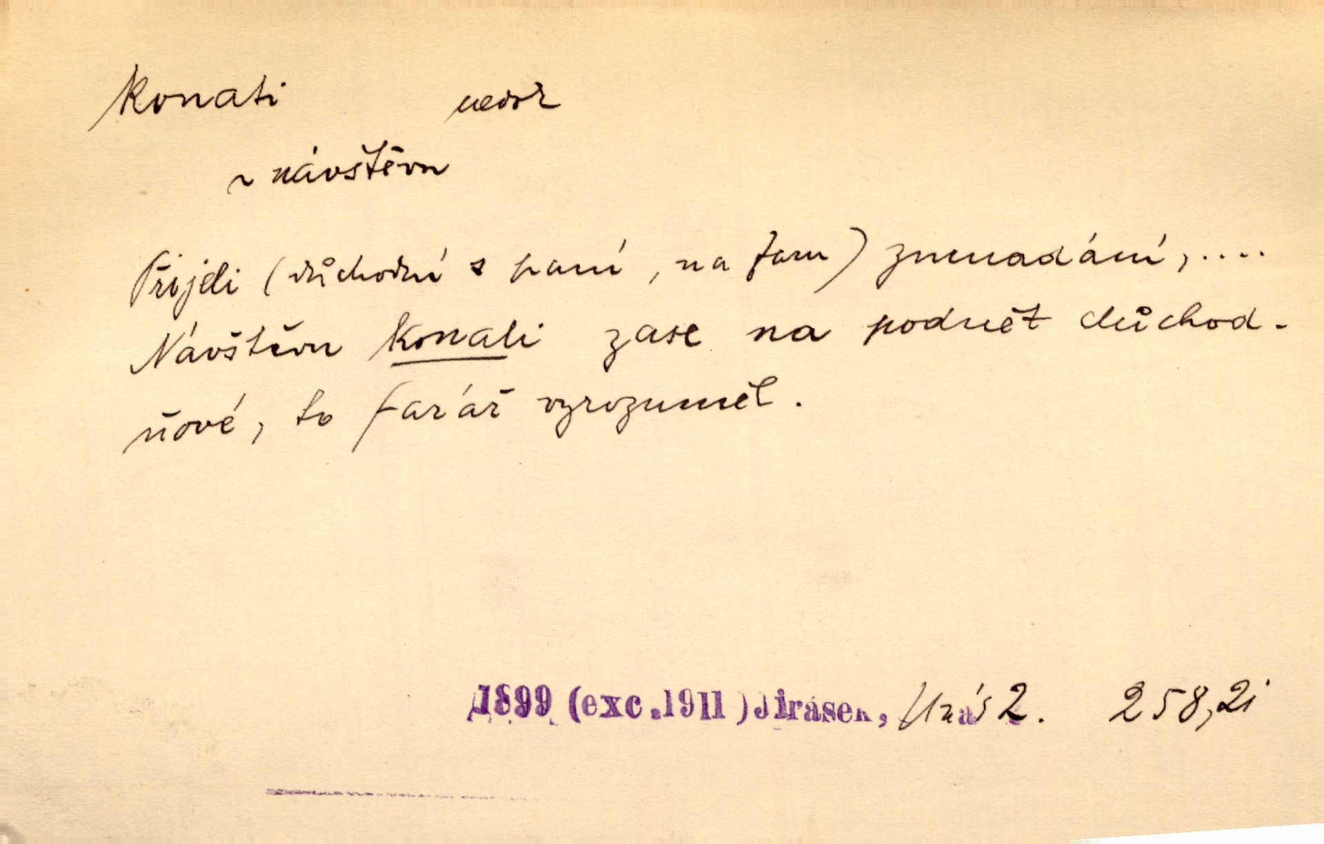 - konati ned. dělati, činiti, prováděti. Konej, co musíš, rád. Něm. Služeb poddanských Chodové nekonali žádných. Jir. Bedlivě konala přípravy. Zey. Budeť nám dalekou cestu dnes konati. Čel. Konali jste svou povinnost řídíce se zákonem. Bozd. Turci konali veřejné modlitby za poděkování Allahovi. Hol. Pochybuji, že by kdy byla zkouška z českého jazyka konána s tak vážnou zevnitrností, jako tato [v Moskvě]. Havl. Konati schůze, přednášky, pokusy, měření a p.