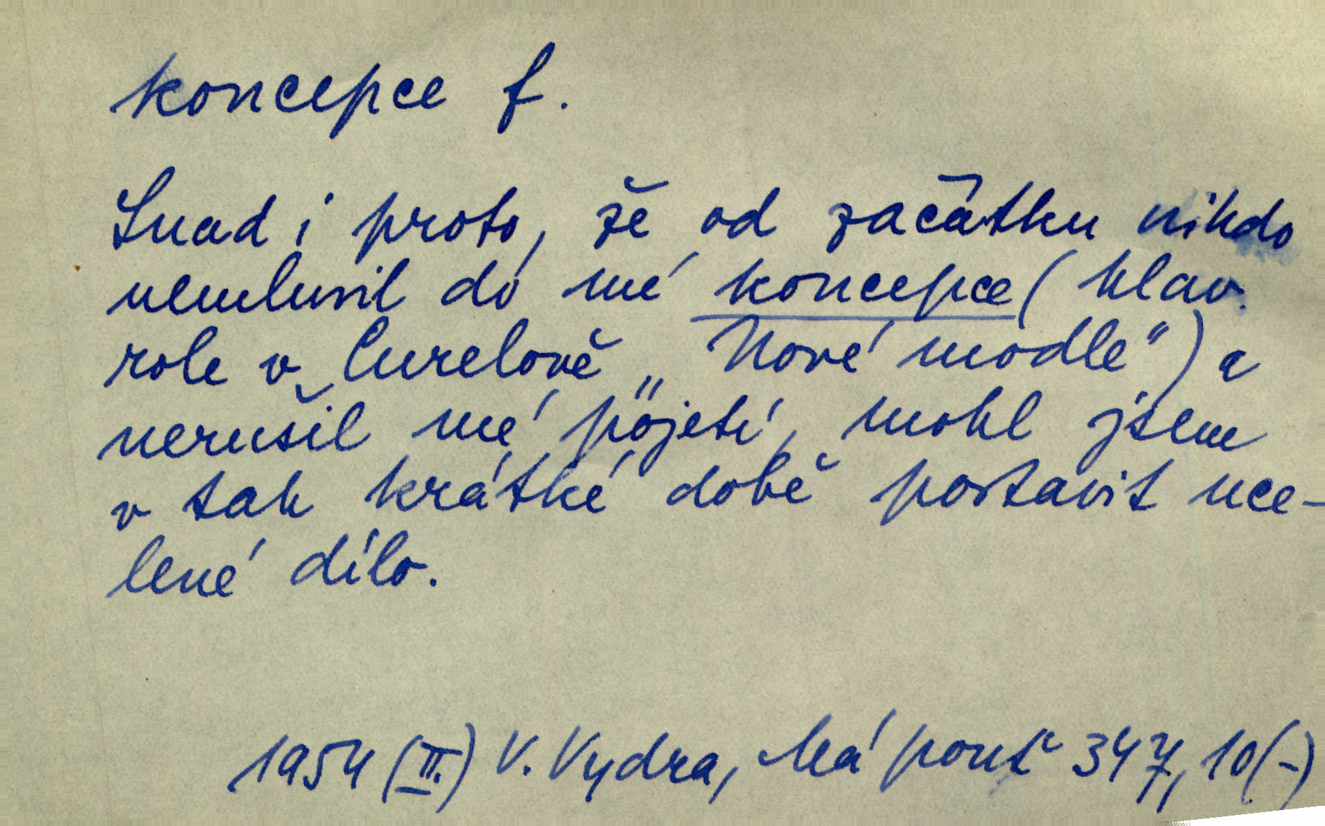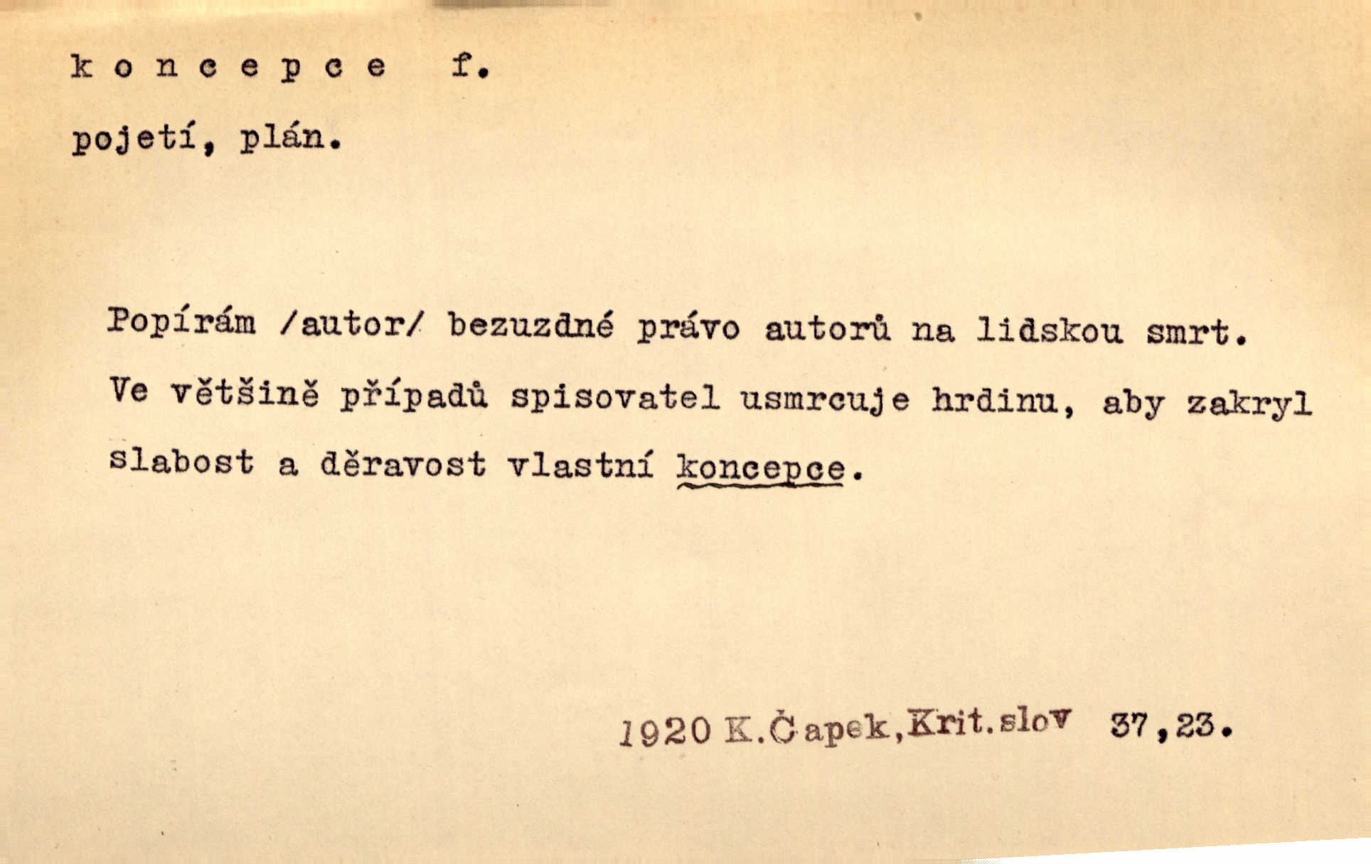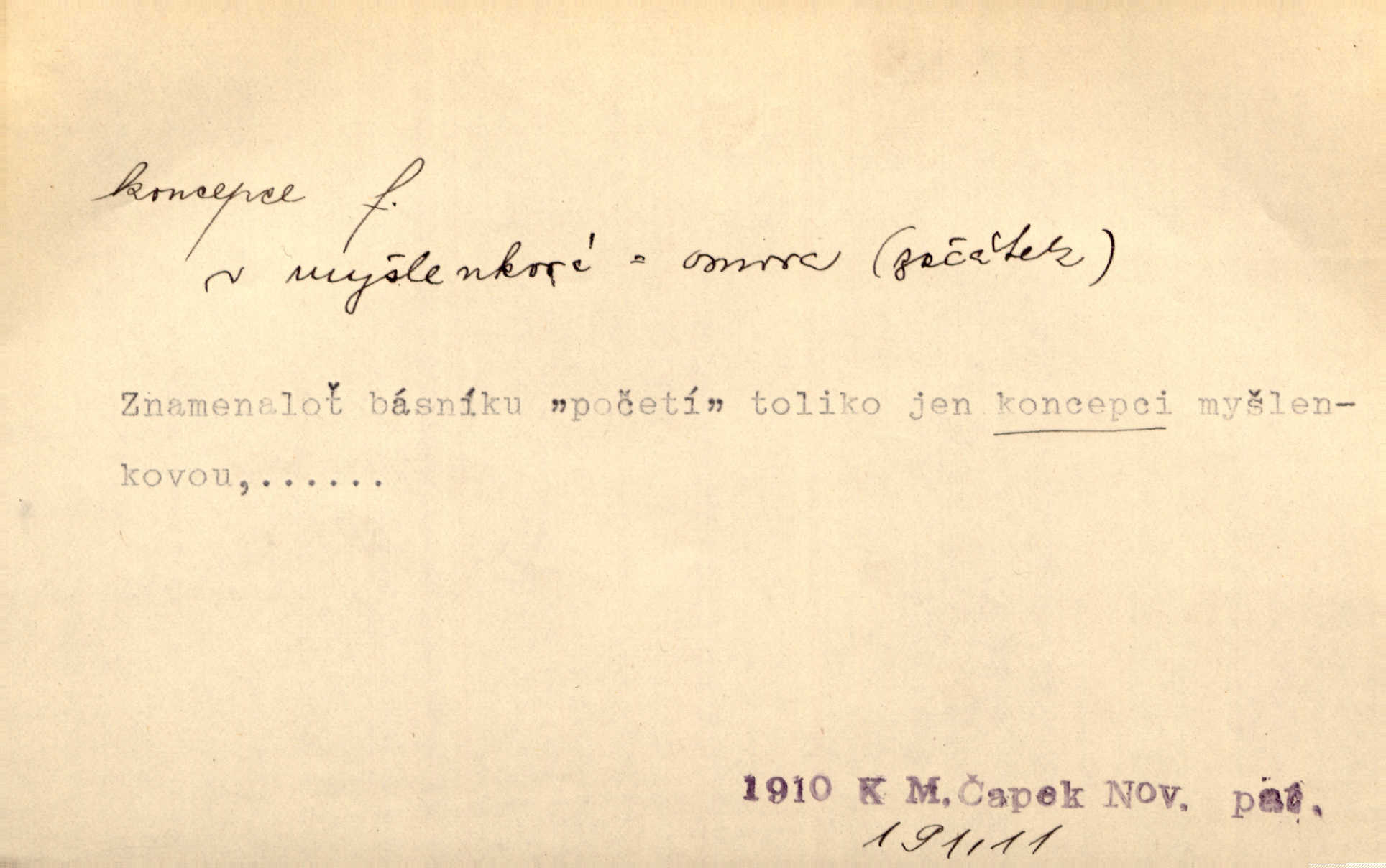 - koncepce, -e f. první rozvrh, plán k vytvoření něčeho, pojetí. Až dotud byl Fábr veliký v sujetu, koncepci a komposici, ale podprostřední kreslíř. Čap. Ch. V koncepci, v tom, co jest dílem sestavovací fantasie, jest obojí [umění a věda] zcela jedno. Durd. To, co navrhl [Valdštejn]‚ byla rebelie, revoluční plán veliké koncepce. Pek. D Biol. početí, vniknutí spermatozoa do vajíčka.