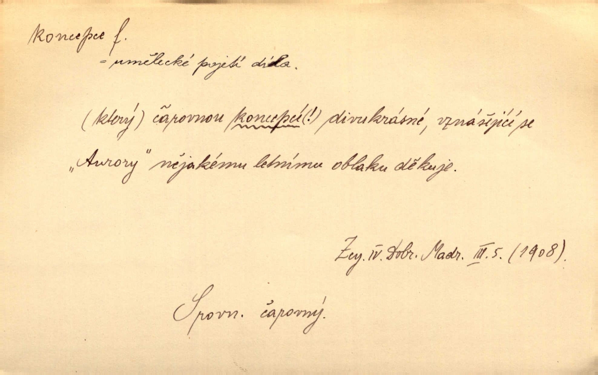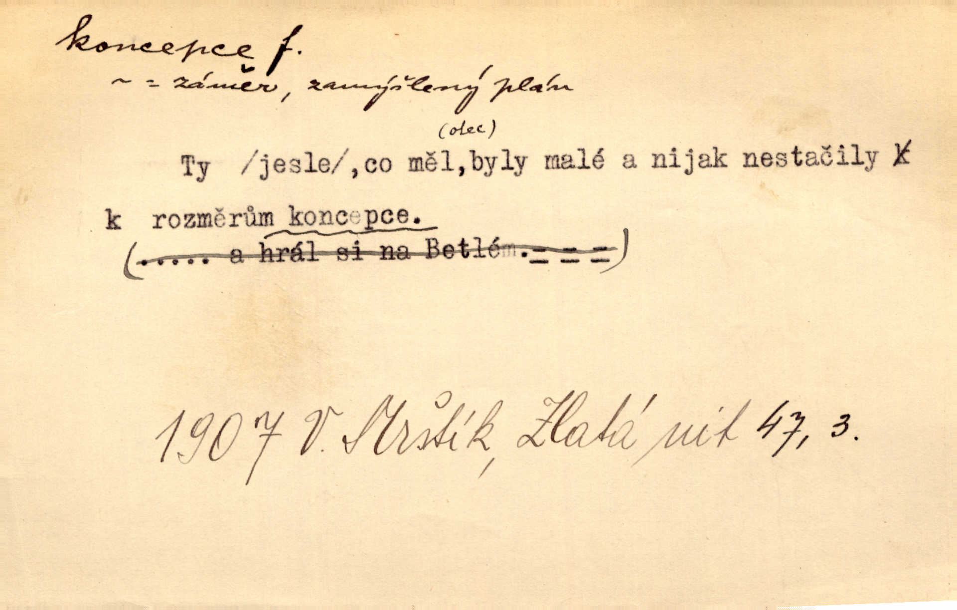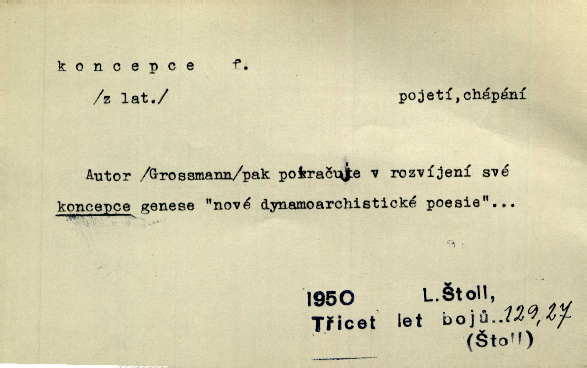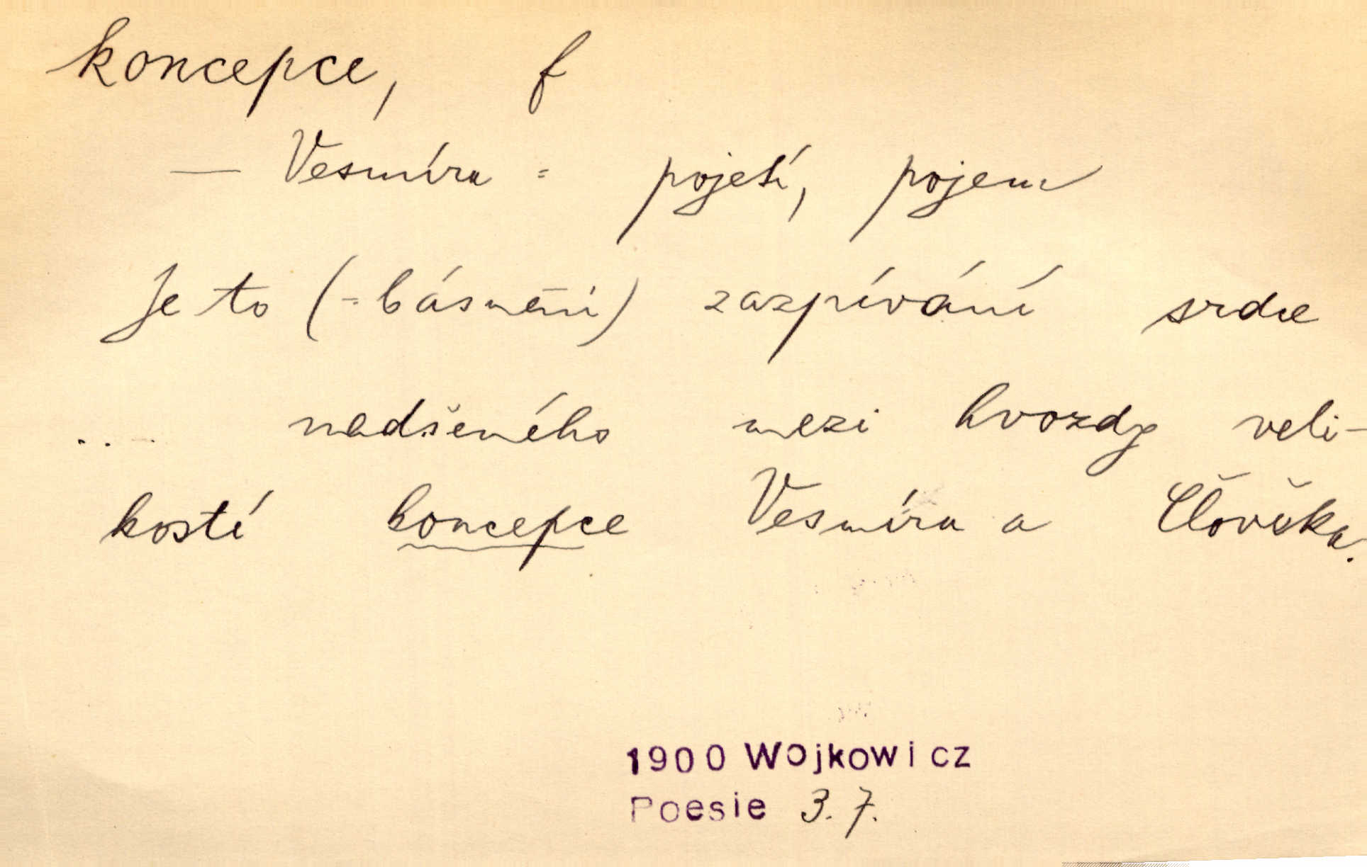 - koncepce, -e f. první rozvrh, plán k vytvoření něčeho, pojetí. Až dotud byl Fábr veliký v sujetu, koncepci a komposici, ale podprostřední kreslíř. Čap. Ch. V koncepci, v tom, co jest dílem sestavovací fantasie, jest obojí [umění a věda] zcela jedno. Durd. To, co navrhl [Valdštejn]‚ byla rebelie, revoluční plán veliké koncepce. Pek. D Biol. početí, vniknutí spermatozoa do vajíčka.