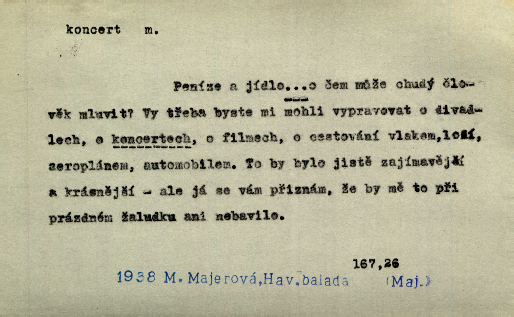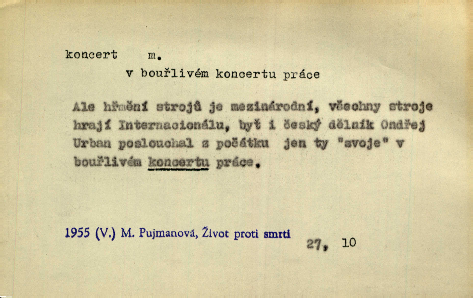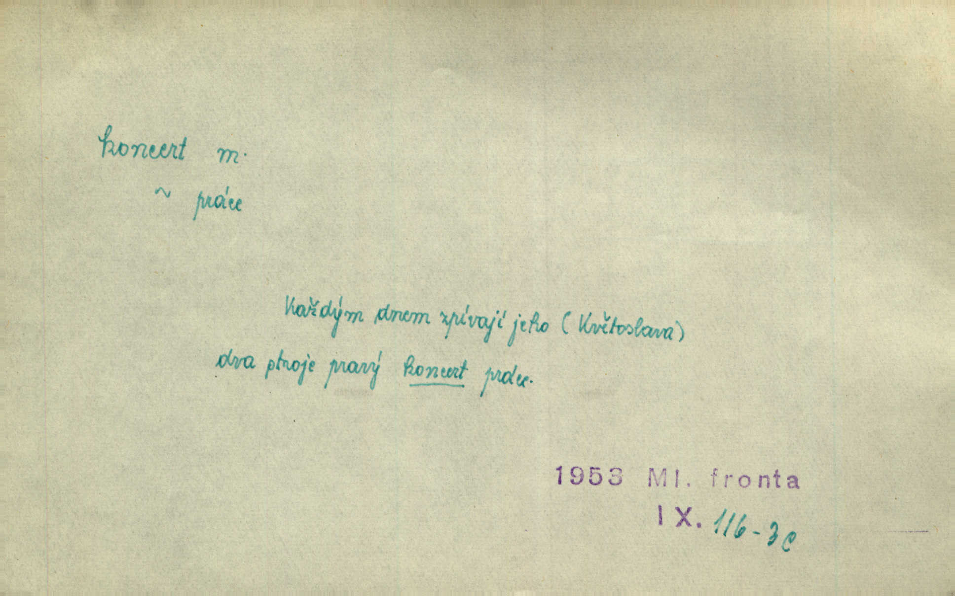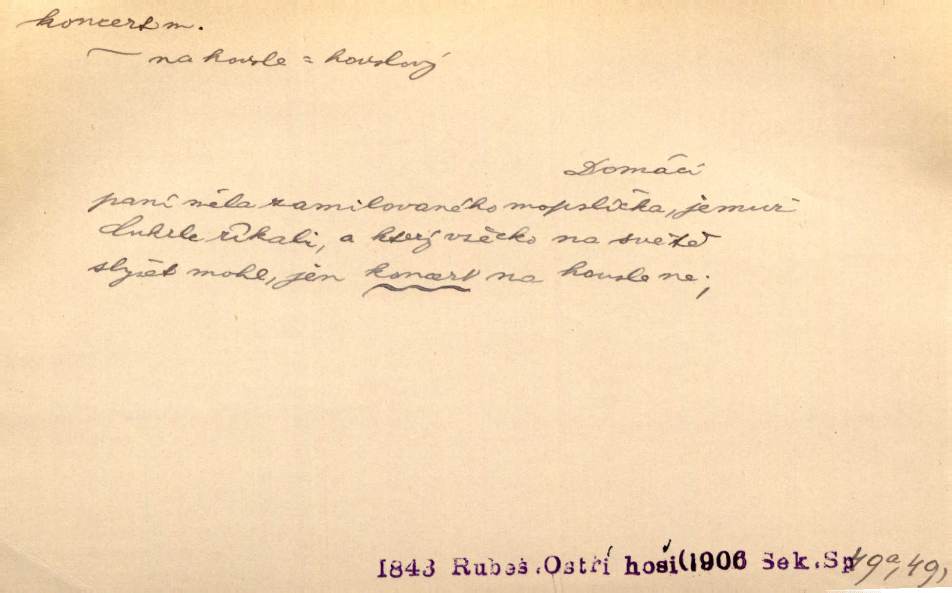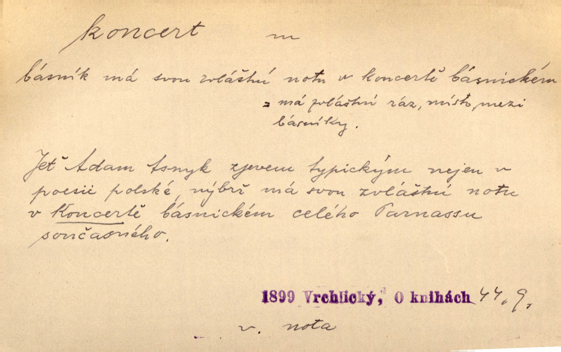 - koncert, -u m. veřejné provozování hudební skladby. Dobročinný koncert „ve prospěch invalidů, jejich vdov a sirotků“. K. Čap. D jakákoli jiná produkce. Drozd spustil nad lesem polední svůj koncert. Rais. Ty ostatní [děti] brečely na postelích. To bývaly koncerty, pro Krista Pána. Kun. Pan Mlacker začal jíst — koncert pro oči, kde kdo se díval. Jedl, mlaskal, olizoval se. Mach. A mosím vám ešče říct, habeste jako stárci drželi pořádek. Ať se nestane nějaké koncert v hospodě rámus, pračka, výtržnost. A. Mrš. On [Úprka] jediný sám syn té země chápe a cítí právě ty nejvyšší koncerty barev, které jsou mu dány. V. Mrš. D větší, technicky nesnadná hudební skladba pro sólový nástroj s doprovodem orchestru. Hrál [Slavík] svůj koncert do A-moll. Obr. živ. D Zř. dohoda. Smlouva se Saskem podmiňovala a předpokládala zároveň smlouvu širší, „koncert“ proti Prusku. Goll.