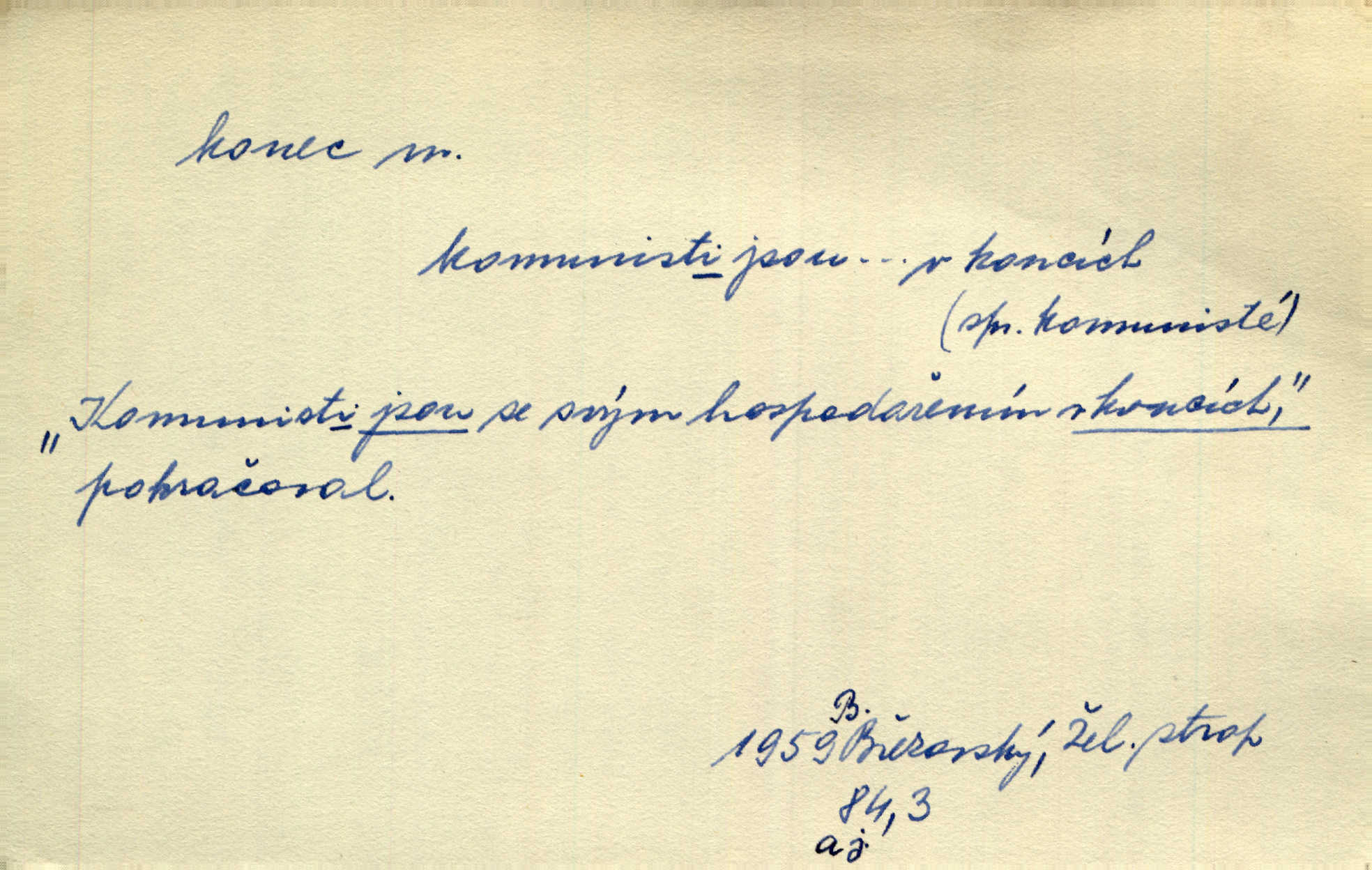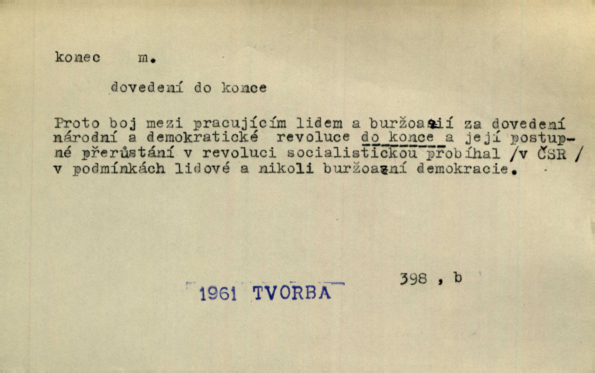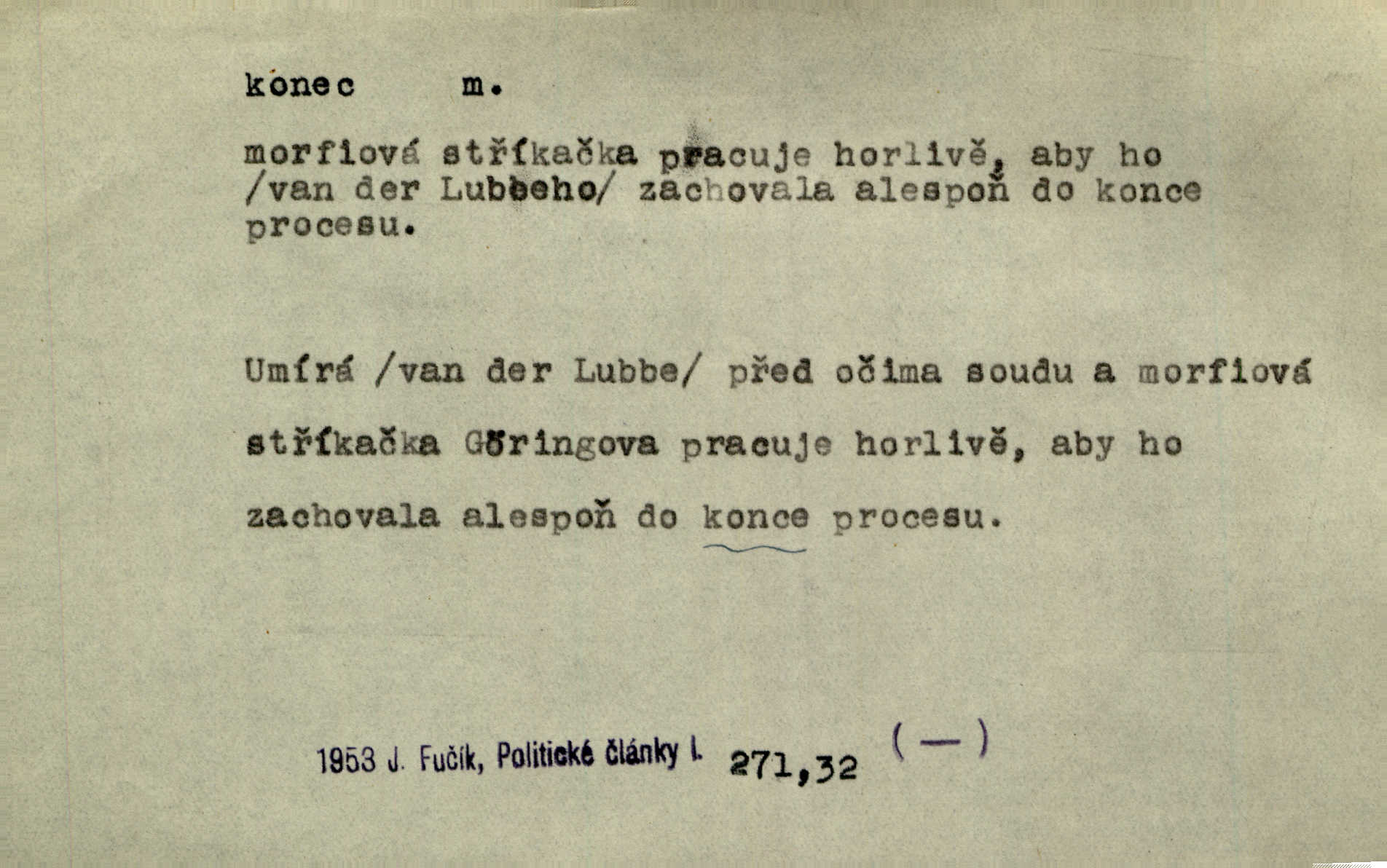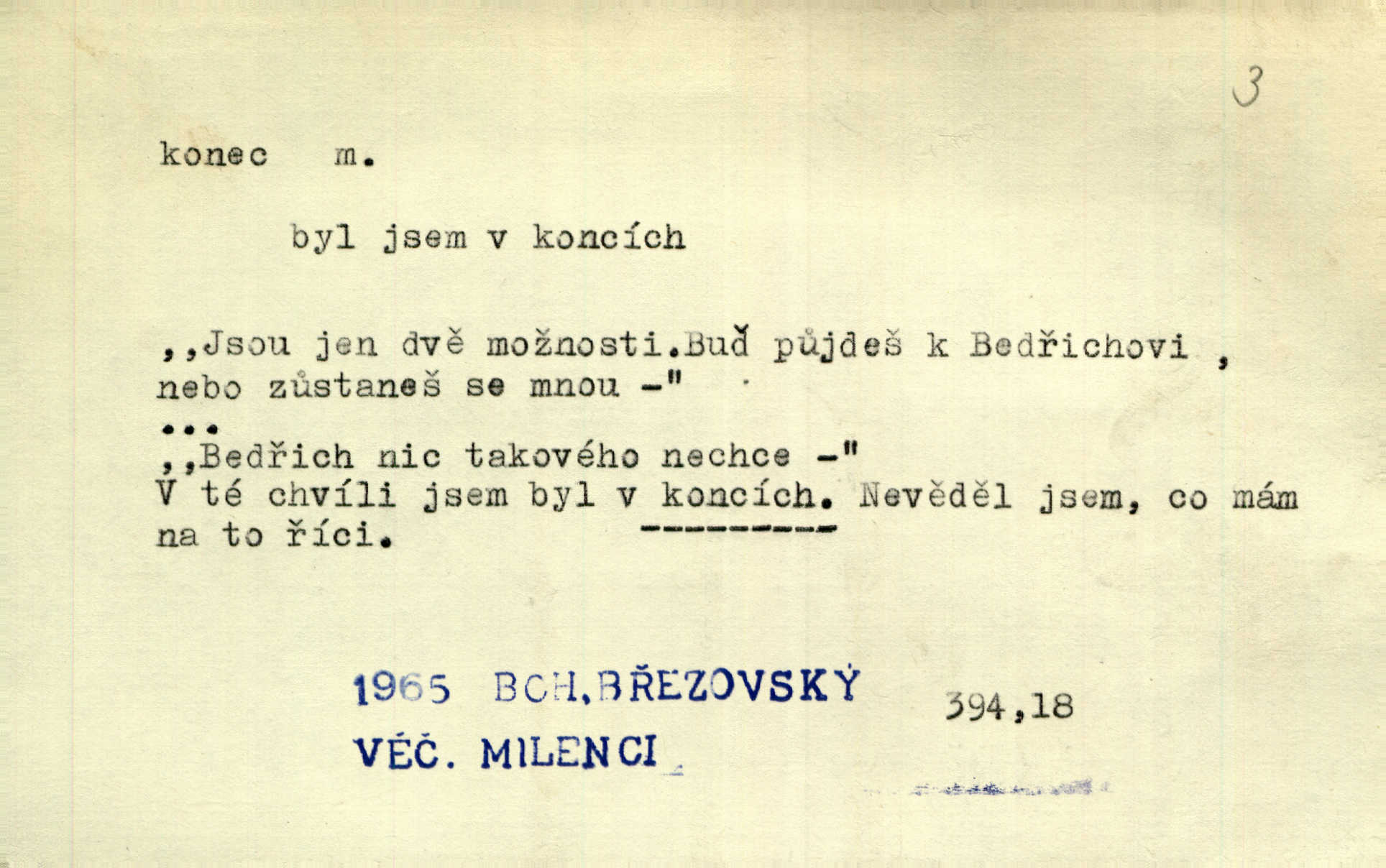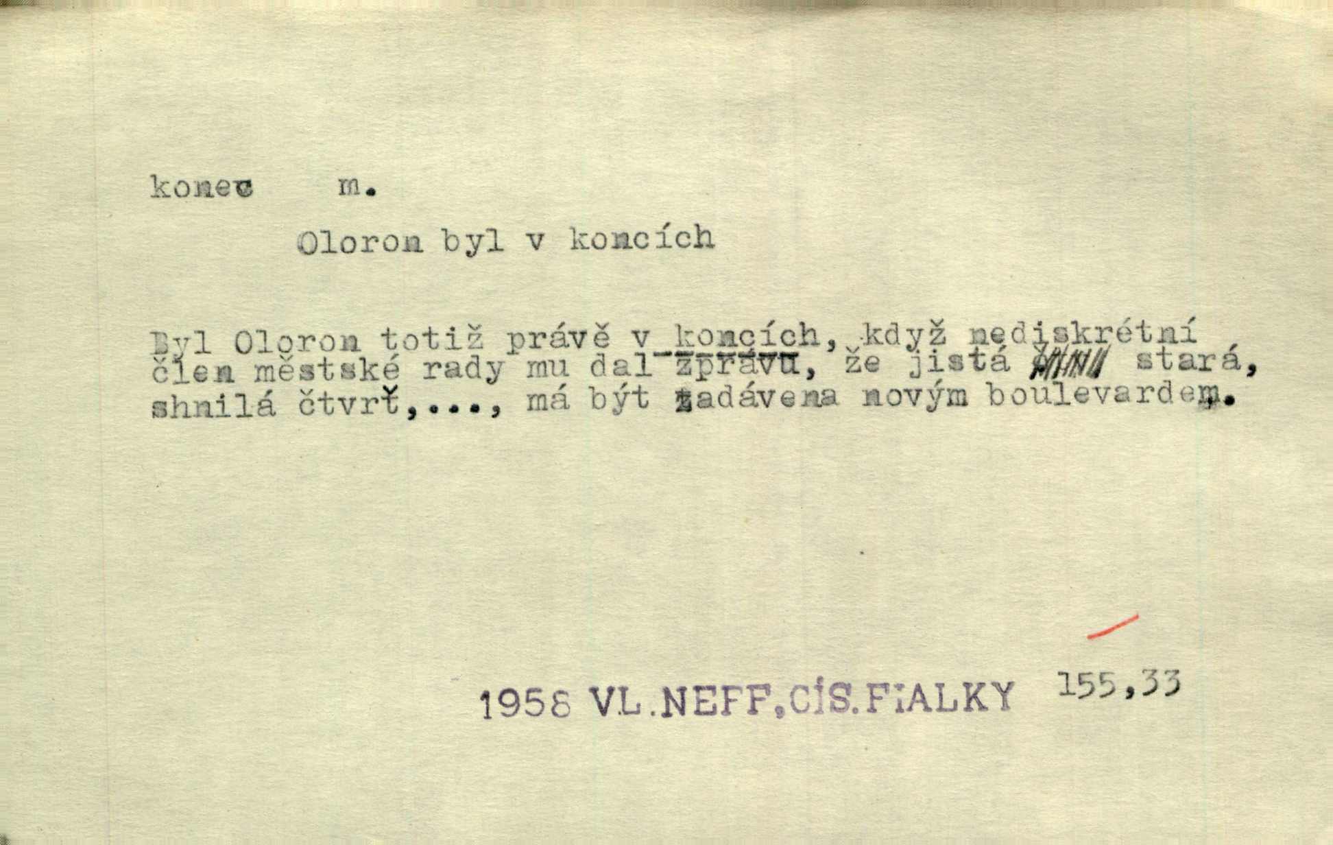 - konec, -nce m. kraj, mez, kde se věc začíná n. přestává. Hůl má dva konce. Změřiti něco od jednoho konce k druhému. Všecko má svůj konec. Dolní konec vsi. Z Čech až na konec světa. Jir. Svěřila své děti podivným, ze všech konců přivandrovalým cizozemkám končin. R. Svob. Zvali se hosté, vařilo se v kuchyni již kolik dní, jakož se i tisíc jiných radovánek chystalo na všech koncích. Něm. Držela [Atala] konec provazce. Jg. Jde tu o věc, ve které my lidé máme držet za jeden konec býti zajedno. K. Čap. Všecko ihned pochopovala, každého díla se chápala za pravý konec volila vhodný prostředek. Hol. Vždy levý konec všeho uchopí nesprávně začne. Vrch. Zaslechl jsem něco o křížových válkách a nevím tomu ani konce ani zvonce nemám o tom ponětí. Herb. Ztratil jsem konec zamotal jsem se (na př. ve vypravování). Bez míry, bez konce jest milost boží. Erb. D Zř. předl. Konec cesty v lese, kamenité, šedivý hrad v širou dálku hledí. Heyd. D (o čase) poslední doba, (o činnosti) ustání, přestání, výsledek. Byloť koncem dubna. Jir. Koncem sedmileté války došla klamná zpráva. Jir. V tom konci století, v těch zájmů vřavě zříš v dálku mizet onu Kaina kletbu. Vrch. Kdo pak je ta Mančinka a Cilka a Václav? ptala se kněžna, ráda chtíc věděti všemu konec i začátek všecko zevrubně. Něm. Zahradník vypravoval všecko od začátku až do konce. Pfleg. Již nehádali se více o francouzskou revoluci, aniž rozumovali o konci světa. Jir. Pamatujte si, že jsem vám to řekla, a dosť a konec! víc nemluvím. Kosm. Konec jest velikému carátu ruskému. Med. Nastala zima dlouhá a trapná; nebylo jí konce. Klost. Jeníku, kde je tě konec? kam ses poděl. Svět. Panímáma hleděla si domácnosti, a kde pantáty konec — nikdo nevěděl. Herrm. Pátral, kde je mu konec. Sez. Bůh ví kde mu bylo konce. Ehrenb. Jisté úkony [instinktivní] musejí následovati po sobě, porušíte-li jejich ustálený sled, je instinkt v koncích bezmocný. K. Čap. Je s jměním v koncích, nyní si pořád vypůjčuje. Prav. Ať si kdo chce chválí vynálezy a současnou vzdělanost, my pravíme, že je svět v koncích nemůže dál. Vanč. Kdo má kozla zahradníkem a Kaču za sousedku, ten je s ajnmolancem(sic!) v koncích nedopočítá se. Kosm. Jsem již [s vypravováním] u konce. Rub. Síly jeho byly u konce neměl sil. Svět. Byl se svou trpělivostí u konce došla mu trpělivost. Svět. A i kdyby teď dělali [sousedé] kdo ví co, mezi nimi a námi je navždy konec nebudeme nikdy přáteli. Svět. Je-li konec zpěvu jeho, s národem celým konec jest veta po něm. Vrch. Odtud až potud a každá písnička má svůj konec a ta Roblova skončila ohavně. Baar. Doufám, že přijdeme k dobrému konci shodneme se. Šmil. Dá bůh, že to všecko vezme dobrý a šťastný konec šťastně skončí. Šmil. Však jsem byla včera na Lhotce u strejce, aby to vzalo nějaký konec skončilo se. Rais. [Jahelková] povídala o nemocích, nemohla přijíti k žádnému konci. Prav. Arnulf dokoná, co nemohli Ludvíkové ke konci přivésti. Hurb. Udělej tomu [známosti]‚ holka, konec ukonči to. Staš. Já toho všivého života mám dost a umínil jsem si, že tomu udělám konec, čemu se říká konec s kalafunou. Klost. Já kdybych se rozstonal, udělám tomu krátkej konec. Udělám si smrť. Herb. Národy různých jazyků, mravů a zvyků nepřivedeš pod jeden klobouk. Proto došlo to s Josefem [císařem] do smutných konců! smutně to skončilo, dopadlo. Šmil. Ale tvou vinou došlo do těchto konců tak to dopadlo. Klost. Ale na konec stará synovi přece povolila konečně. Jir. Na konci však mně i žena, kmet i dítě sevšední konečně. Vrch. Koncem rád jsi, když jen život chráníš konečně. Vrch. Konec konců každá chudoba je zaviněná konečně, ostatně. Vach. Řidč. v konci konců, konec (s) koncem, konec ke konci. Všecko možné podnikáme a v konci konců výsledky našeho úsilí jsou přece nepatrné. Hol. Ještě jsem mu hodně vyčtla a konec koncem bylo, že jsem mu vypověděla. Něm. Avšak konec s koncem „Němci zase prý jen Němcům přejí“. Rez. Já že bych snad konec ke konci měl ještě jíti k nim? Třeb. D smrt. Když však ulehl a pořád scházel, nezapírali si, že to s ním jde ku konci. Prav. Sestárlý orel zimomřivý na sněti sedí sám a sám, stesk konce hled mu mlží sivý. Mach. Mrtvola Horáčkova byla s jinými mrtvolami z obecné kaple vyvezena — „jaký život, taký konec,“ pravil pan provisor. Ner. D účel, cíl. Obyvatelé [městečka] měli pěstovati řemesla a handle. K tomu konci nadáni byli od počátku právem týdeních trhů. Pek. Nejsouť zde tyto odchylky vylíčeny k tomu konci, abychom škodolibě vlastní přednosti své měřili. Durd.