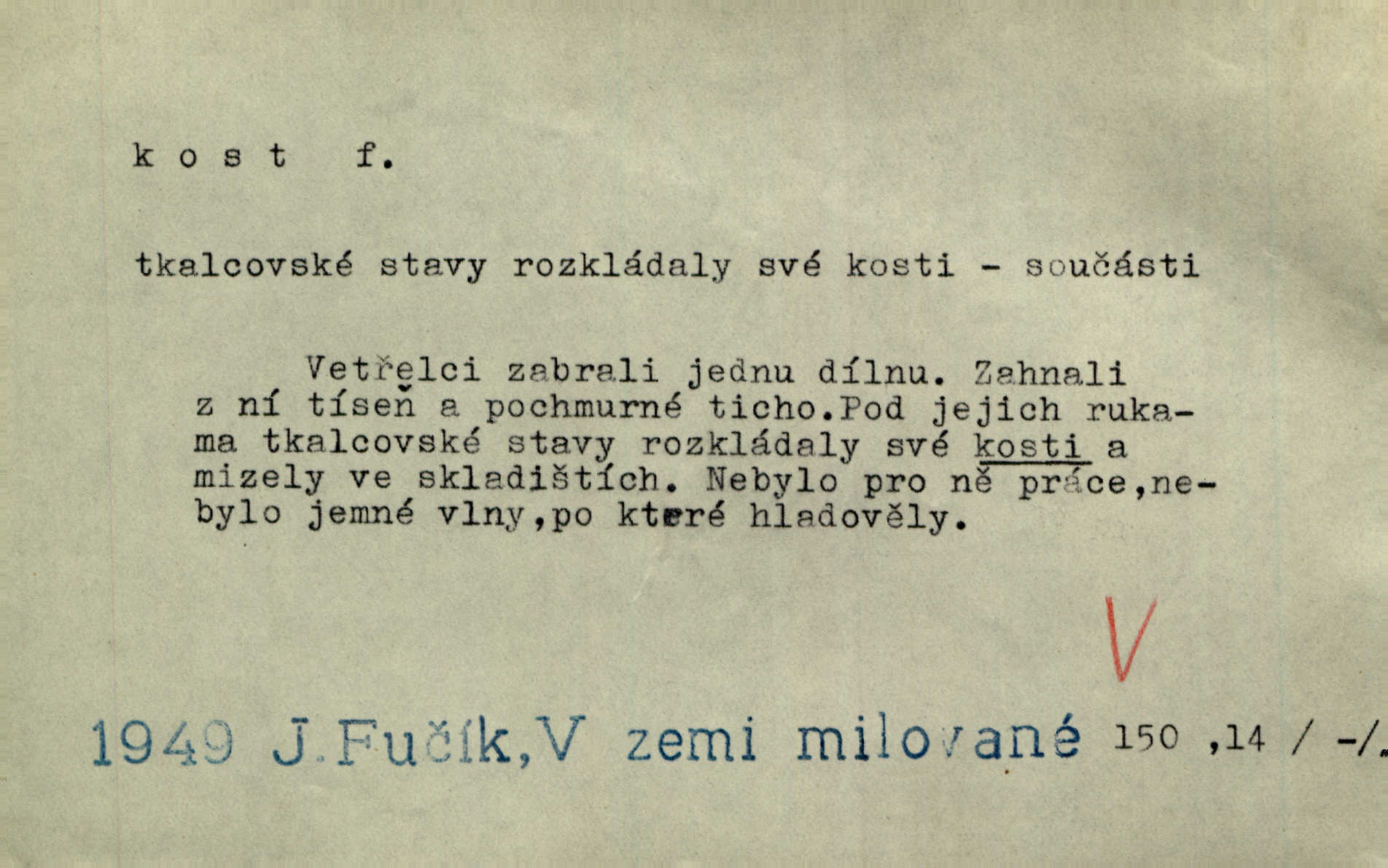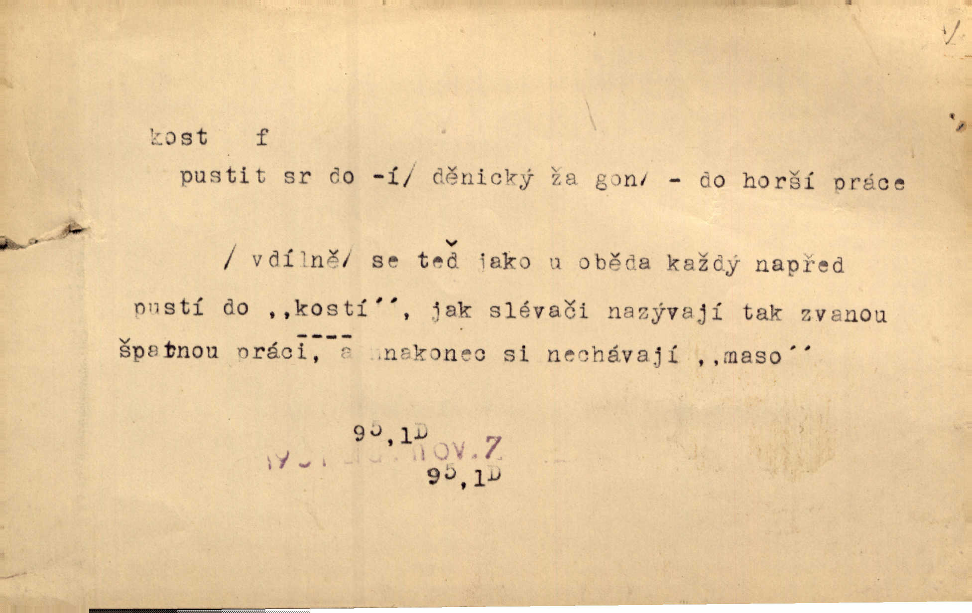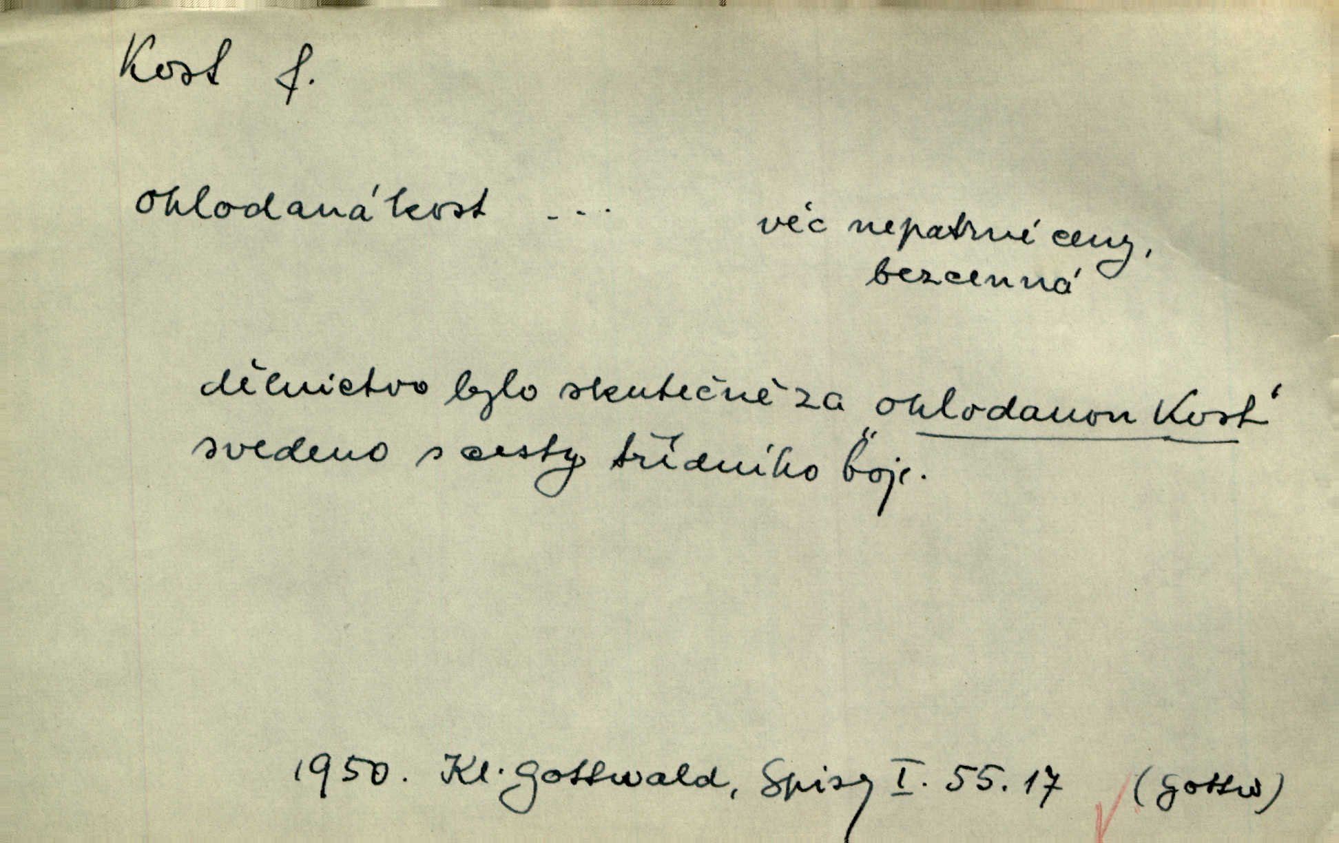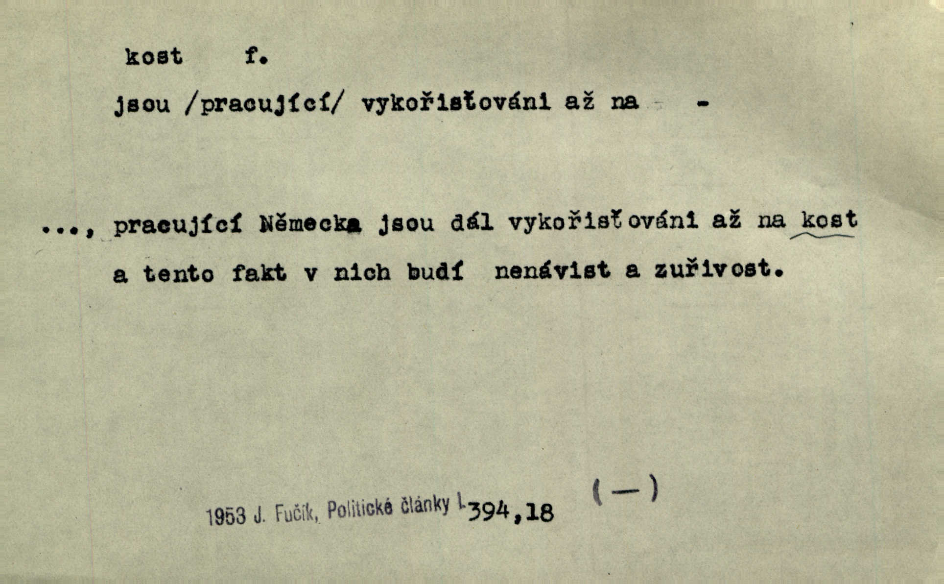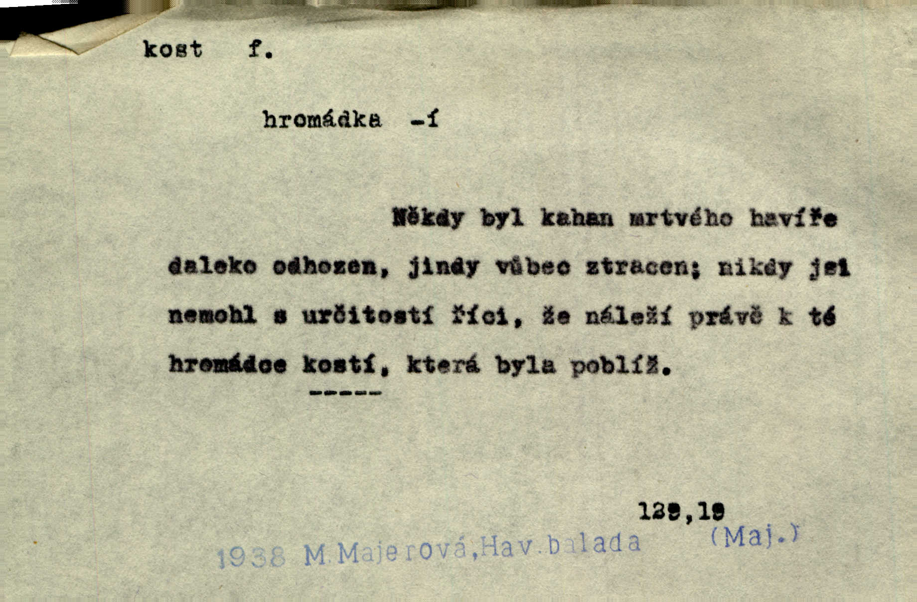 - kost, -i f. nejtvrdší pevná součást těl vyšších obratlovců. Anat. kost stehenní, ramenní, temenní, spánková, klíční a p. Jazyk bez kostí, ale kosti láme. Přísl. Tomu děvčeti kosti přelámu, pomyslí-li jen z daleka na Motyčku. Šmil. Objal ji přede všemi, až v ní kosti praskaly. Štol. Okolo psi se o kost rvou. Dyk. Ovocnému stromoví od večeře kosti. Erb. [Stařeček] radil, jak dobře prodat kosti, kopyta a kůži. A. Mrš. Kost od šunky kost se zbytkem uzeného masa. [Víly] hřebenem z rybích kostí češou svoje vlasy. V. Mrš. Uprostřed [zahrady] stál zámek ze slonové kosti. Něm. Okuláry černou kostí lemované. Jir. Rozřízl rychle bílou kostí složený arch novinářského formátu upravenou na nůž k rozřezávání. Baar. Ustál. spoj.: Cizí všude se mají nejlépe, a každý domácí, třeba že zachovalý a dobře umělý, aby kost ohlodával spokojoval se s odpadky, se zbytky. Jir. [Umělci] tvoří krásu — třeba hryzli kosti. Vrch. [Dubačka] vidí, že Sekerová je k práci lehtivá, že má v břichu kosti nerada se ohýbá. Jah. Ty člověče nemáš v břichu kosti jsi ohebný, mrštný. Prav. Starosti suší kosti. Rais. Jsem také jen z kosti a masa pouhý člověk. Šmil. Zejména tahle [osoba románu] je skvělá postava z masa i kostí životná. Přít. Muž vysoký, samá kost a sval. Jir. Sestárlé ženy, hnát a kost. Sova. Bylo ho trošek, pouhá kost a kůže byl vyhublý. Rais. Podivný muž, učiněná kost a kůže. Třeb. Starý, scvrklý, na kost a kůži vyschlý vápeník. Baar. Ruka byla na kost vyhublá. Šim. Je promrzlý na kost úplně. Kun. V té strašné nepohodě [žoldnéři] velmi promrzli a skřehli na kosť. Jir. Bylo umrzlo na kost, sucho tvrdě, do tvrda. Herrm. Země ztvrdlá na kosť pod nohou hřmotila jak dutá. A. Mrš. Jste mazaní, chytří až na kost skrz naskrz. Med. Zdřevěnělé, do těch kostí ztuhlé moje nohy nestačily běžet za ní. Klost. Je tam [venku] sychravo, až do kosti leze. Jir. Mráz projel až do kostí všem při tom pomyšlení. Herb. Mráz mu prolézal kosti. Rais. Je strašná zima, až mi kosti láme. Ner. Kapelníkův klarinet zaječel, až to do kostí projelo pronikavě. Rais. Zvuk, který projel kostmi až do morku a který by mrtvého musil vzbudit. Baar. Táhlý hvizd dřeň kostí pronikající. Čap. Ch. Dle starého zvyku, který mu přešel časem do kosti i krve, ještě před spaním zpytoval si [Cimbura] svoje svědomí. Baar. Kdo by se ubránil, když už to je v kostech a krvi. Jir. Až do kostí proniknuti jsme byli Palackého učením úplně, naveskrz. Herb. Obrátiti kacíře do kosti zkaženého nadobro. Lier. [Správce] měl na sedláky zvláštní zálusk, mysle, že je každý šelma od kosti. Něm. Šafář zdál se od kosti surový i nevlídný chlapík. E. Jel. Strýc rada je byrokrat od kosti. Šim. Benedek, voják od kosti. Mach. Bílek — jinak od kosti vlastenec — [na němčinu] přece si vždy postonal. A. Mrš. Farář byl dobrák od kosti, důvěřivý ke každému skrz naskrz. Herb. D Tech. kost odpadek při lití ingotů zdola. D V pl. tělo, tělesné pozůstatky. Cítil, že jsou [jeho děti] krev jeho krve a kost jeho kostí jeho pokrevní potomci. Baar. Právem-li se můžeme pokládat za dědice slávy otců svých a za kosť z kostí jejich? Herb. Až budeš mět tak staré kosti jako já, taky jim začneš hovět až budeš tak stár. Herb. On vysvlekne se beze studu a staré kosti vyhřívá. Mach. Veden dávnou náklonností, vláčel [muž] světem svoje staré kosti z boje v boj a bouř. O. Červ. Zdá se mi, že už nemáte mladé kosti nejste mladí. Svob. Pokud mám zdravé kosti pokud jsem tělesně zdráv. Šmil. Po práci jsou [rodiče] rádi, když kosti natáhnou odpočinou si. Rais. Občas si protáhnout kosti na peroně odpočinouti si, projíti se, protáhnouti se. K. Čap. [Teta k synovcovi:] Přec bych tě ráda, než natáhnu kosti, viděla v nějakém pořádku než zemru. Rais. Já bych přece ráda kosti svoje v domácí zemi složila byla pochována. Něm. Na ty dvě hlavy naše krev, až z našich kostí mstitel vstane. Bezr. D Lid. ženská, děvče. Každej pořádnej voják, když si odbude svoje věci a srovná si dle předpisu kavalec, jde se vohlídnout po nějaký kosti. Med. Naše markytánka není žádná kůstka — to je pevná, zralá kost — ale pro silné, zdravé zuby právě tak nejlepší. Tyl. D Lid. všech svatých kosti, svaté kosti druh pečiva. Půjde-li to tak dál, budou si lidé naposled v červenci do kávy drobit vánočky, kulaté „dušičky“ a „všech svatých kosti“ budou se válet beze všeho rozumu po celý rok. Ner. [Babička] uměla péci tak výborné vánočky, bochánky, martinské rohlíky, svaté kosti, Boží milosti. Svět.