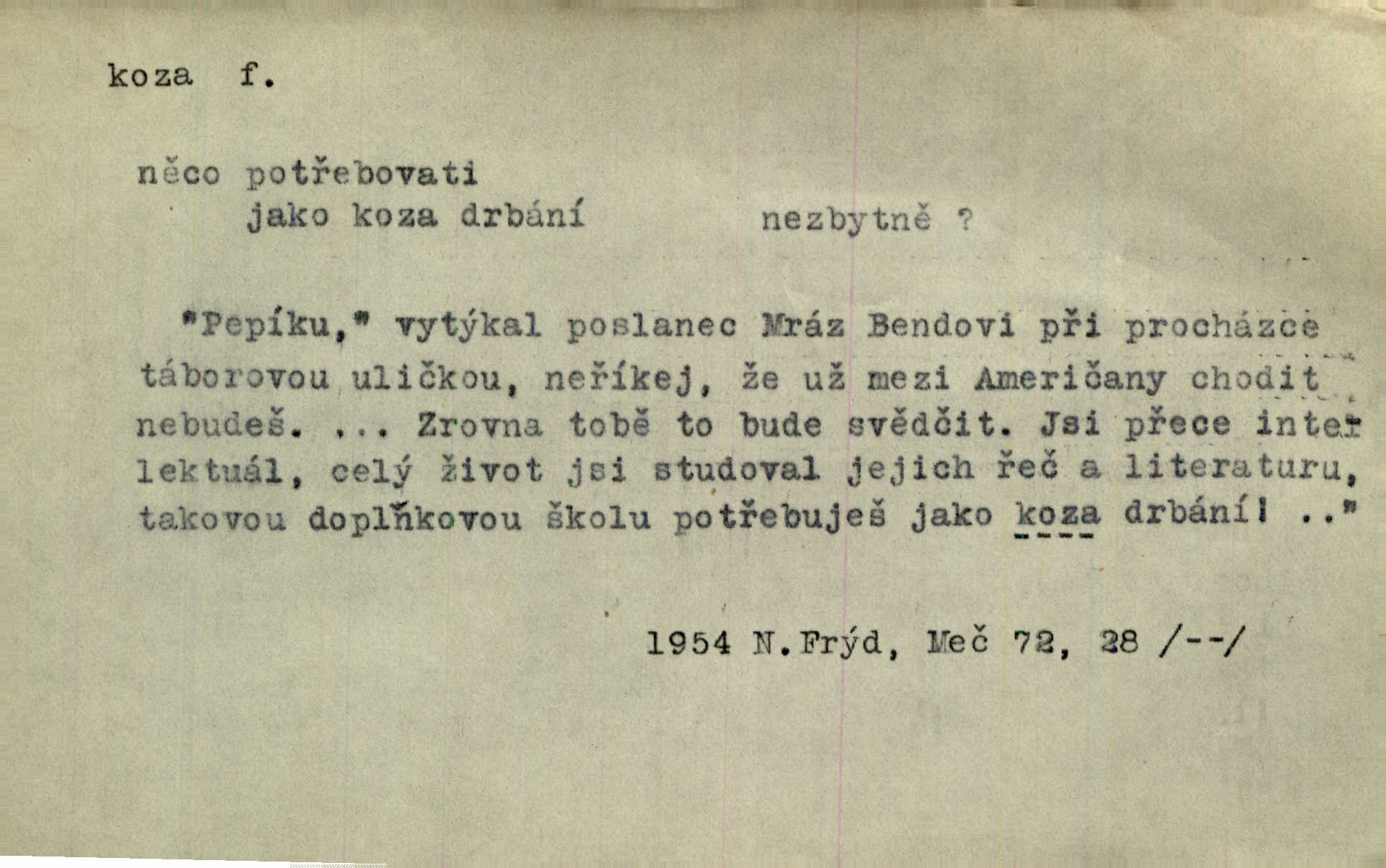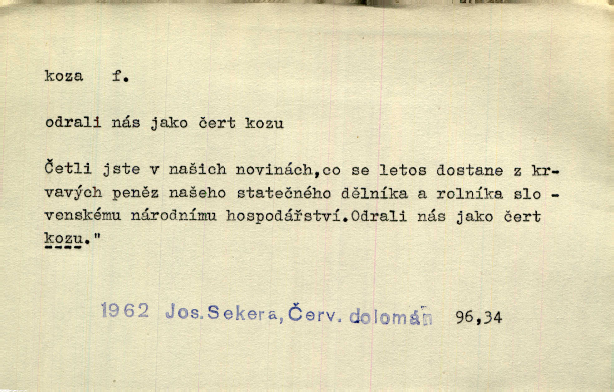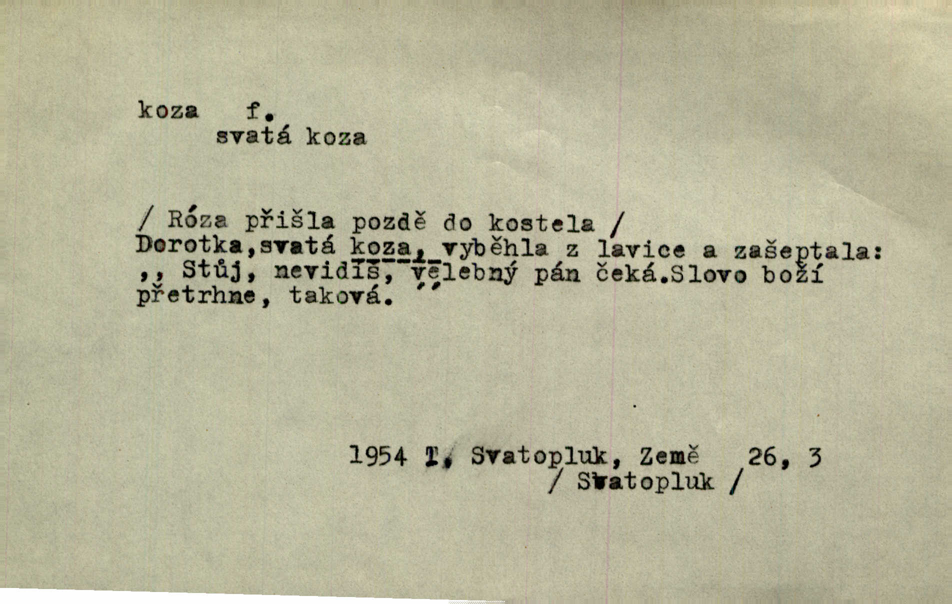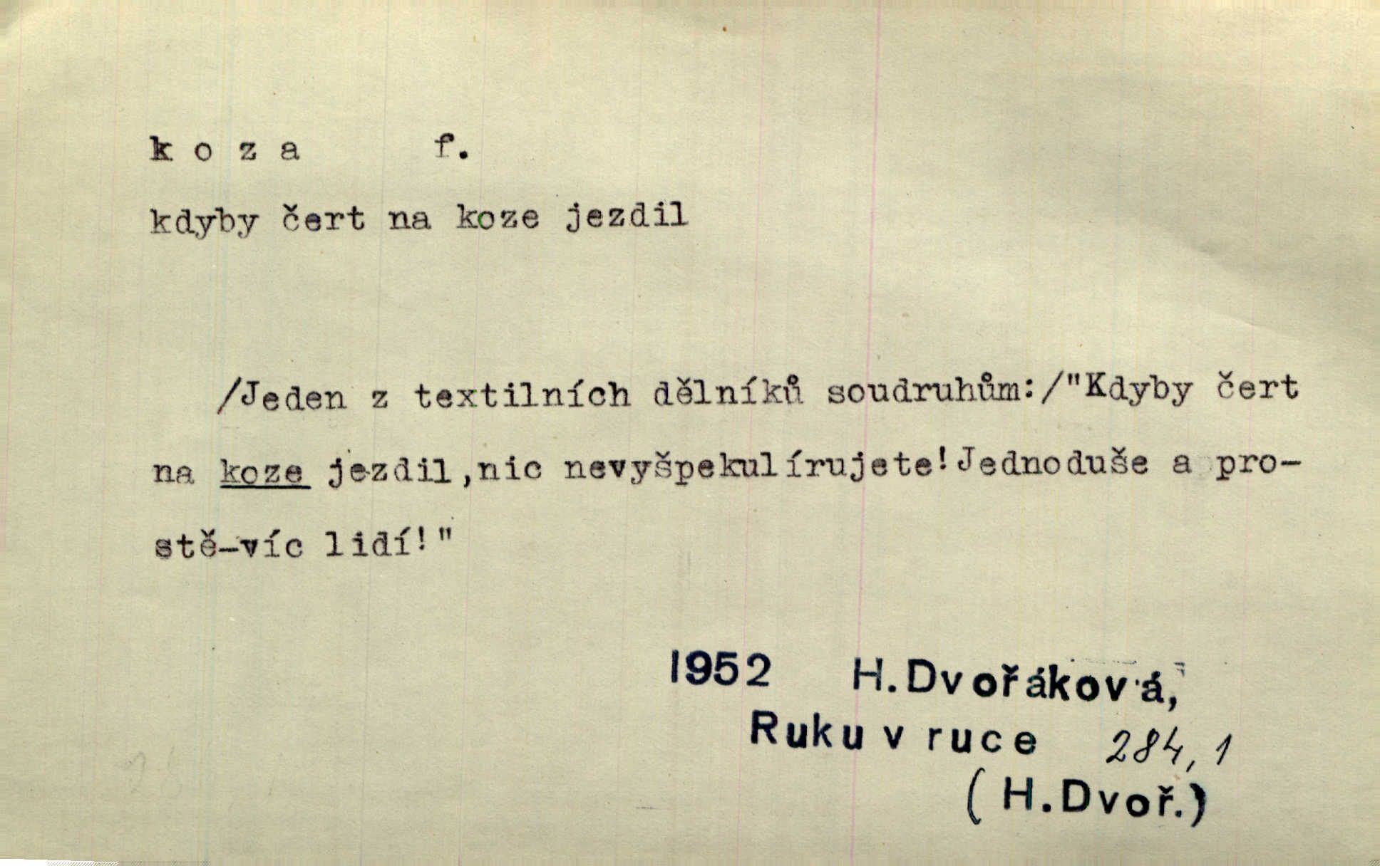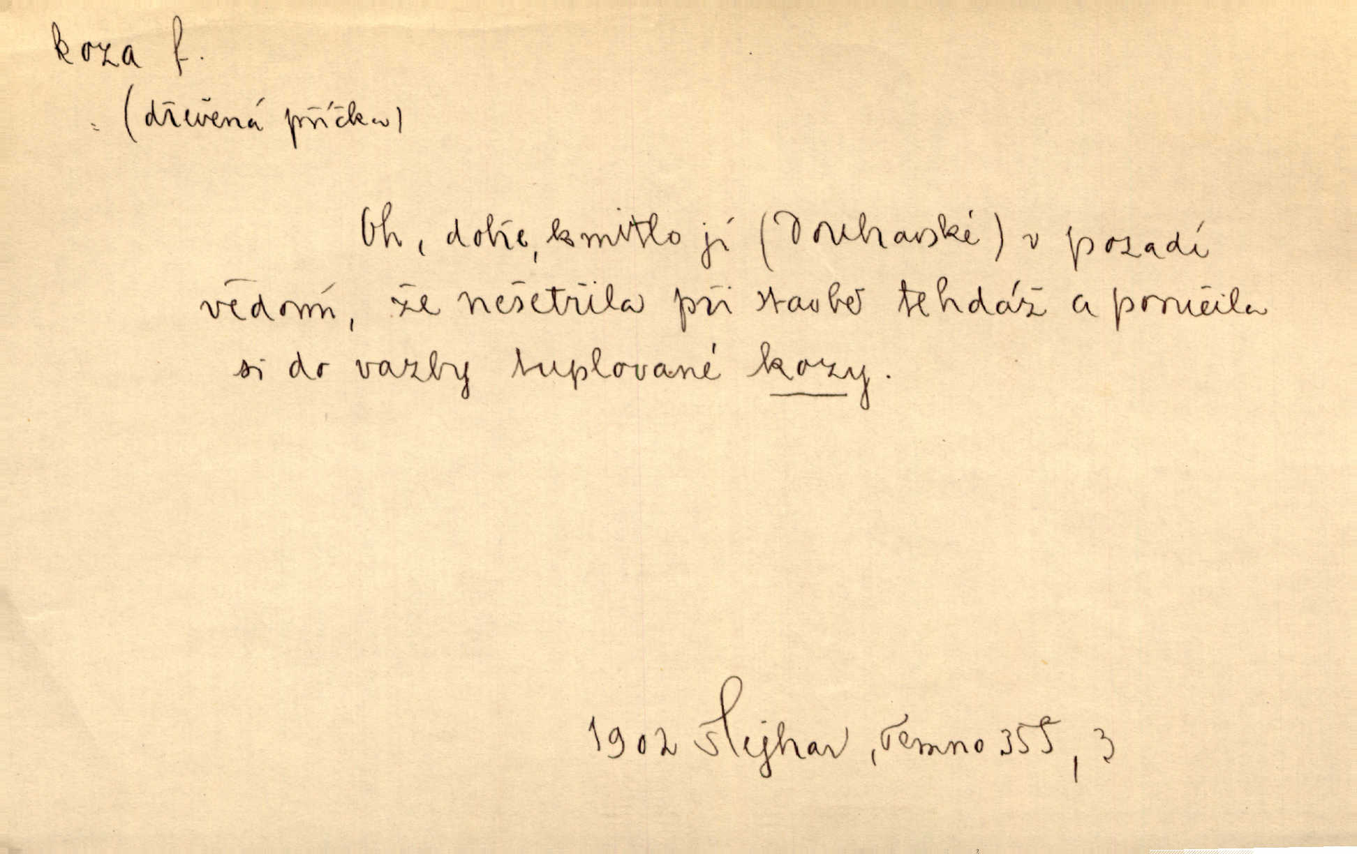 - koza, -y f. po domácku chovaný ssavec přežvýkavý s dutými rohy a vousatou bradou; obyč. samice tohoto ssavce. Měl [kantor] deputát a kravku, kozu, pole. Mach. Držel jsem v chlívě kozu, která mi mléko dávala. Zschokke. Kozy v chlívku mečely. Erb. Přijížděli panoši na vousatých kozách. Lada N. Ustál. sp. Mlsný jako koza. Rozumíte tomu jako koza petrželi. špatně. Kosm. Zanedbával pole i dům — slovem: hospodařil s krávy na kozu pořád hůř. Kosm. Aby se vlk nažral a koza zůstala celá uspokojiti obě strany. Pořek. Zařídí svoje počínání tak opatrně, aby byl vlk syt a koza celá. Herb. Vidí do nich do všech a do celého světa jako do hubené kozy dobře. Knap. Ale zkusím to s ní [řepou] příštím rokem zas, kdyby čert na koze jezdil přese všechny překážky a nezdary. Knap. „Je držgrešle a pro krejcar by na koze jezdil všeho se odvážil. Křel. Starý Pondělek by byl pro groš s kozou v louži tancoval byl lakomý. Šmil. Už jsem natrženej — to to mělnické — půjdu jako koza po ledě! nejistě, škobrtavě. Rais. My o koze, ty o voze každý o něčem jiném. Pořek. V lidové řeči se tomu říká: — Já o koze, on o kose! Čap. Ch. Možná, že ani v Praze nevědí, čím v pátek koza bzdí jsou hloupí. Jah. O tom [člověku] směle říci se může, že mu koza jako ryba nedovede nic rozeznat. Kos. Ale což, ona se stydí jako koza v zelí docela nic se nestydí. Jir. Je jako posedlý, ženich takový, kdyby koze uvázal plínku na hlavu, poběží za ní. Baar. Tváří se jako koza před smrtí velmi utrápeně. Šlej. Mluví jako koza před smrtí hloupě. Pořek. Nechce se jí do toho, jako by kozu na led tlačil! Baar. Ty jseš jenerál s kozy spad’ směšný zbabělec. Jir. Kužela byl dobrý člověk, ale pořád jen jako z kozy duch neduživec. Rais. Příštího jara dali hochovi kozu přestali ho kojit. Jir. D Přezdívky. Fifleno, vychrtlá kozo, hlade. Čap. Komorná, potřeštěná koza, se třásla pod peřinou strachy. K. Čap. Já ti dám Amásii, kozo mlsná! Jir. Před rokem řekla mi, vy stará kozo. Poláč. Živé jiné duše nepřišlo [na ranní mši]. Ani ty známé nebeské kozy pobožnůstkářky. Šlej. Jak se ta malá mašina, jenom taková „koza“, nadýmá. Mart. D Zool. kozy podčeleď ssavců dutorohých, Caprinae. Koza angorská, bezoárová, kašmírská. Mysl. běžné pojmenování samice srnčí zvěře, srna; samice kamzíka, kozorožce. D vousy na bradě upravené do špičky. Starý pán o holi. Mastné šedivé vlasy, knír a kozu. Svob. D Těl. druh tělocvičného nářadí k přeskoku. Mysl. ručnice s brokovými hlavněmi nad sebou. Dial. název při hře. Dva, tři i čtyři [chlapci], kteří se zohnou a drží se jeden druhého pevně, přitlačeni jsouce ke sloupu, slují kozy. Herb. Stav. podstavec z trámů k postavení lešení, k podepření krovu, k ochraně mostních pilířů a p. Ledy jdou, o kozy [mostu] se tříští. Baar. Přistavil jsem nyní k vikýři starou zednickou kozu. Herrm. Vyndal z dřevníku pílu, kozu na řezání. Peč. D druh někdejšího trestního nářadí. Na kozu s ním [kovářem]‚ však on změkne! F. S. Proch. D Vulg. kozy ženské prsy.