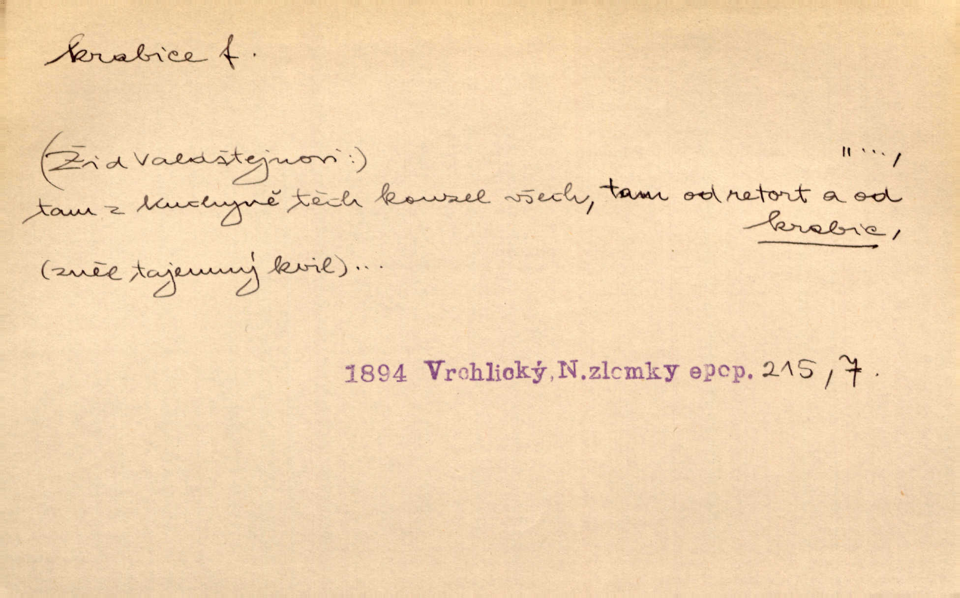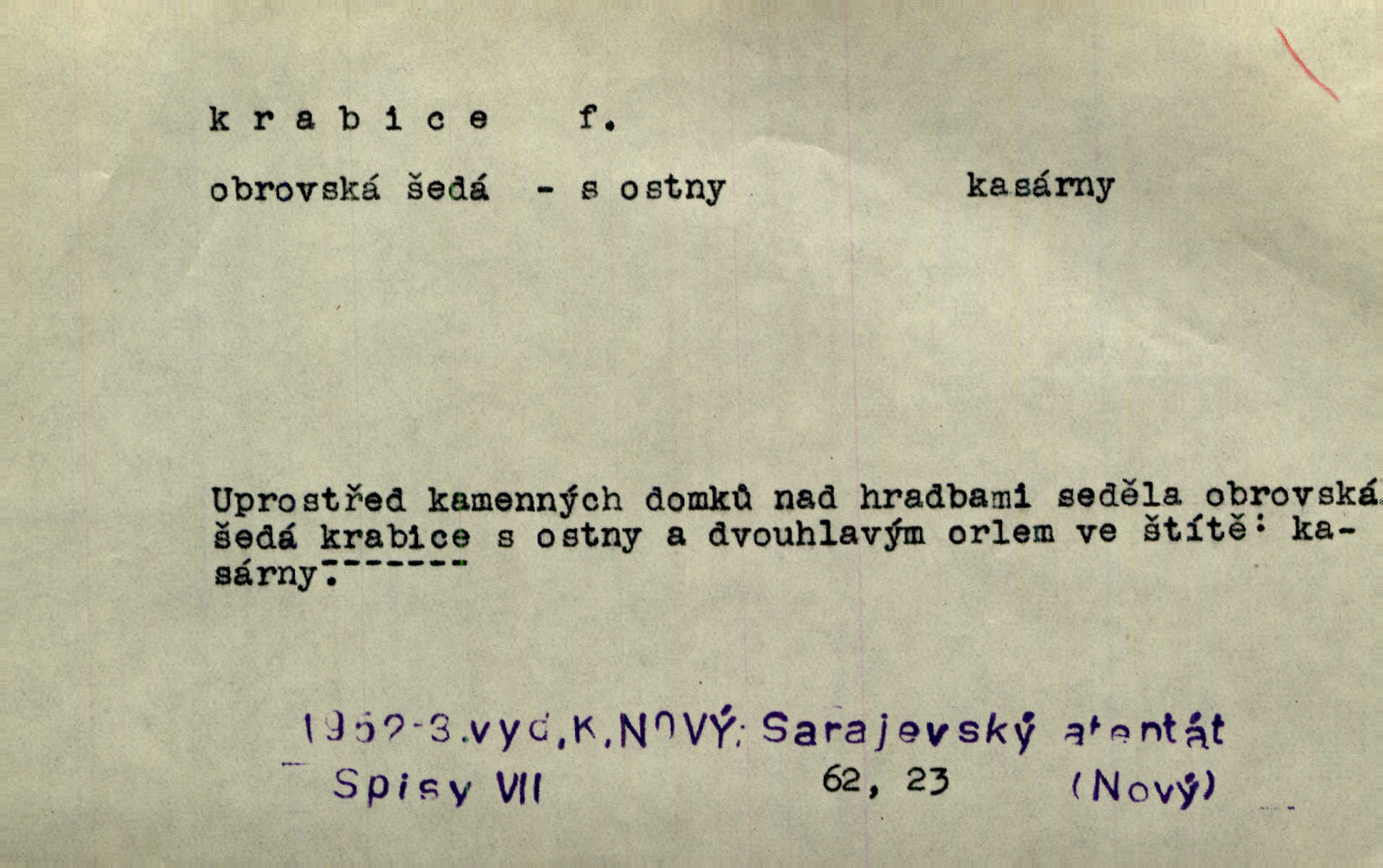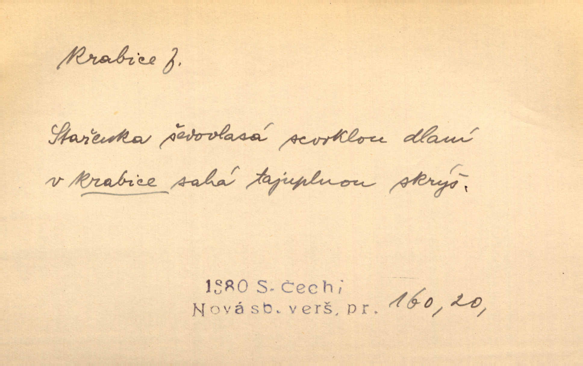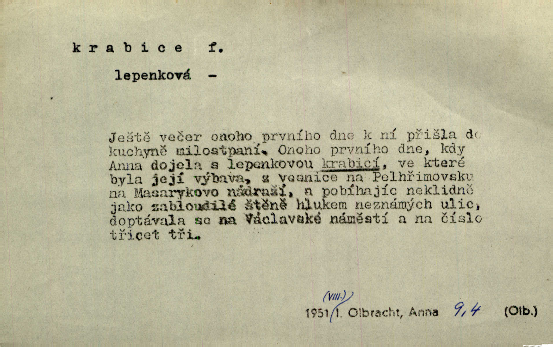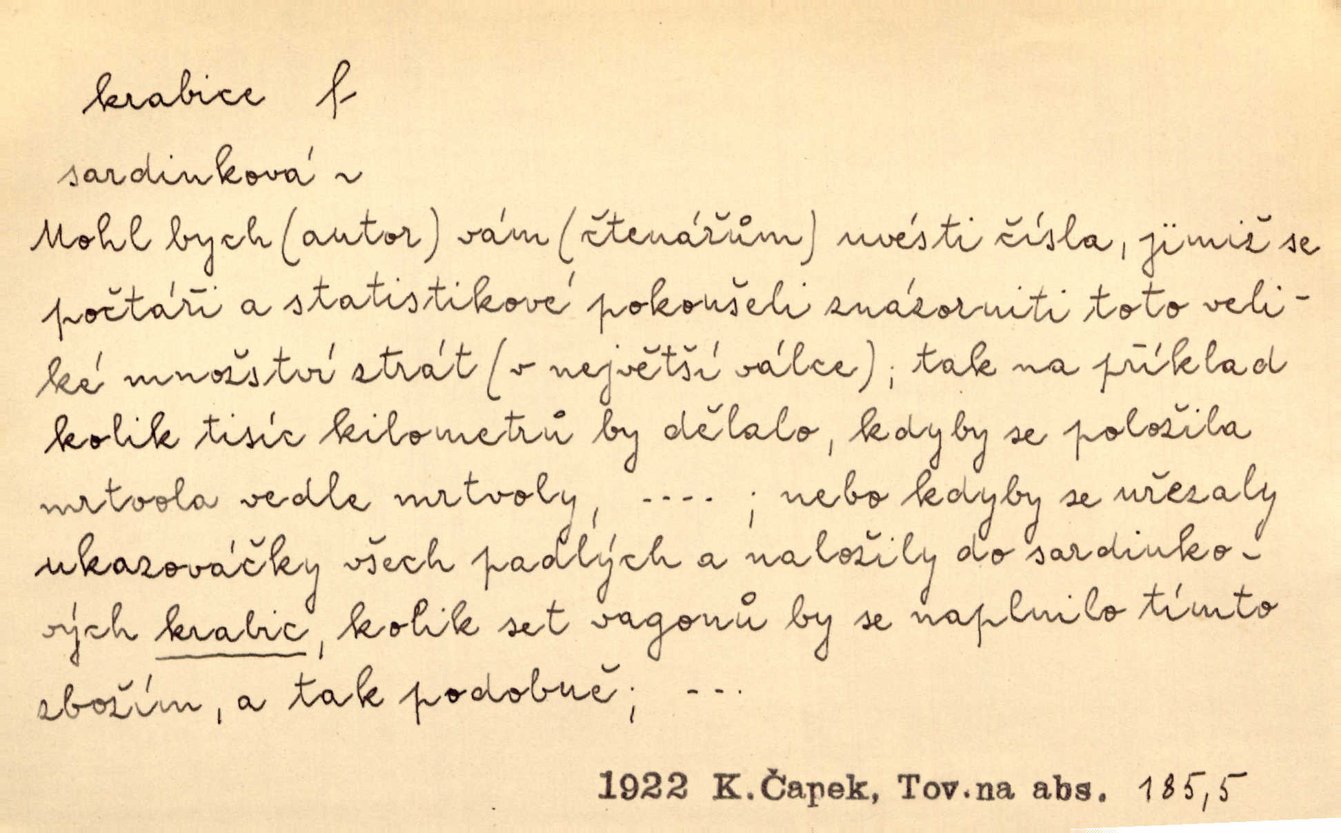 - krabice, -e f. škatule, schránka, skřínka. Hledá, otvírá šuple po šupleti, prohlíží schránky, krabice a skříně. Prav. Píchal [akcizák] do krabic s dorty. Vach. Přibral krabici olejových sardinek. Herrm. Vytáhla ze skříně krabici hedvábí. Ner. Krabice na klobouky. El. tech. odbočná krabice kruhová n. čtvercová skřínka s víkem, v níž se dráty spojují n. odbočují. D nadávka staré ženě, škatule. Čím pak může být taková stará krabice ve vašem spolku? Šamb.