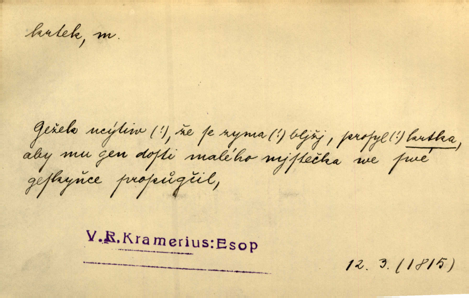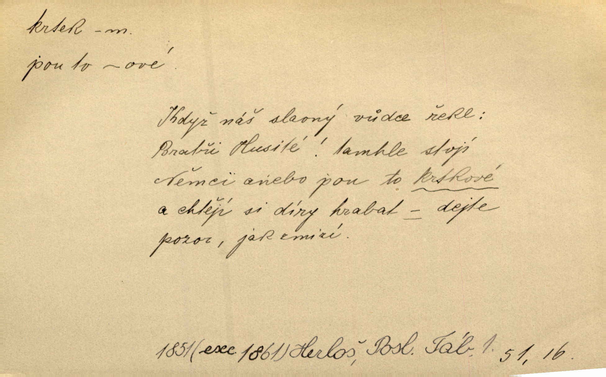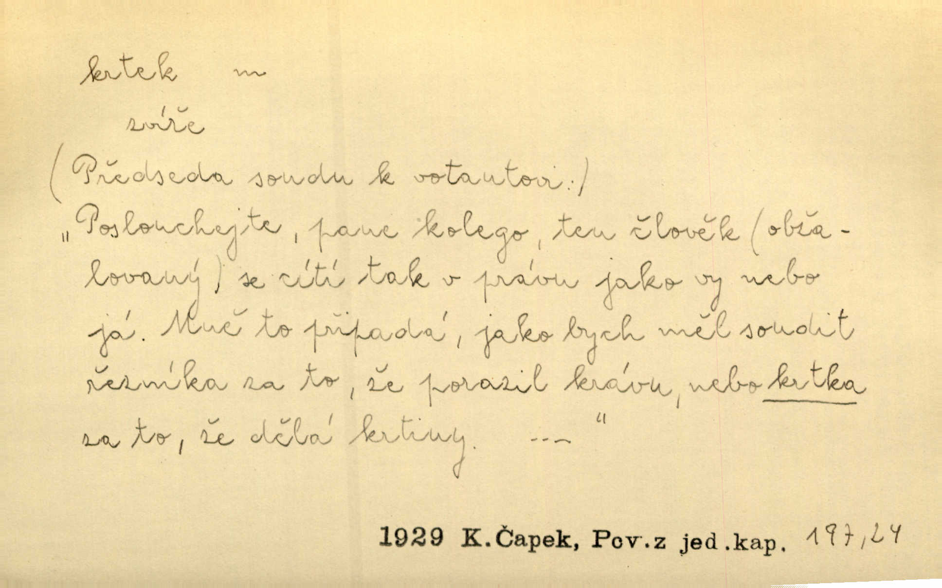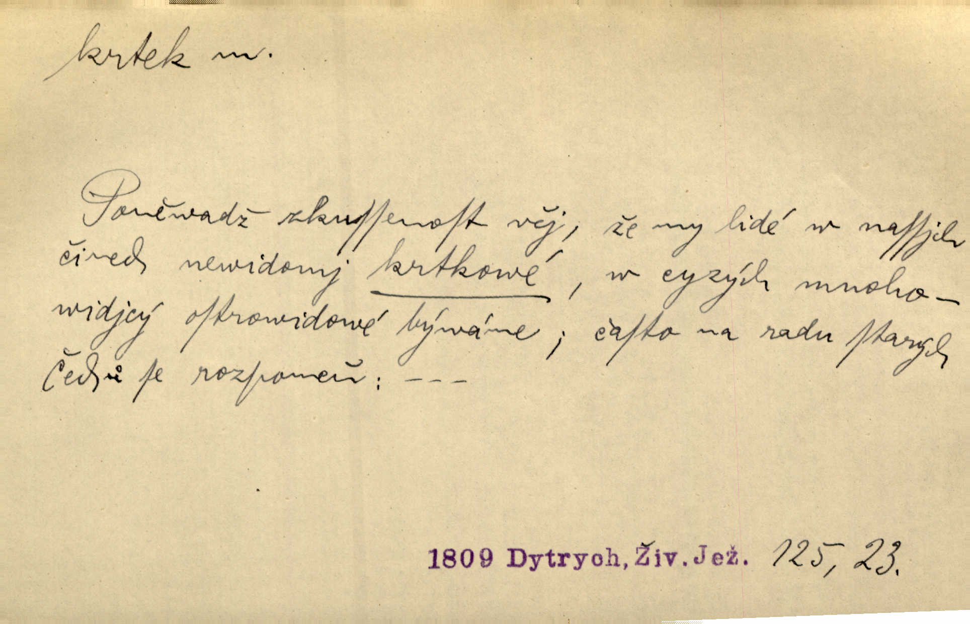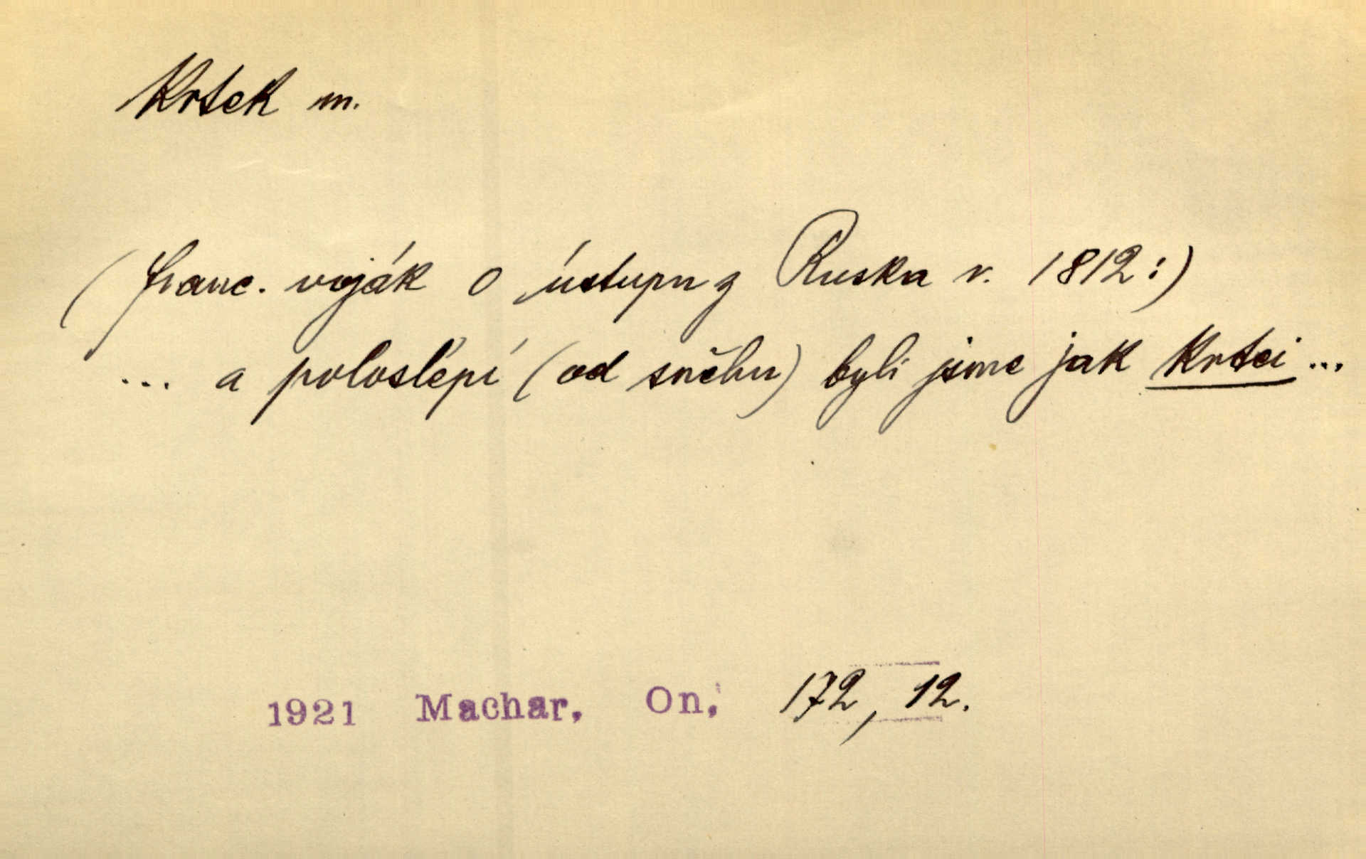 - krtek, -tka m. zool. krtkové čeleď ssavců hmyzožravých, Talpidae. Krtek obecný, slepý, hvězdonosý. K čemu živiti mezi sebou lidi, již nás jako krtci podrývají? Šmil. Celý den byl zahrabán v knihách jako krtek. Něm. Jak si člověk namlouvá, je slepý jako krtek. Herrm. Přen. Stal jsem se krtkem. Již ani nevycházím do přírody. Pořád ryji se v práci své. Podl. Probuď šafáře! Což ten krtek ještě chrápe?! Jir.