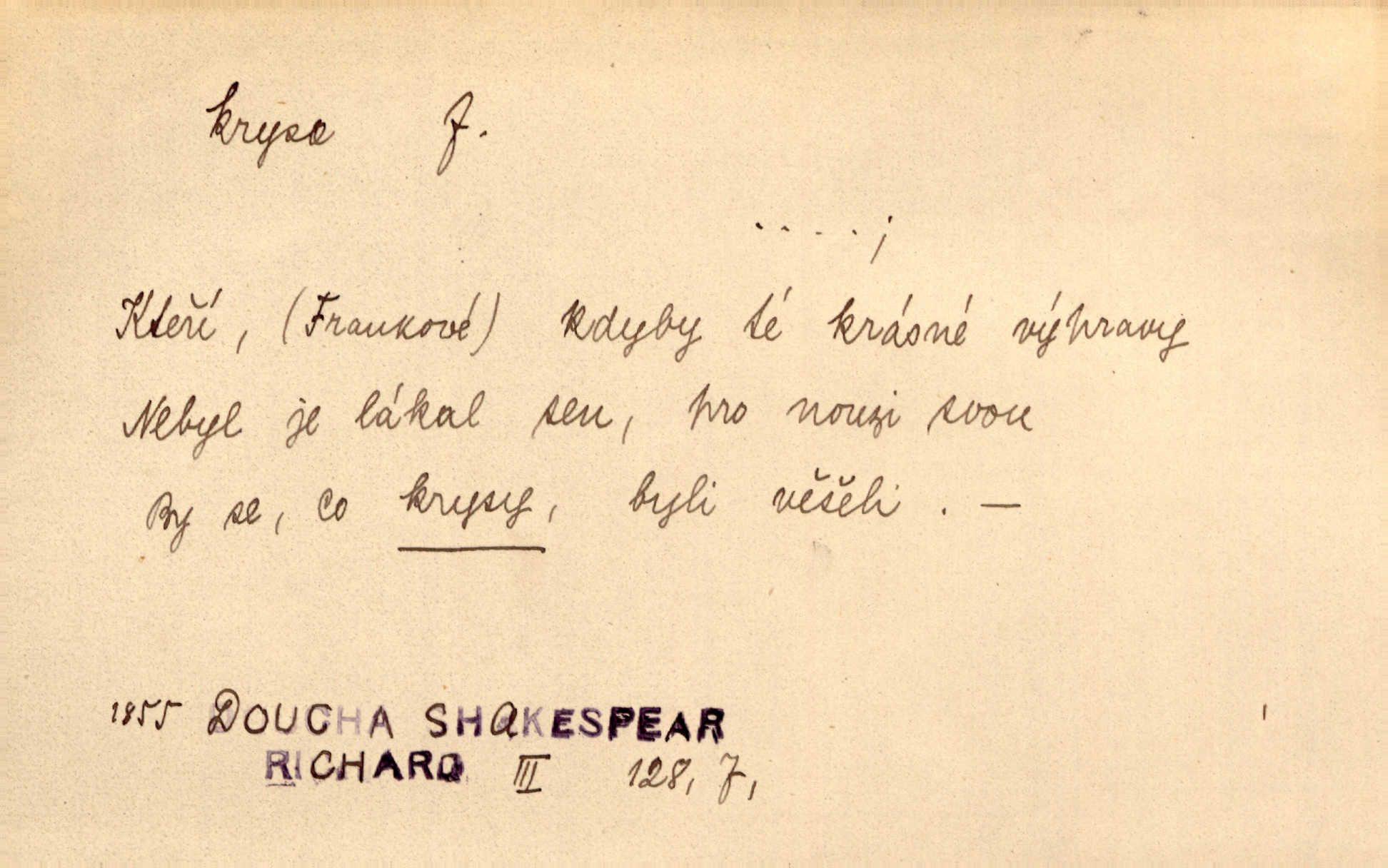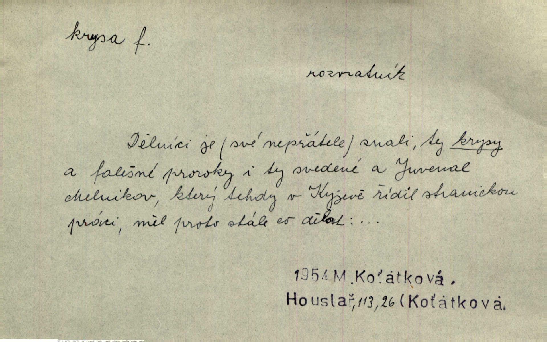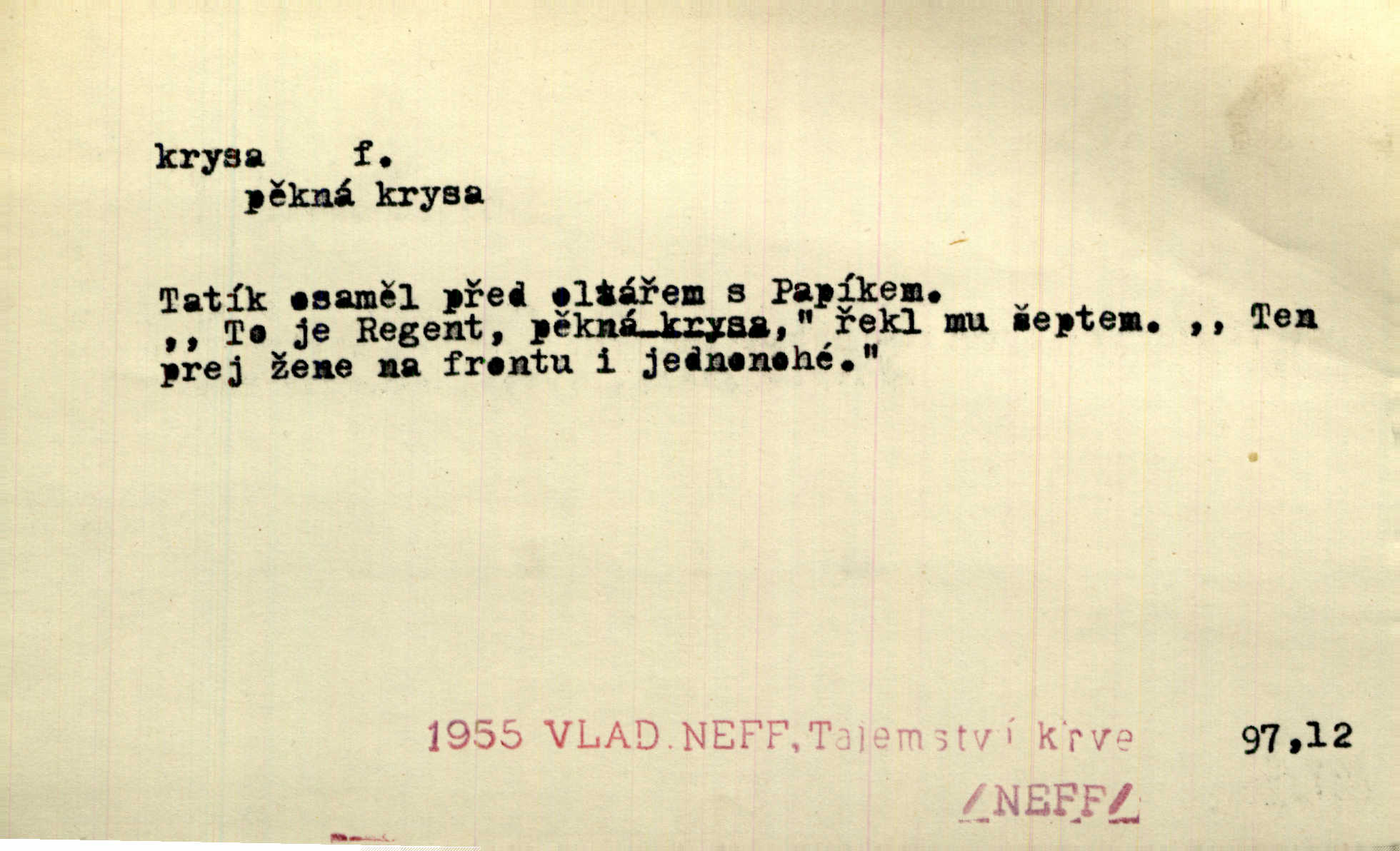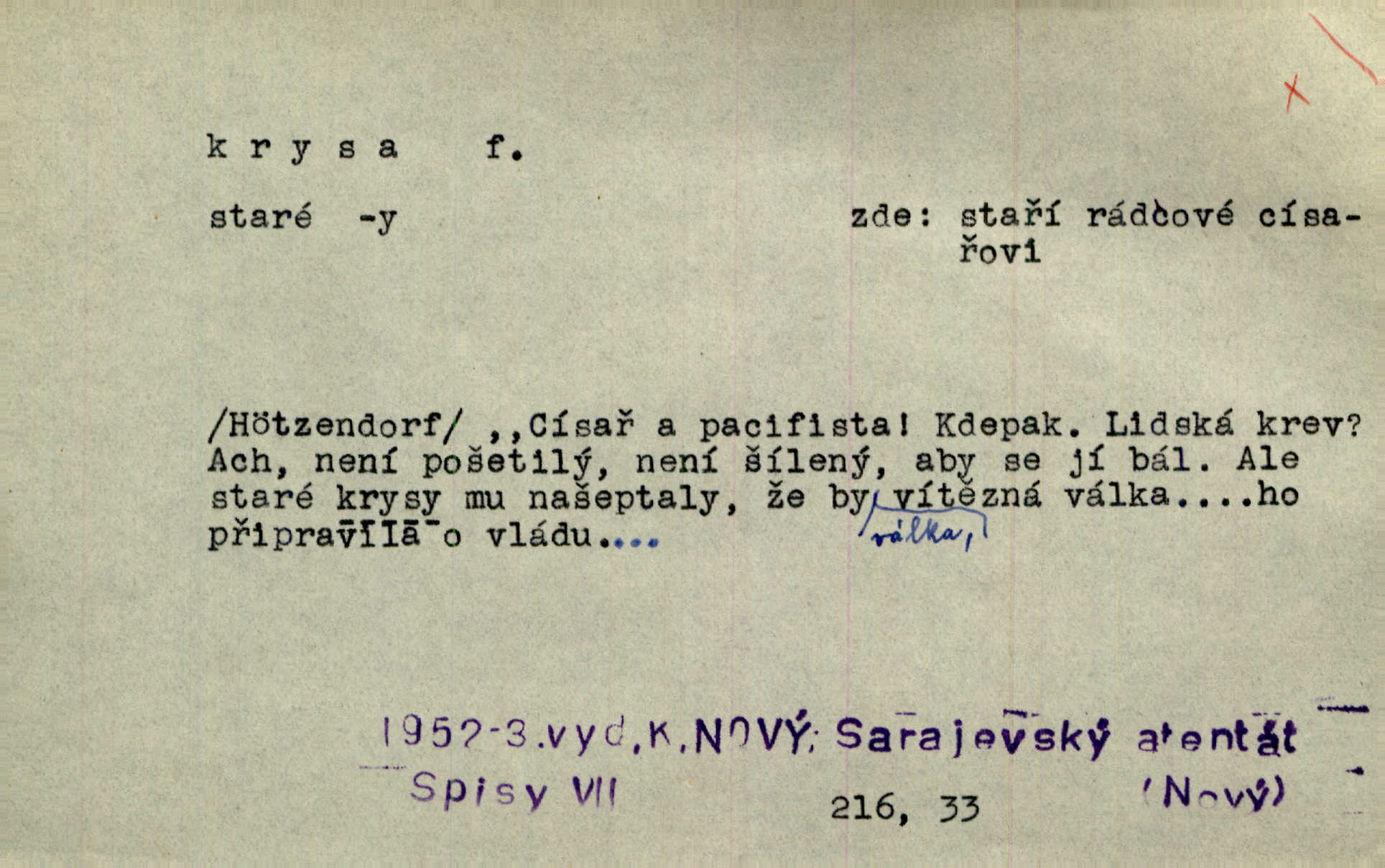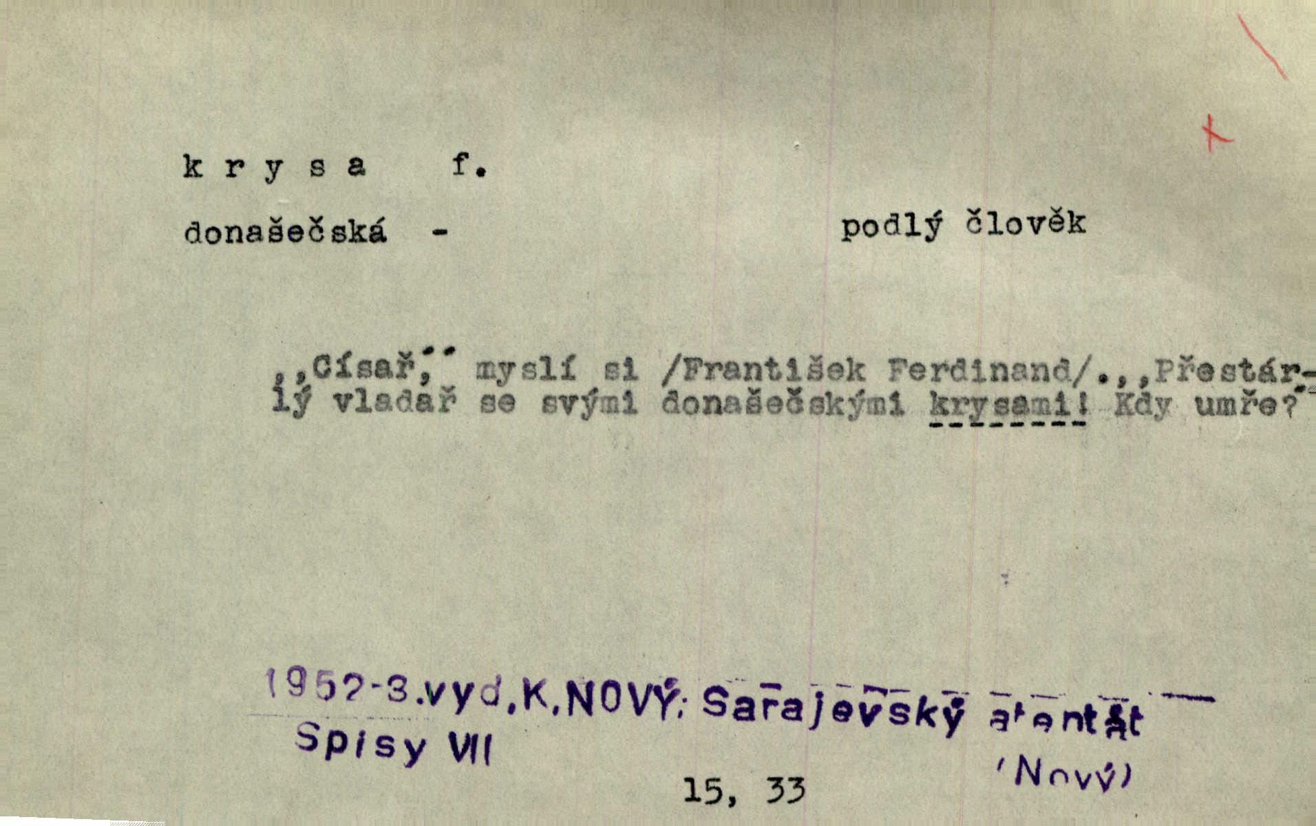- krysa, -y f. veliká myš. Podél stěny kráčela klidně veliká krysa, snad královna zdejšího početného národa německých myší. Čap. Ch. „Snad že to bude vodní krysa“, pomyslíme si. Thom. Dal jste mu do kafe jed na krysy. K. Čap. Jako pronásledovaná krysa zmizela [Veruna] někde v bludišti chalup, dvorků a mezírek. Mrš. Zool. druh hlodavců z čeledi myší, Epimys norvegicus. Krysa pižmová Fiber zibethicus, ondatra. D Expr. o lidech připomínajících svými vlastnostmi nějak krysy. U [mořského] přístavu bylo pro suchozemské krysy, jakými jsme my, národ bez moře, ustavičně nač se dívati. Lang. Pracovali a přičiňovali jsme se [aspiranti]‚ strhujíce každý práce za deset starých, definitivních krys kancelářských. Šlej. Ta krysa [domácí pán] zakeťasovala byt za skladiště. Olb. Jeden člověk, který se schoval v pokoji, kde se porady konávaly, byl personálem pokládán za hotelovou krysu zloděje. Maj.