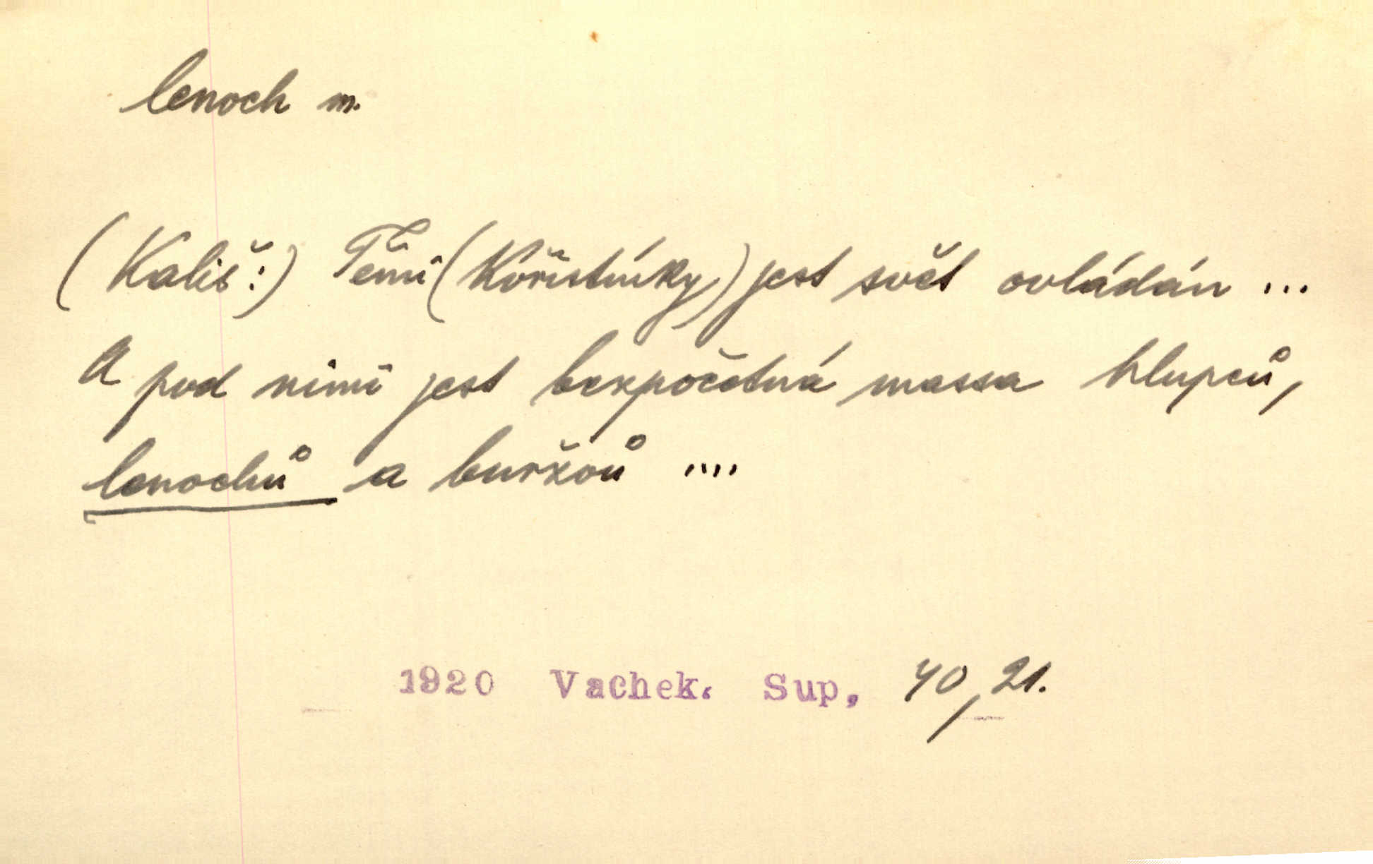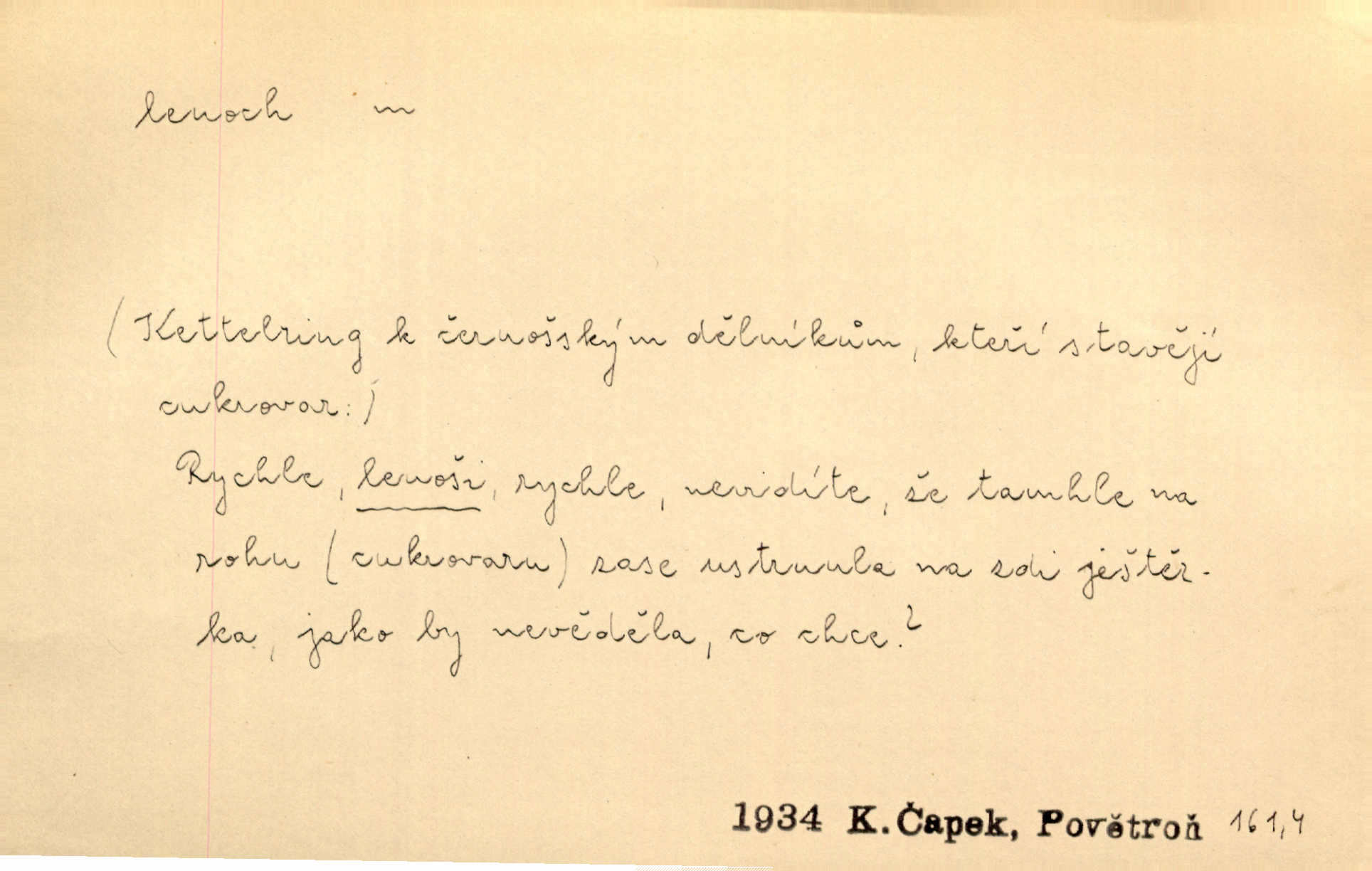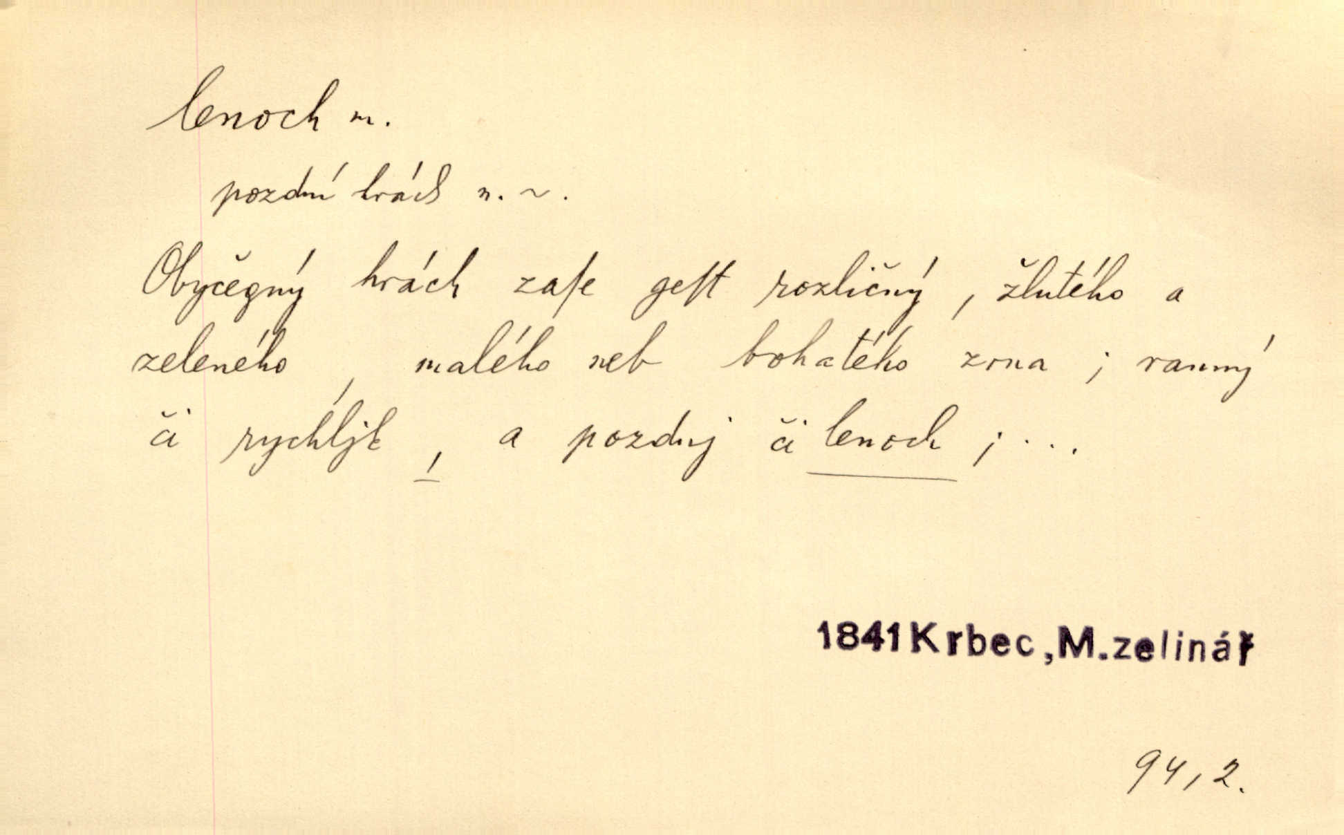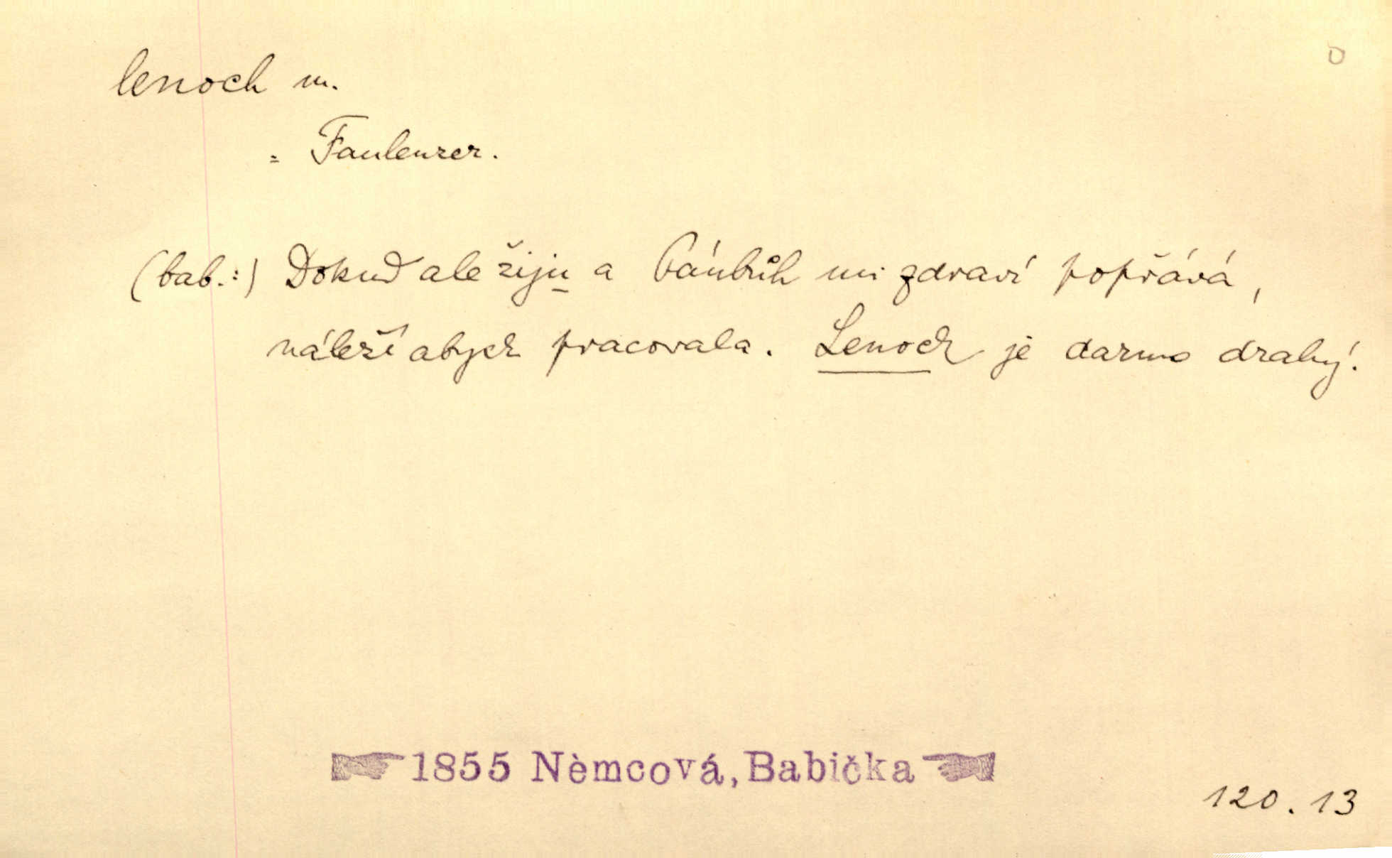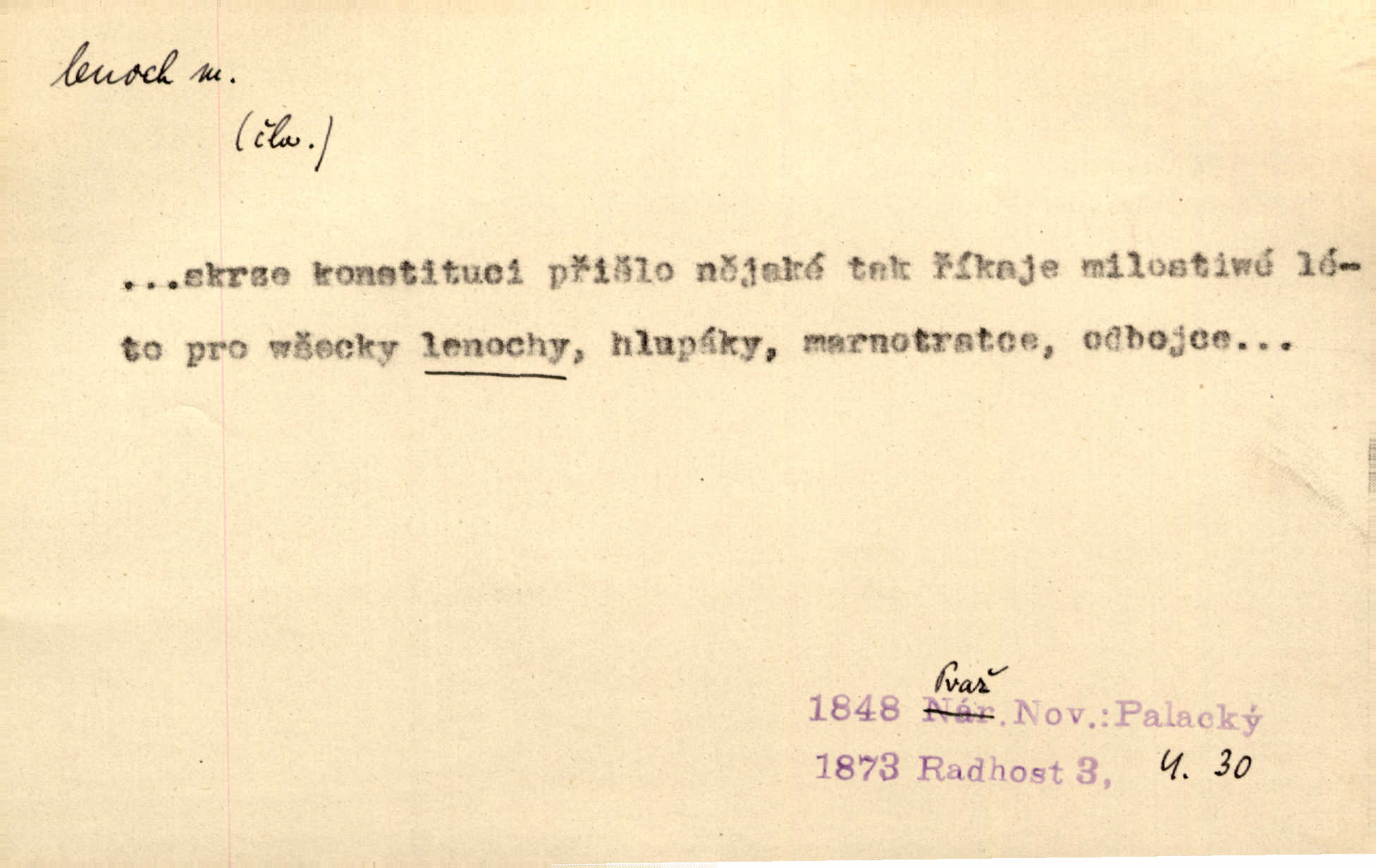 - lenoch, -u m. opěradlo sedadla. Farář bubnoval prsty do lenochu židle. Vach. D linkovaná papírová podložka. Průsvitnou koží byla mu znát žebra jako lenoch papírem. Čap. Ch.