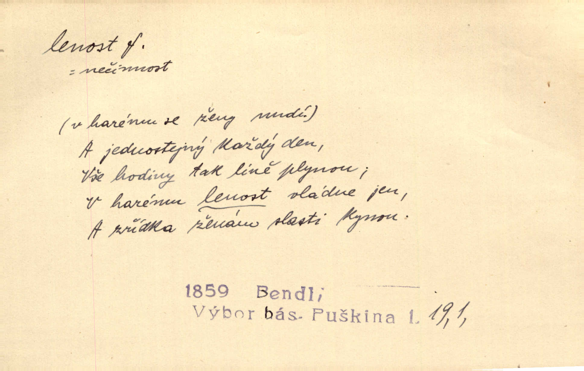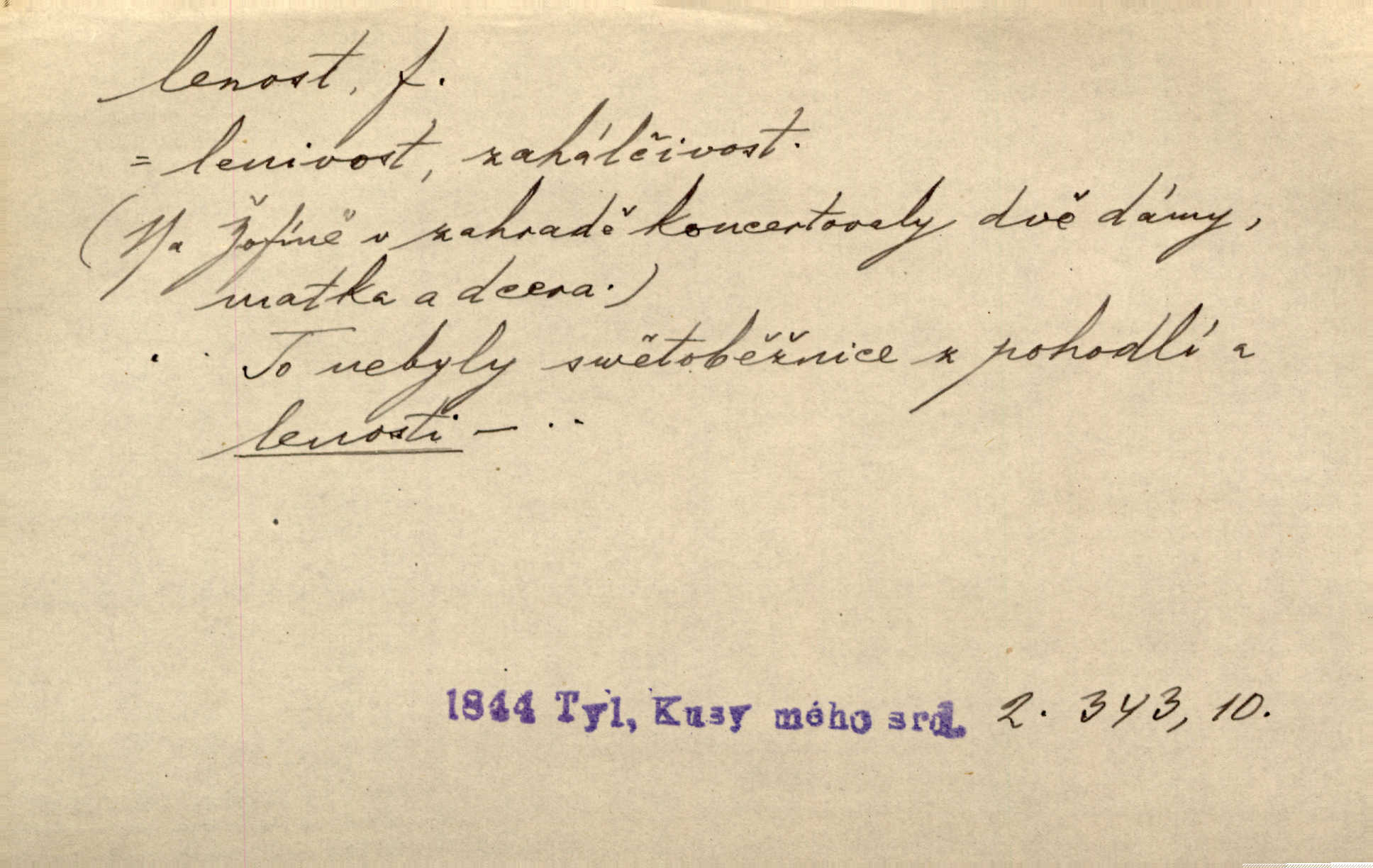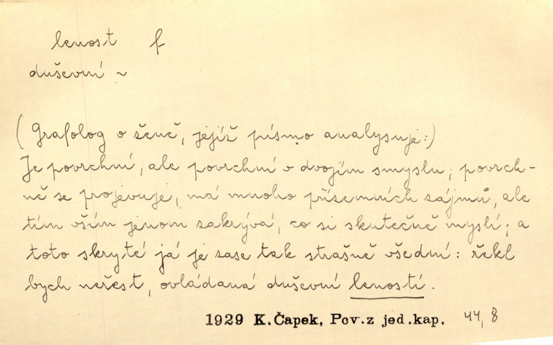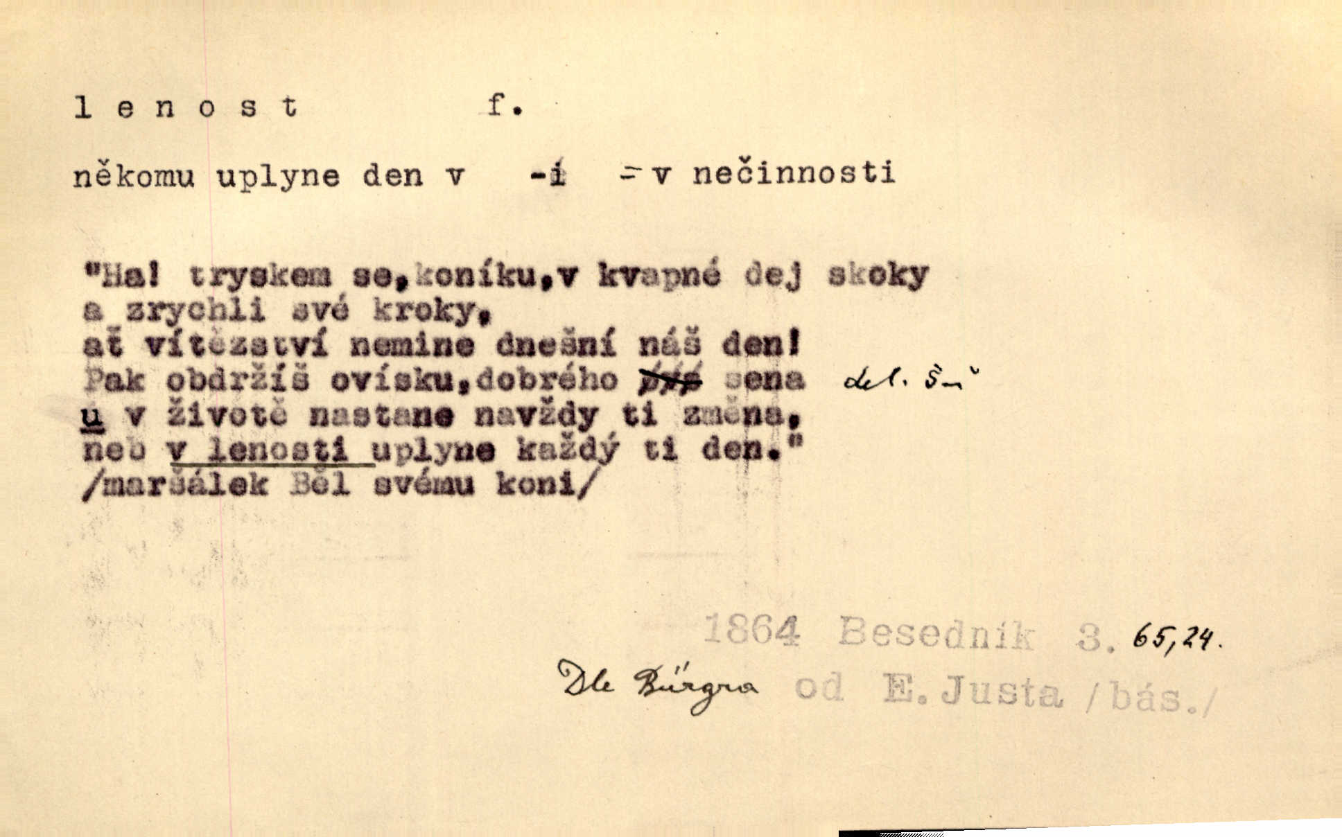 - lenost, -i f. nechut k práci, záliba v nečinnosti, lenivost, zahálčivost. Toulaví cikáni jsou pro lenost, nečistotu a ošemetnost v opovržení. Něm. Prál mu [president praktikantovi]‚ aby pilně pracoval, že prý beztoho leností až smrdí. Ner. Co mu na tom záleželo, poslouchala-li jeho budoucí snacha z lenosti duševní neb z jiné příčiny: jen když vůbec poslouchala a mlčela! Svět.