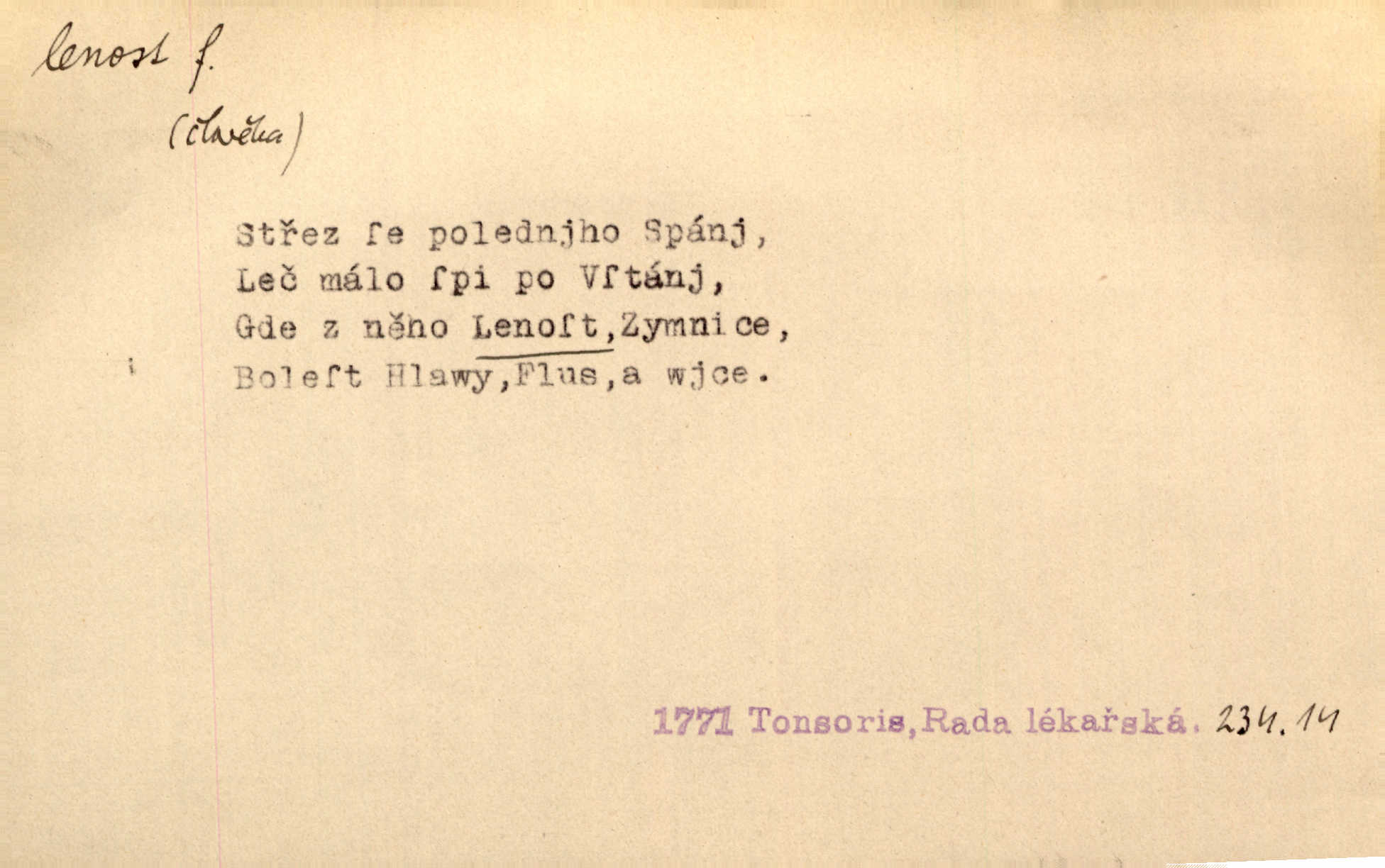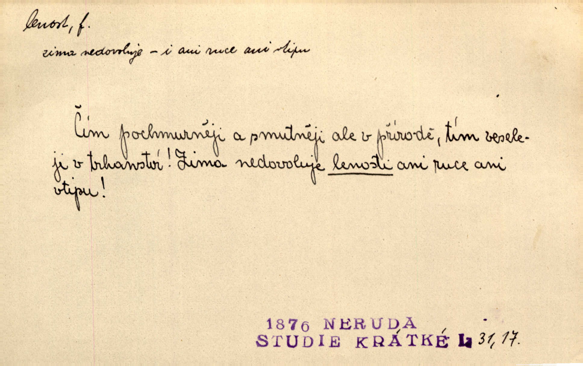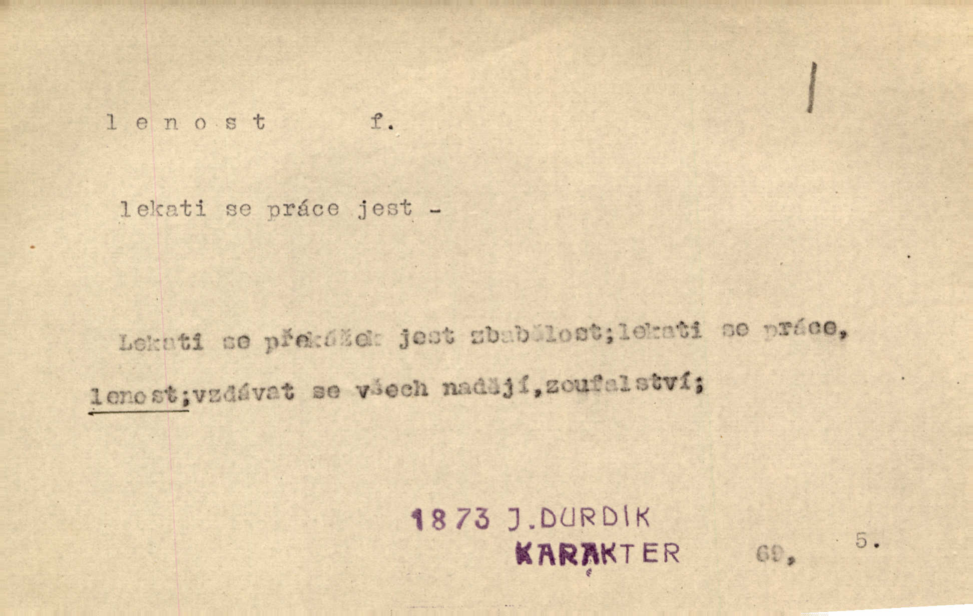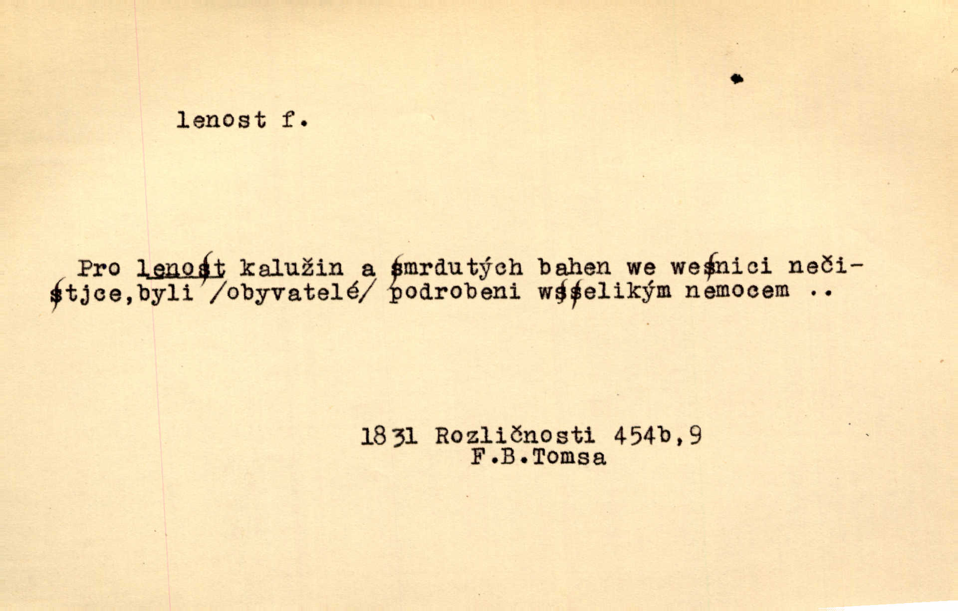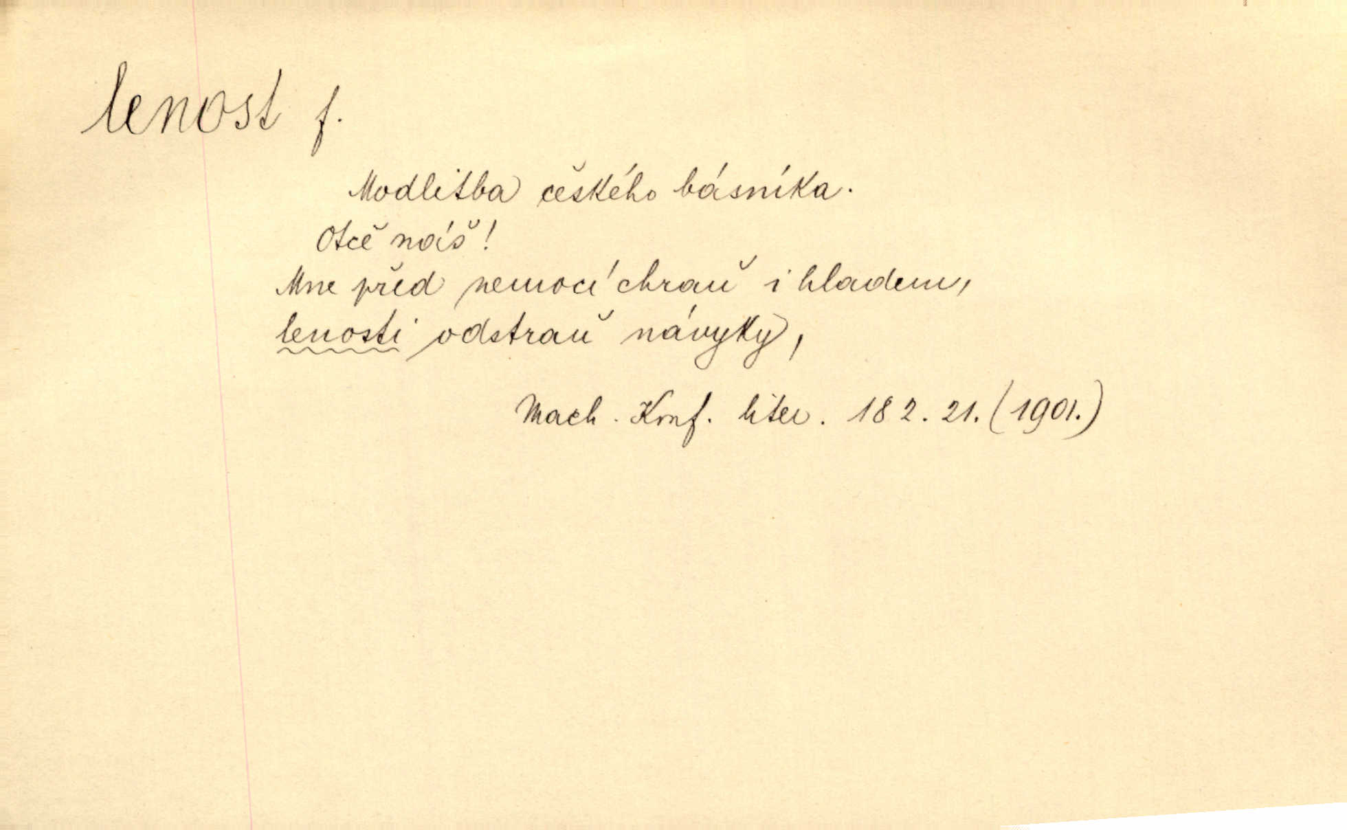 - lenost, -i f. nechut k práci, záliba v nečinnosti, lenivost, zahálčivost. Toulaví cikáni jsou pro lenost, nečistotu a ošemetnost v opovržení. Něm. Prál mu [president praktikantovi]‚ aby pilně pracoval, že prý beztoho leností až smrdí. Ner. Co mu na tom záleželo, poslouchala-li jeho budoucí snacha z lenosti duševní neb z jiné příčiny: jen když vůbec poslouchala a mlčela! Svět.