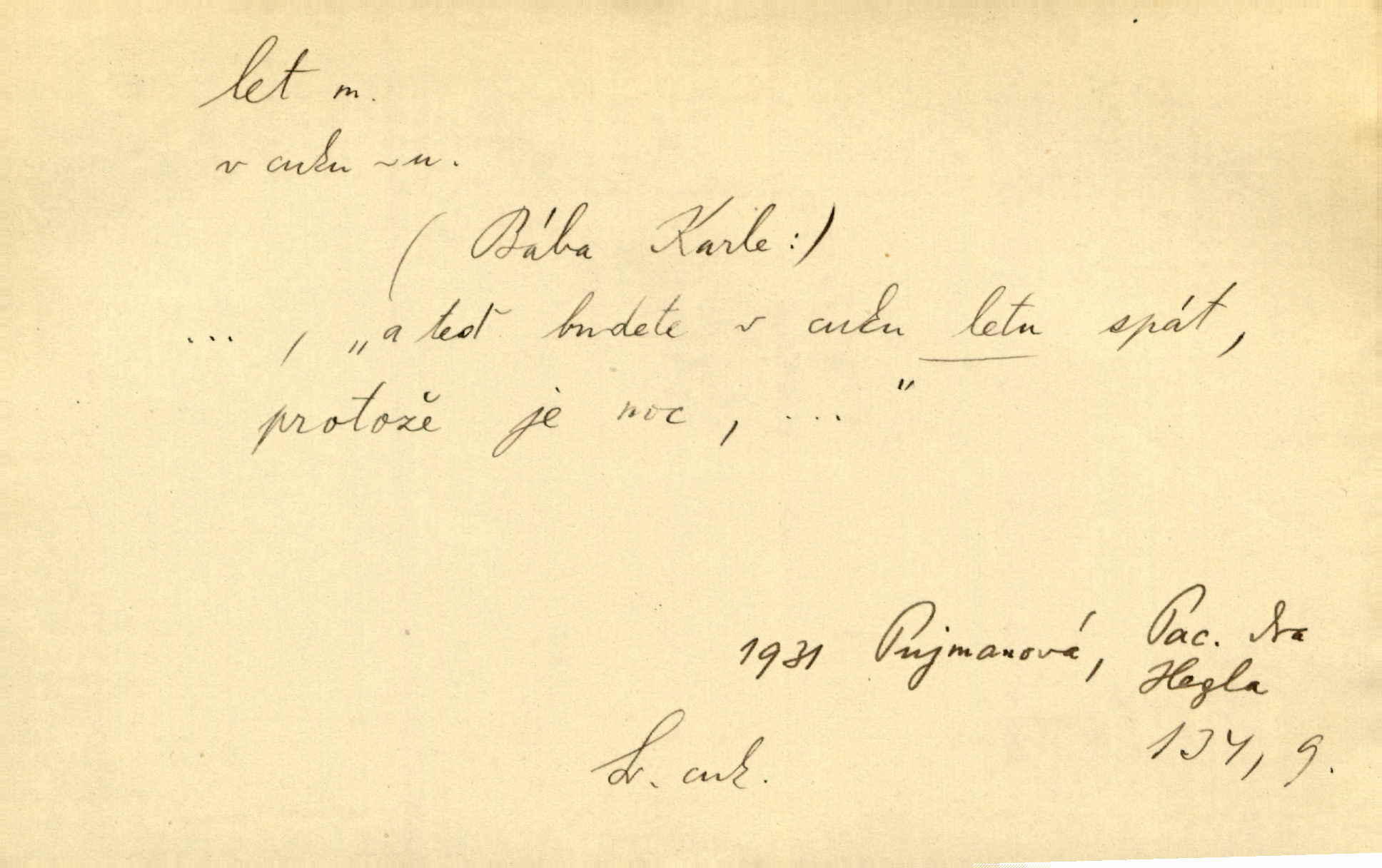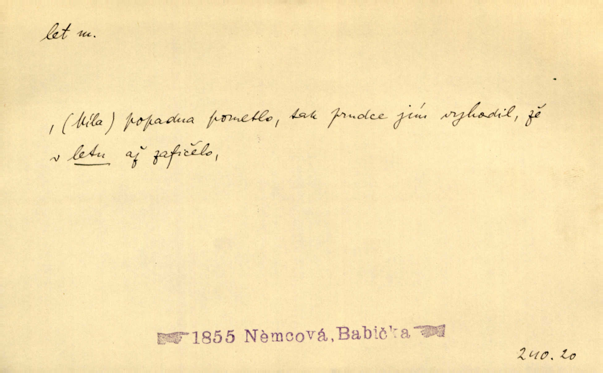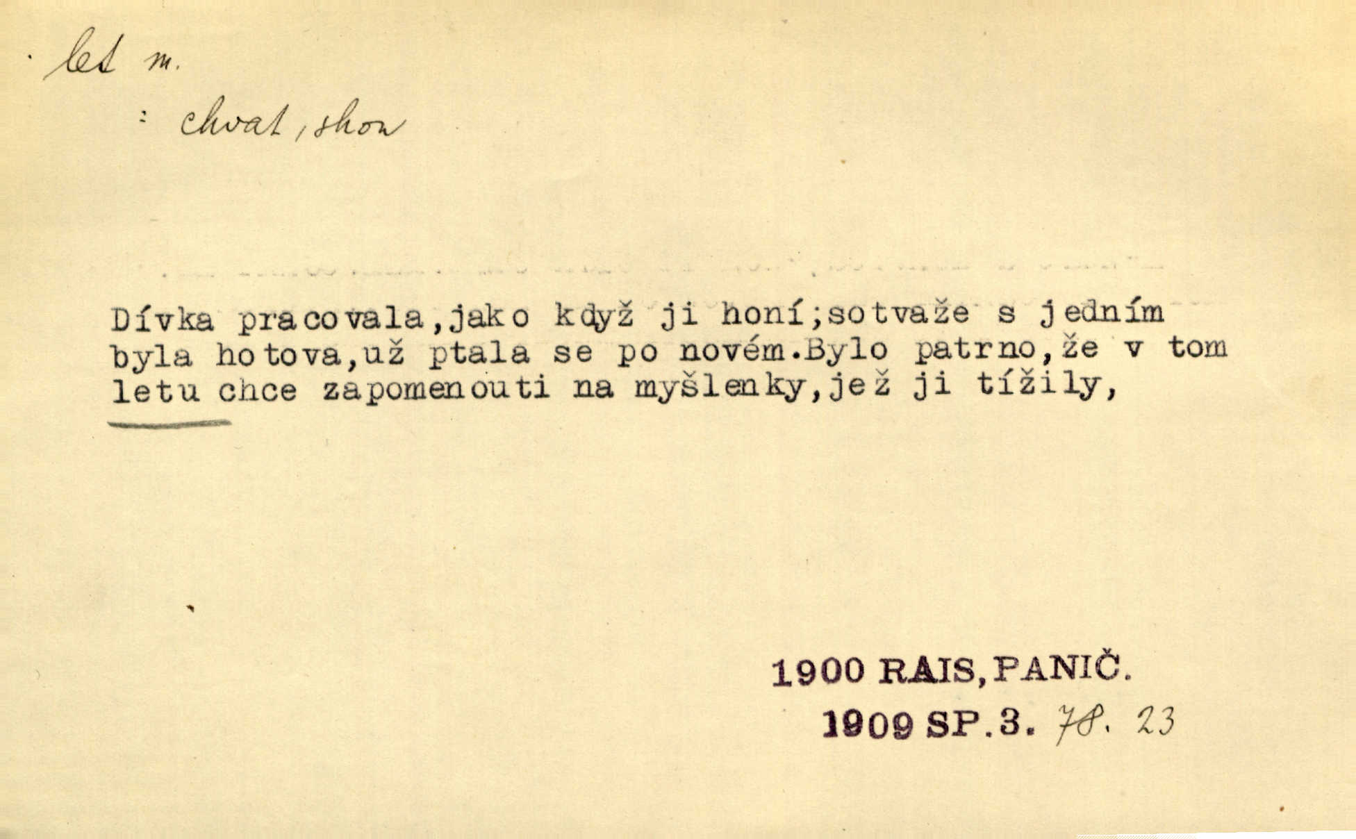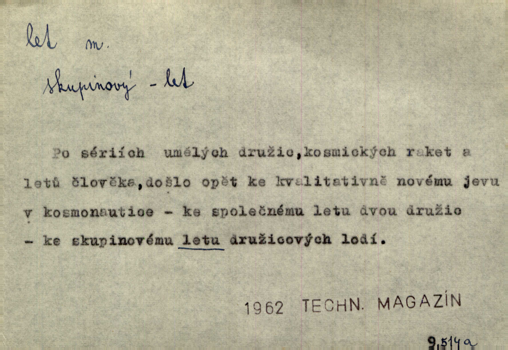 - let, -u m. pohyb ve vzduchu vlastní silou, na př. křídly. Těžkým letem ulétala vrána. Jir. Večerním šerem nad jezerem neslyšným letem sova přeletla. Vrba. Svatojanské mušky křidélka svá rozpínaly k letu. Vrch. Modří motýlci honí se trhavým letem od květu ke květu. Mach. Let. let vzestupný, sestupný, vodorovný; let na zádech při němž letec směřuje hlavou dolů; let hadovitý při němž letoun zachovávaje stejnou výšku mění ustavičně směr; let v kličkách při kterém letoun mění neustále výšku i směr; let klouzavý při kterém letec vypne motor a snáší se setrvačností, jen drakovitým působením křídel pomalu k zemi; let střemhlav při kterém letec letí prudce k zemi ve směru téměř svislém; let dálkový, let výškový. D jiný pohyb ve vzduchu. Tak prudce vyhodil [pometlo]‚ že v letu až zafičelo. Něm. Cimbura vyhodil ji [tanečnici] do výše — [a] v letu jako ptáčka zachytil naškrobenou dívenku. Baar. V letu přikrčil nohy, i klesl do řeky až po prsa. Herrm. Voj. dráha letu střely pohybu od okamžiku výstřelu až k okamžiku nárazu. D rychlý pohyb vůbec. Rychlíku horečný ustal náhle let. Sova. Vzpomínám si na let vody smělý. Klášt. Let změnil se ve volný tanec. Rais. D spěch, chvat. Dívka pracovala, jako když ji honí; sotvaže s jedním byla hotova, už ptala se po novém. Bylo patrno, že v tom letu chce zapomenouti na myšlenky, jež ji tížily. Rais. List jeho byl v jediném letu napsán, šuměl radostí. Svob. Marná snaha, času letu bránit. Heyd. Těchto květů tísně se netknul času let ni špíny rmut. Vrch. Lid. Teď budete v cuku letu spát, protože je noc ihned. Pujmanová. D rychlé šíření, rozšiřování se, rozmáhání se. Od míst, kde zlatí slunce hvozdy tmavy, se požár vírem v divoký dal let. Vrch. Ukázalo se za nějaký čas, že pověst letem vzrostla. Jir. Tak prudký a vítězný let milované ideje, že se lidé vzpamatovali teprv, když lodě stahovaly svoje plachty v přístavu. V. Mrš. D Bás. o vzletu, kypění, silném rozvinutí duševní schopnosti. Můj duch se rozpial plným letem. Hál. Jich [apoštolů] čelo plno vznešených je dum, let myšlének je vznáší k nebesům. X. Dvoř. Její [chůvina] pohádková fantasie předčila letem svým chod událostí. Podl. [Sládkova sbírka] obsahující vedle svěžích písní lehkého letu a vedle vybroušených sonettů také mnoho meditační lyriky intimní. Arne N.