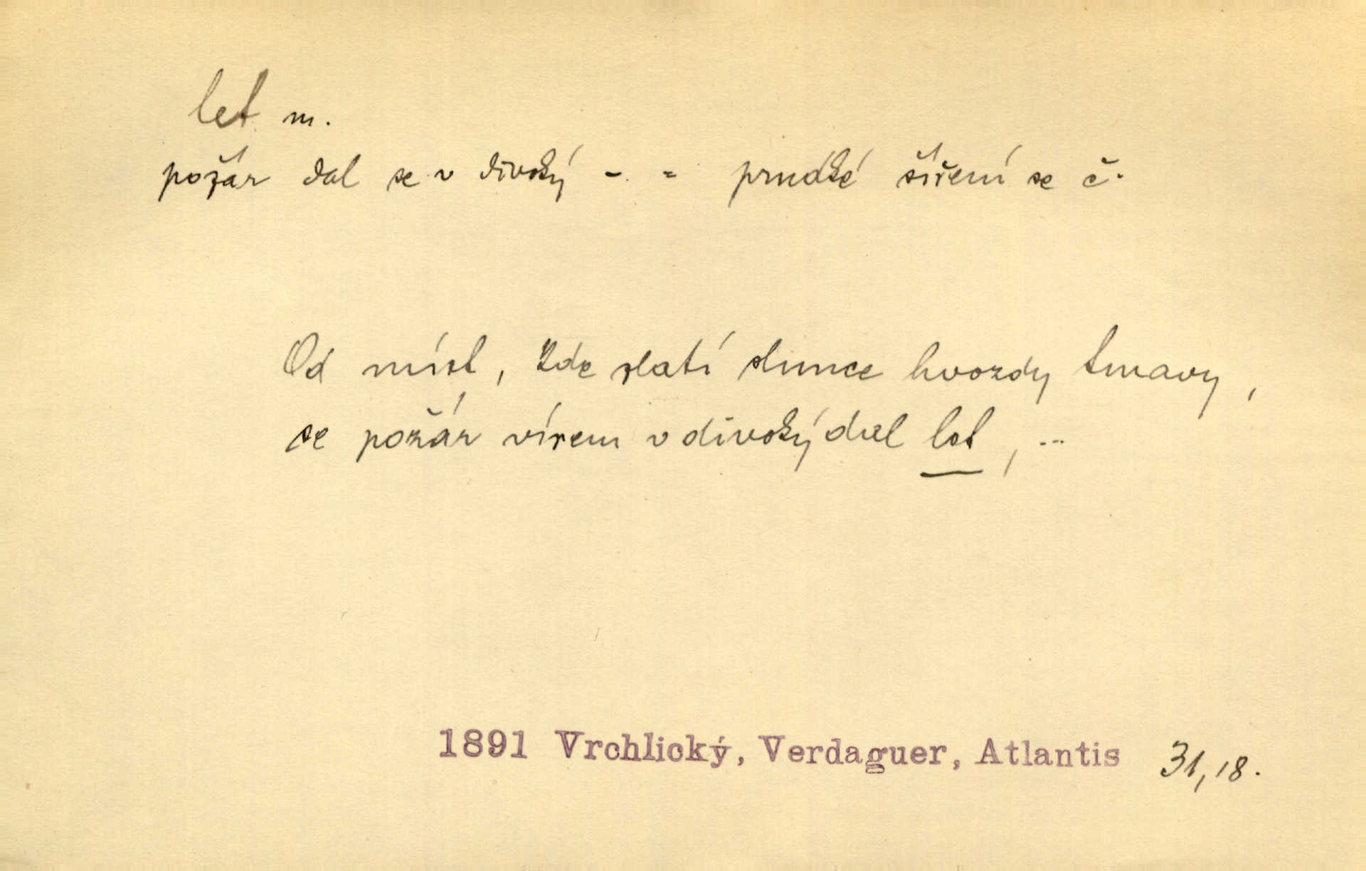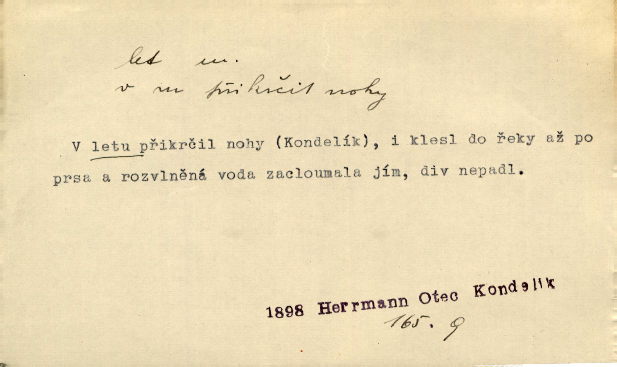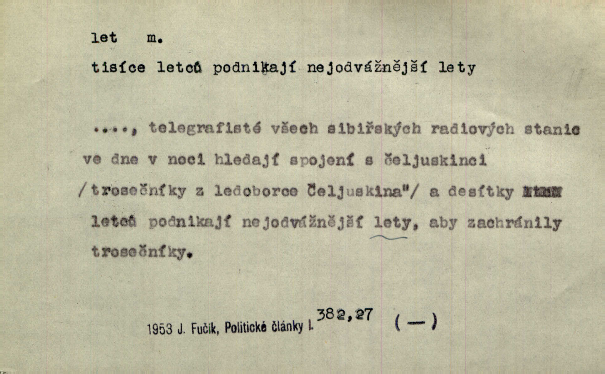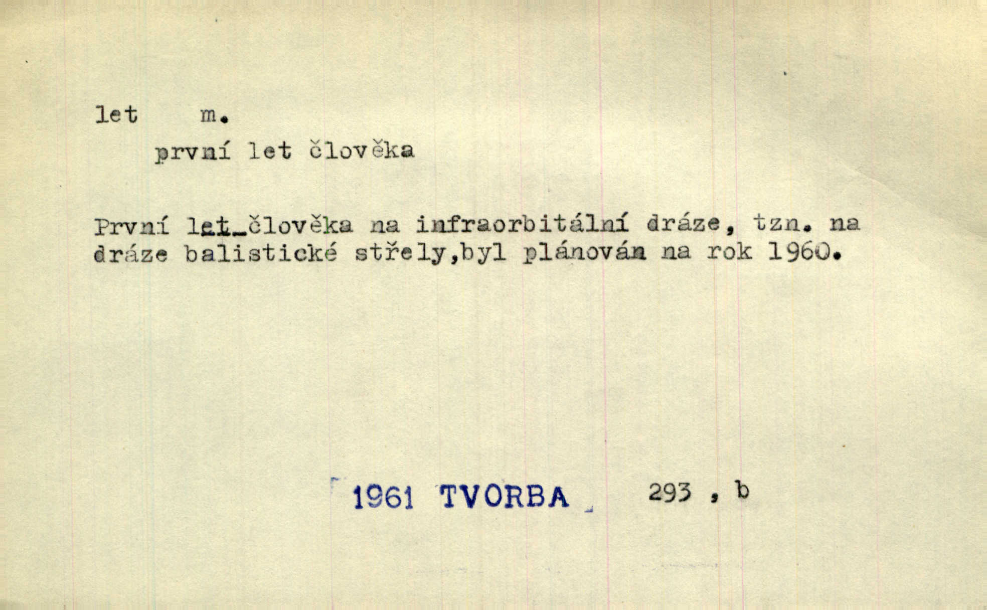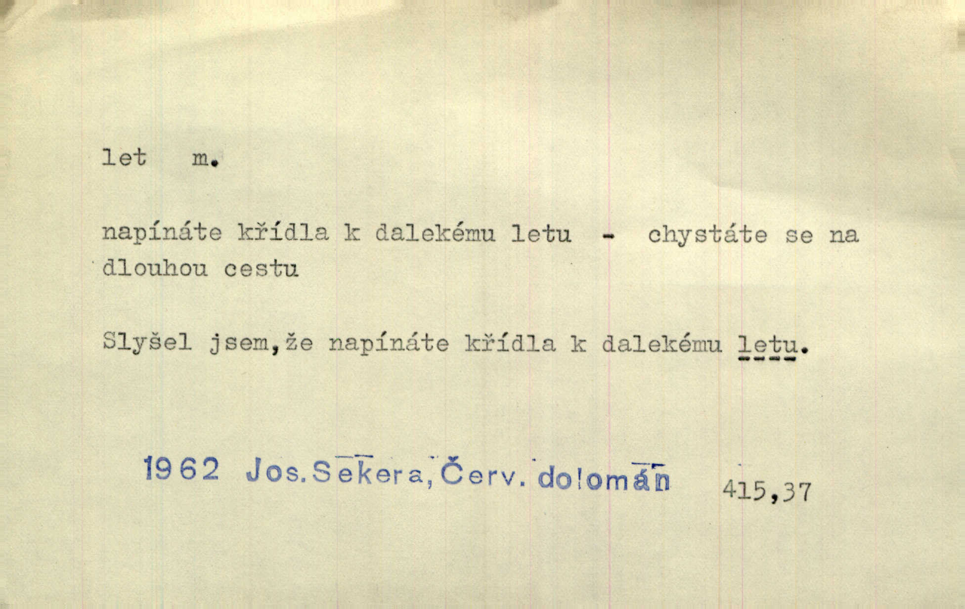 - let, -u m. pohyb ve vzduchu vlastní silou, na př. křídly. Těžkým letem ulétala vrána. Jir. Večerním šerem nad jezerem neslyšným letem sova přeletla. Vrba. Svatojanské mušky křidélka svá rozpínaly k letu. Vrch. Modří motýlci honí se trhavým letem od květu ke květu. Mach. Let. let vzestupný, sestupný, vodorovný; let na zádech při němž letec směřuje hlavou dolů; let hadovitý při němž letoun zachovávaje stejnou výšku mění ustavičně směr; let v kličkách při kterém letoun mění neustále výšku i směr; let klouzavý při kterém letec vypne motor a snáší se setrvačností, jen drakovitým působením křídel pomalu k zemi; let střemhlav při kterém letec letí prudce k zemi ve směru téměř svislém; let dálkový, let výškový. D jiný pohyb ve vzduchu. Tak prudce vyhodil [pometlo]‚ že v letu až zafičelo. Něm. Cimbura vyhodil ji [tanečnici] do výše — [a] v letu jako ptáčka zachytil naškrobenou dívenku. Baar. V letu přikrčil nohy, i klesl do řeky až po prsa. Herrm. Voj. dráha letu střely pohybu od okamžiku výstřelu až k okamžiku nárazu. D rychlý pohyb vůbec. Rychlíku horečný ustal náhle let. Sova. Vzpomínám si na let vody smělý. Klášt. Let změnil se ve volný tanec. Rais. D spěch, chvat. Dívka pracovala, jako když ji honí; sotvaže s jedním byla hotova, už ptala se po novém. Bylo patrno, že v tom letu chce zapomenouti na myšlenky, jež ji tížily. Rais. List jeho byl v jediném letu napsán, šuměl radostí. Svob. Marná snaha, času letu bránit. Heyd. Těchto květů tísně se netknul času let ni špíny rmut. Vrch. Lid. Teď budete v cuku letu spát, protože je noc ihned. Pujmanová. D rychlé šíření, rozšiřování se, rozmáhání se. Od míst, kde zlatí slunce hvozdy tmavy, se požár vírem v divoký dal let. Vrch. Ukázalo se za nějaký čas, že pověst letem vzrostla. Jir. Tak prudký a vítězný let milované ideje, že se lidé vzpamatovali teprv, když lodě stahovaly svoje plachty v přístavu. V. Mrš. D Bás. o vzletu, kypění, silném rozvinutí duševní schopnosti. Můj duch se rozpial plným letem. Hál. Jich [apoštolů] čelo plno vznešených je dum, let myšlének je vznáší k nebesům. X. Dvoř. Její [chůvina] pohádková fantasie předčila letem svým chod událostí. Podl. [Sládkova sbírka] obsahující vedle svěžích písní lehkého letu a vedle vybroušených sonettů také mnoho meditační lyriky intimní. Arne N.