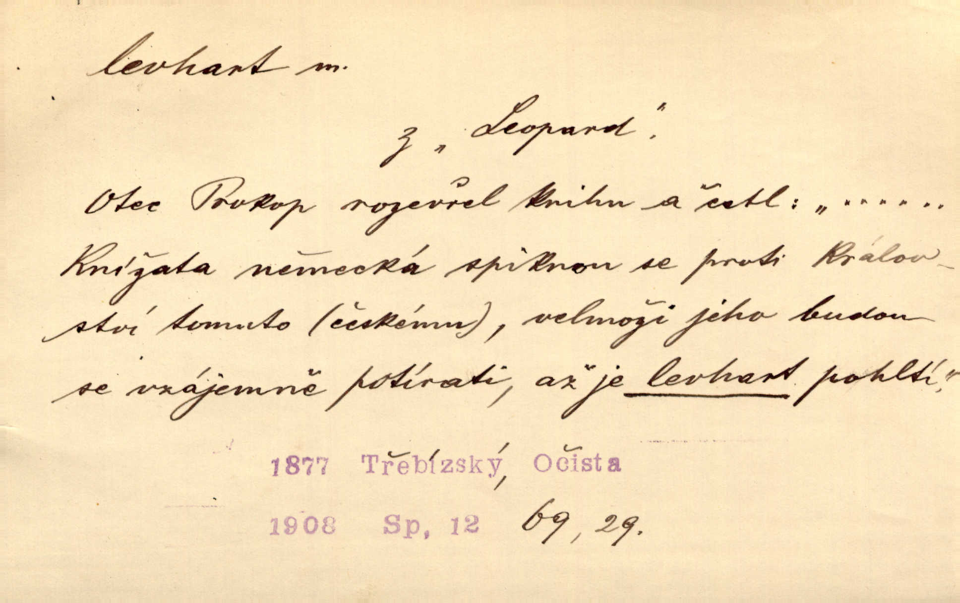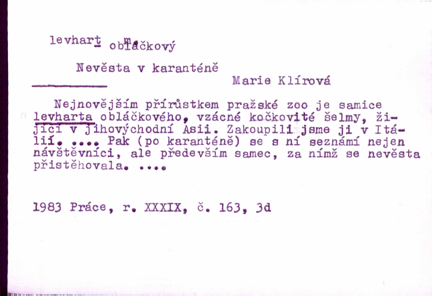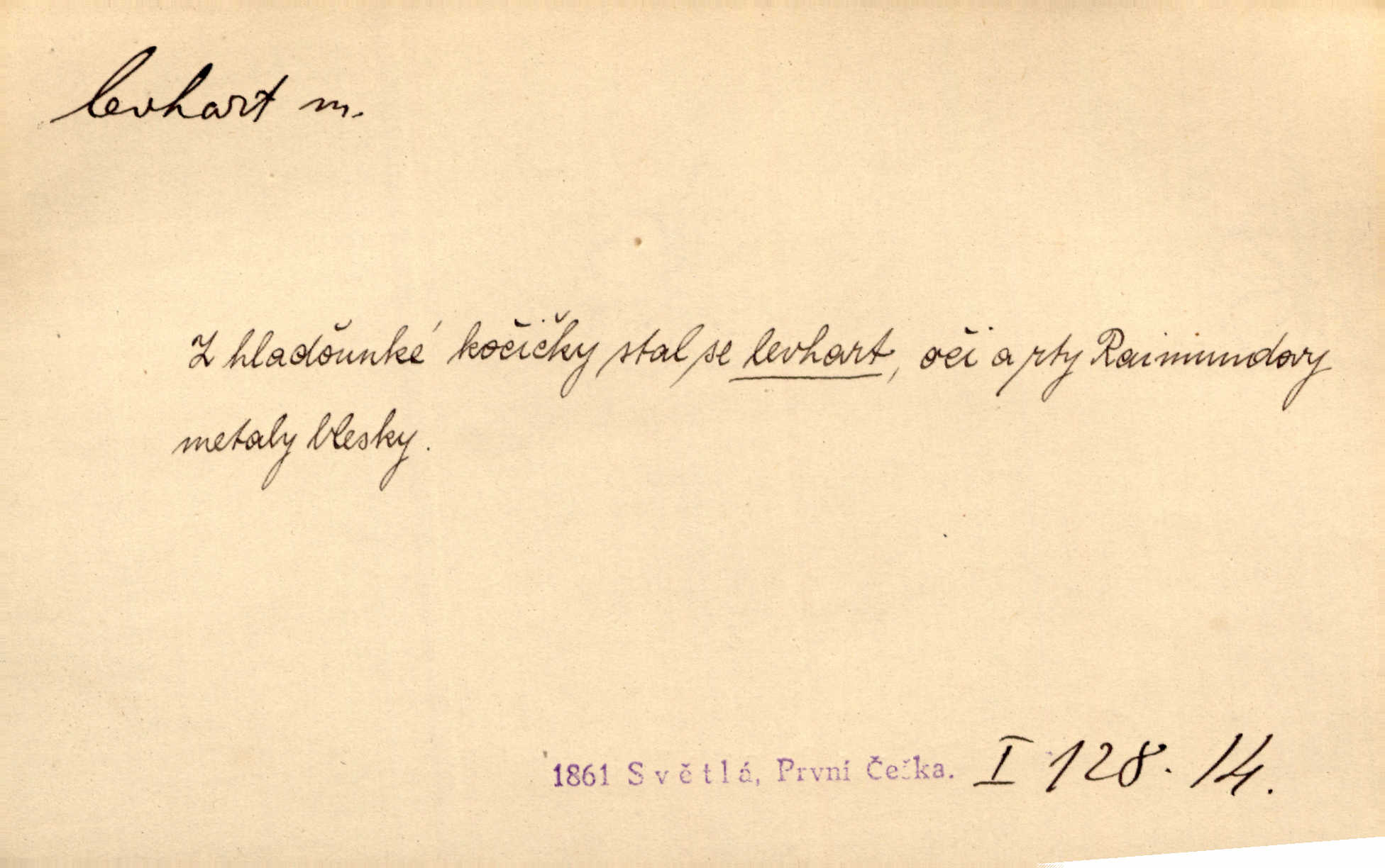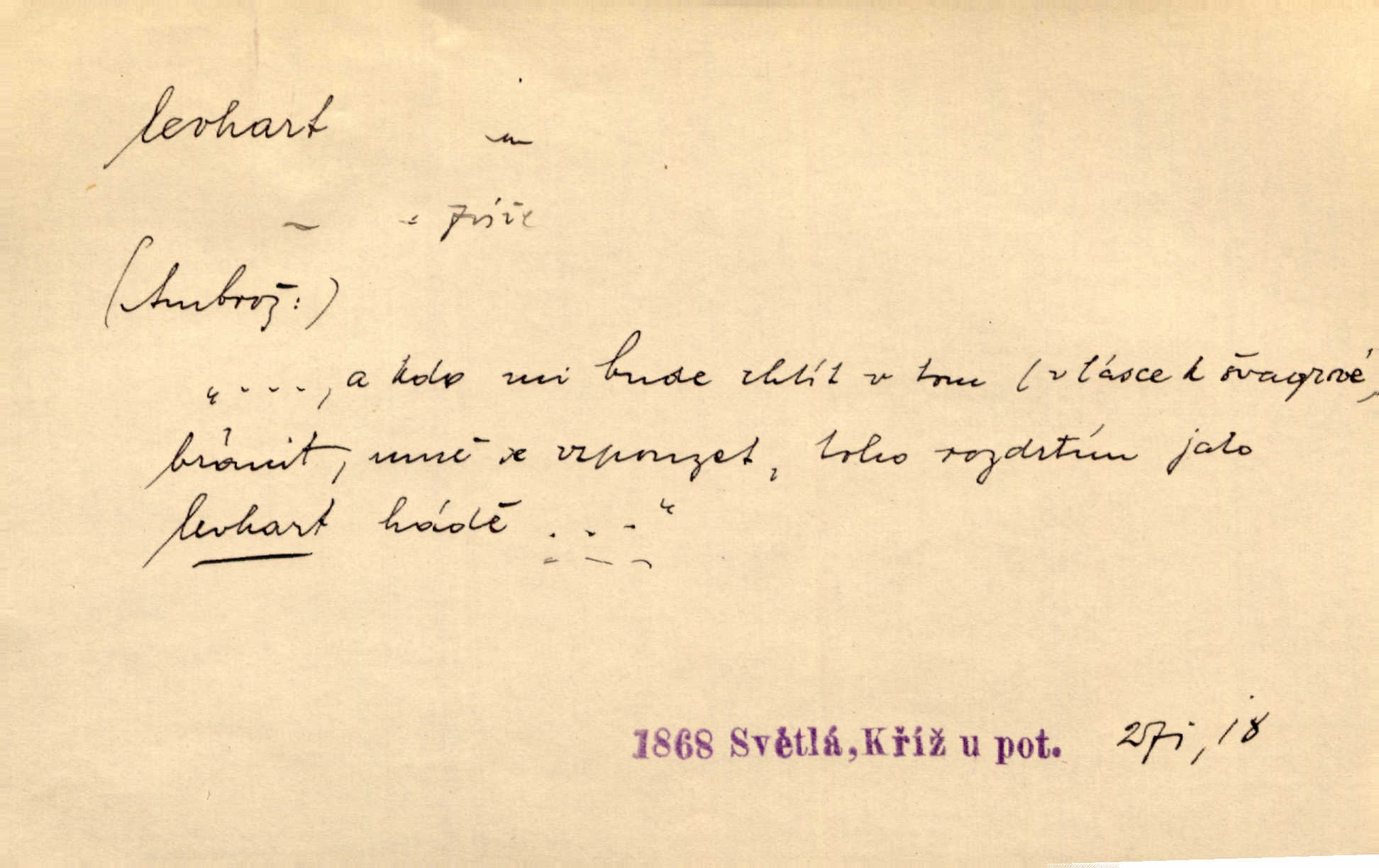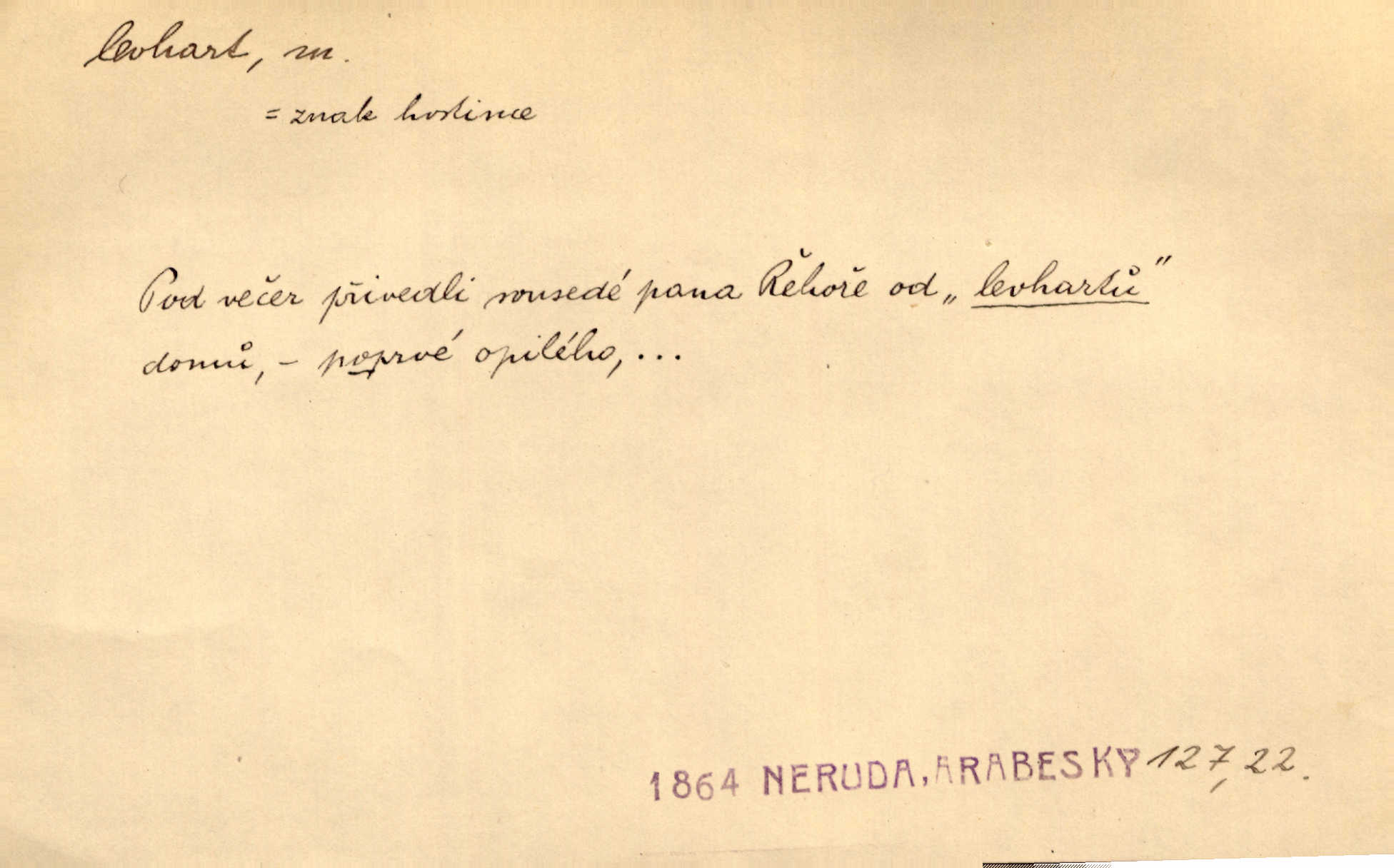 - levhart, -a m. dravá šelma Felis pardus, pardál. Hrabě vyskočil jako levhart proti starému myslivci a chytil ho za prsa. Jir. Kdo mi bude chtít v tom bránit, toho rozdrtím jako levhart hádě. Svět.