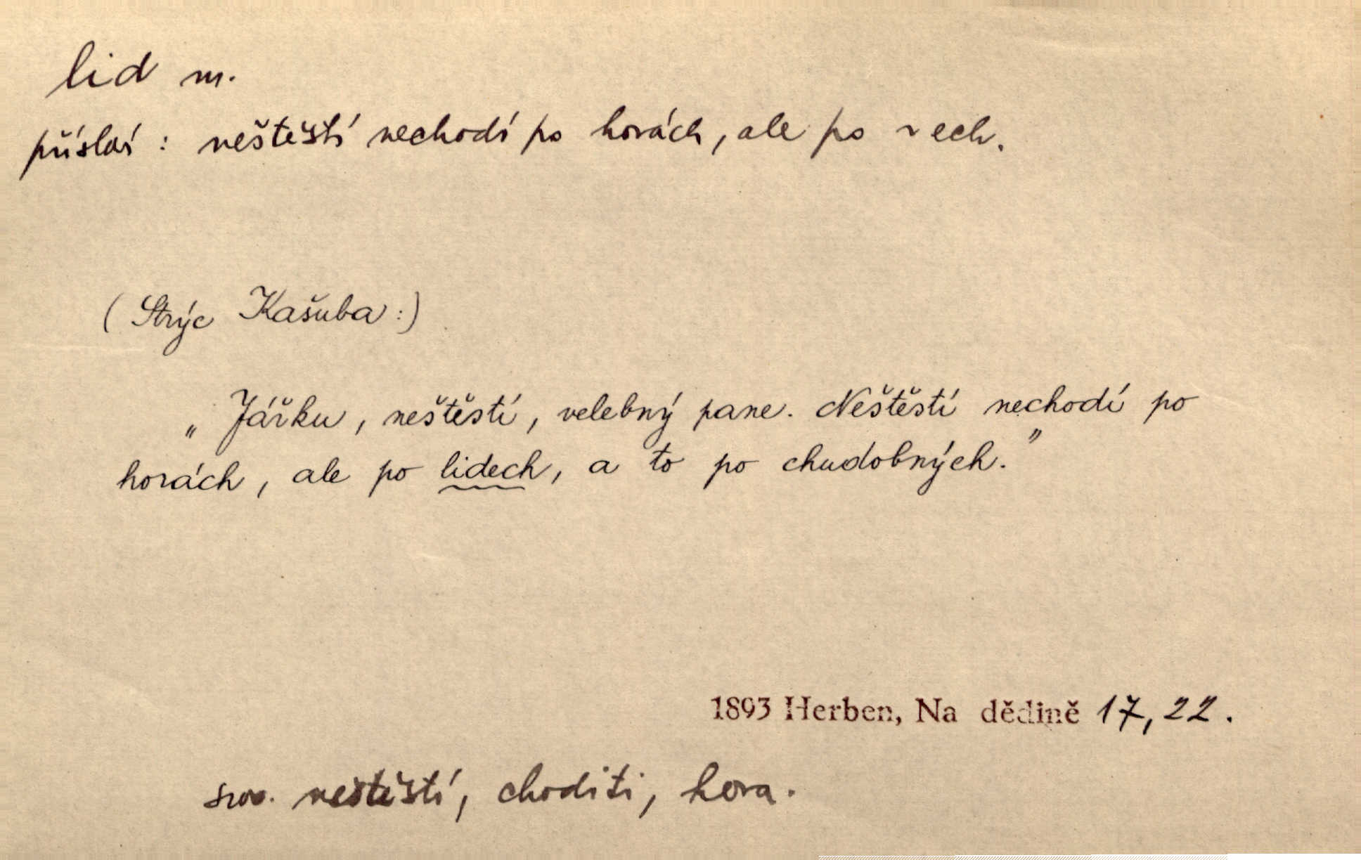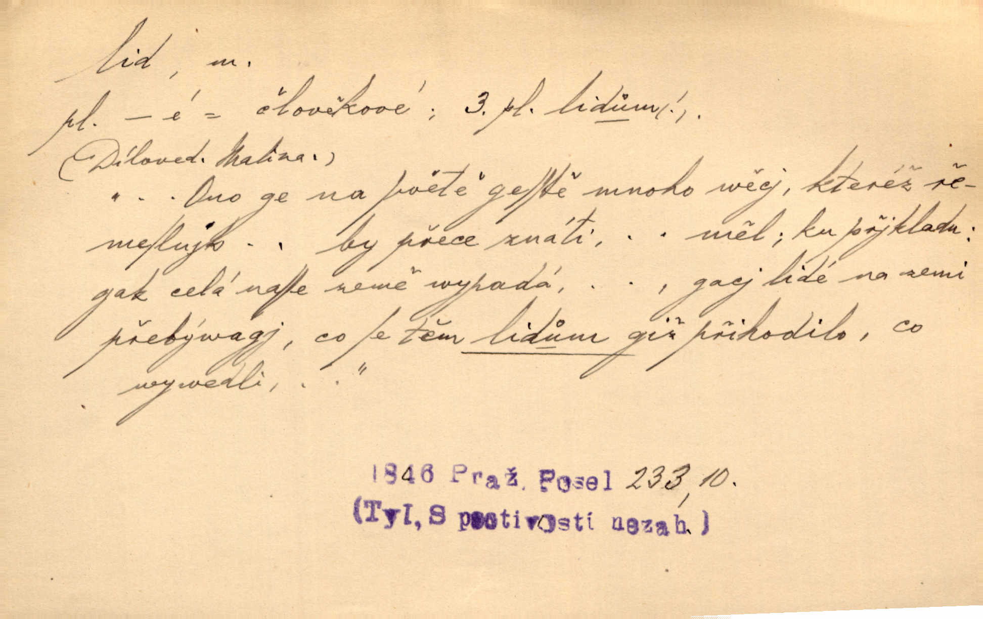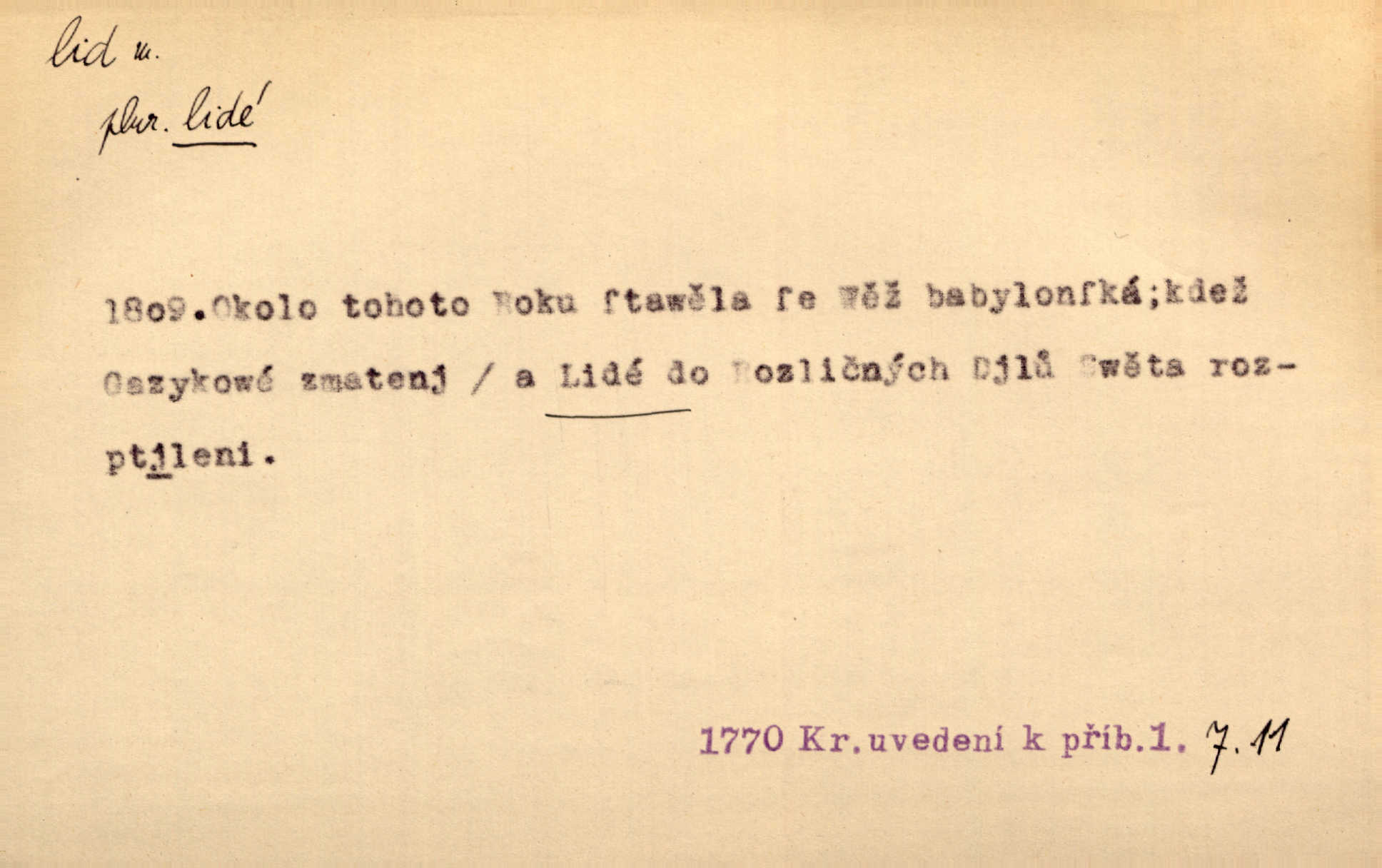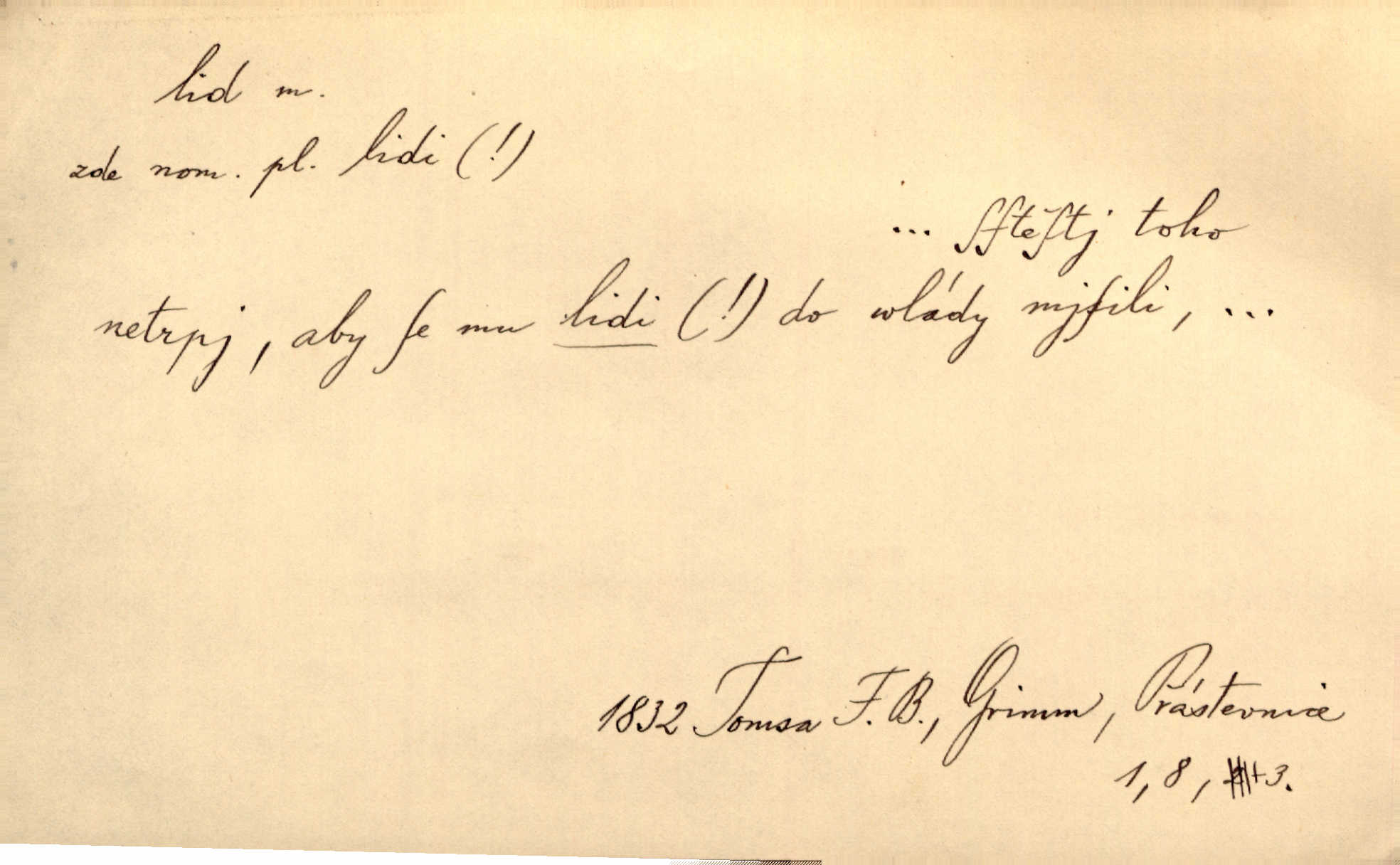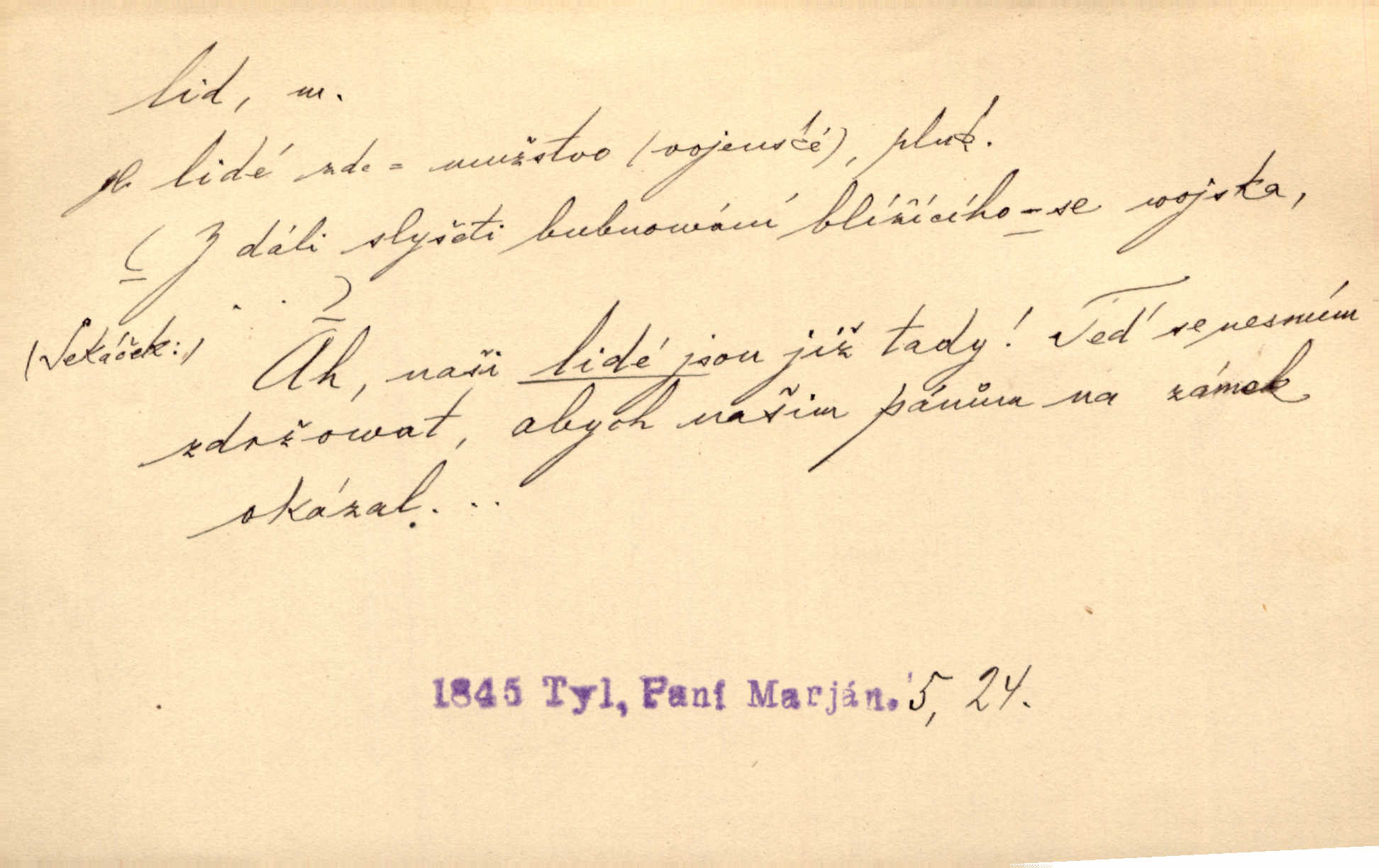 - lid, -u m. široké vrstvy společenské (dělnické, zemědělské, středního stavu). Z pojmu národa jako celku politického vyděluje se sociálnější pojem lidu. Sociálně se mluví od té doby [konce 18. stol.] o lidu, co do jazyka a politické moci o národu. Mas. Svolán byl poddaný lid. Herb. Viděl jsem tu královnu, jež lid svůj miluje poddané. Zey. Berkovec a hejtmané lidu branného s lidem pěším a jízdním sestoupili na most vojskem. Goll. S lidem svým zacházel jako s věcí se zaměstnanci, s personálem. Don. Všechen mladý mužský lid, nejen svobodní, ale také ženatí; výrostkové dali se na náhlý útěk. Jir. Bylo možno vyčísti z tváří soudců z lidu, že obžalobě rozumějí stále ještě jenom jako tvrzení porotců. Čap. Ch. D lidé vůbec. Zástupy lidu shromažďovaly se na chodnících. Čech. Do nádraží vevalil se proud lidu. K. Čap. [Šenkýřky:] To budeme mít moc lidu. Erb. D národ. Český lide, kde pak je tvůj král? Vrch. V ulicích lid Israelský zmírá. Vrch.