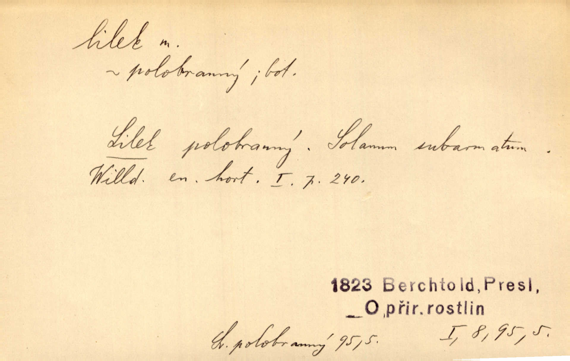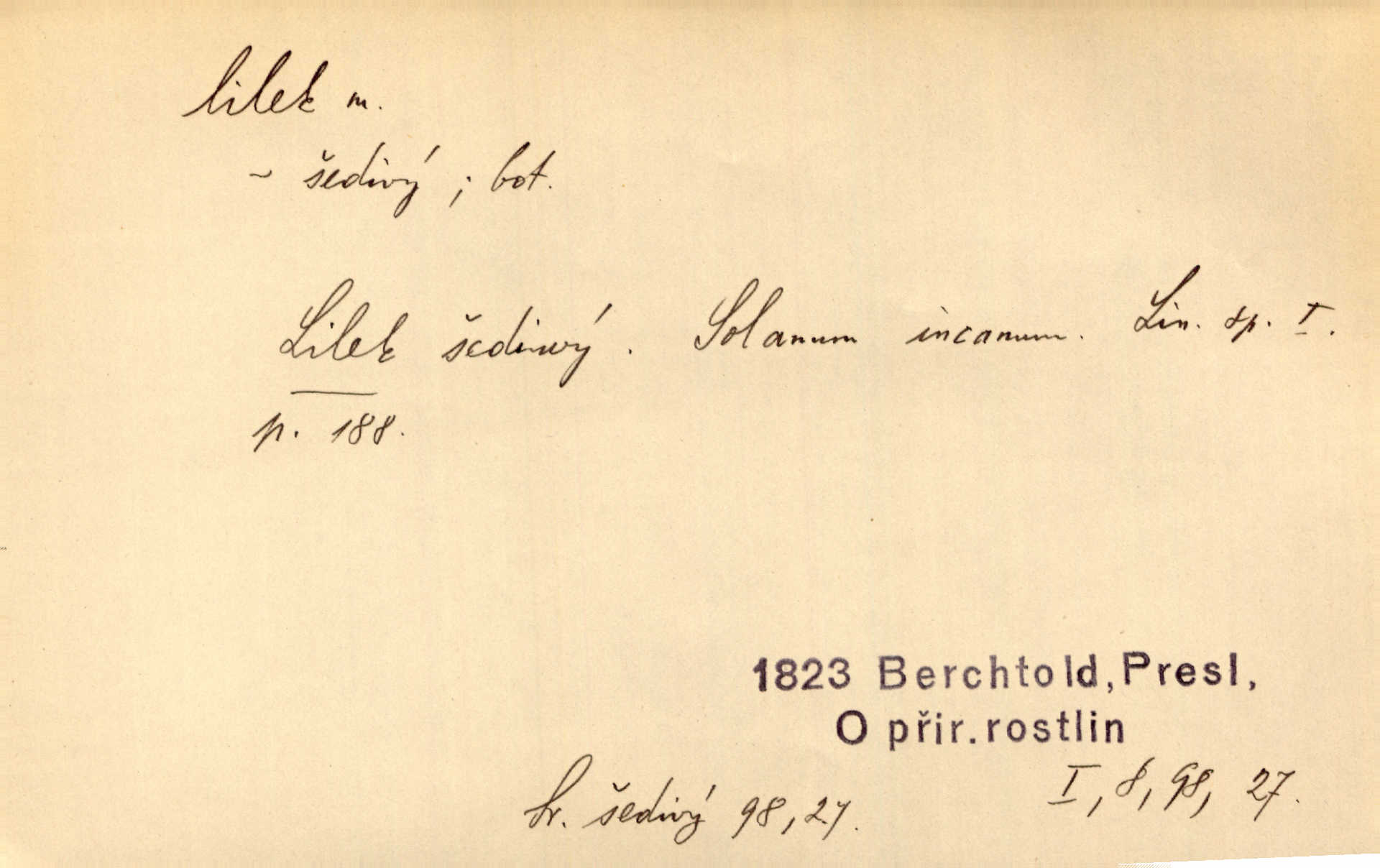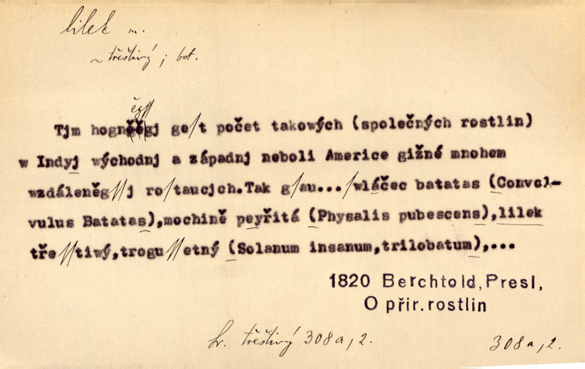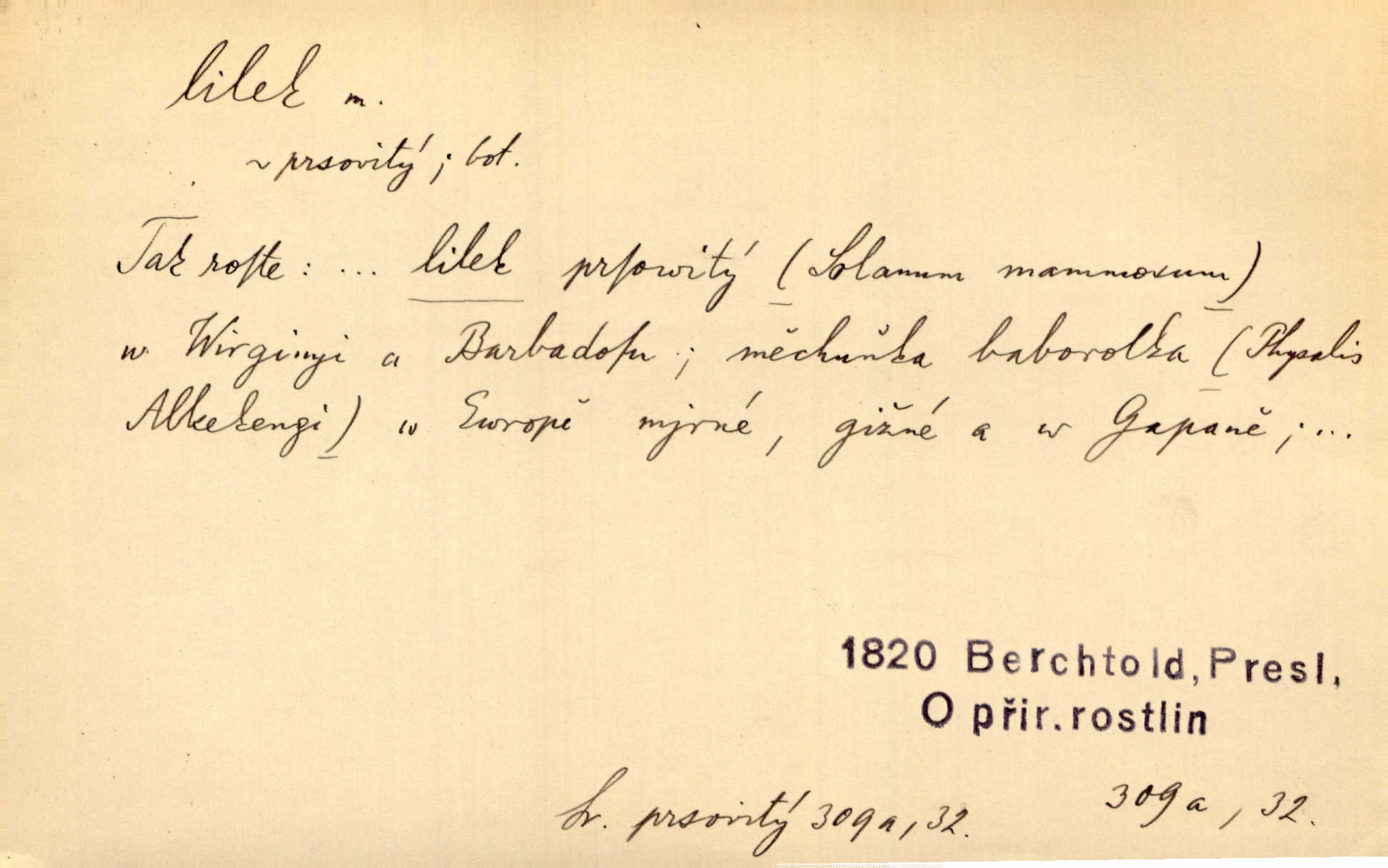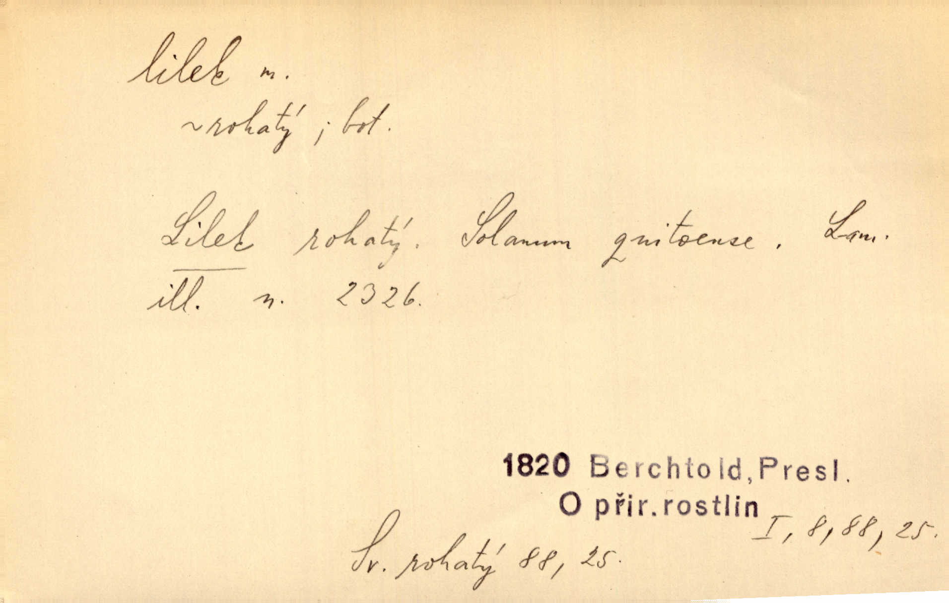 - lilek, -lku m. bot. rod rostlin z čeledi lilkovitých, Solanum. D Lid. narkotikum. Nebylo s ní řeči, zrovna jako by jí byl někdo lilku dal. Šmil. Což jsi se napil lilku, Krušino? třeštíš, zbláznil jsi se? Šmil.