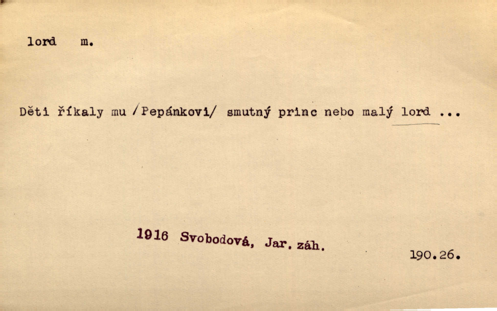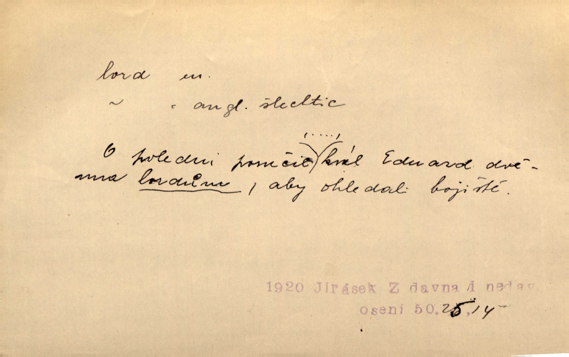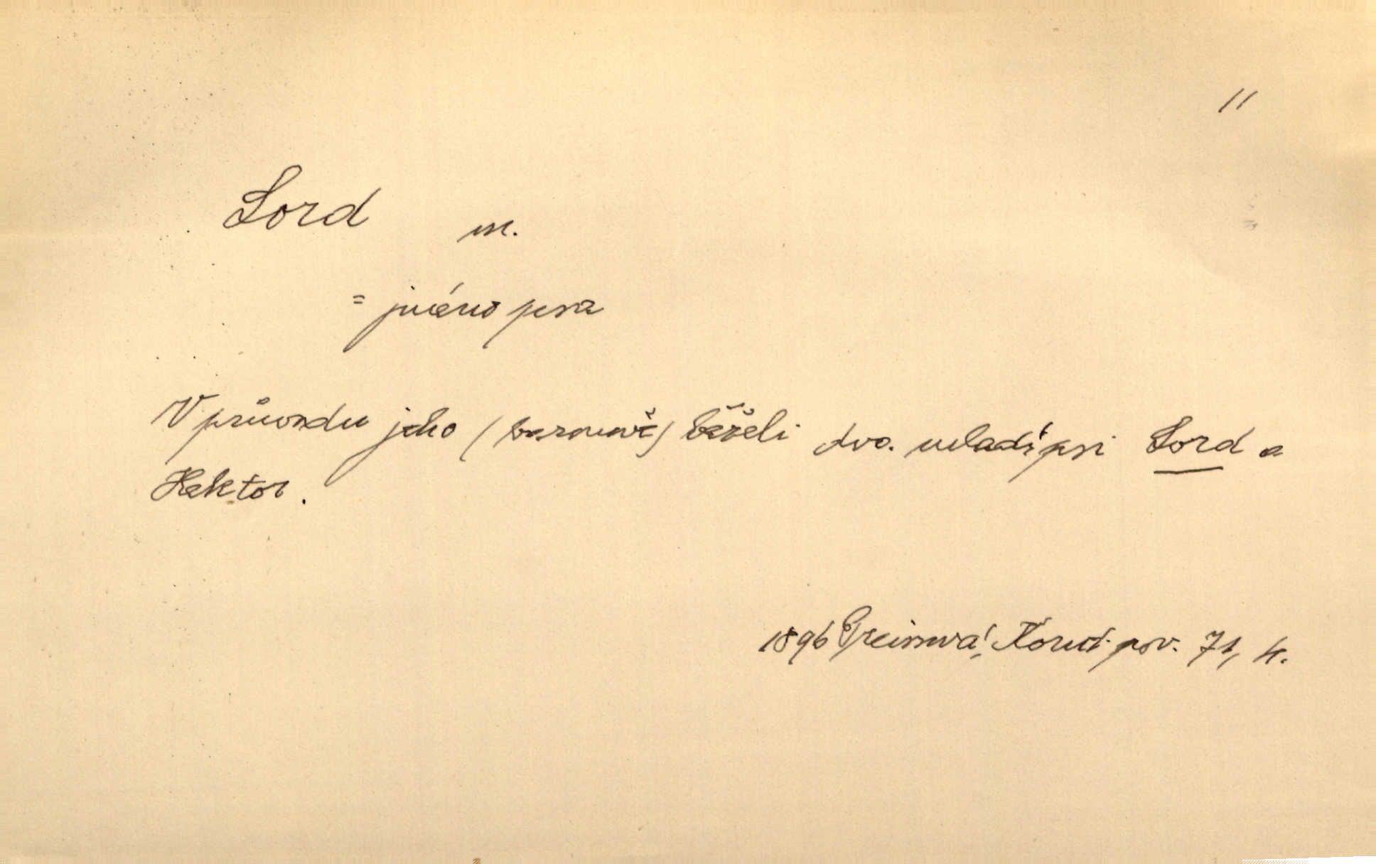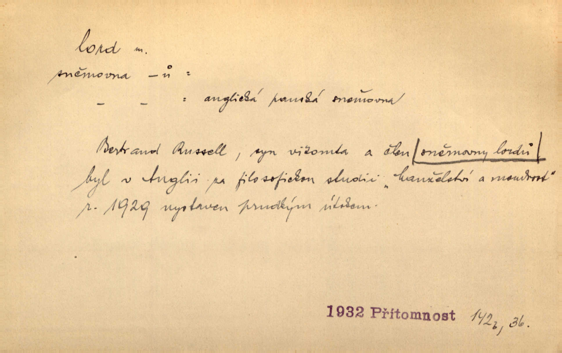 - lord, -a m. vyšší šlechtic, titul biskupa státní církve, starosty velkoměsta, soudního předsedy a některých vysokých úředníků ve Velké Britannii. Sněmovna lordů panská sněmovna, horní sněmovna ve Velké Britannii. Lord kancléř, lord admirality a j. V poledne odešel vyšňořený jako lord velmi. Lier. Druhý den kráčel Prahou zas již jako mladý lord sebevědomě. Herrm.