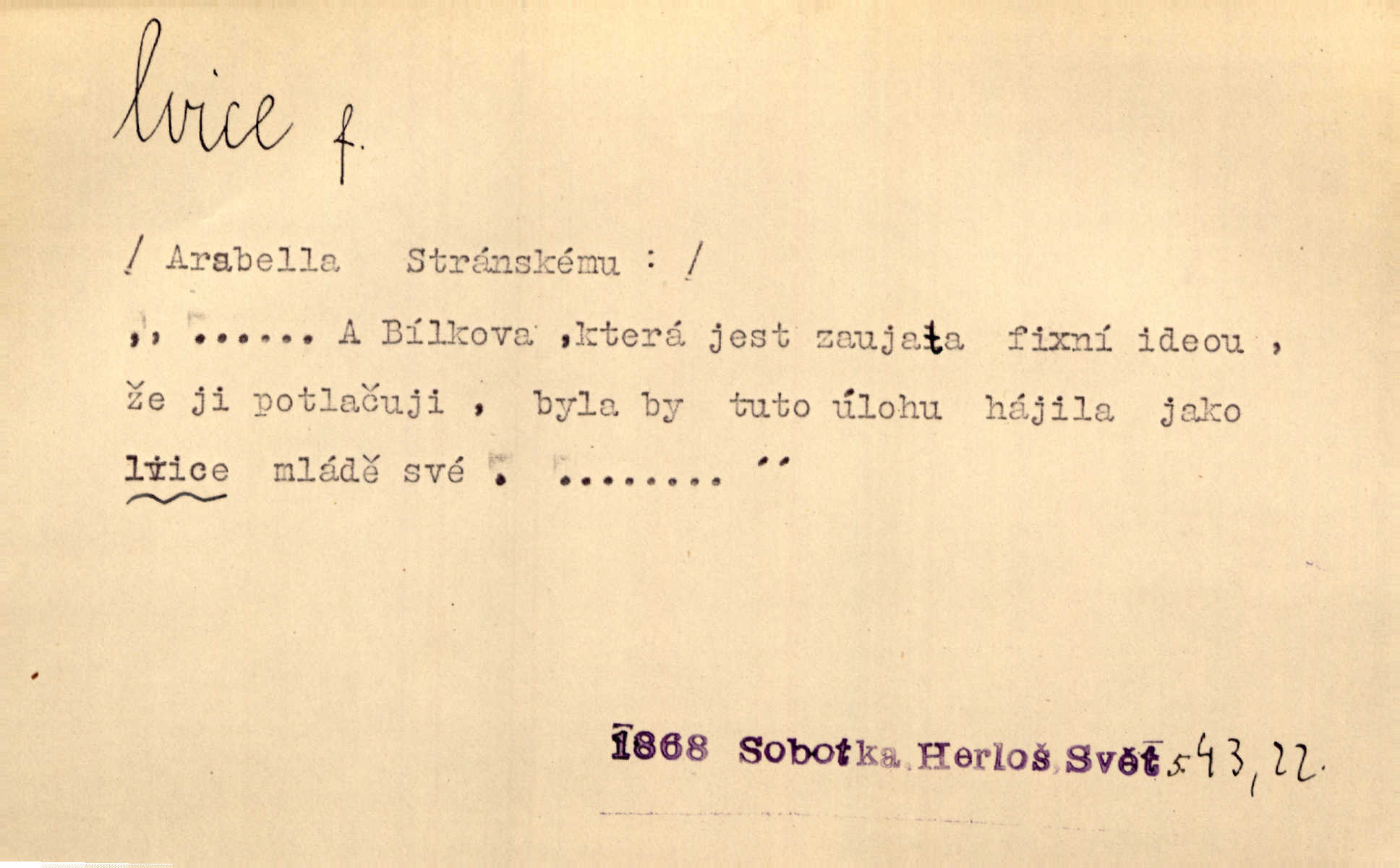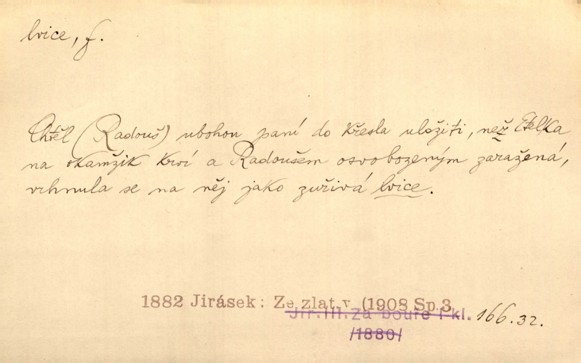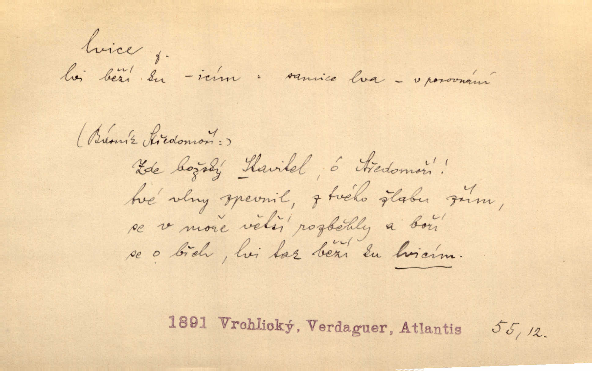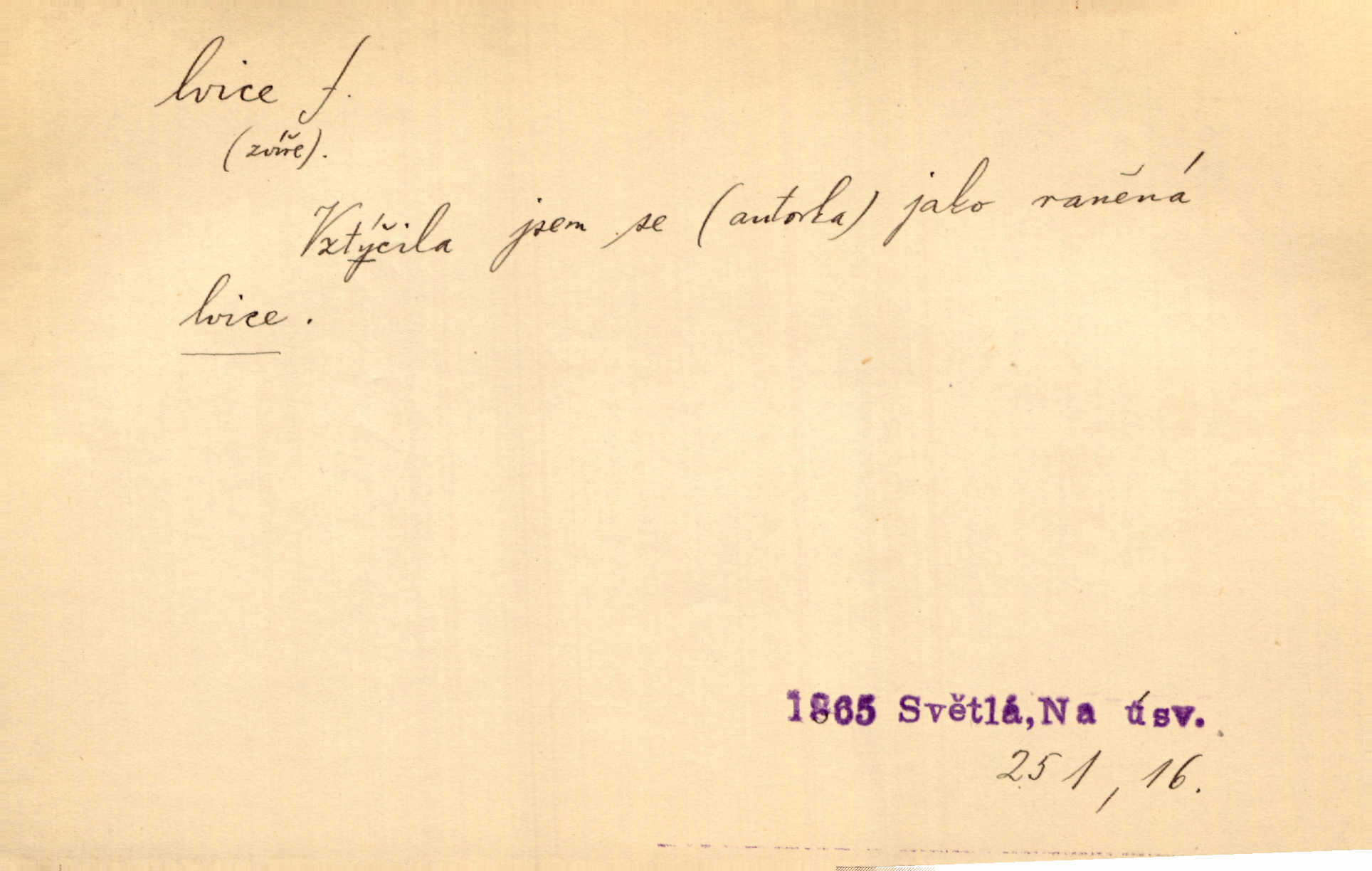 - lvice, -e f. k lev. V arabské poušti přiblížila se jednou lvice až k samým stanům jejího kmene. Zey. Tato matka vrhla by se jako lvice před své děti. Podl. Matka, podobna podrážděné lvici, tiskla kloučka k mohutným ňadrům. Maj. Milostpaní, královna města, lvice společnosti. Schein. Dvorně políbil jsi ruku jedné lvici salonů. Vrch.