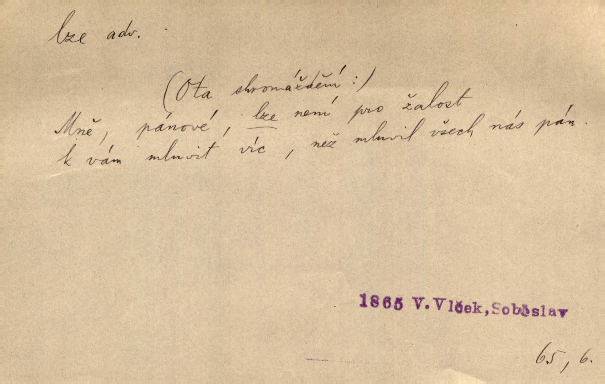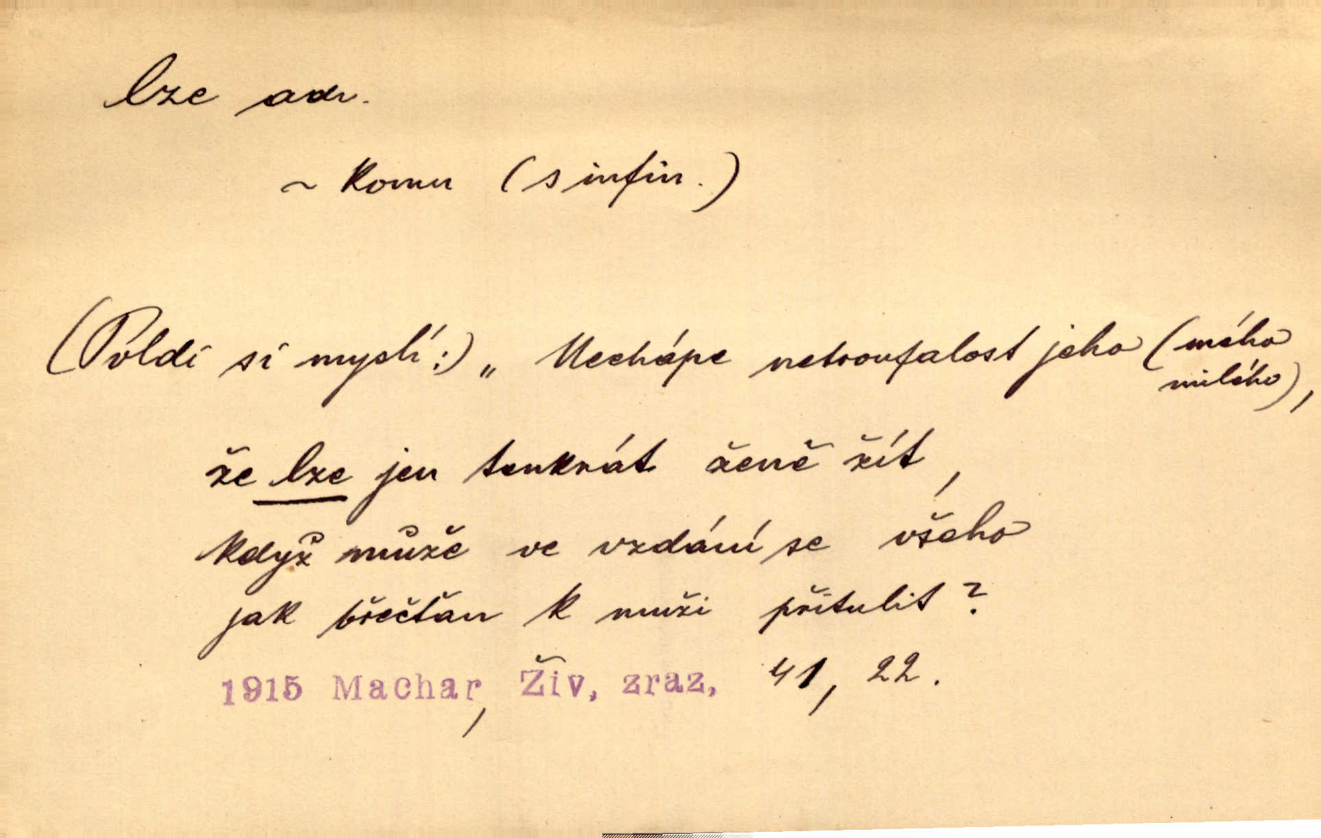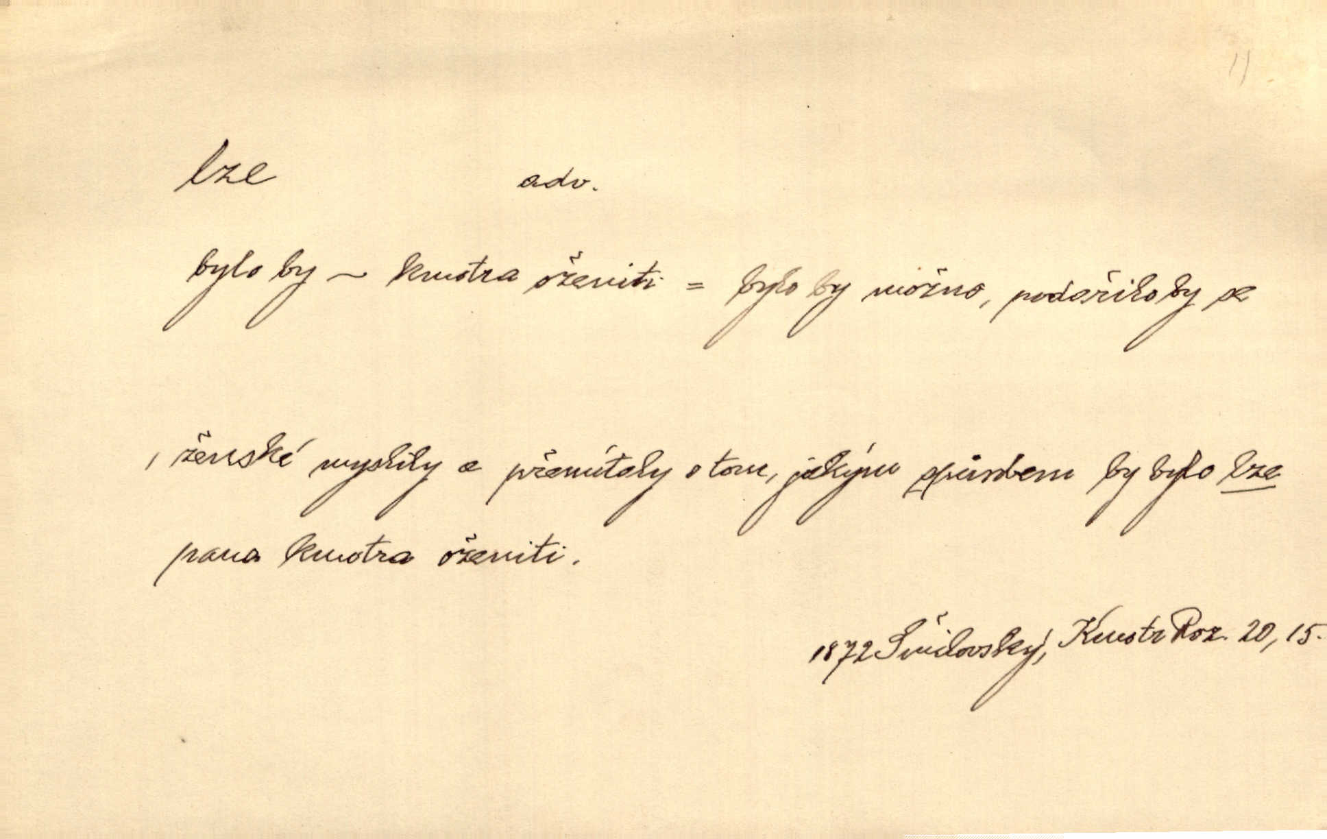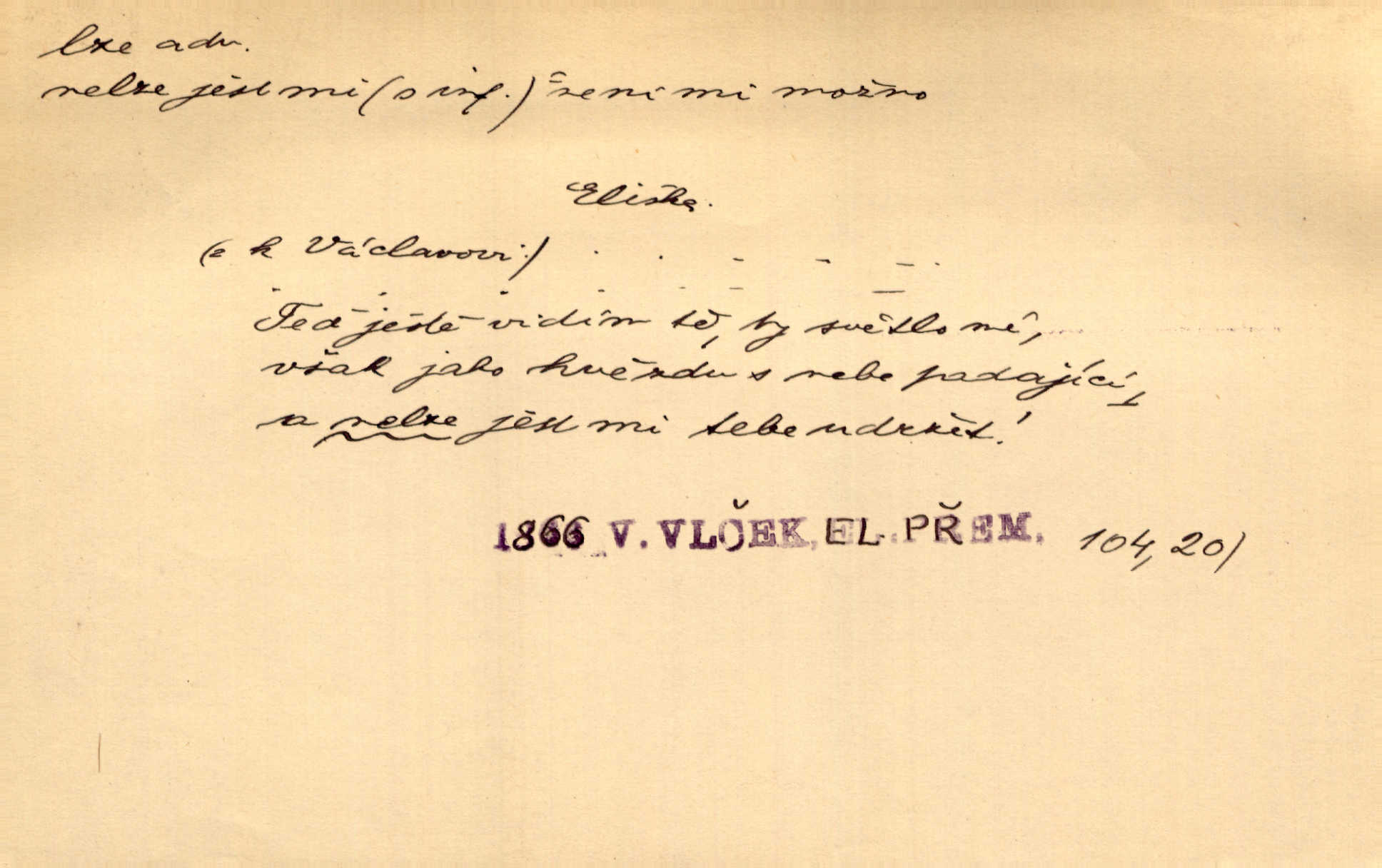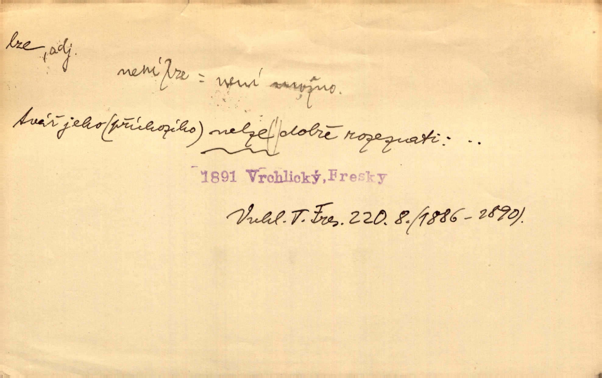- lze adv. možno. Jen s této stránky lze jest dějiny světové filosoficky pojímati. Šmil. Bylo lze slyšeti i tlumený polohlasitý hovor. Třeb. Horšího úrazu jim [Rakovnickým] učiniti nebylo lze. Win. Věděl [Kleofáš], kde lze ve městě nejlepší zboží nejlaciněji dostati. Šmil. Ovšem není lze, aby snad jeden ostatním podíl v práci té vykazoval. Vlč. Kdyby [Liduška] sto let, od rána do večera, a od večera zas až do rána pilně předla, nebylo by jí lze ten len sepřísti, co ho tu bylo. Erb.