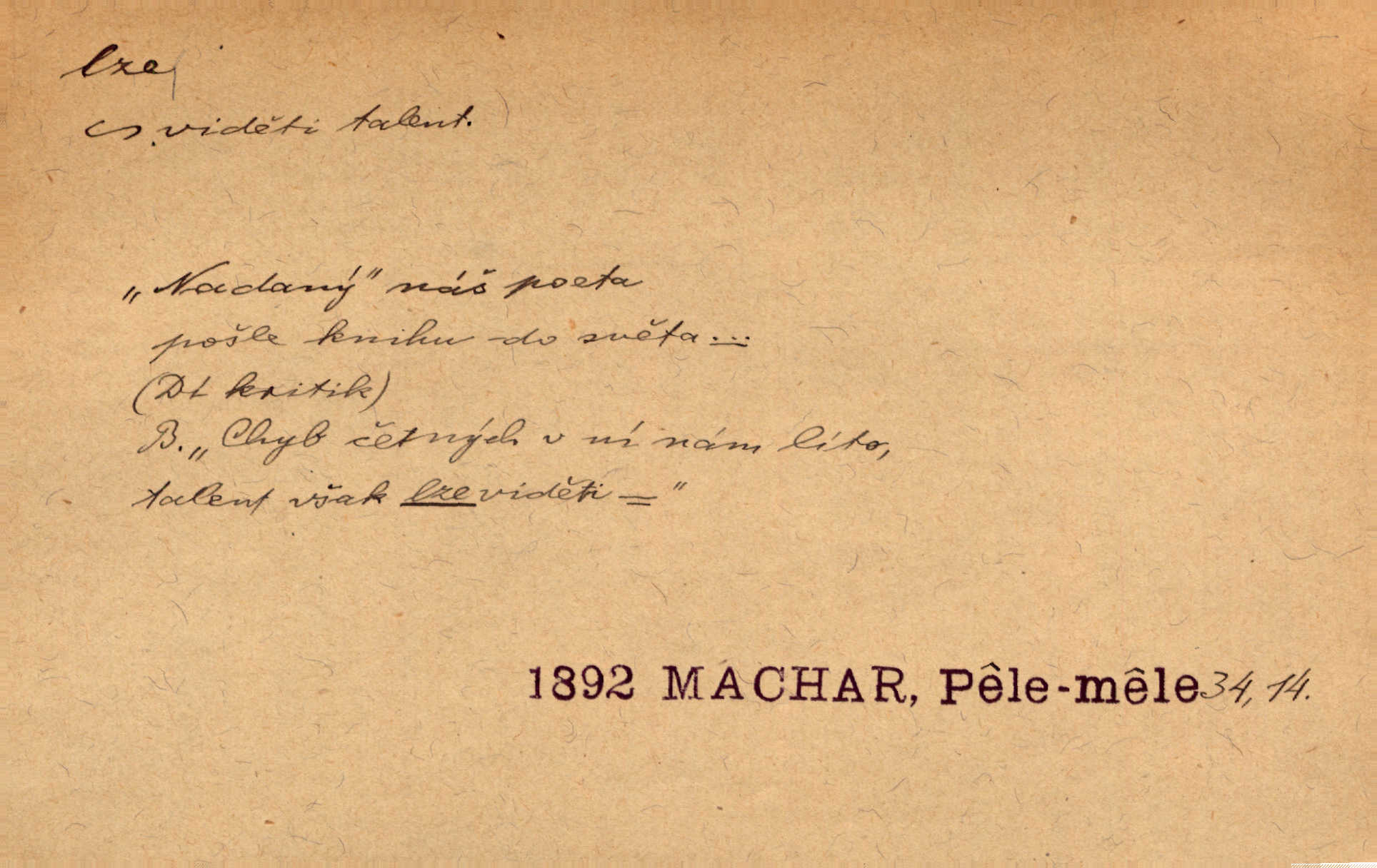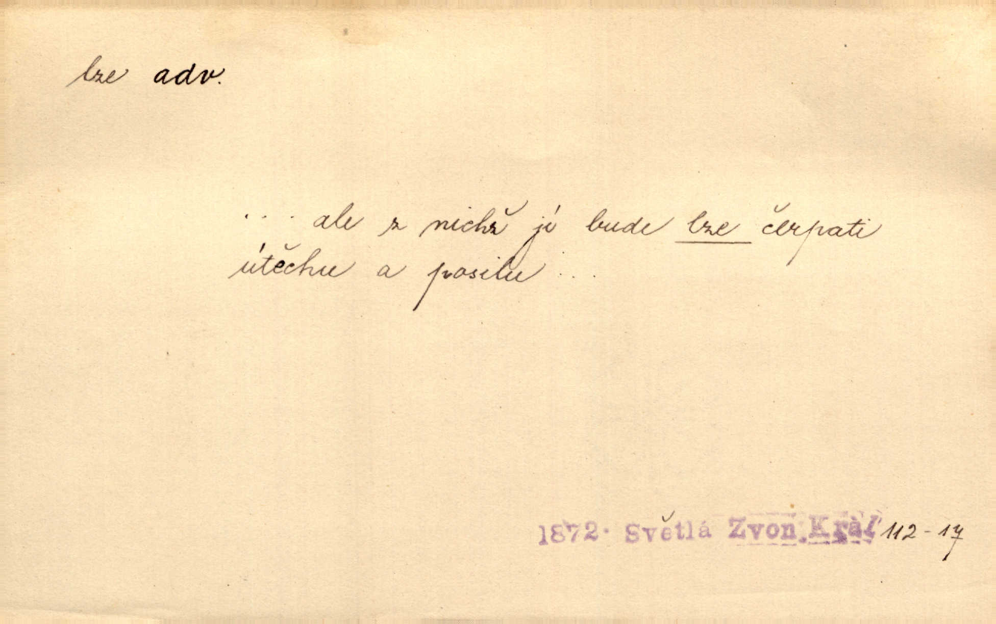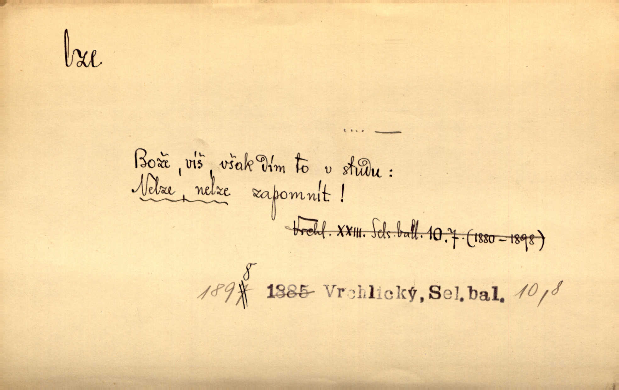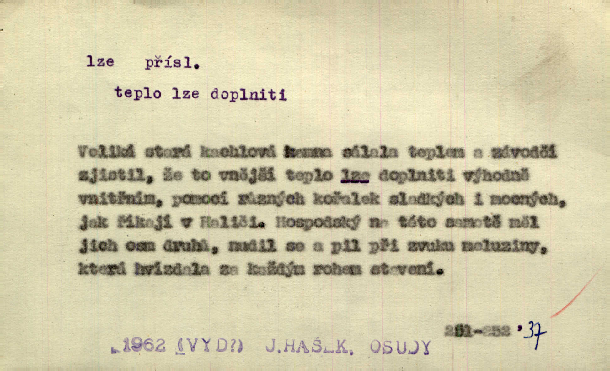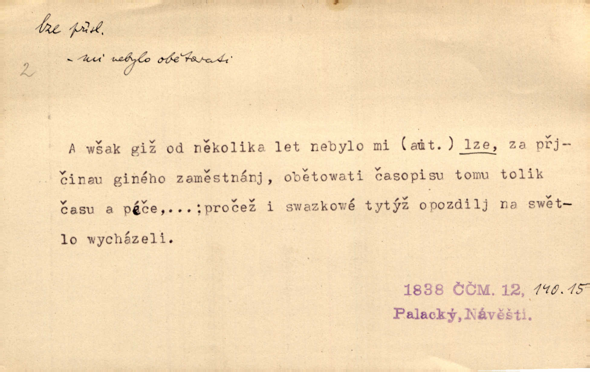 - lze adv. možno. Jen s této stránky lze jest dějiny světové filosoficky pojímati. Šmil. Bylo lze slyšeti i tlumený polohlasitý hovor. Třeb. Horšího úrazu jim [Rakovnickým] učiniti nebylo lze. Win. Věděl [Kleofáš], kde lze ve městě nejlepší zboží nejlaciněji dostati. Šmil. Ovšem není lze, aby snad jeden ostatním podíl v práci té vykazoval. Vlč. Kdyby [Liduška] sto let, od rána do večera, a od večera zas až do rána pilně předla, nebylo by jí lze ten len sepřísti, co ho tu bylo. Erb.