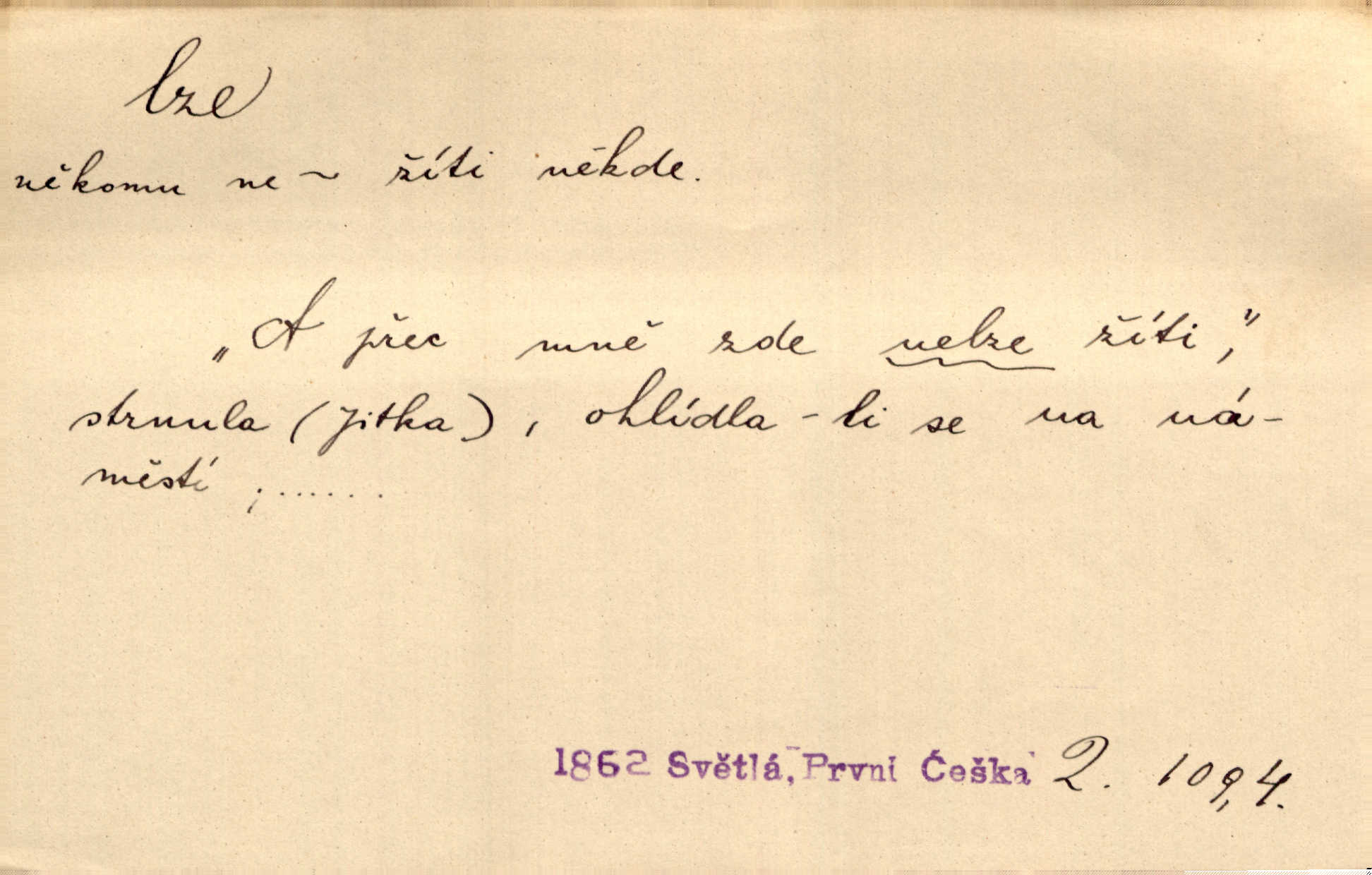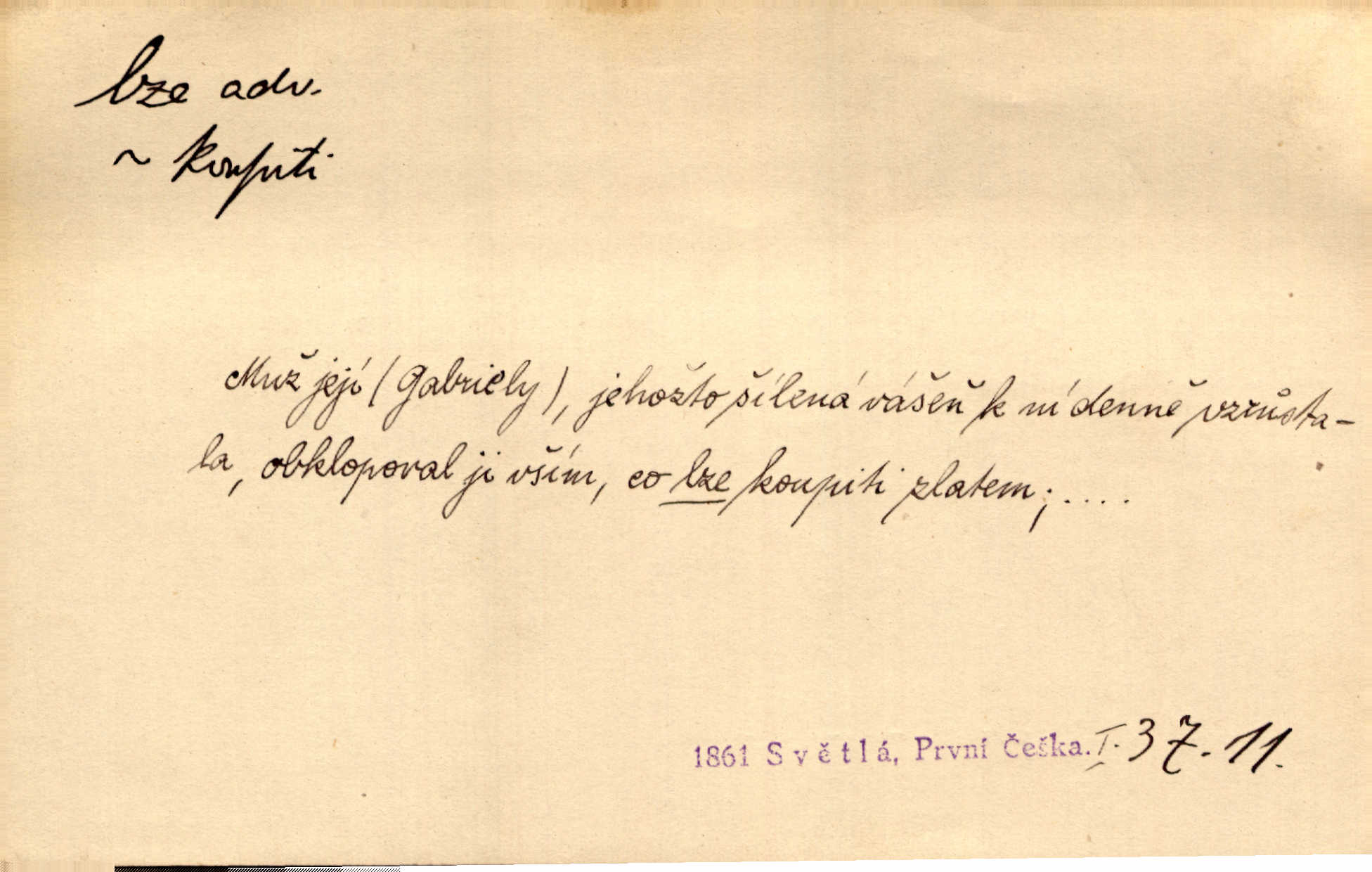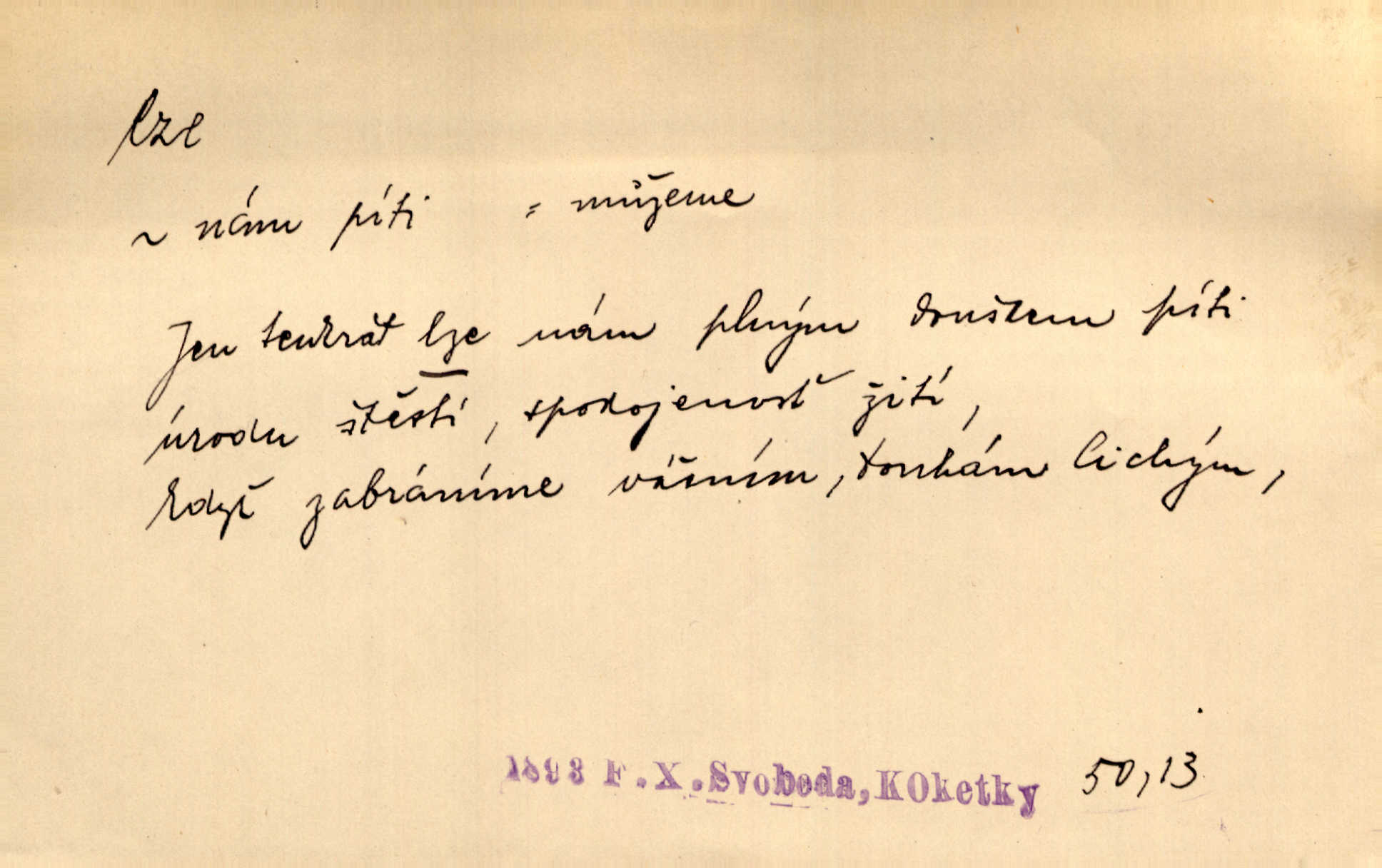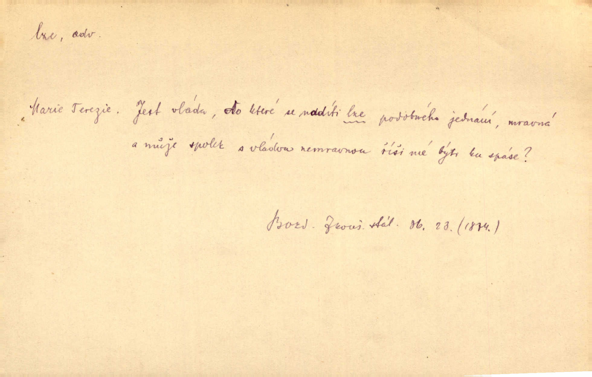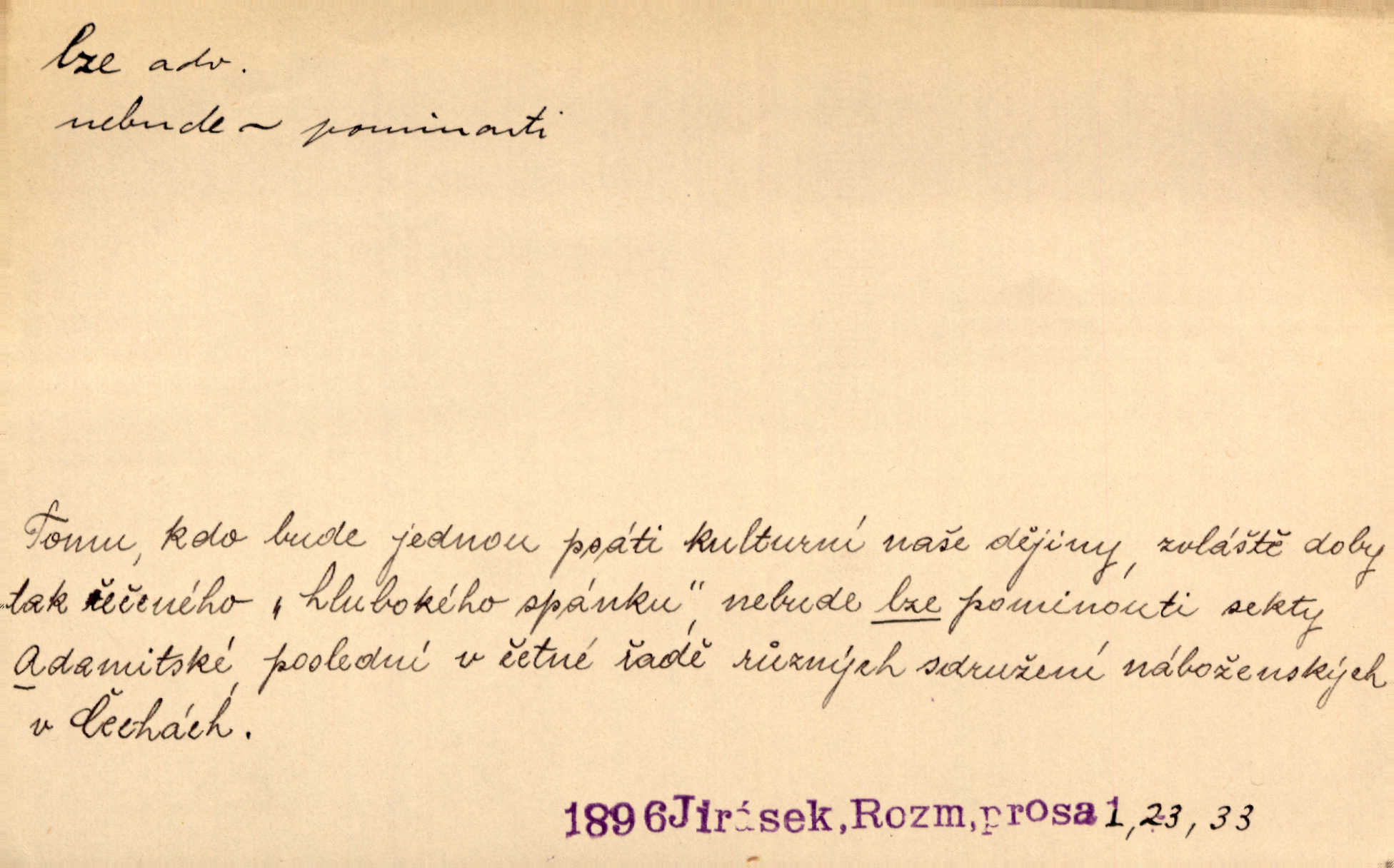 - lze adv. možno. Jen s této stránky lze jest dějiny světové filosoficky pojímati. Šmil. Bylo lze slyšeti i tlumený polohlasitý hovor. Třeb. Horšího úrazu jim [Rakovnickým] učiniti nebylo lze. Win. Věděl [Kleofáš], kde lze ve městě nejlepší zboží nejlaciněji dostati. Šmil. Ovšem není lze, aby snad jeden ostatním podíl v práci té vykazoval. Vlč. Kdyby [Liduška] sto let, od rána do večera, a od večera zas až do rána pilně předla, nebylo by jí lze ten len sepřísti, co ho tu bylo. Erb.