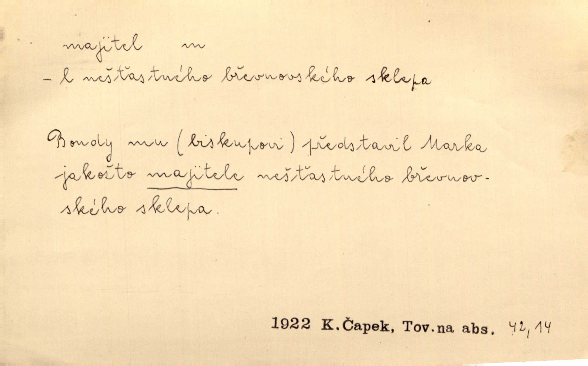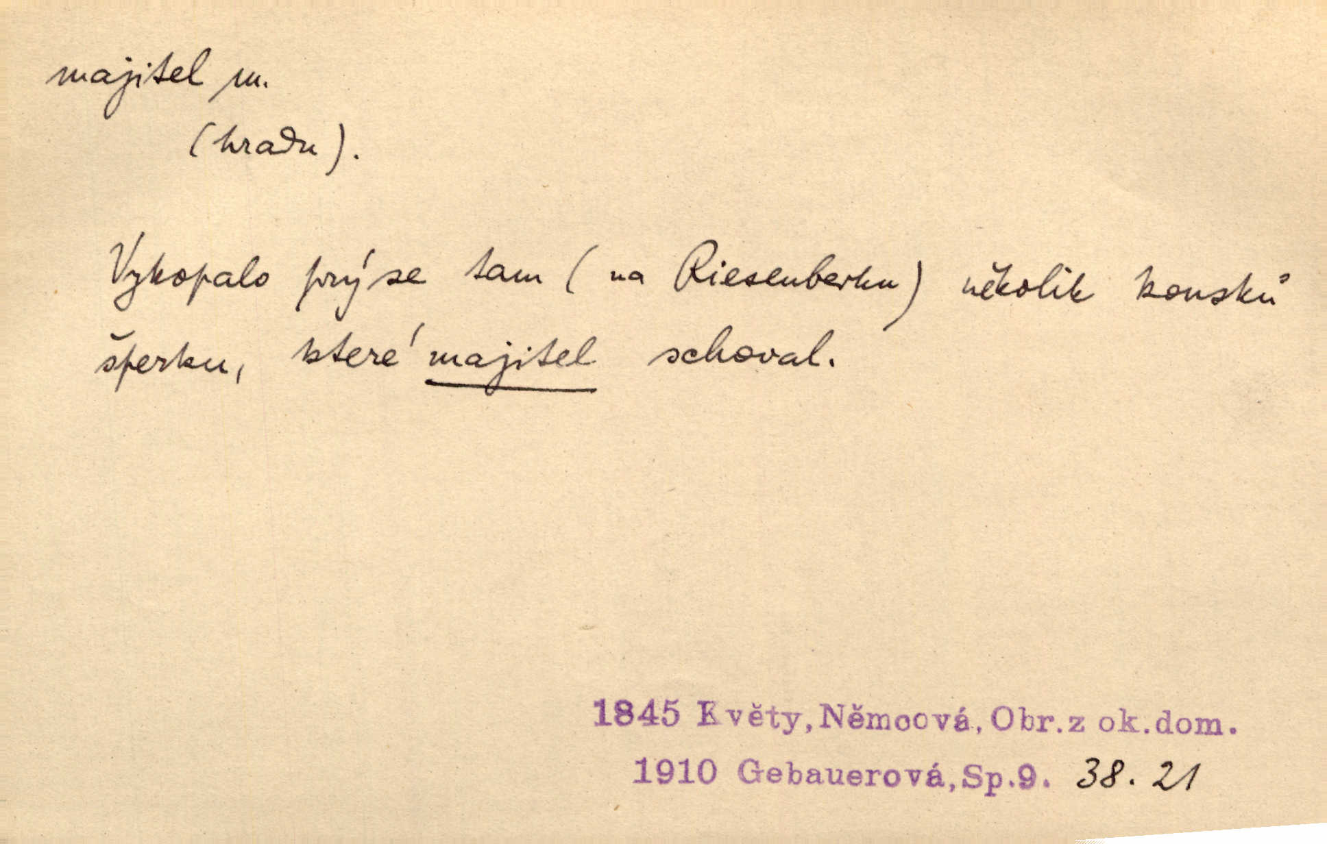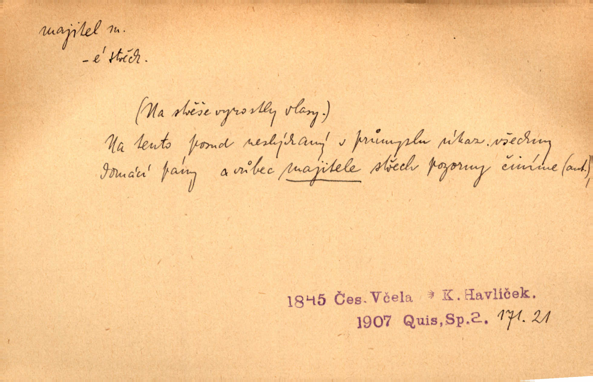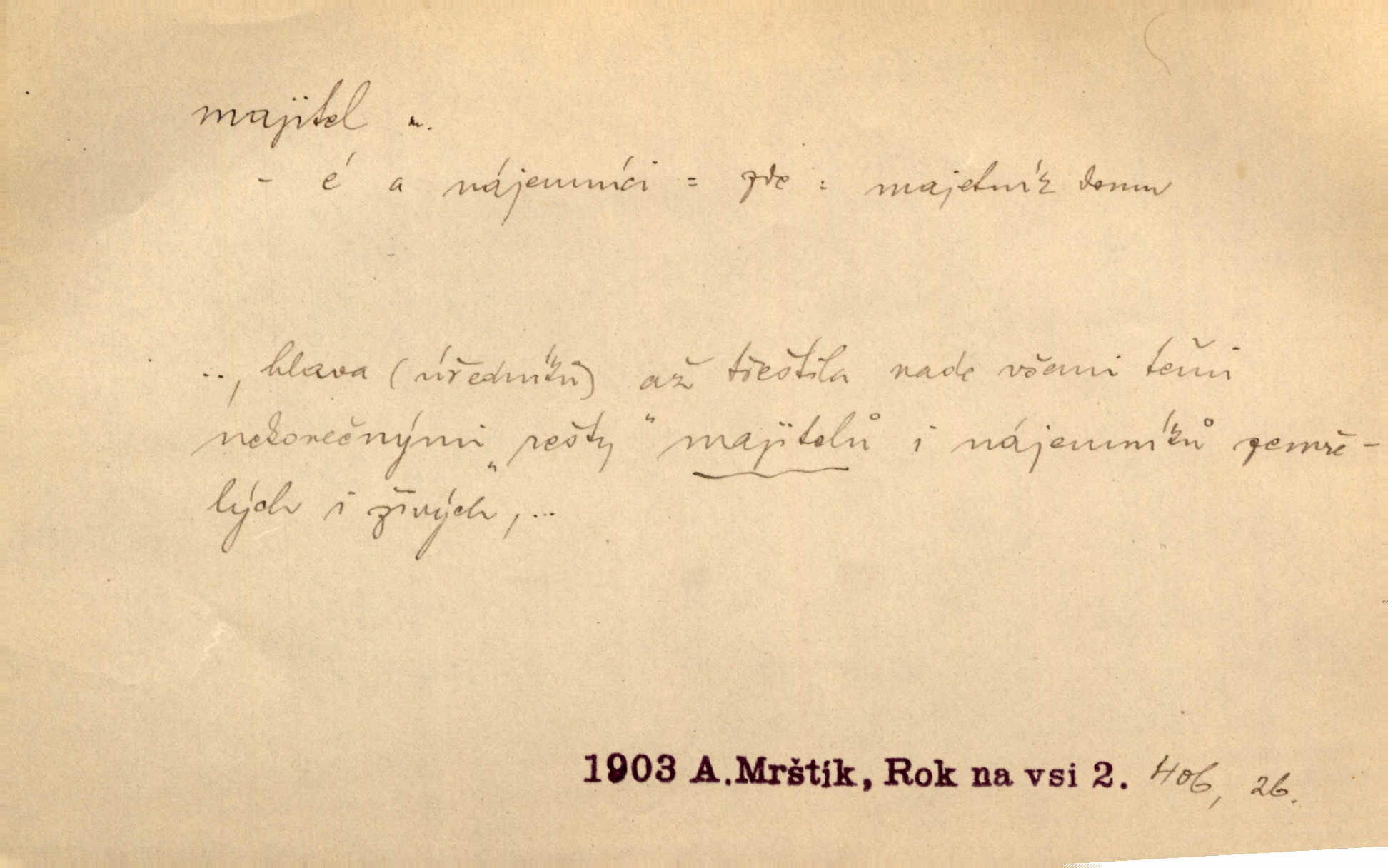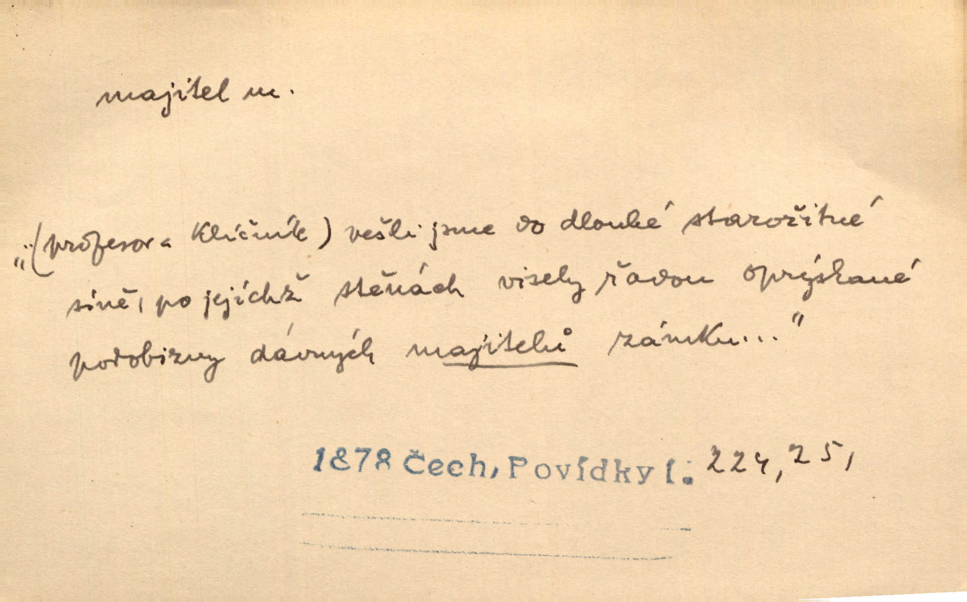 - majitel, -e m. kdo vládne nějakým právním majetkem, vlastník, držitel, majetník. Majitelem půdy [poddaný sedlák] nebyl. Herb. Majitelé skrovničkých usedlostí sotva že životem se protlukou. Havl. Majitel domu. Klenotnický krám, jehož majiteli, jak vím, není se starati o zítřejší večeři. Maj. Majitel skelných hutí. Preis. Majitel „Svobody“ J. Barák vzat do vyšetřování. Arb. Fin. akcie svědčící majiteli neznící na určité jméno, nýbrž náležející tomu, kdo ji právě má v držení. D kdo se honosí něčím znamenitým. Byl jmenován majitelem pražského 28. pluku. Mach. Majitel doktorského diplomu. Arb. Václav Nezmara, tříletý již majitel českého rekordu ve vzpírání těžkých břemen. Čap. Ch. Slovutný Lonský, majitel křesla v akademii. Čap. Ch. Žert. o držiteli něčeho třebas i obyčejného. Hádky súčastnil se i polesný, majitel útloboké ženy blondýnky. Staš. Zub vedl pořád svou [bolel]‚ takže ho jeho majitel konečně do želez dáti musel. Paleč. Neduhu zlého majitel. J. J. Kol.
