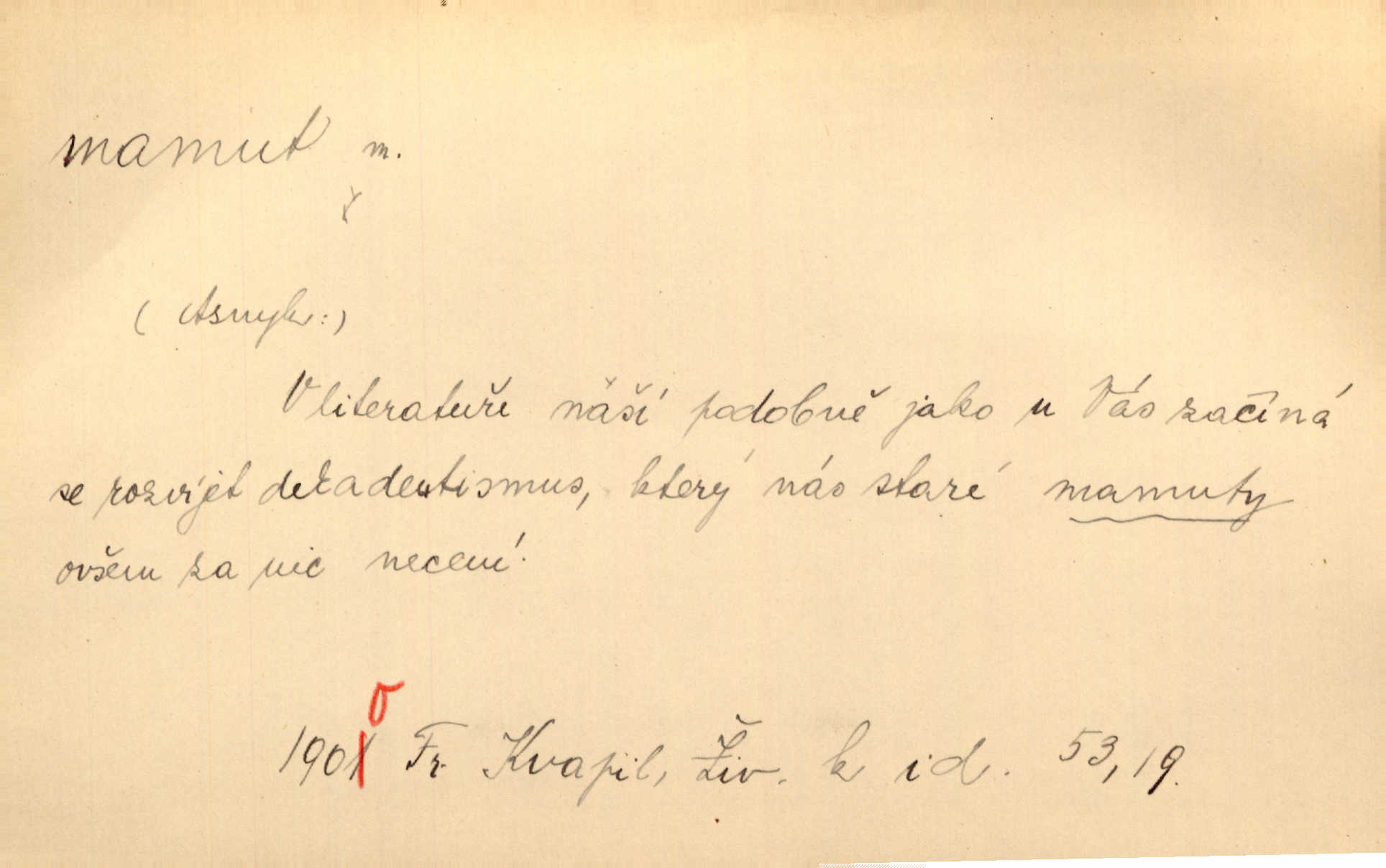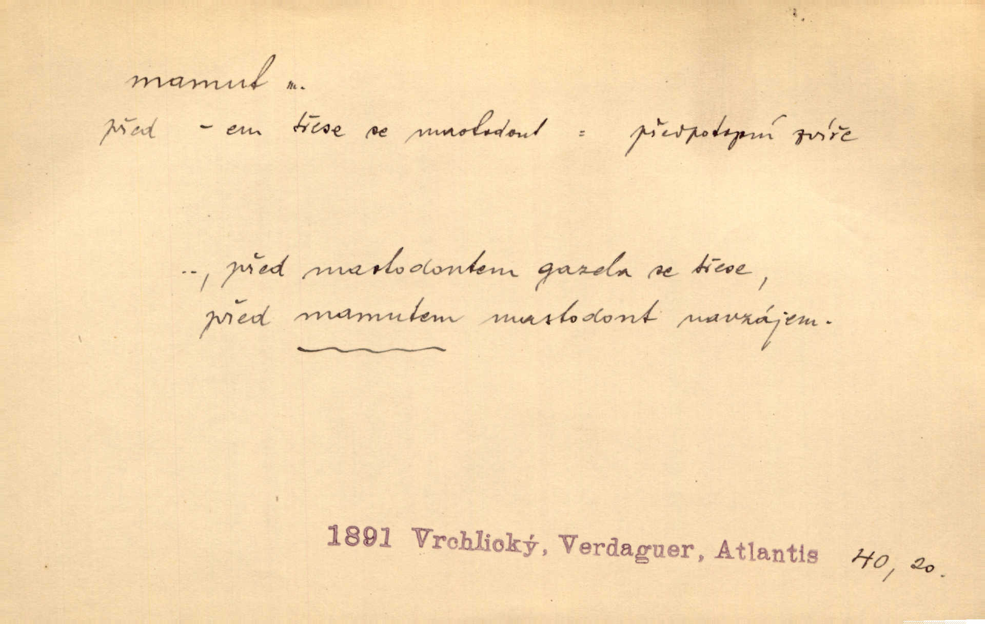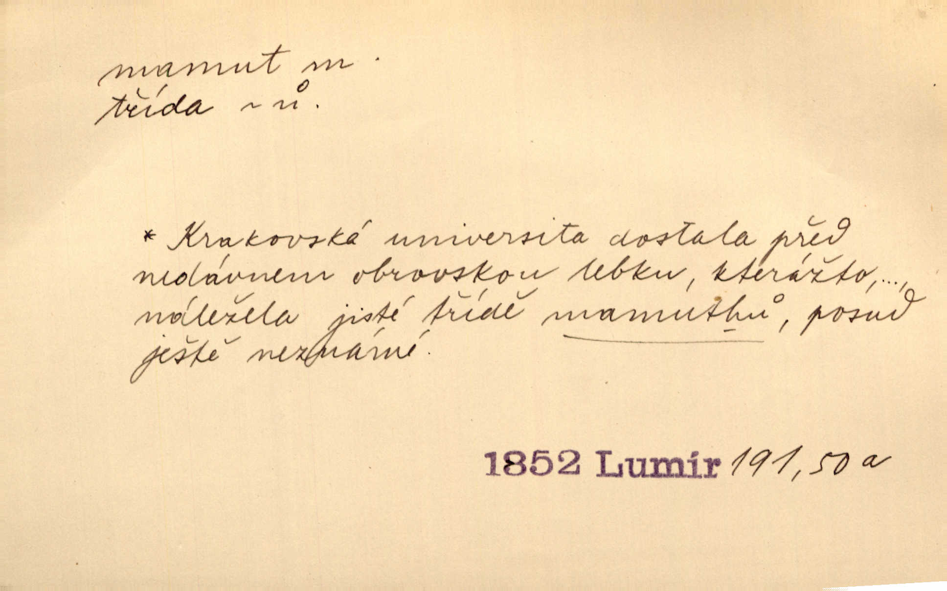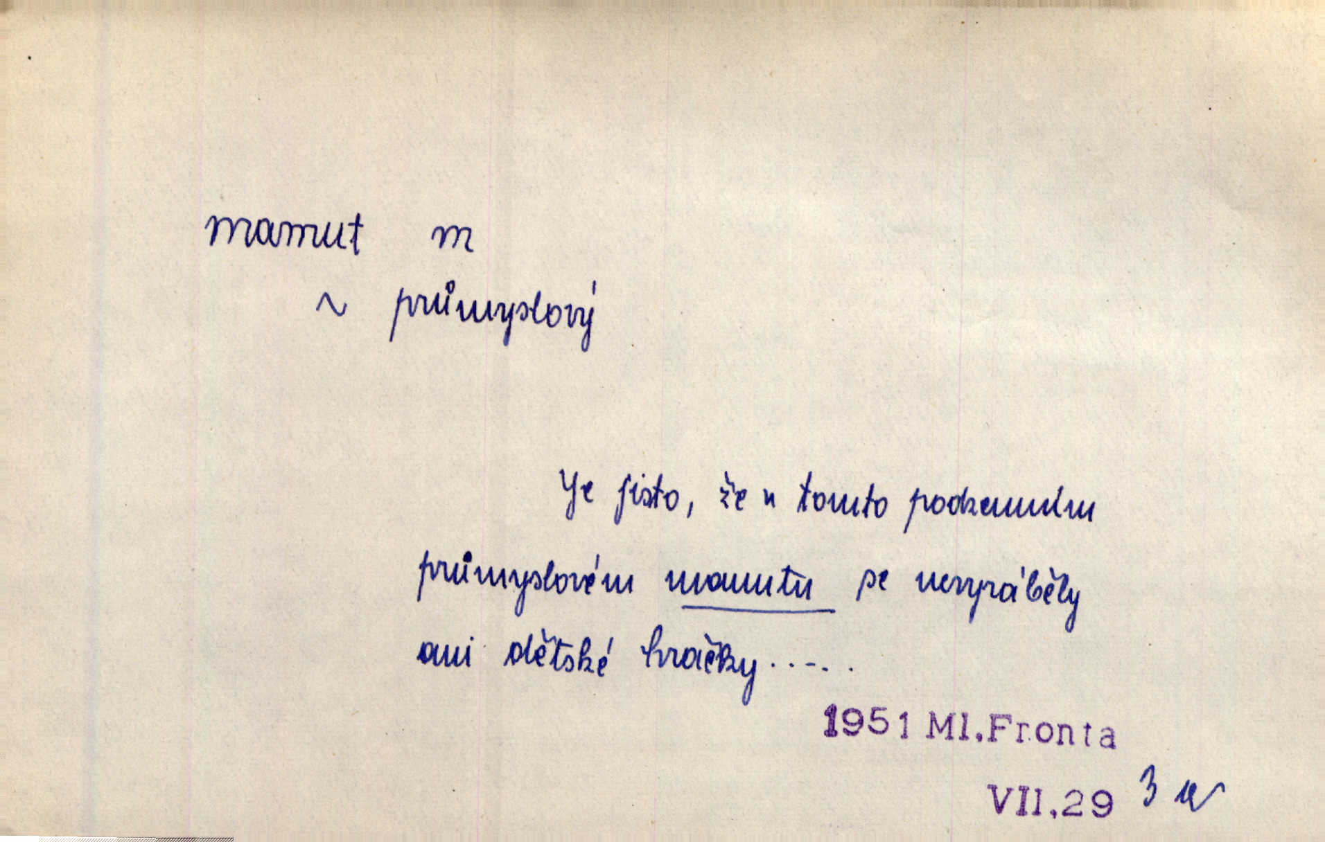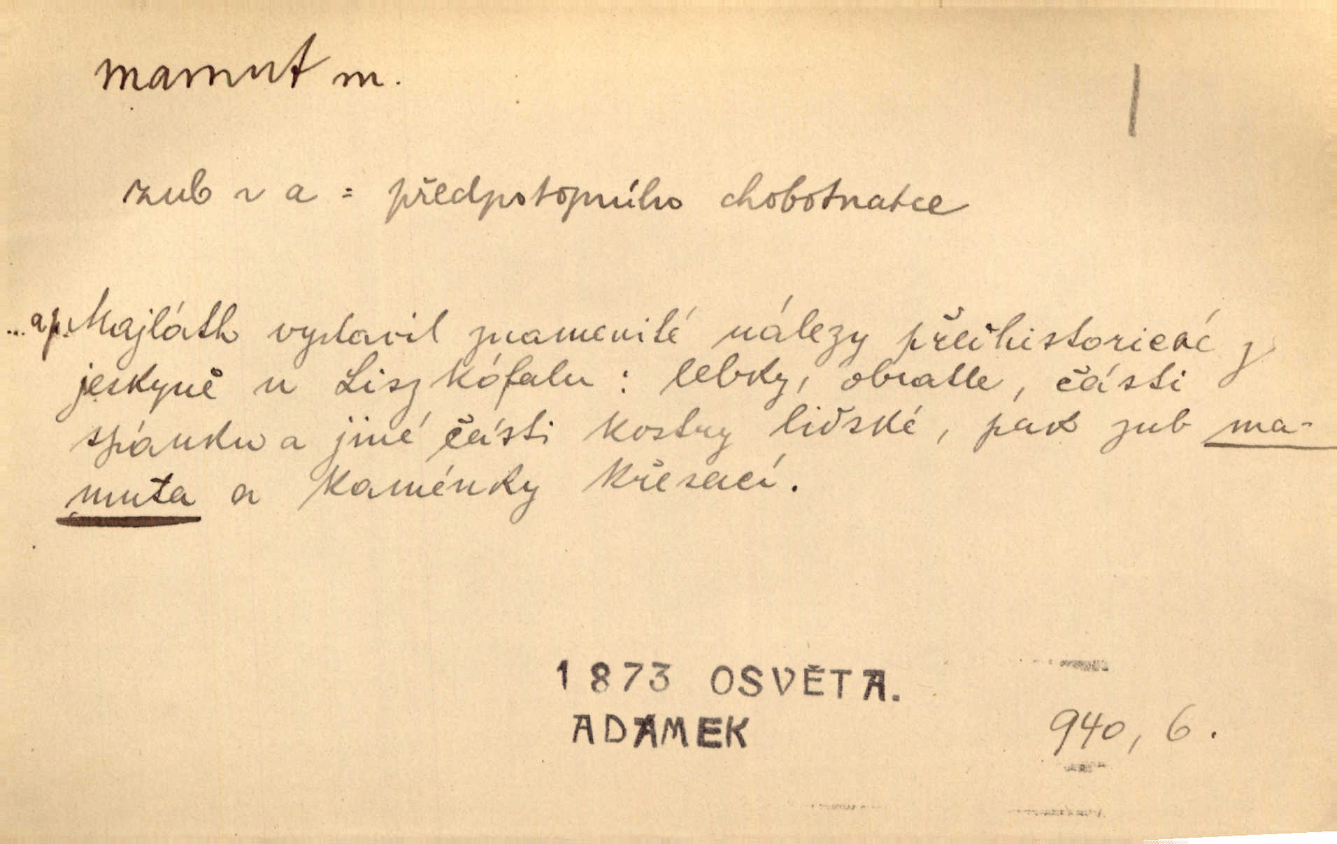 - mamut, -a m. zool. druh vymřelého slona, Elephas primigenius. Z malé dálky se fůry matně kymácely jdouce široce jako mamuti. Nor. D Expr. osoba n. věc mamutu nějak se podobající, zvl. ohromností, mohutností, nemotorností a pod. Cítil svou jepičí a červí nicotnost před tímto mamutem a mastodontem moci a síly [ředitelem]. Hlad. Konečně jsem měl těch mamutů [„Světozorů“] plný kufr velikánských knih. Mach. Vyličuje brusiče za cosi pouze bývalého, za jakési literární mamuty. Kos. D nadávka. Co chceš, mamute? [jeden voják druhému]. Med. Zalyká se [Davilla] hystericky: Vy mamute! Šrám. D Tech. čerpadlo používané pro příliš hluboké studně. Hosp. odrůda velkozrnného ječmene. Zahr. odrůda velkoplodé ostružiny.