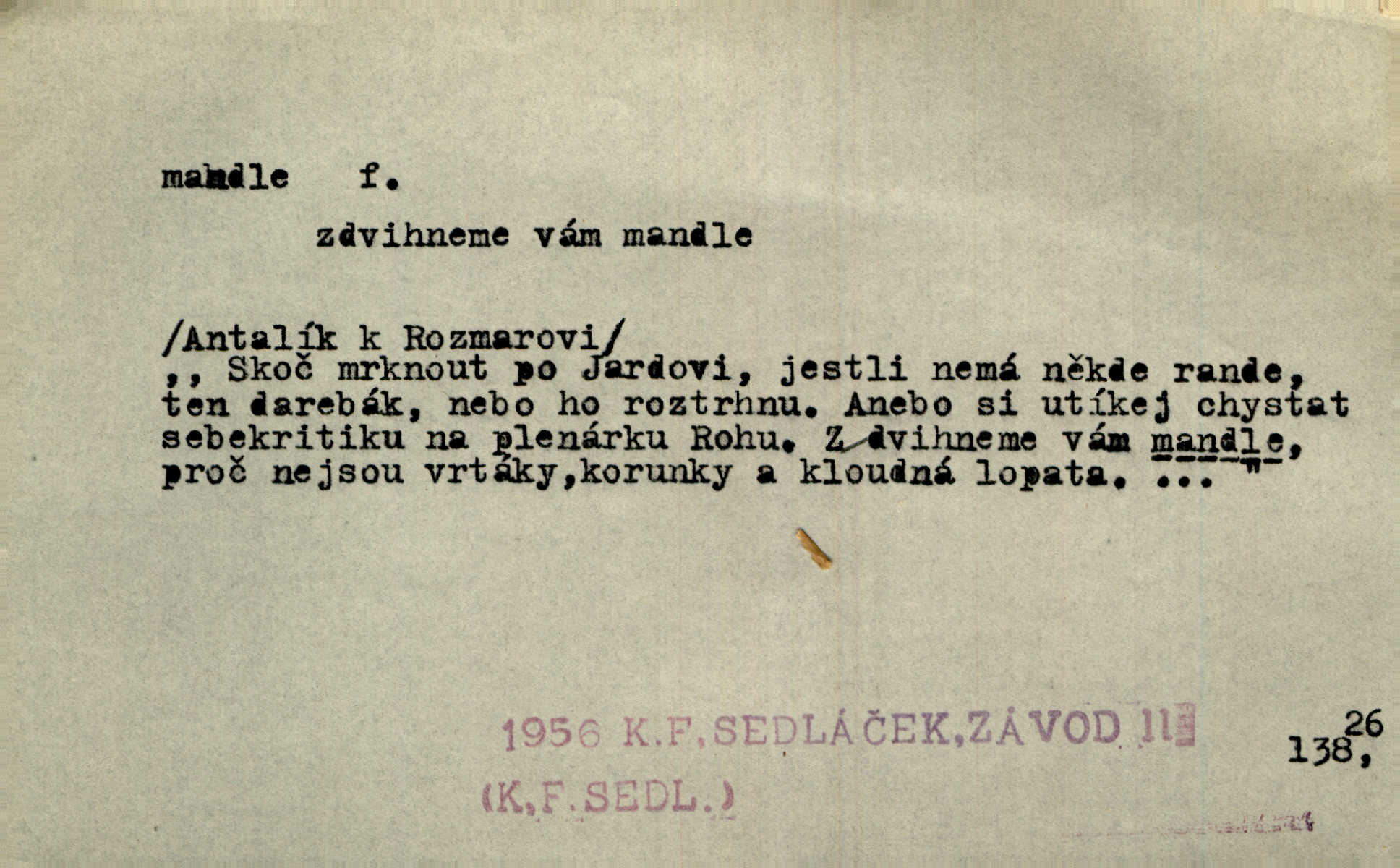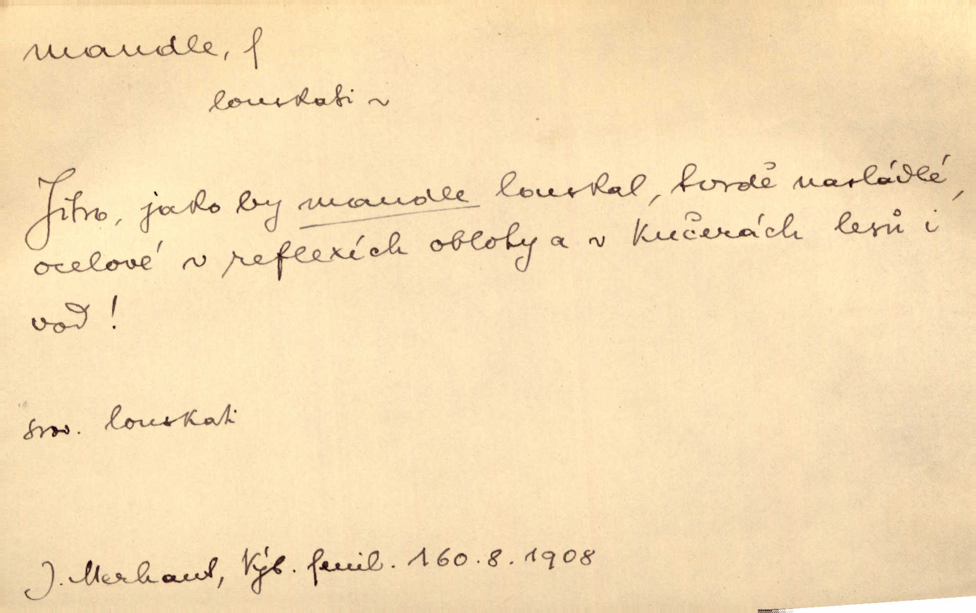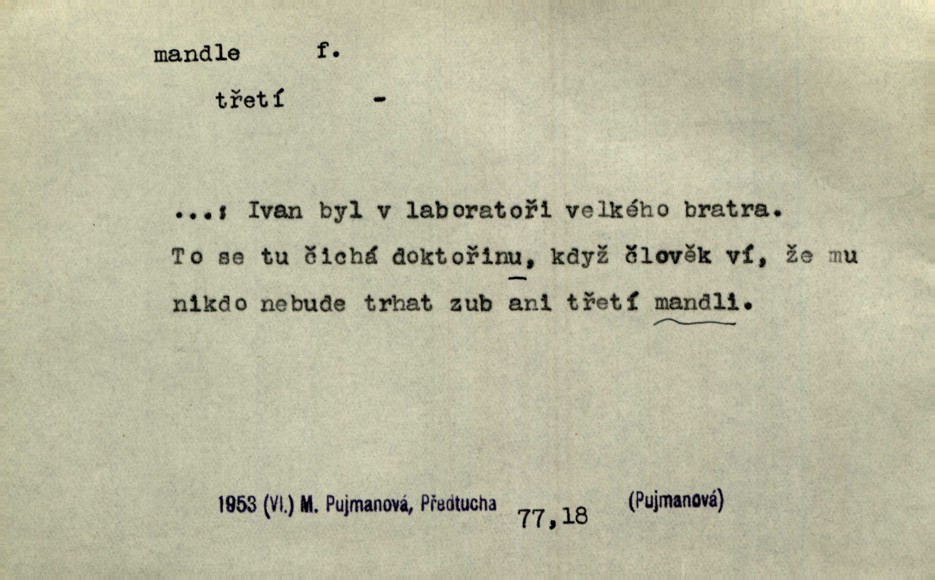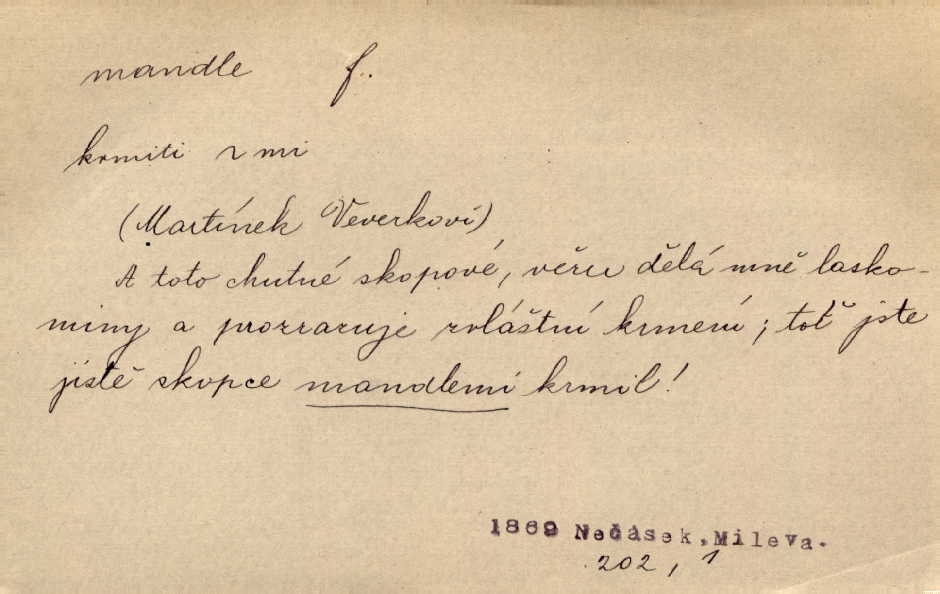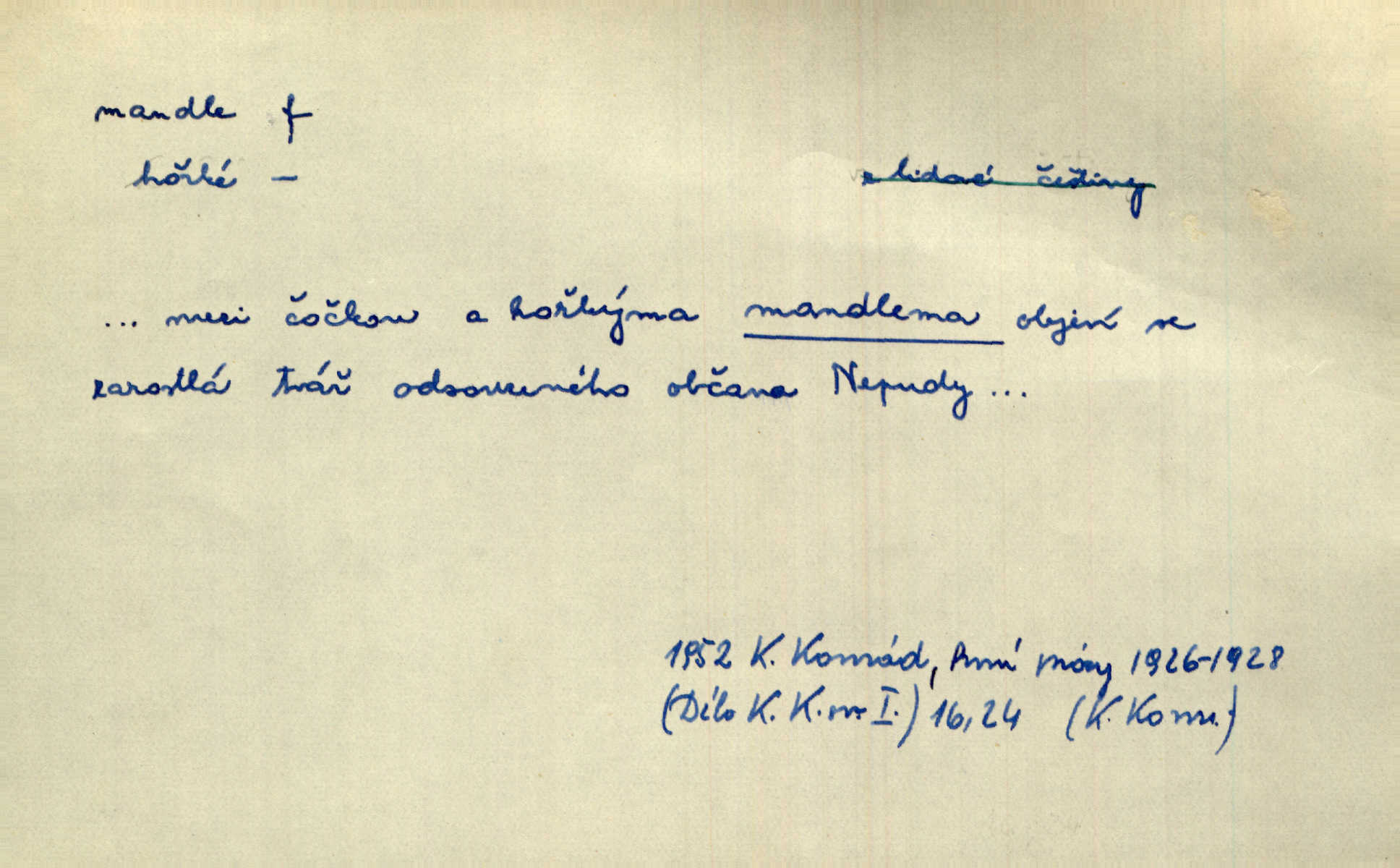 - mandle, -e f. bot. plod mandloně používaný hlavně v kuchařství a cukrářství. Potřebuju mandle a hrozinky do buchty. Herrm. Krásnou vepřovinku máme, jako mandle bude! chutná. Rais. To je holka jak mandle svěží. Stroup. Handle jsou mandle, plácněme si! obchod je znamenitá věc. Sez. Zbož. hořké mandle, sladké mandle; praskavé mandle prodávané se skořápkou. D tonsilla, párové, žlázové těleso mající velikost a podobu mandle na přechodu dutiny ústní v hltanovou. Slepé střevo, mandle, pupek, samé zbytečnosti. K. Čap. Měl „spadlé mandle“ bolení v krku. Vrba. Lid. ustál. sp. Teď spadnou mandle všem tajným nepřátelům říše budou pokořeni. Jah. Kdekdo se na ně [nováčky] chystal, že jim „zvedne mandle…“ potýrá je. Ros. Co pak záleží panu hraběti na nějakém stu metrických centů cukru, pro něj to nic neznamená, a nám by to zvedlo mandle polepšilo, prospělo. Šim. No, teď jsem tě vzala za mandle, ty pejcho jedna! myslela si pokořila. Šlej. Až se to [že purkmistr neplatil daně] doví na berním úřadě — ti mu natřesou mandle! zatočí s ním. Vrba. D mandlovník. Přišla jsem k studánce, tam kde mandle kvetou. Zey. Háje citronů a mandlí září vonným květem. Čech. D Geol. výplň v dutinách vyvřelých hornin tvořená sekundárními nerosty.