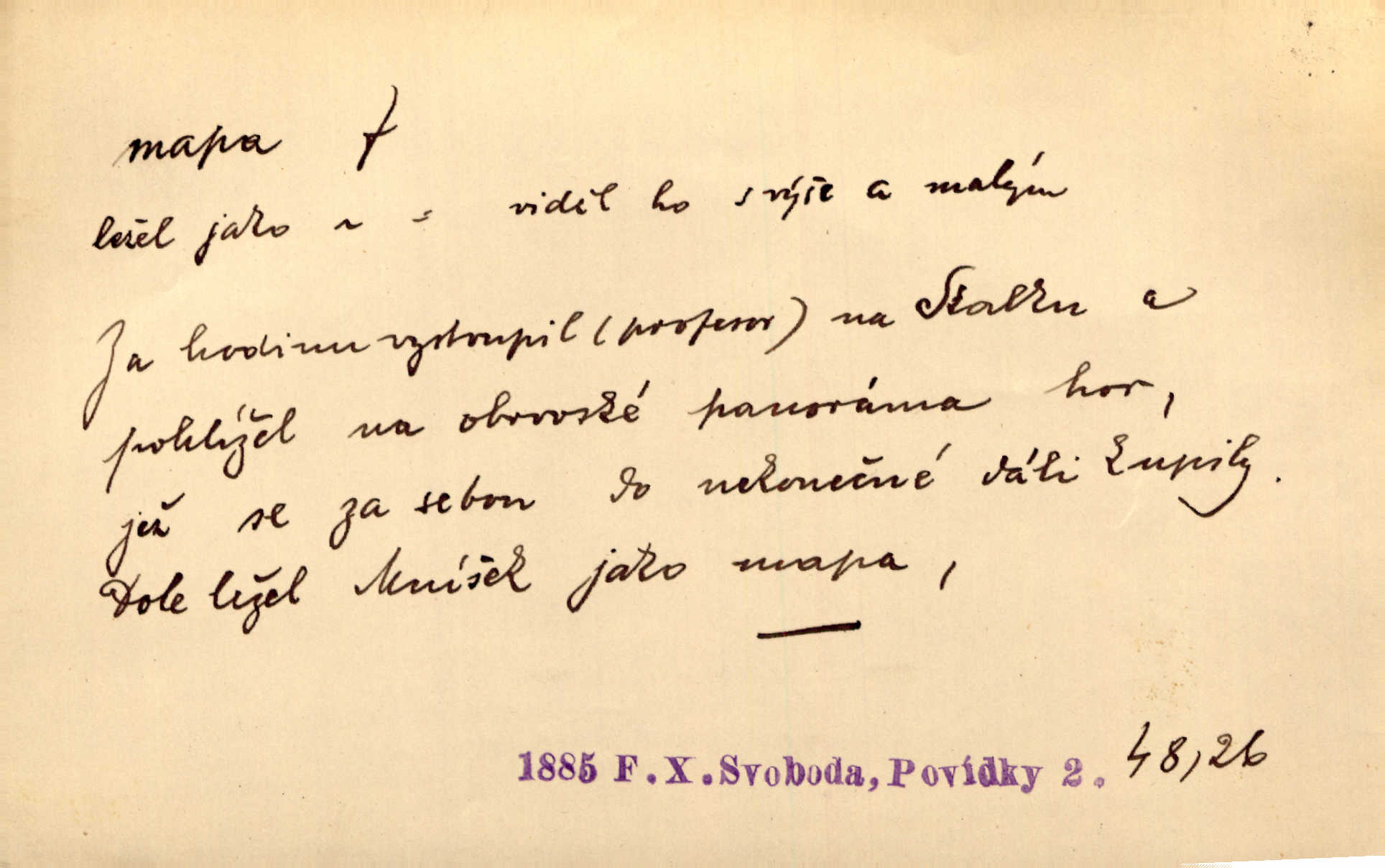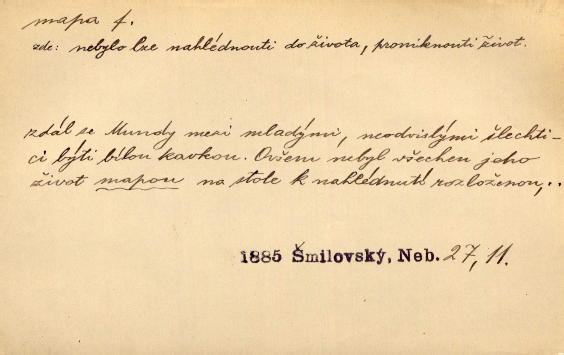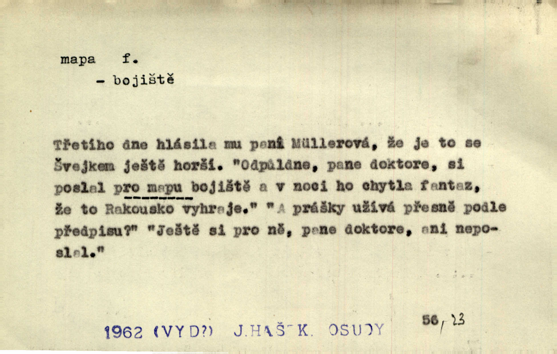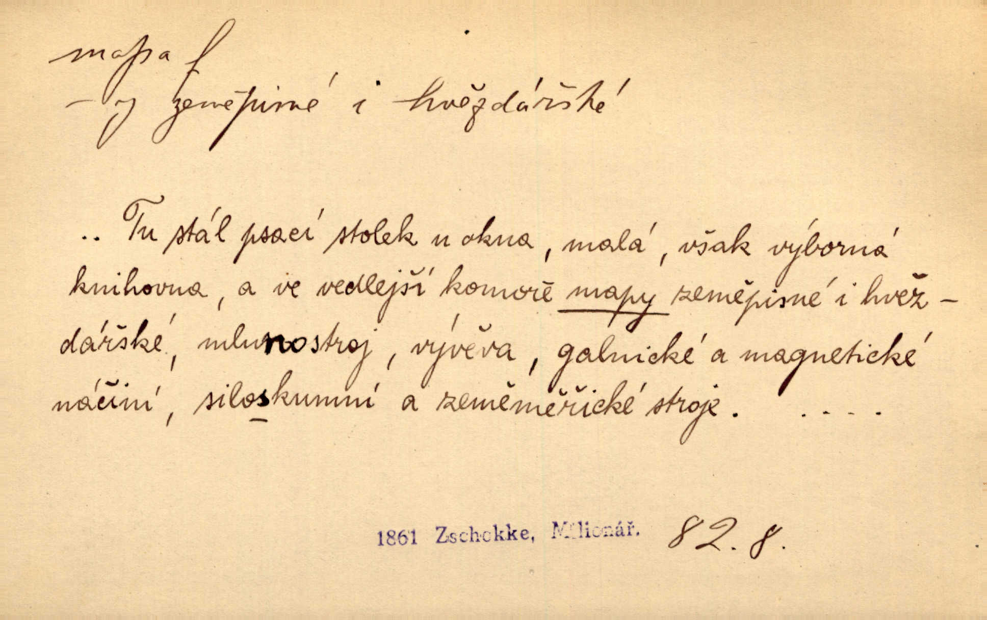 - mapa, -y f. zmenšené znázornění zemského povrchu n. jeho částí, přenesené na rovnou plochu; podobné znázornění hvězdného nebe. Na zdi visela mapa Čech. Něm. Mapa okolí pražského. Herrm. Mapy zeměpisné i hvězdářské. Zschokke. Mapa geologická znázorňující rozšíření hornin a útvarů na zemském povrchu. Mapa klimatická, meteorologická, národopisná a p. Velmi názorně podávají nerovnosti terénu reliefní mapy. Bač. Mapa katastrální, pozemková. [Hrabec s geometry] začal choditi po polích s mapami, triangly a řetízky plány. Herb. Dole [pod Skalkou] ležel Mníšek jako mapa. Svob. Přen. Nebyl jeho život mapou na stole k nahlédnutí rozloženou. Šmil. D skvrna připomínající svým tvarem mapu. V suterénních barech rostly na temněrudých malbách mapy vlhkosti. Maj. „Taky tady to utřete,“ řekl, ukazuje na mastnou mapu na stole. Her. Rezavá mapa od potu na vestě. Čap. Ch. Her. slang. Hrůzně a zbytečně pomalovanému obličeji říká se [mezi herci] mapa nebo nádraží. Stej. Typ. (žert.) velká korektura. D desky n. obálka pro listiny, kresby a p. Na jednom ze stolů mapa s listinami. Bozd. Několik malířů a malířek s mapami a skřínkami. Mach. Z mapy zesnulého B. Wachsmanna vybrali jsme několik drobných kreseb. Vol. sm.